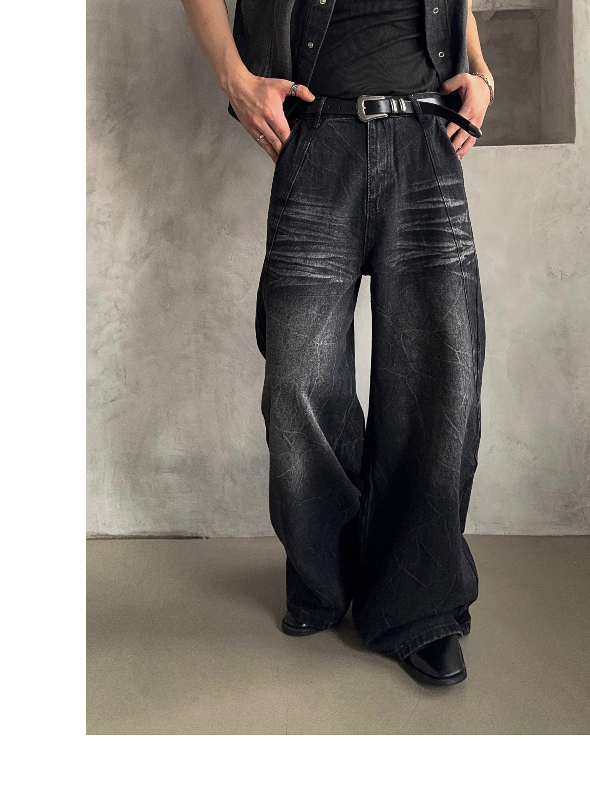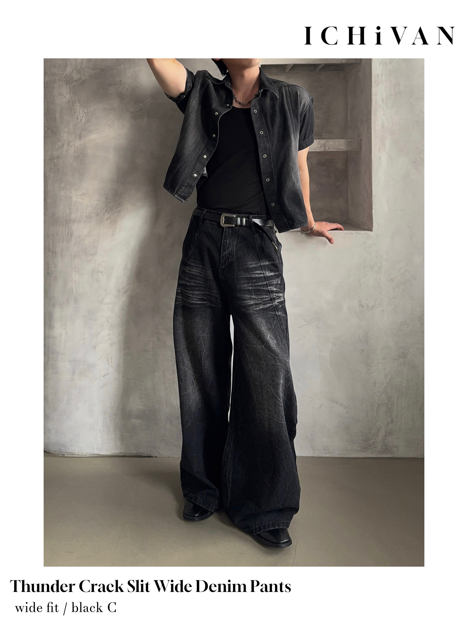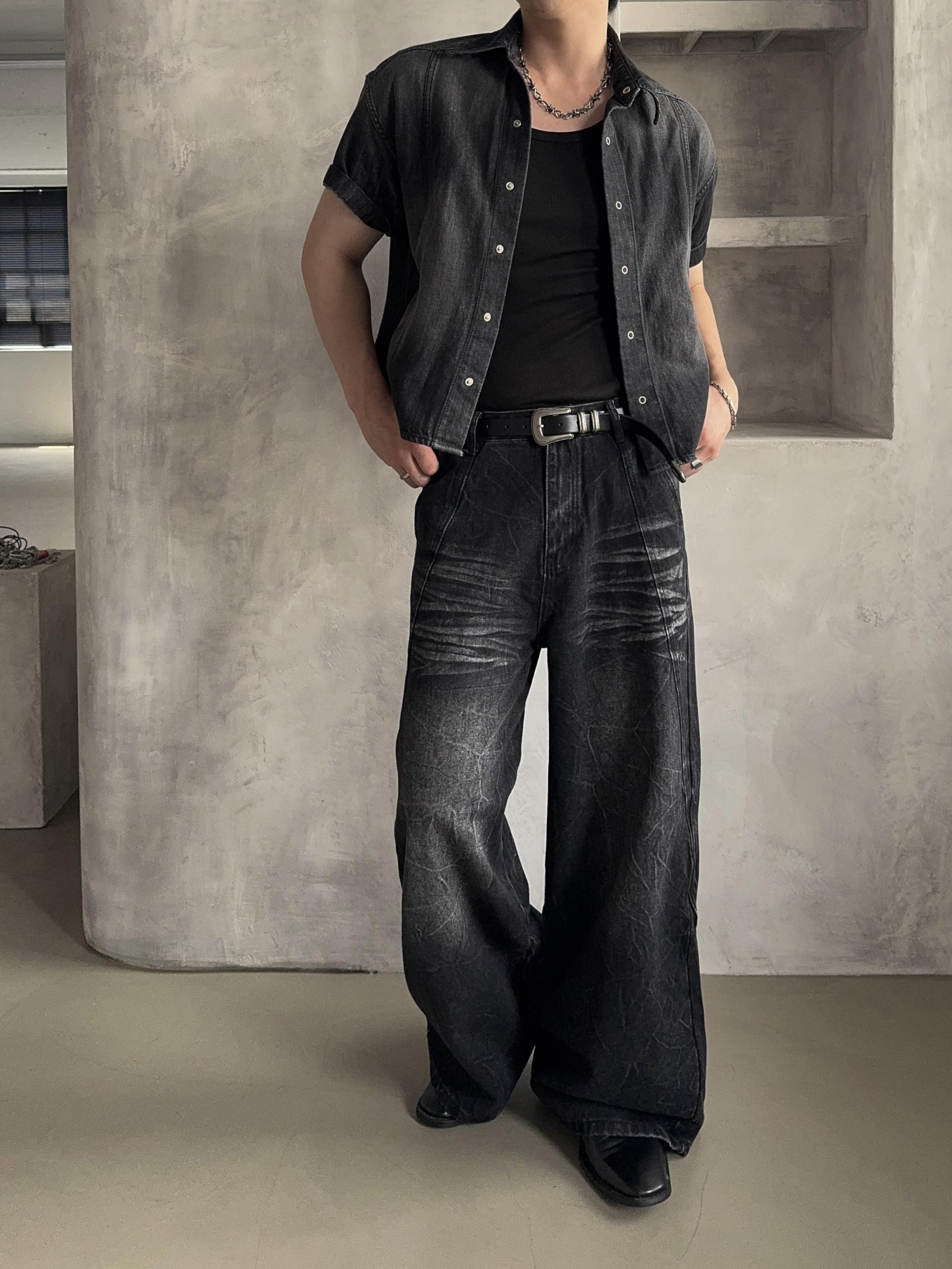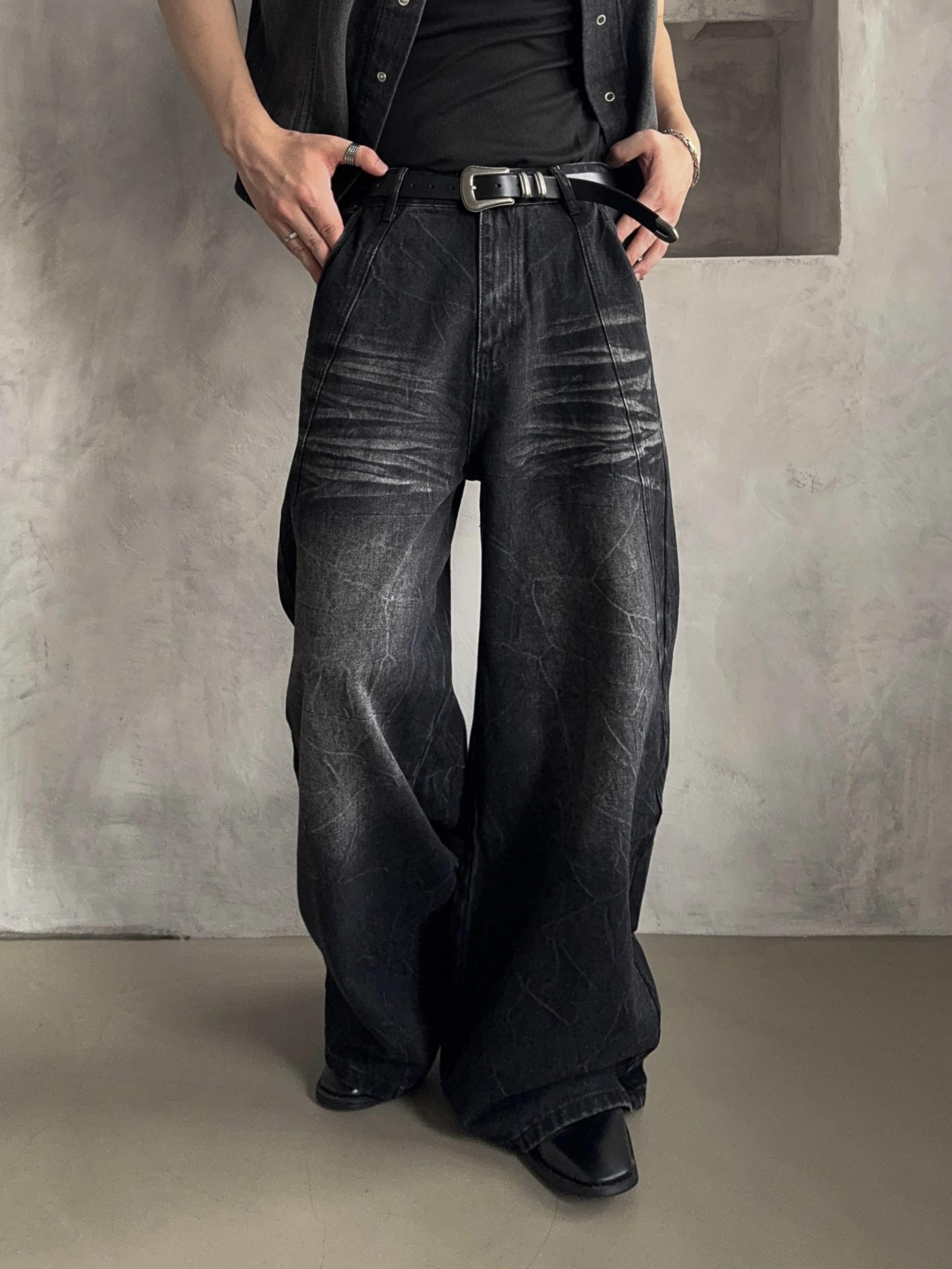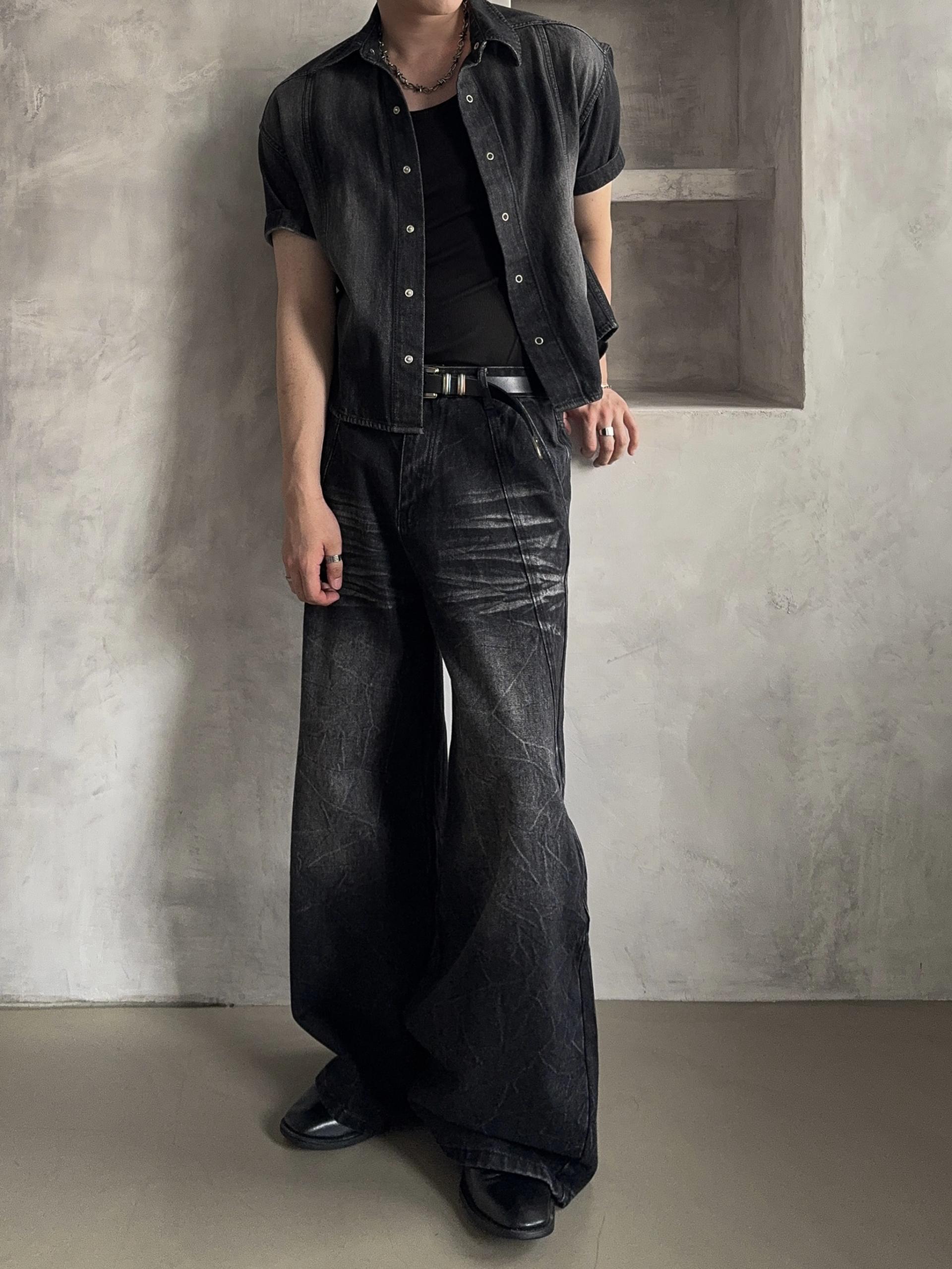 -탄탄한 데님 원단으로 제작된 와이드 팬츠
