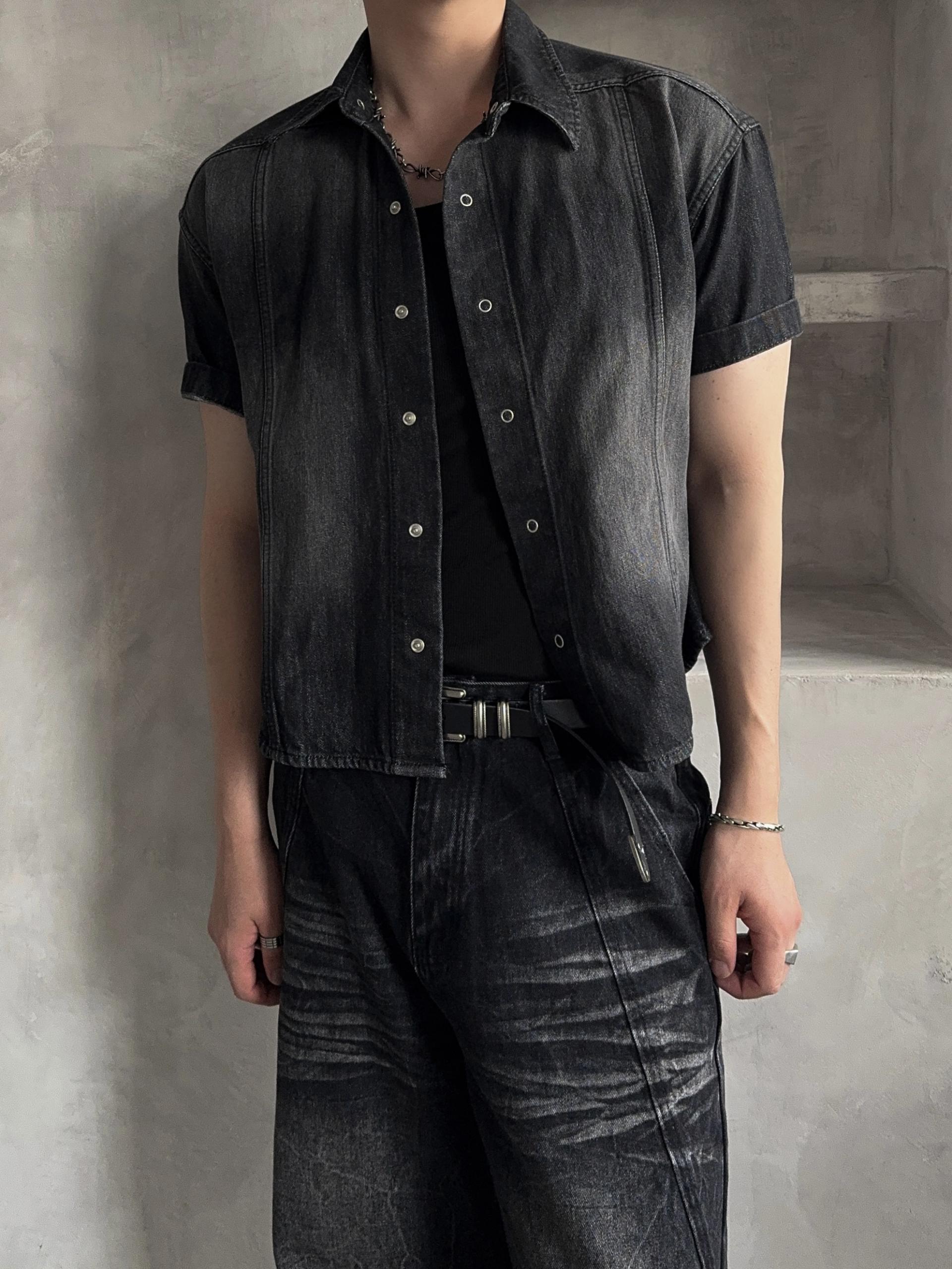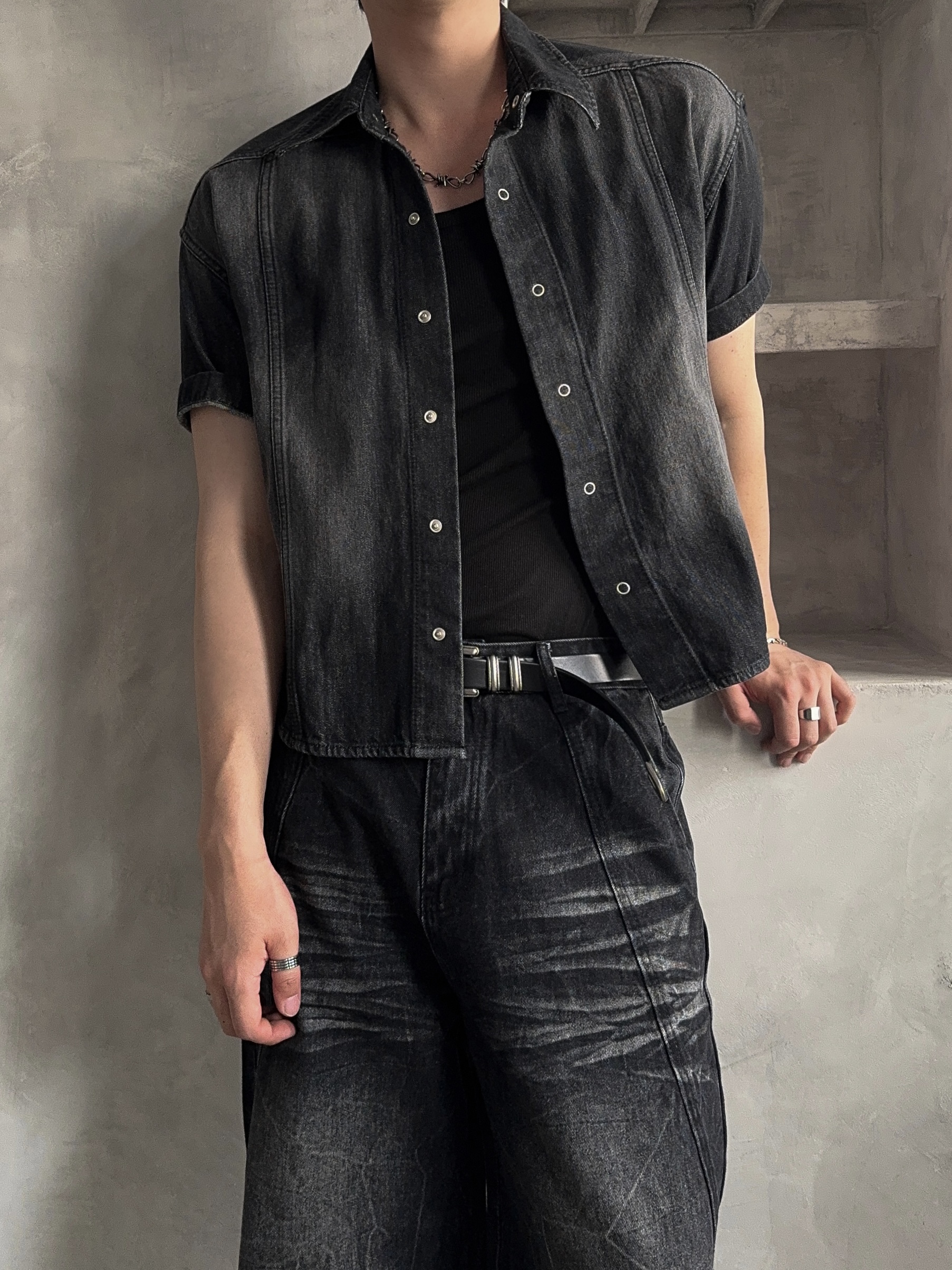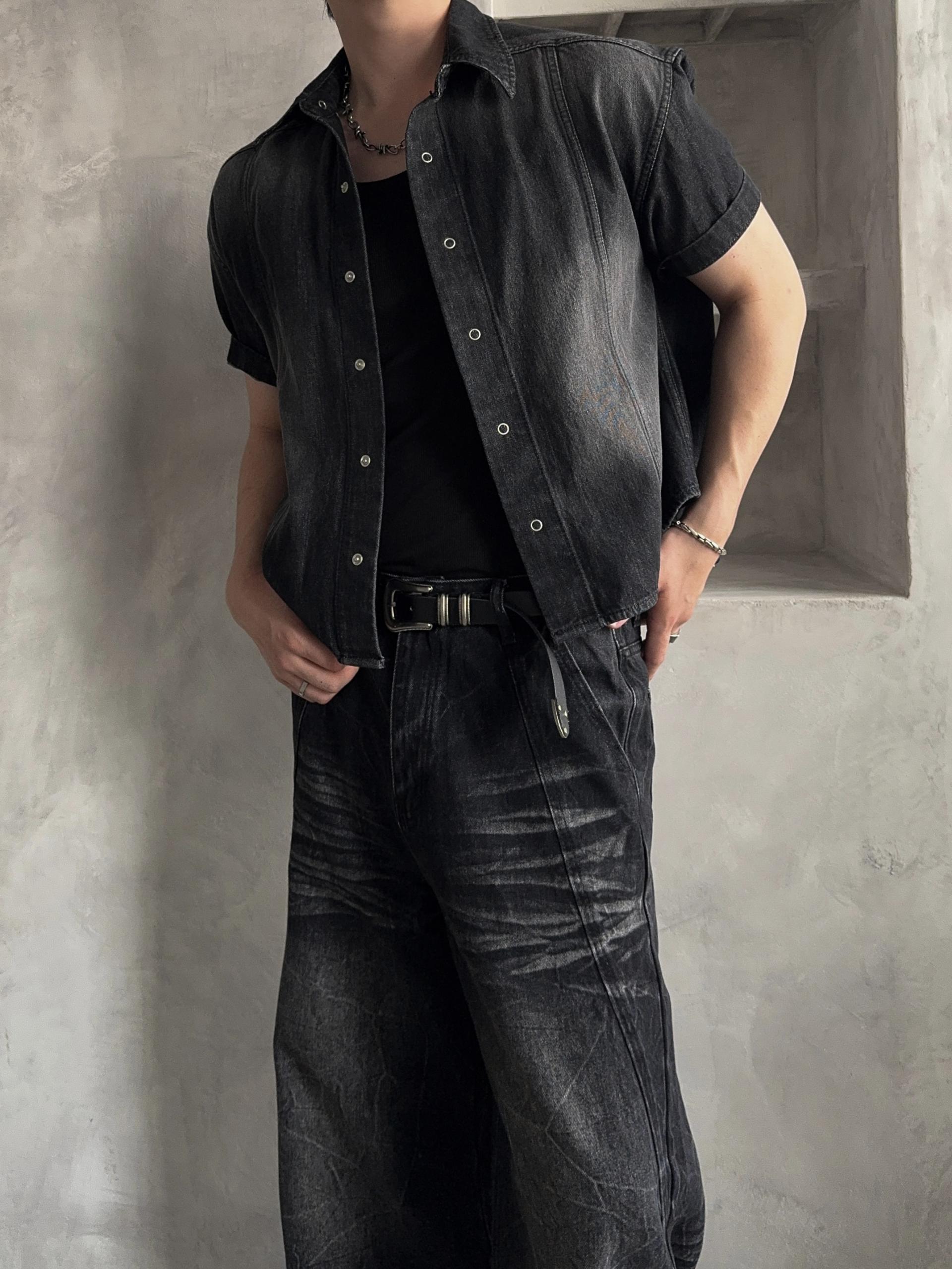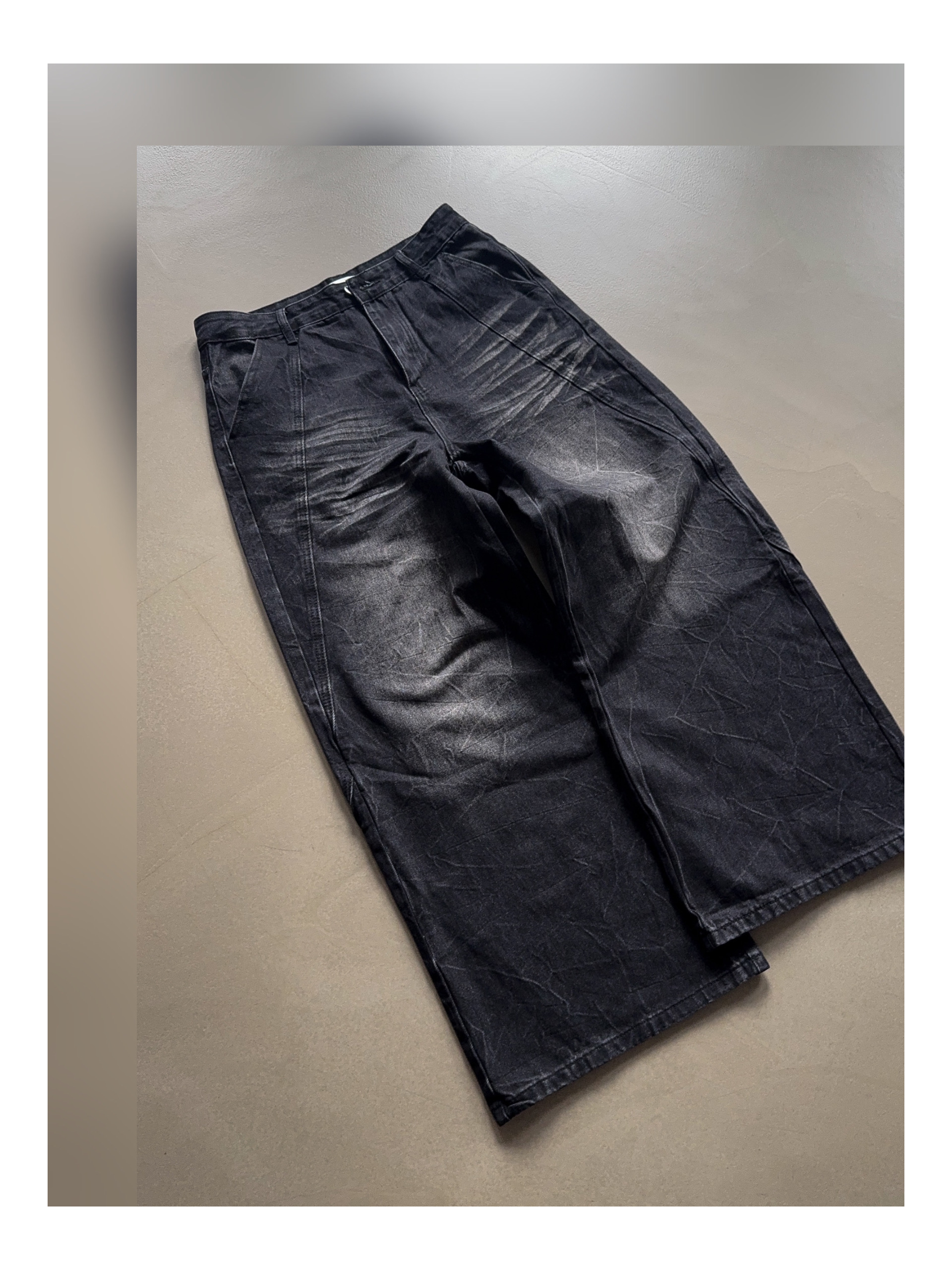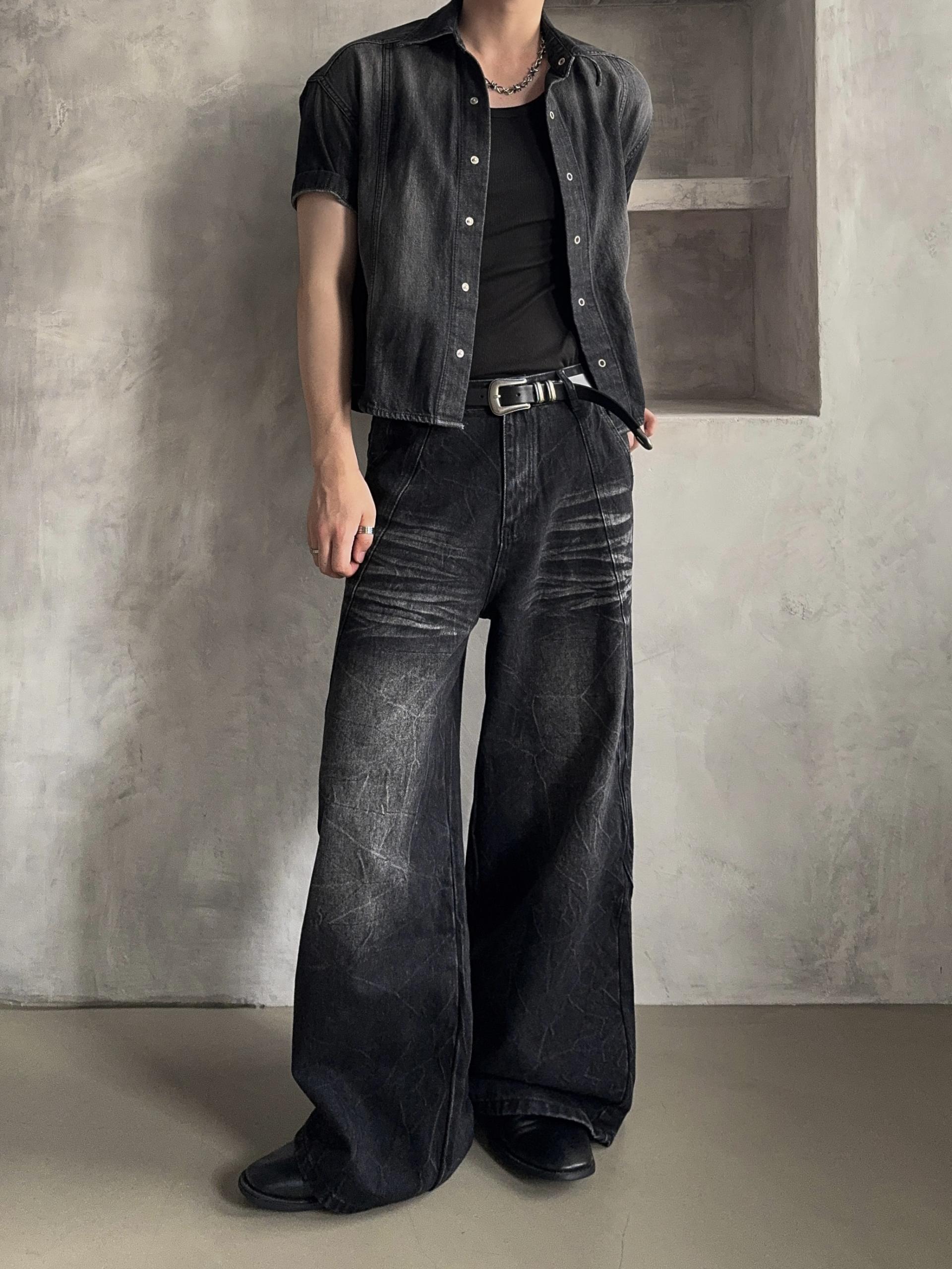 -탄탄한 데님 원단으로 제작된 와이드 팬츠