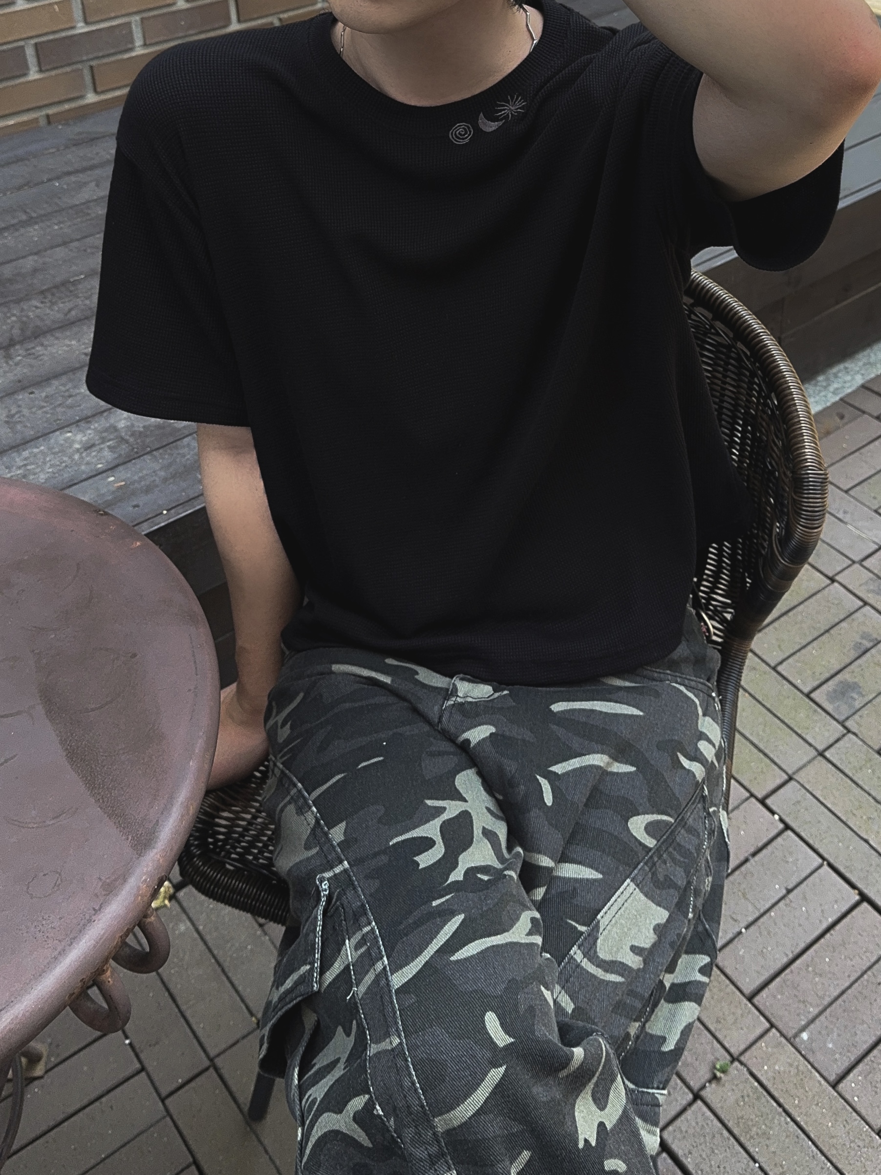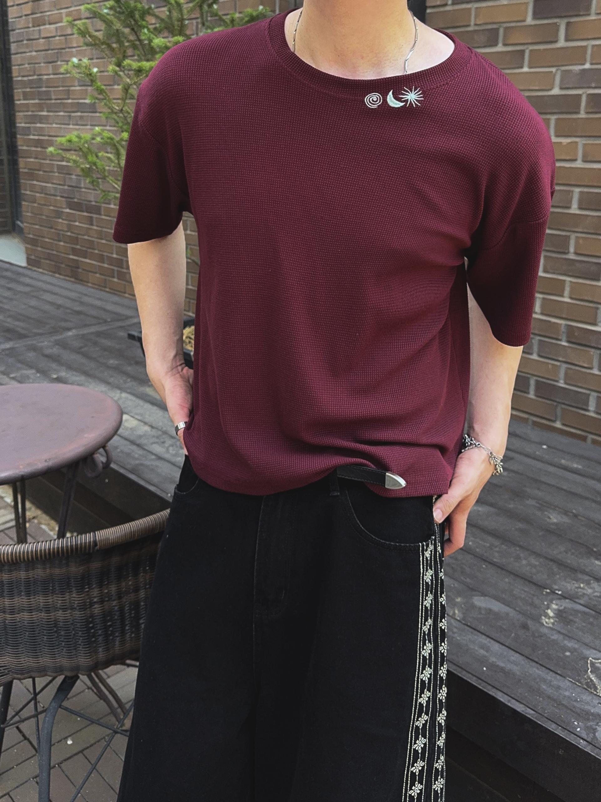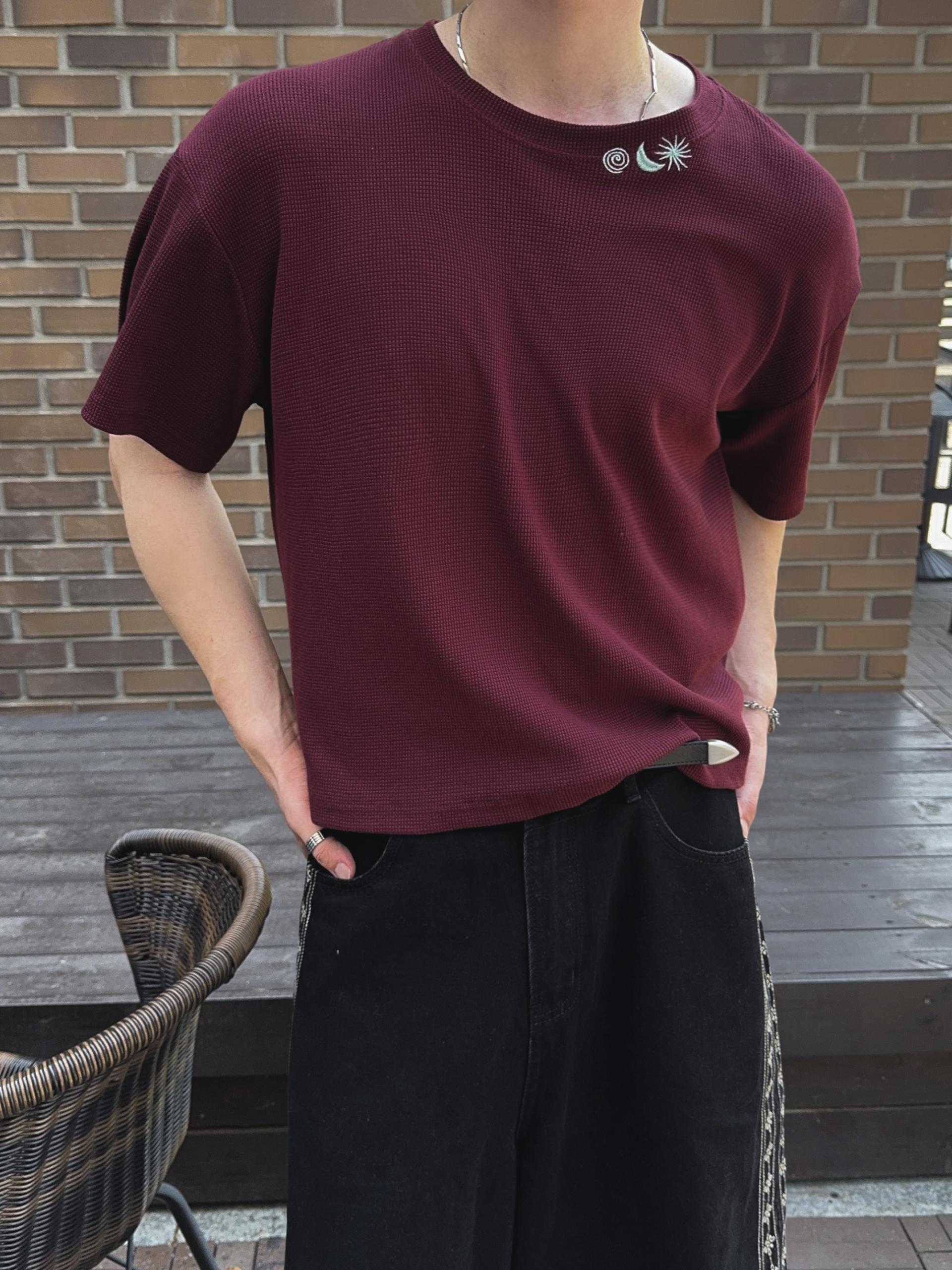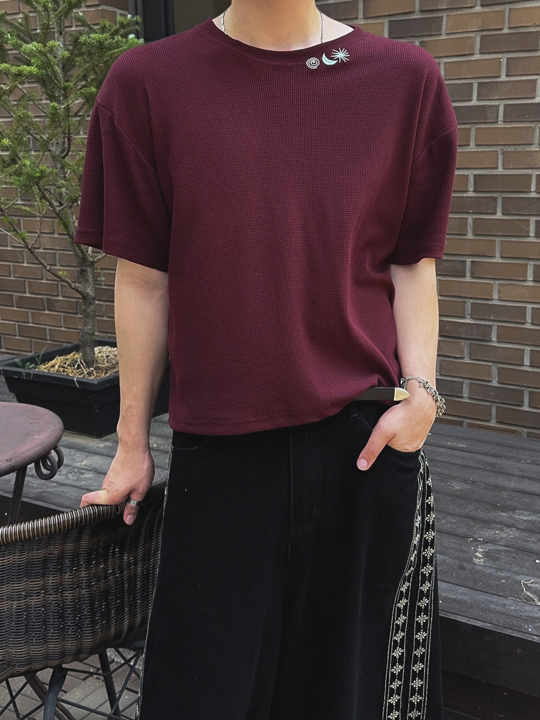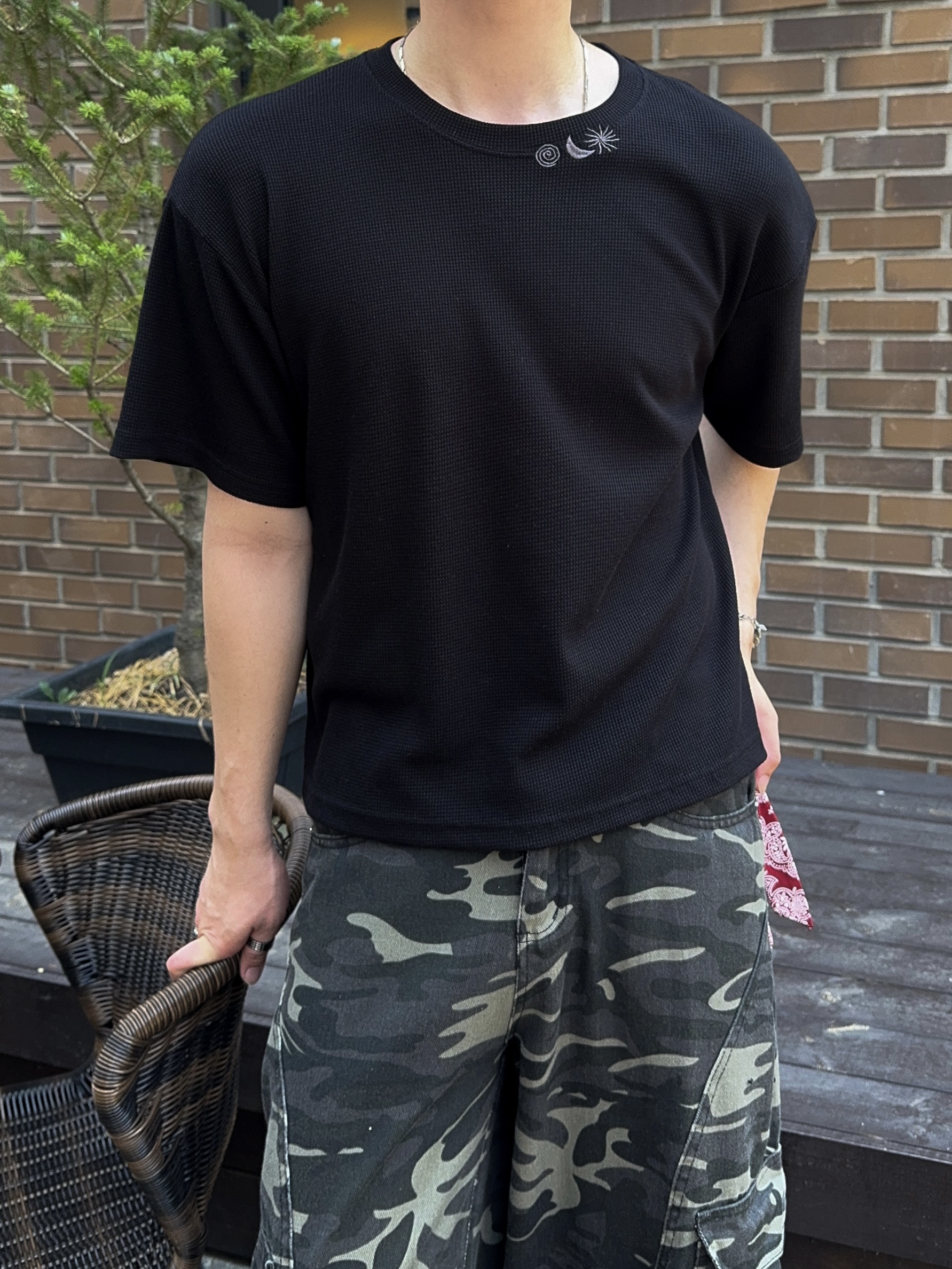 -부드러운 와플 소재로 제작된 반팔 티셔츠