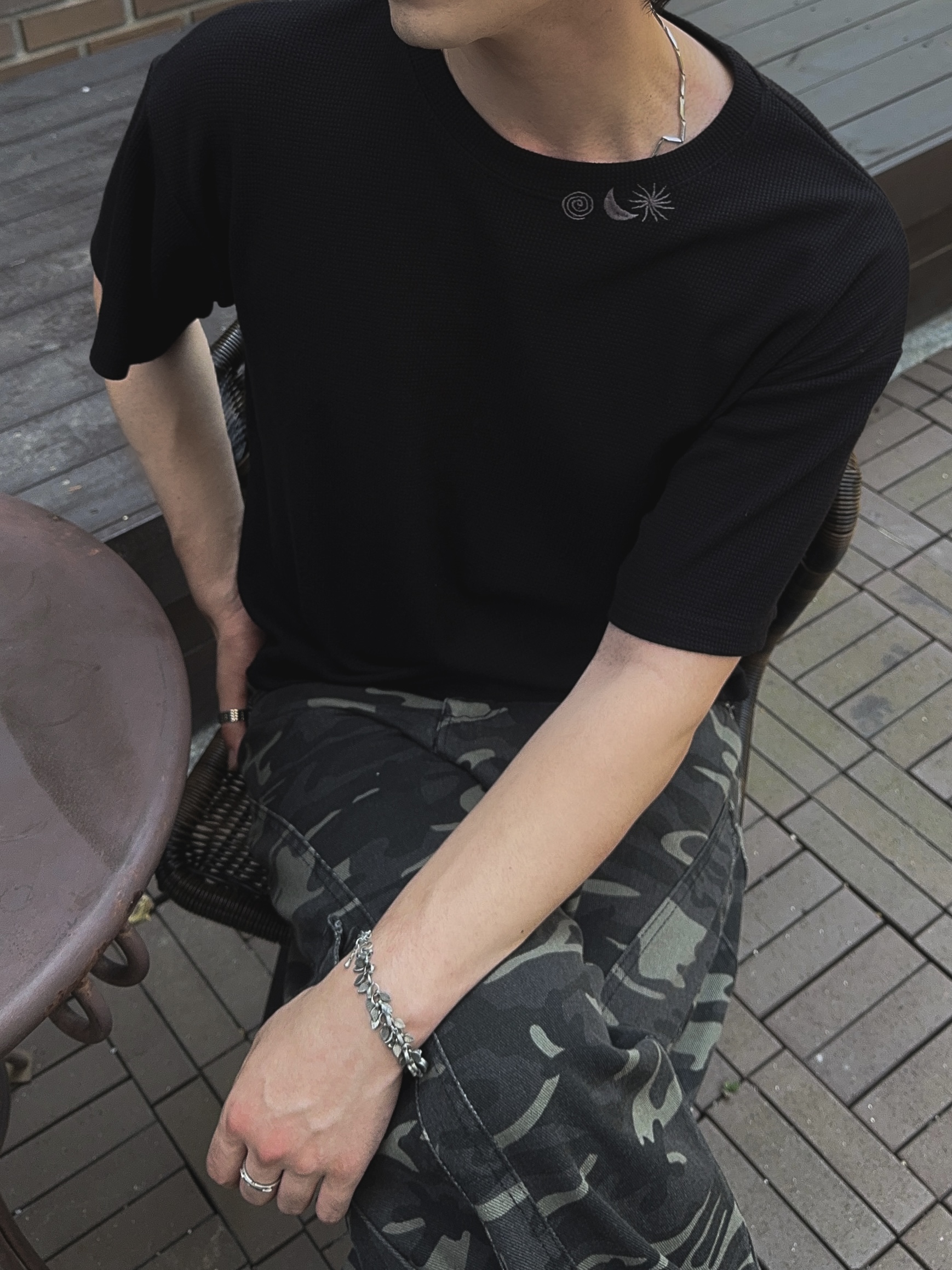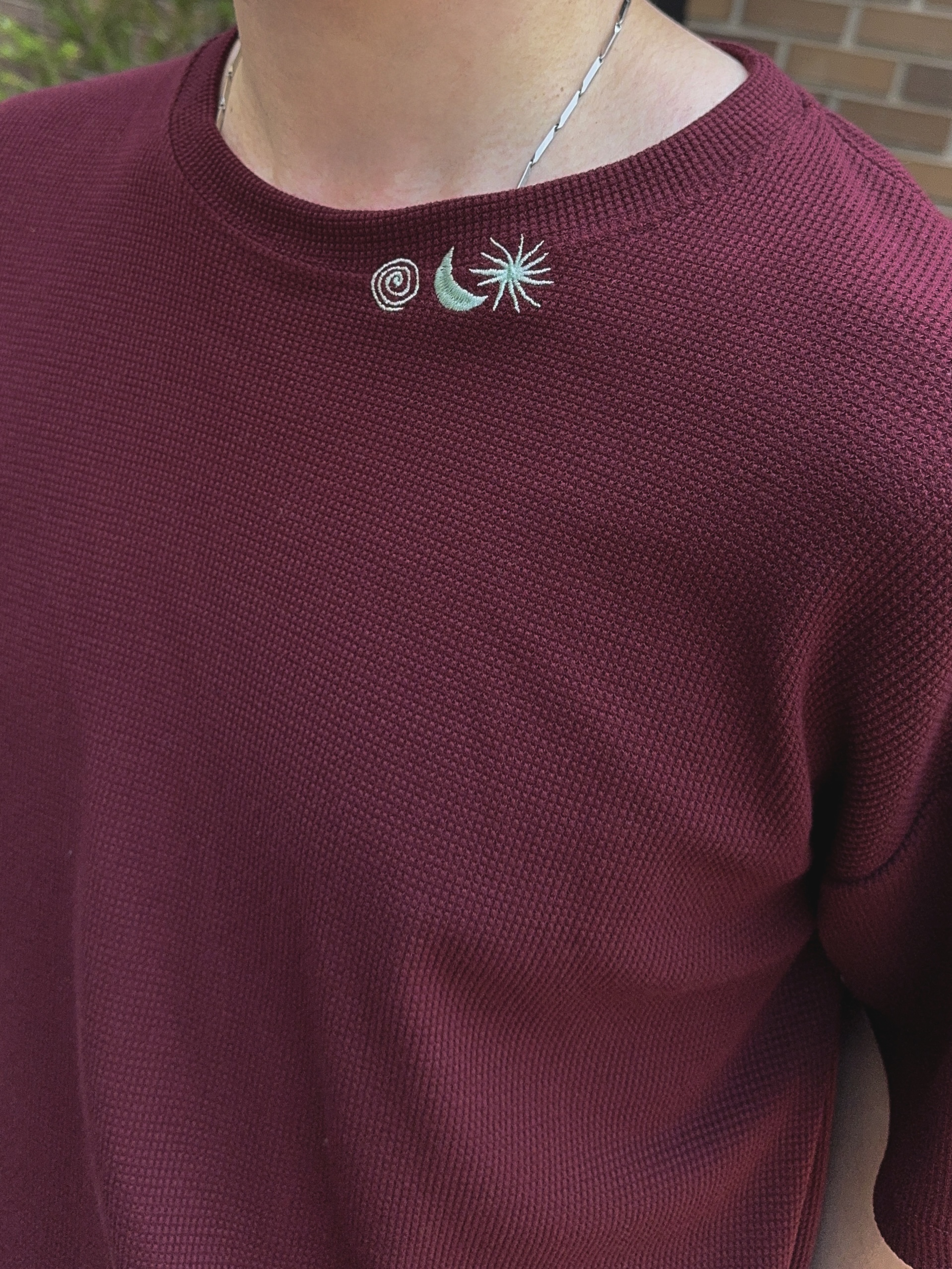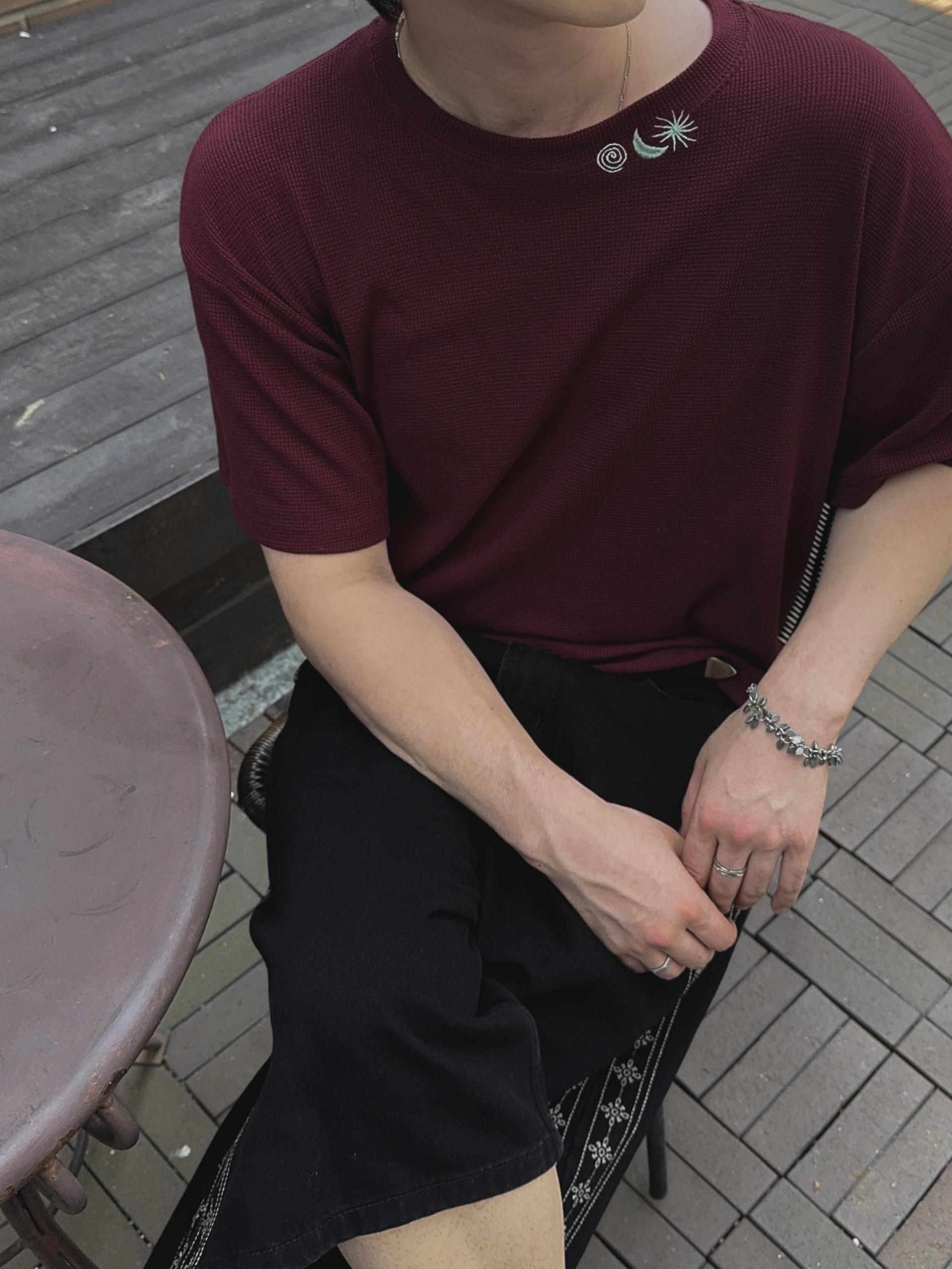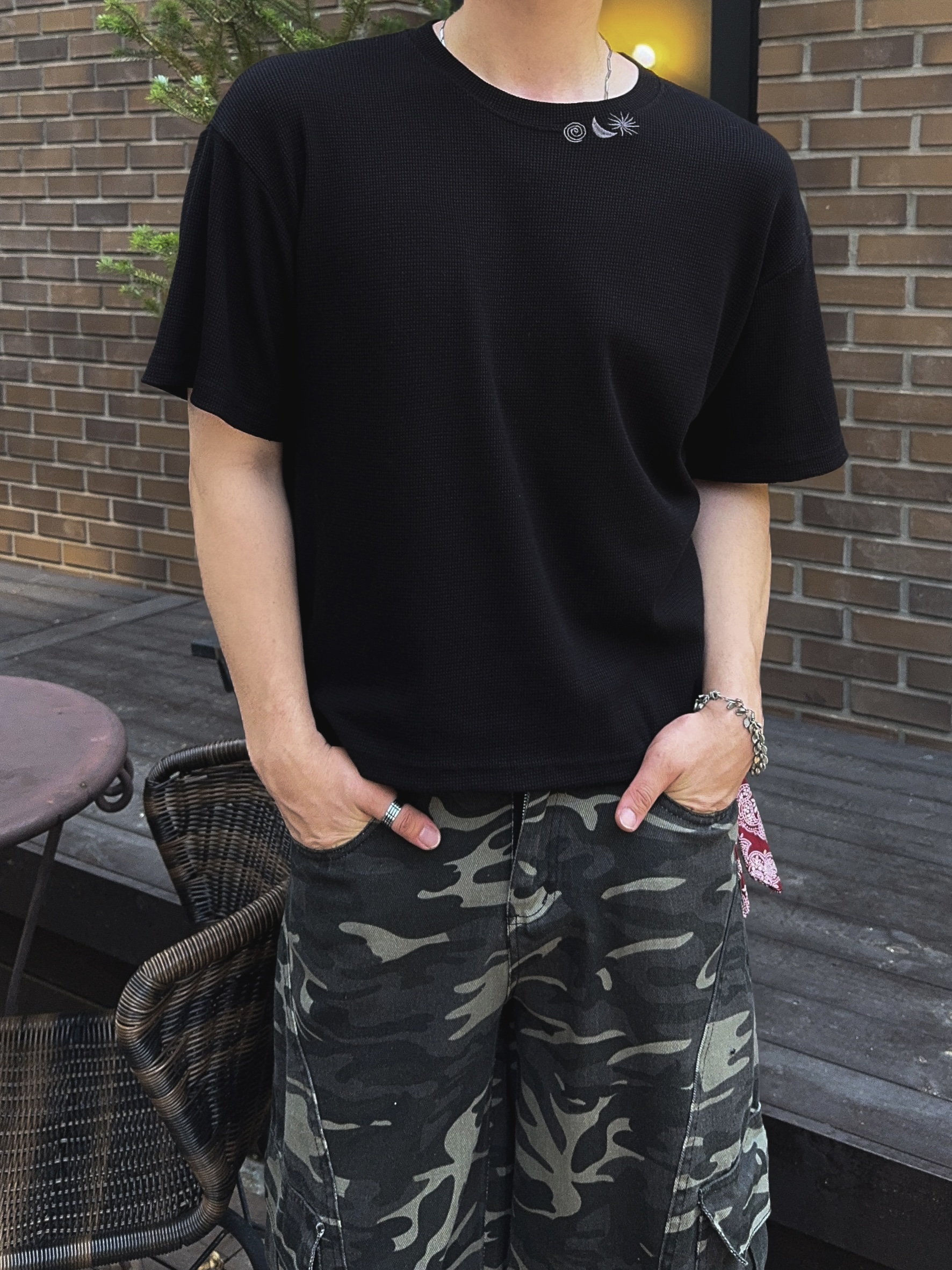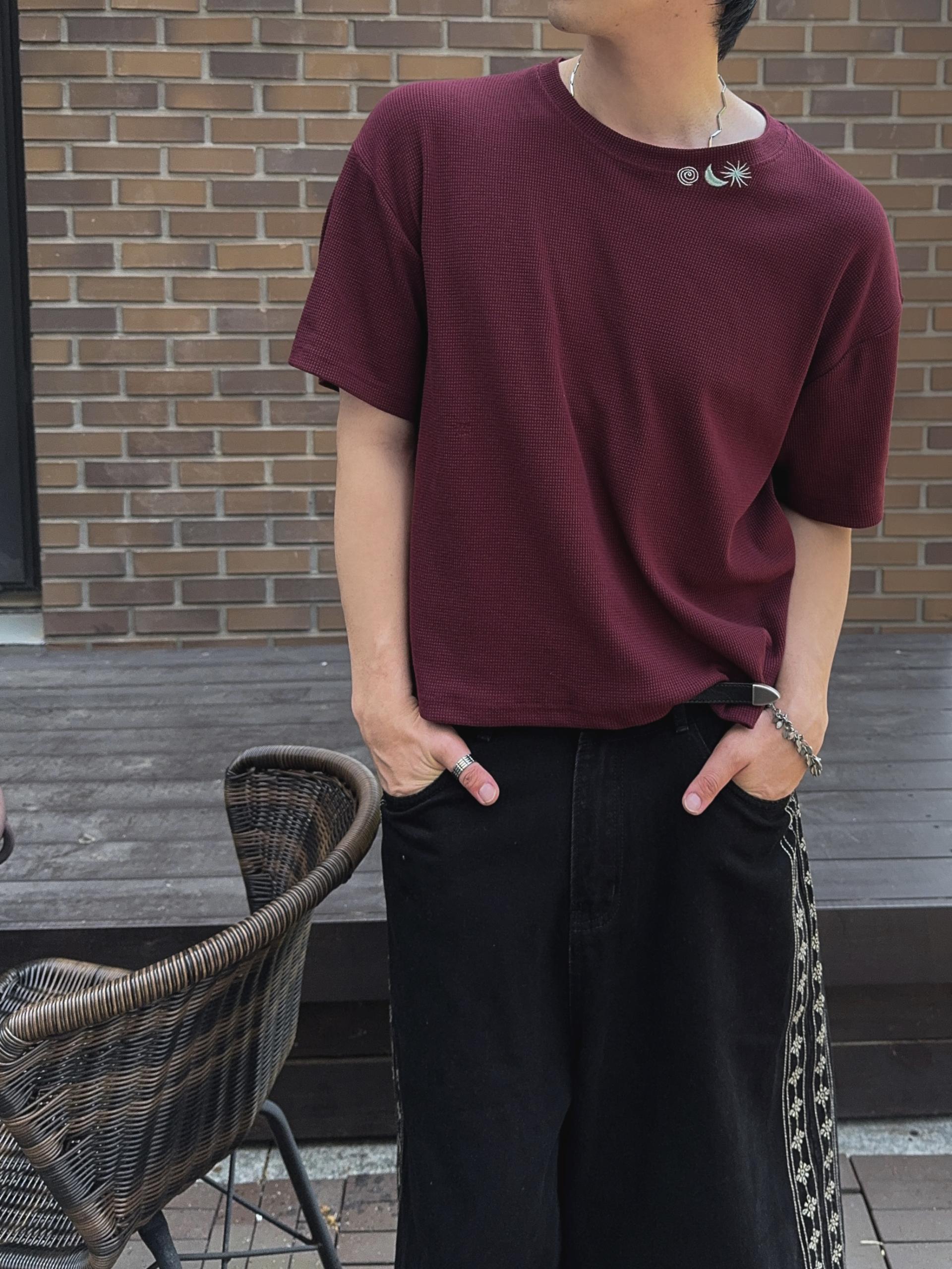 -부드러운 와플 소재로 제작된 반팔 티셔츠