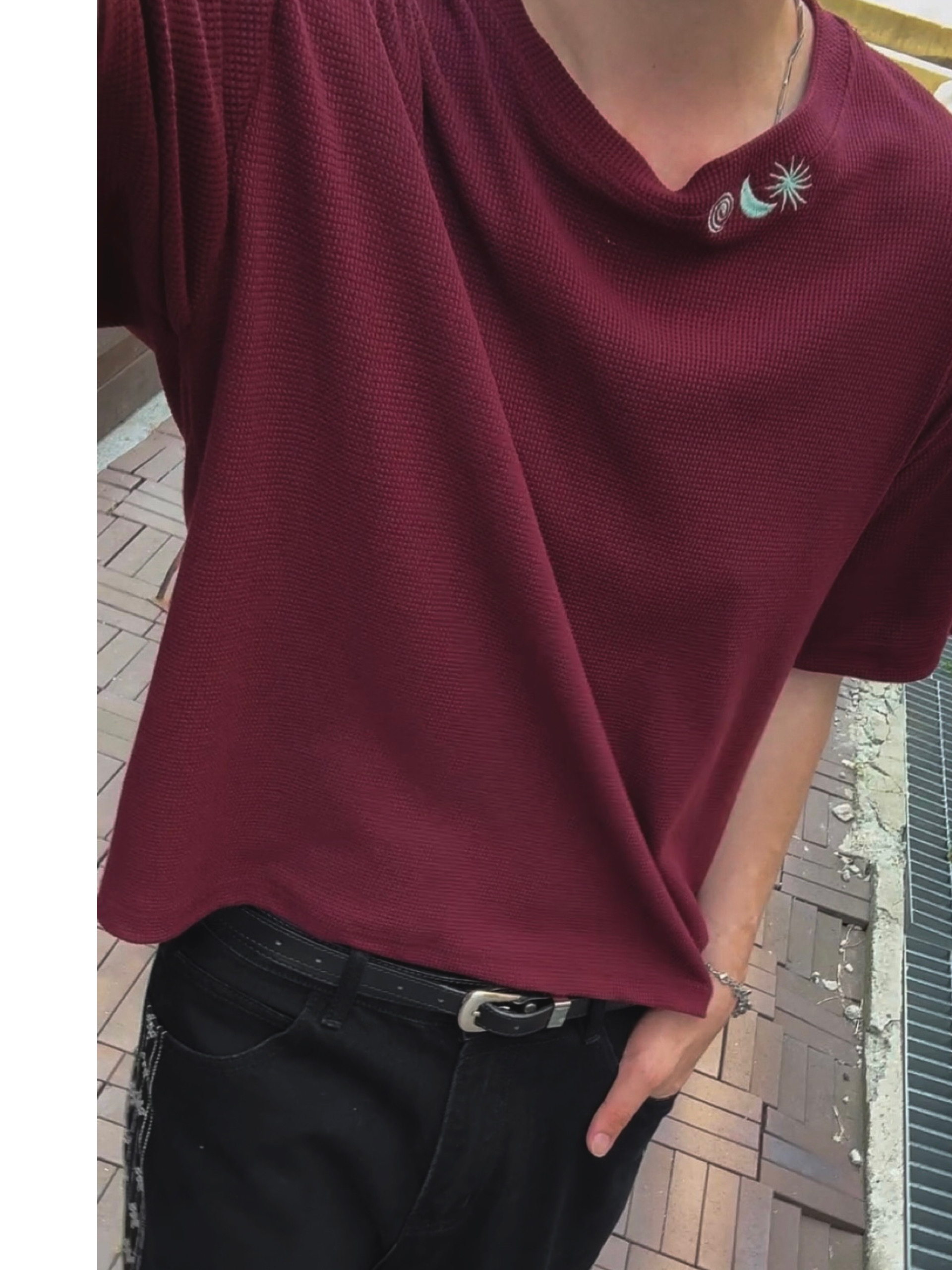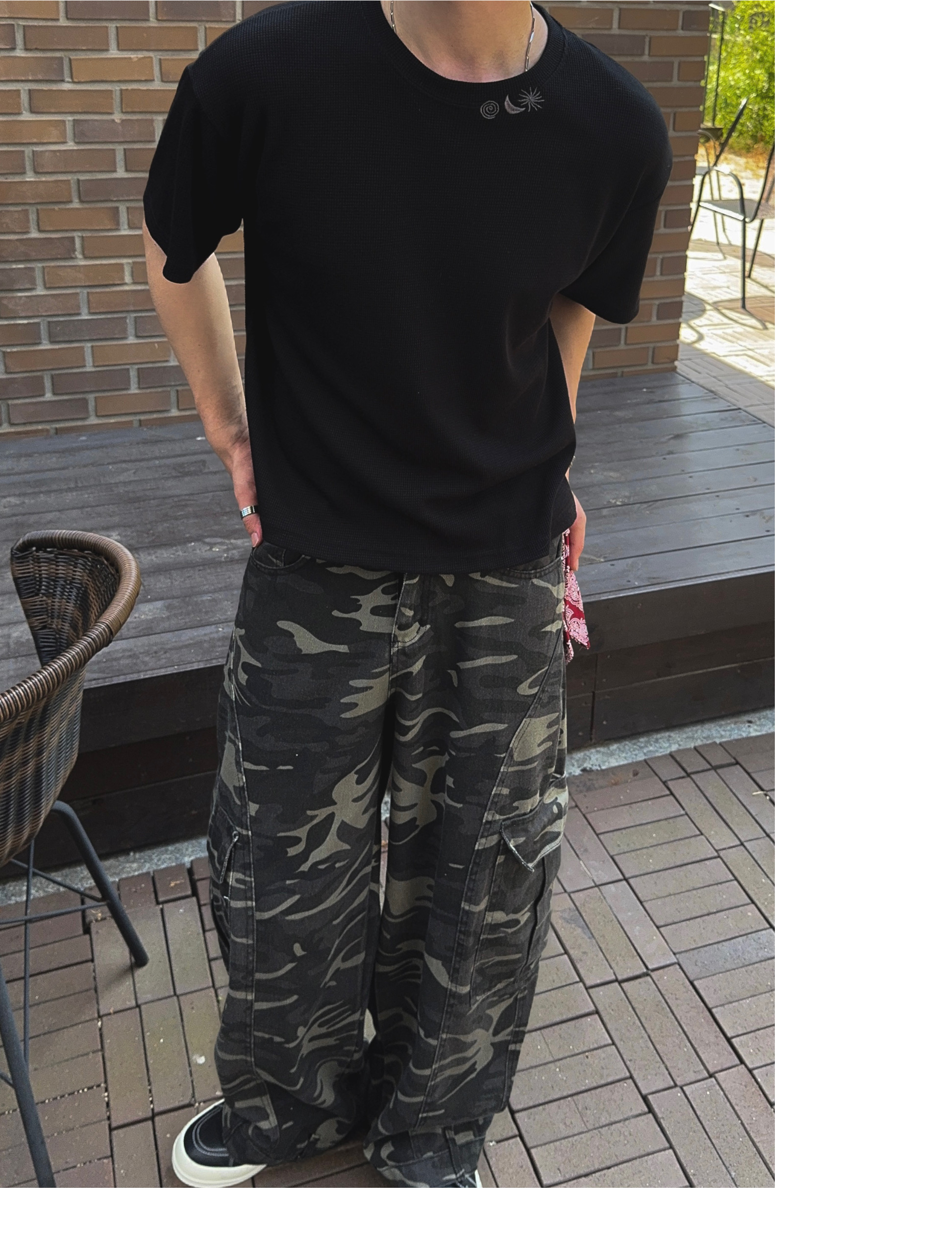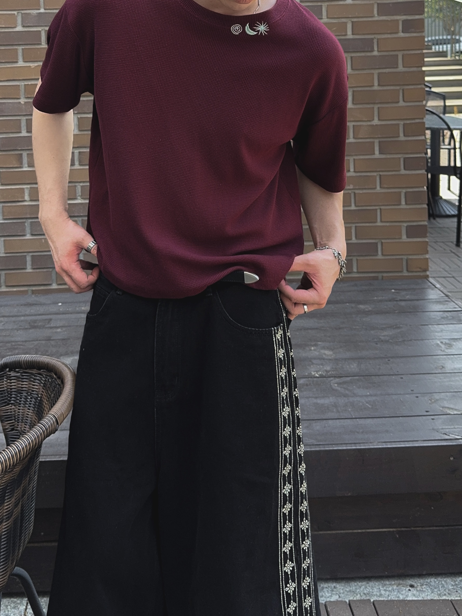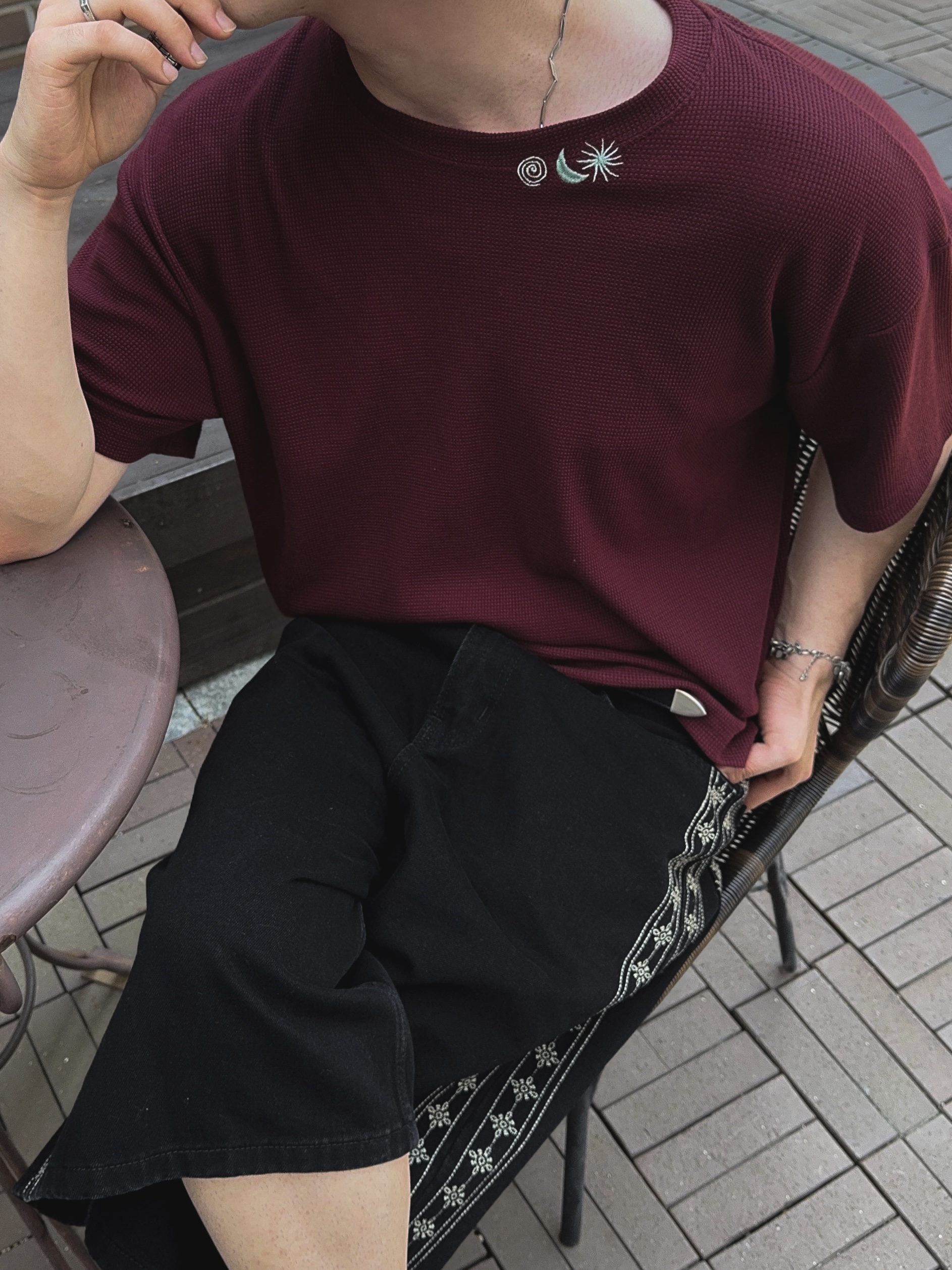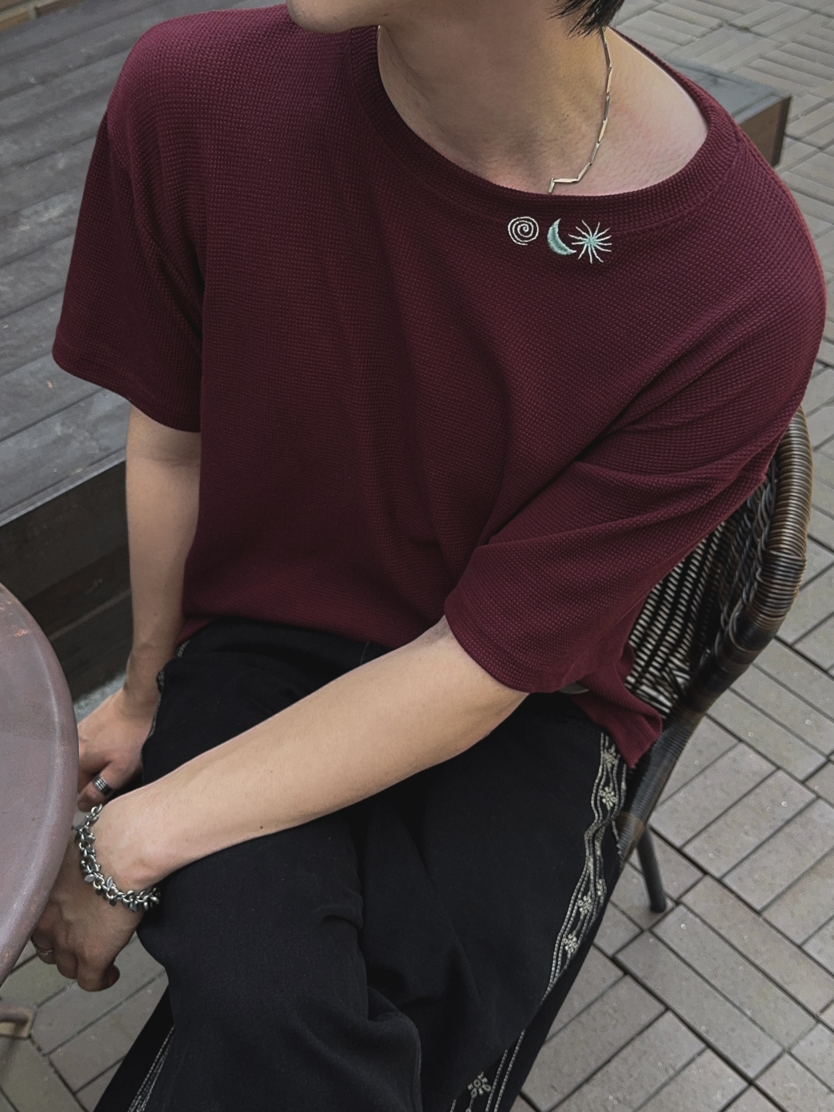 -부드러운 와플 소재로 제작된 반팔 티셔츠