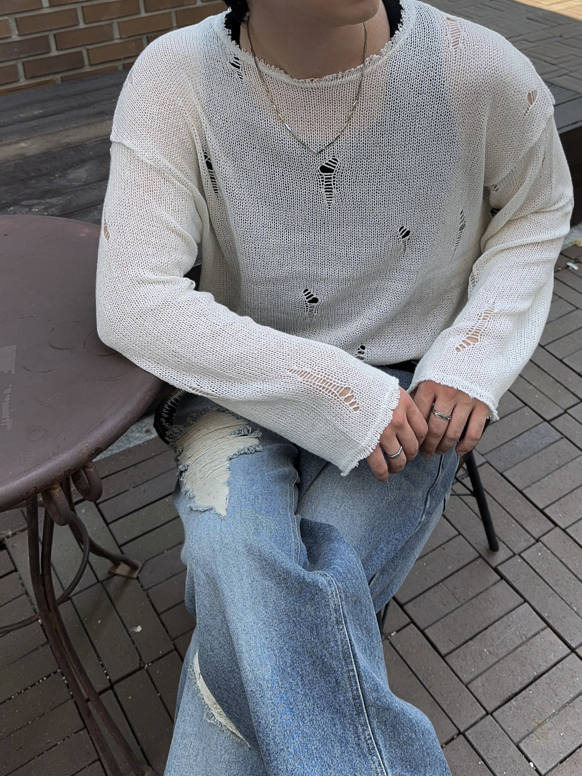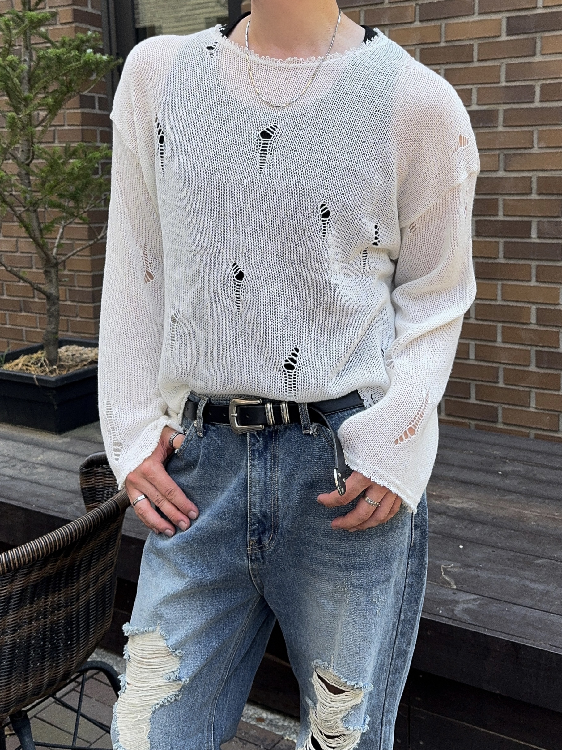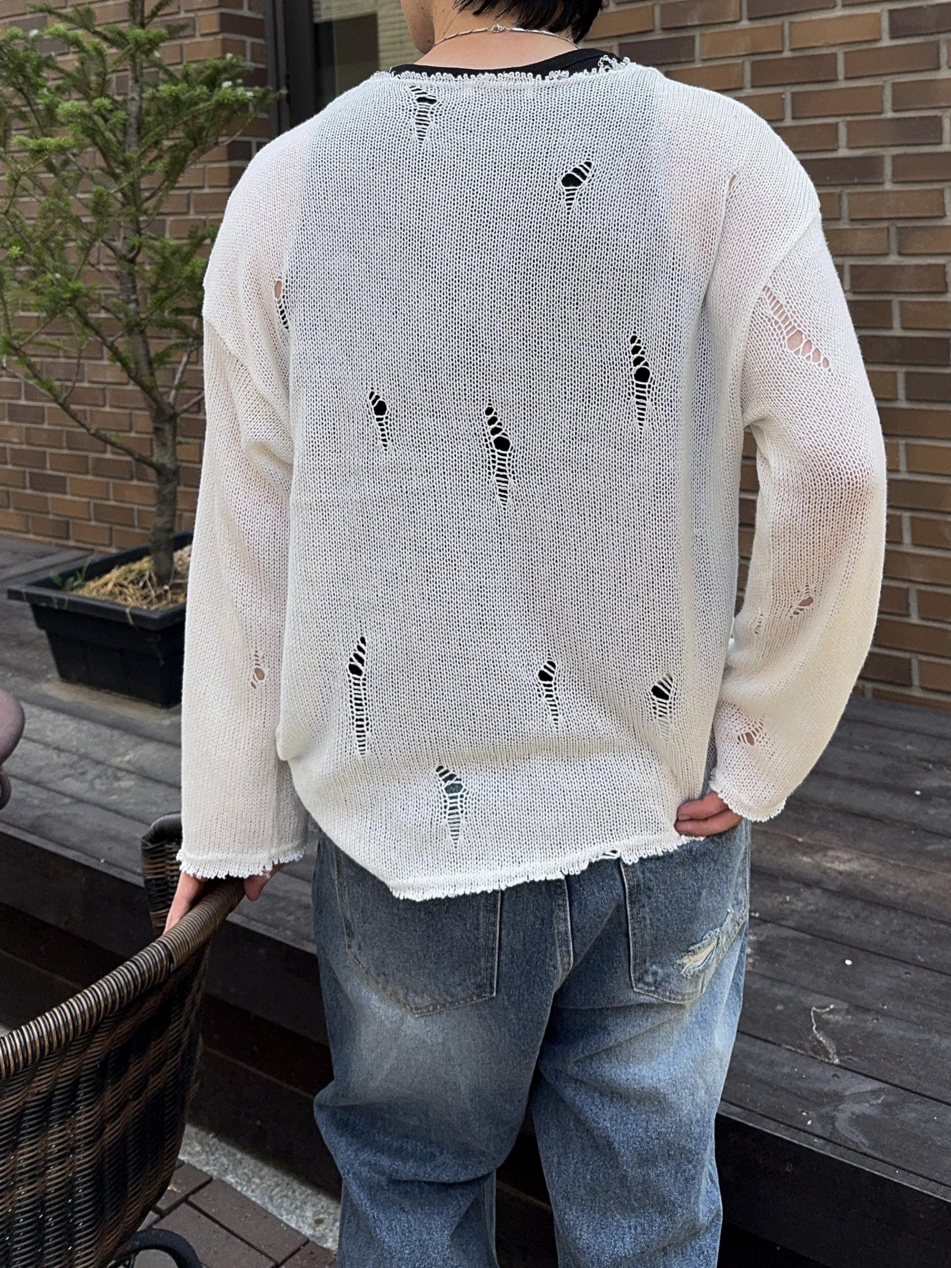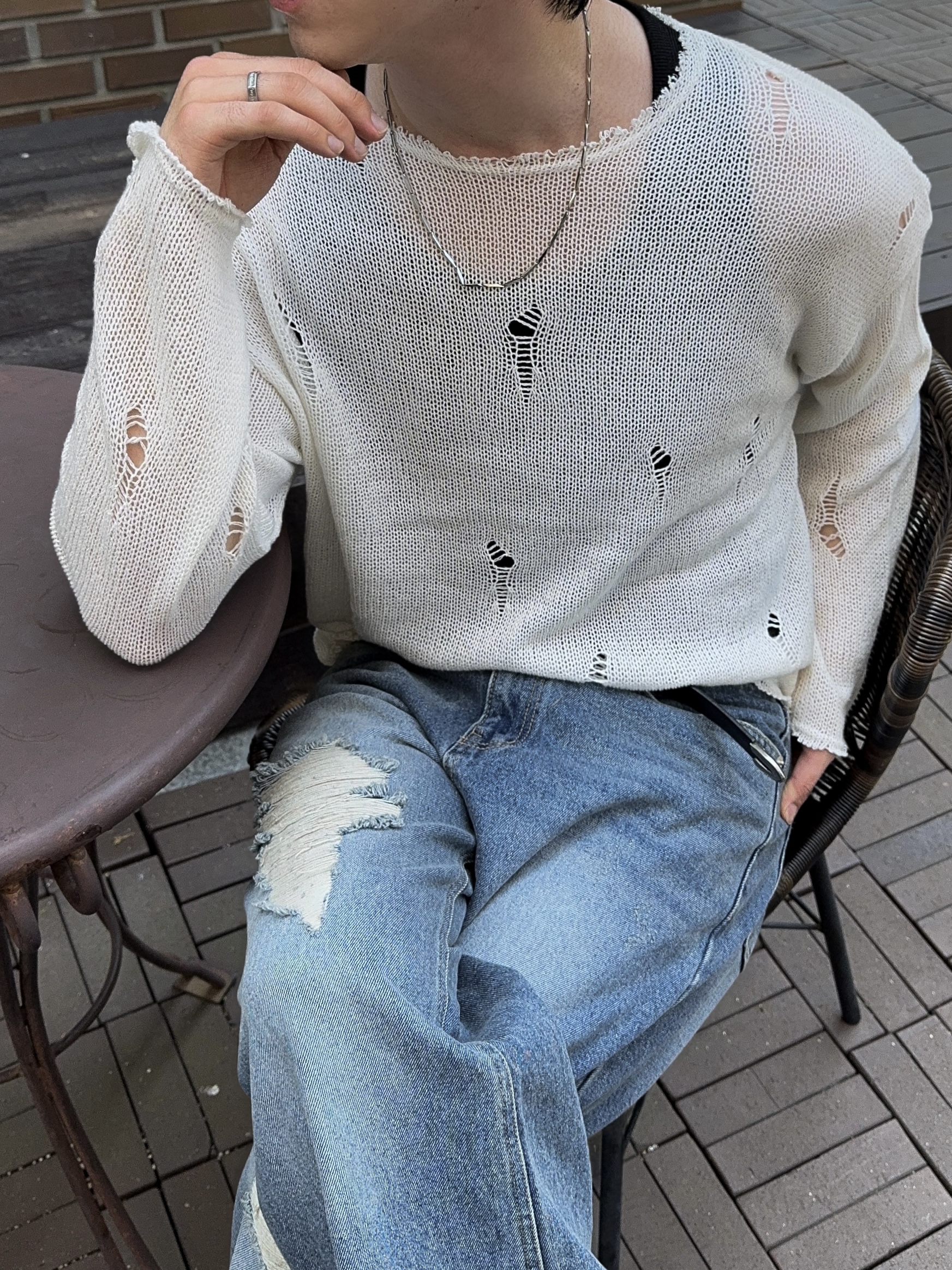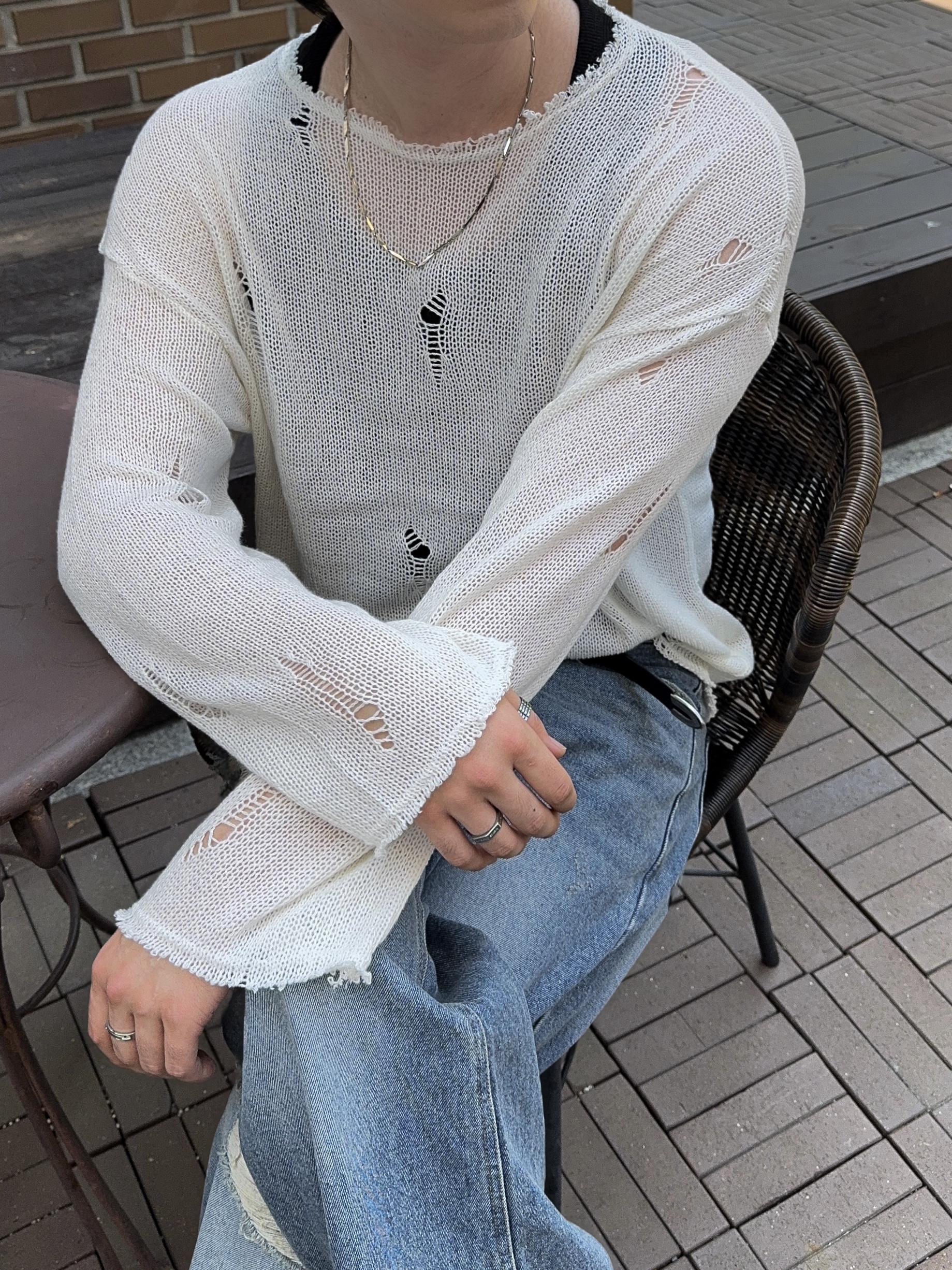 -쾌적한 아웃핏이 돋보이는 데미지 시스루 썸머 니트