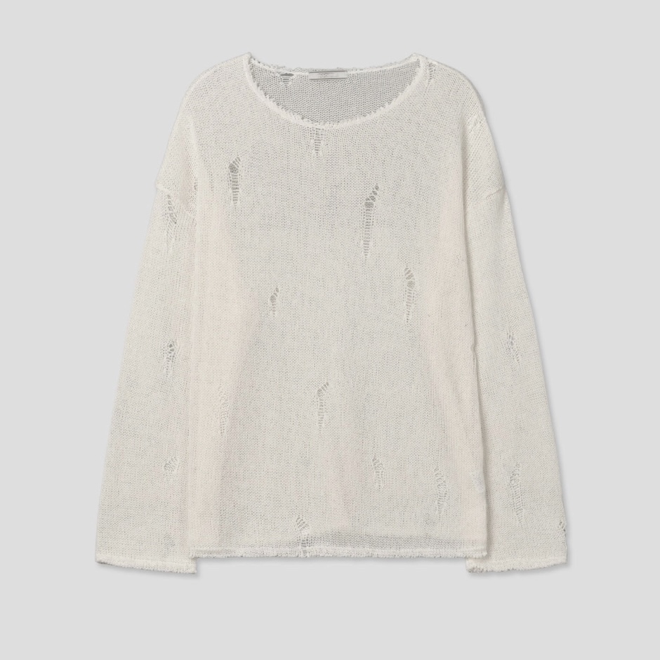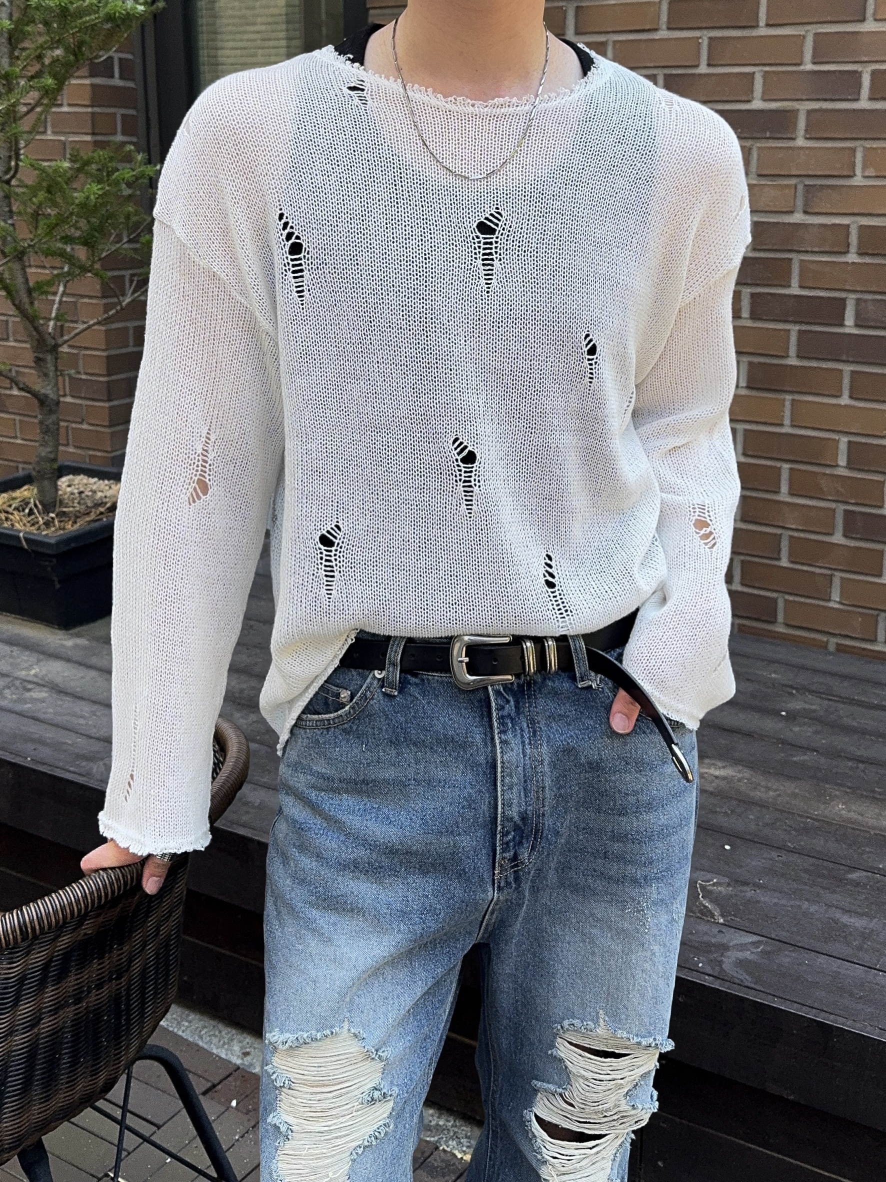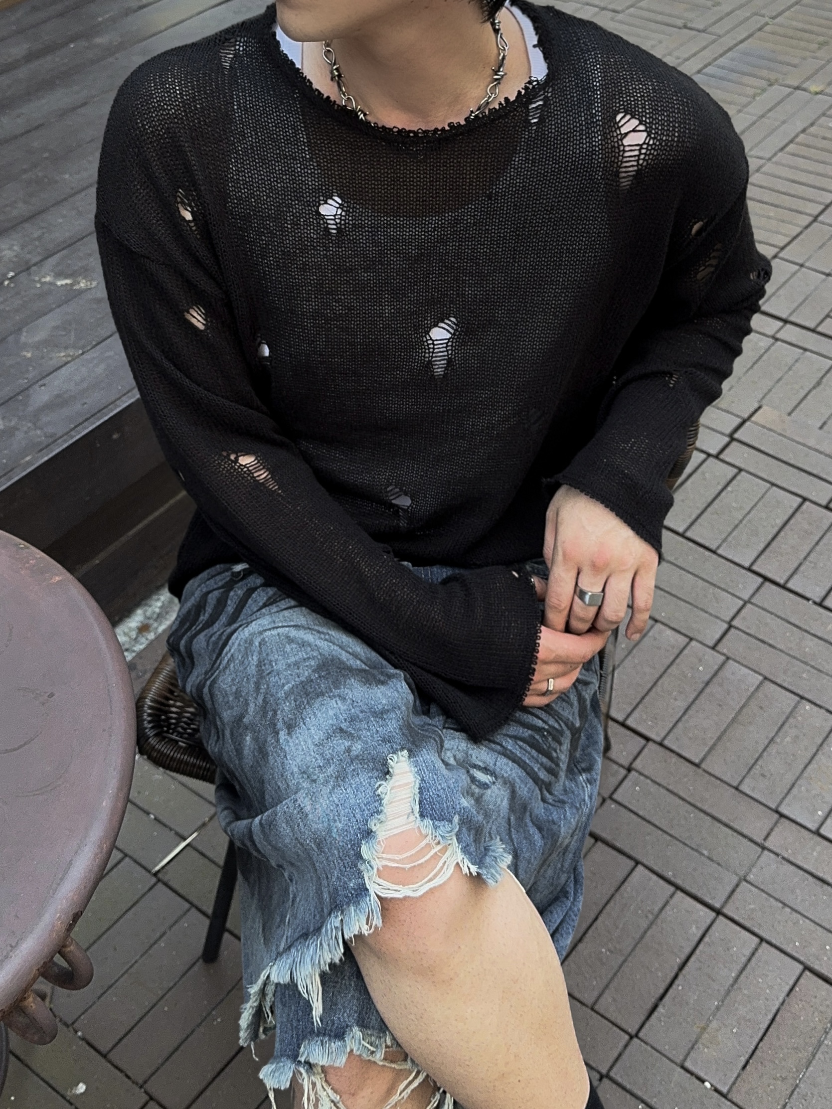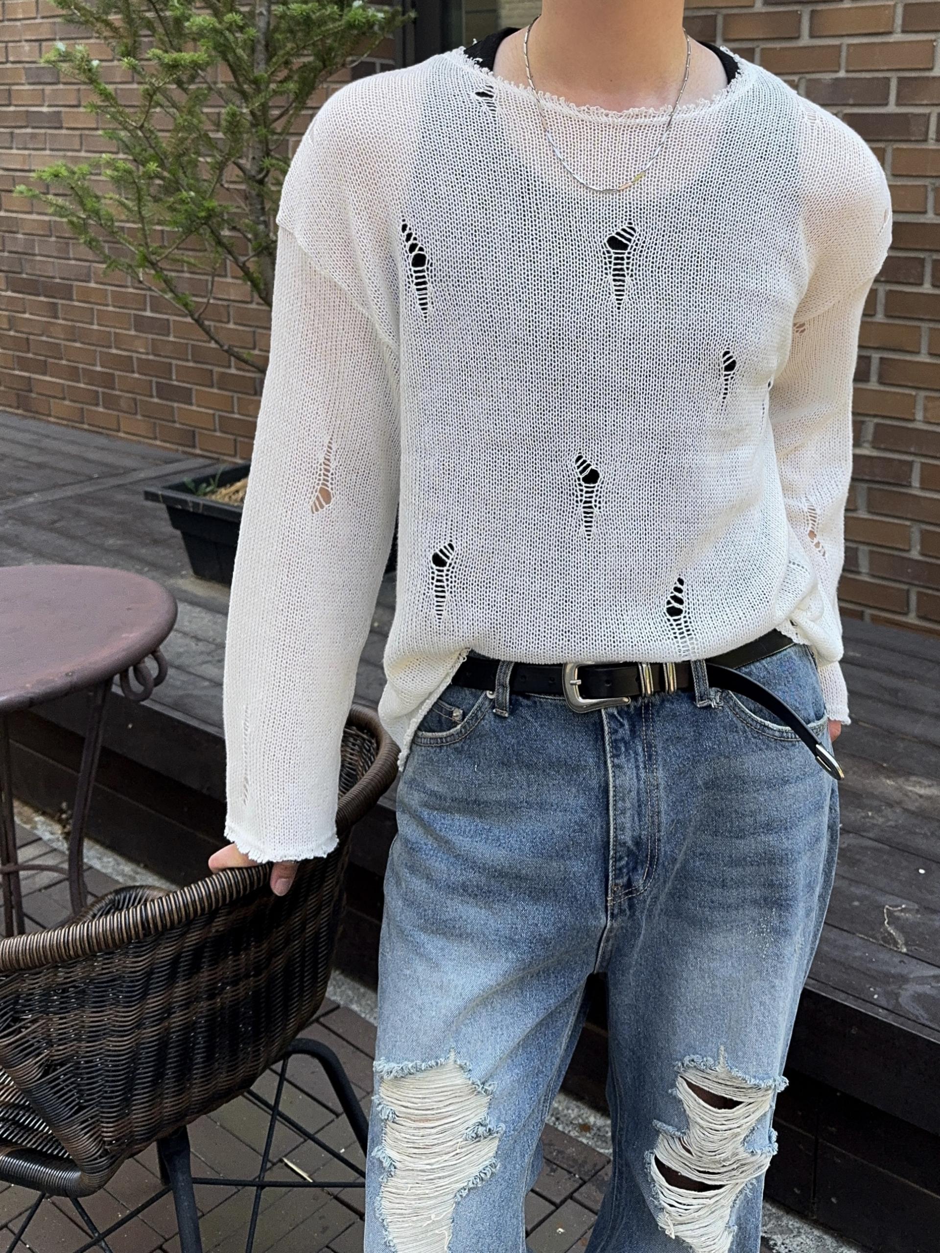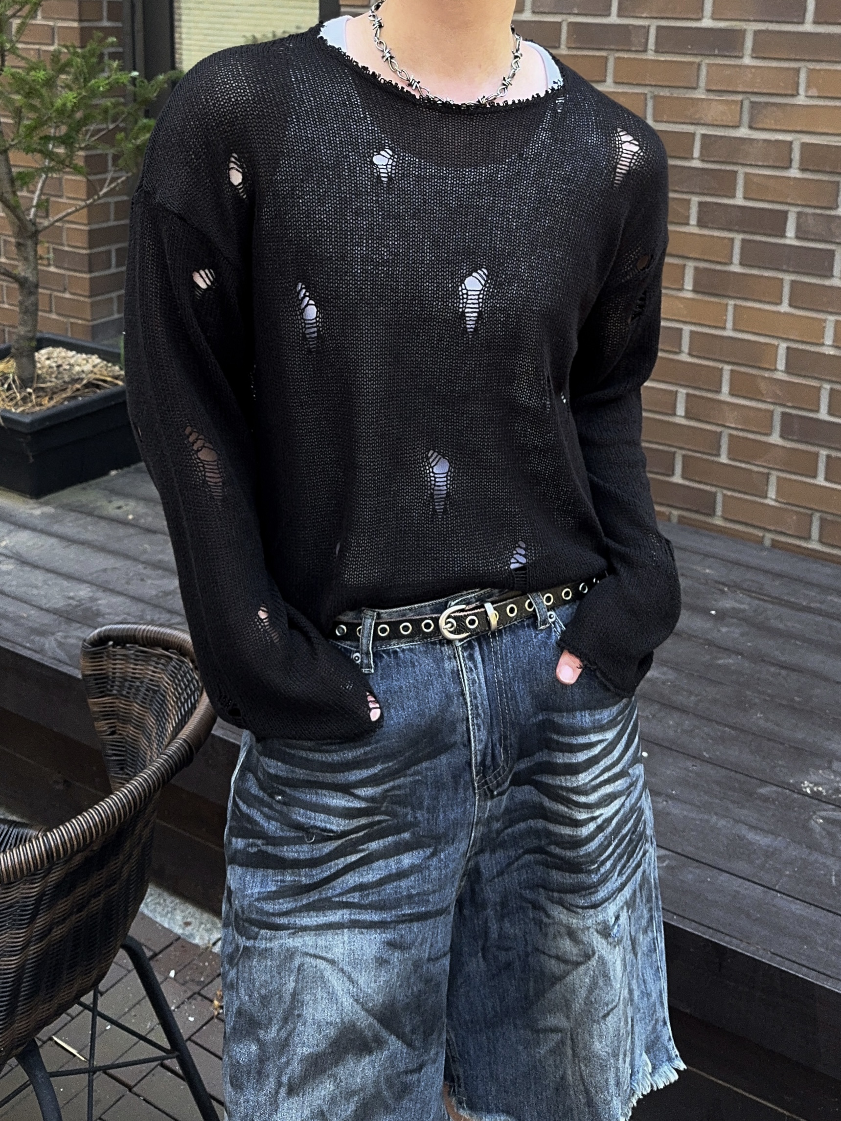 -쾌적한 아웃핏이 돋보이는 데미지 시스루 썸머 니트