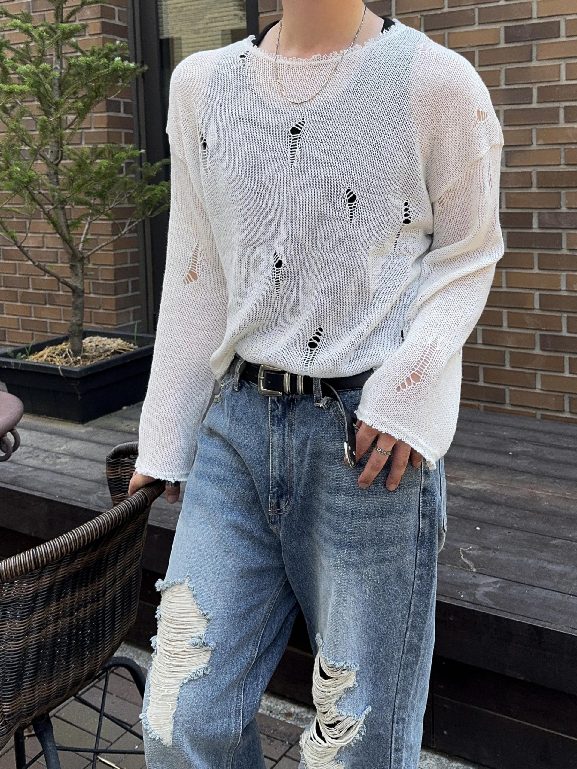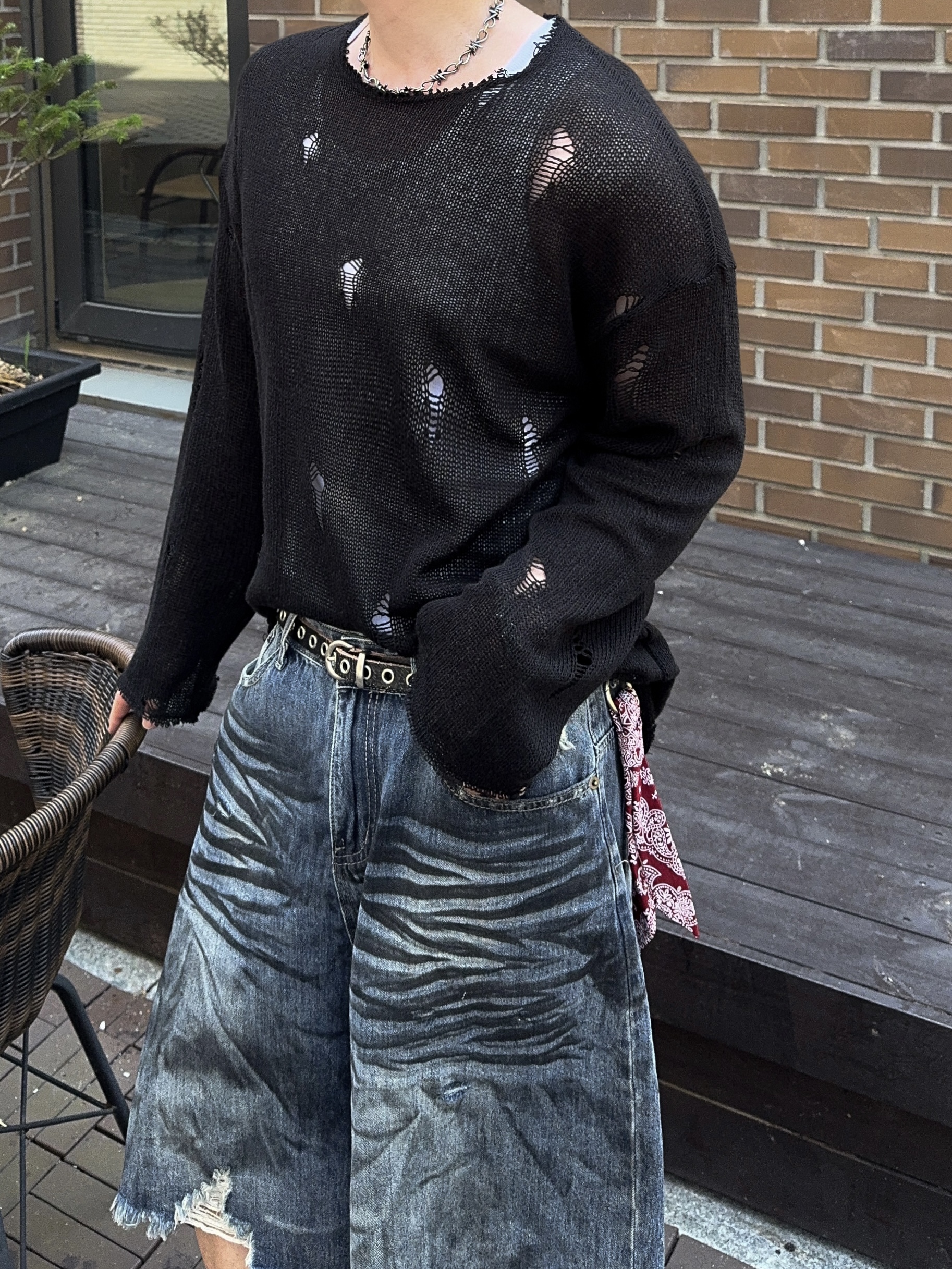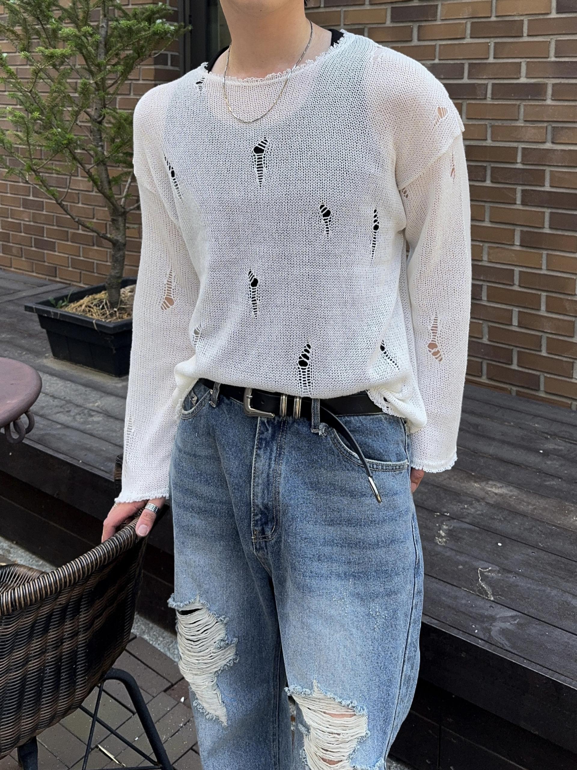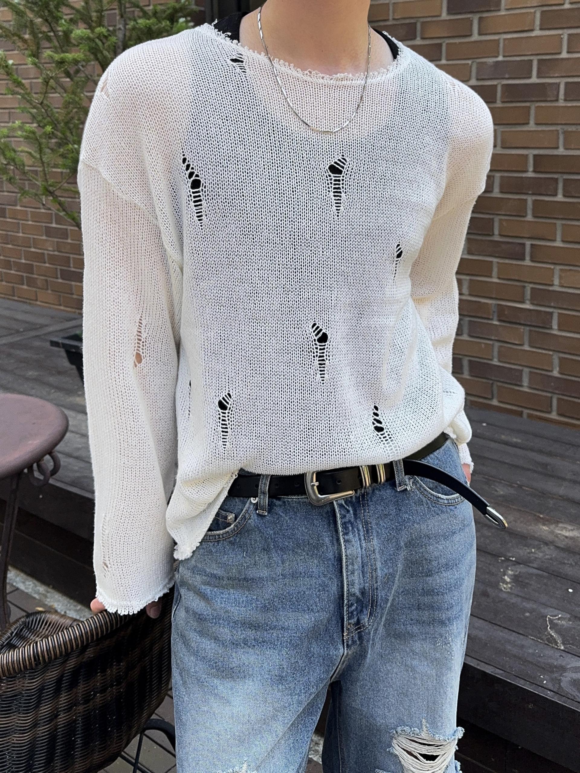 -쾌적한 아웃핏이 돋보이는 데미지 시스루 썸머 니트