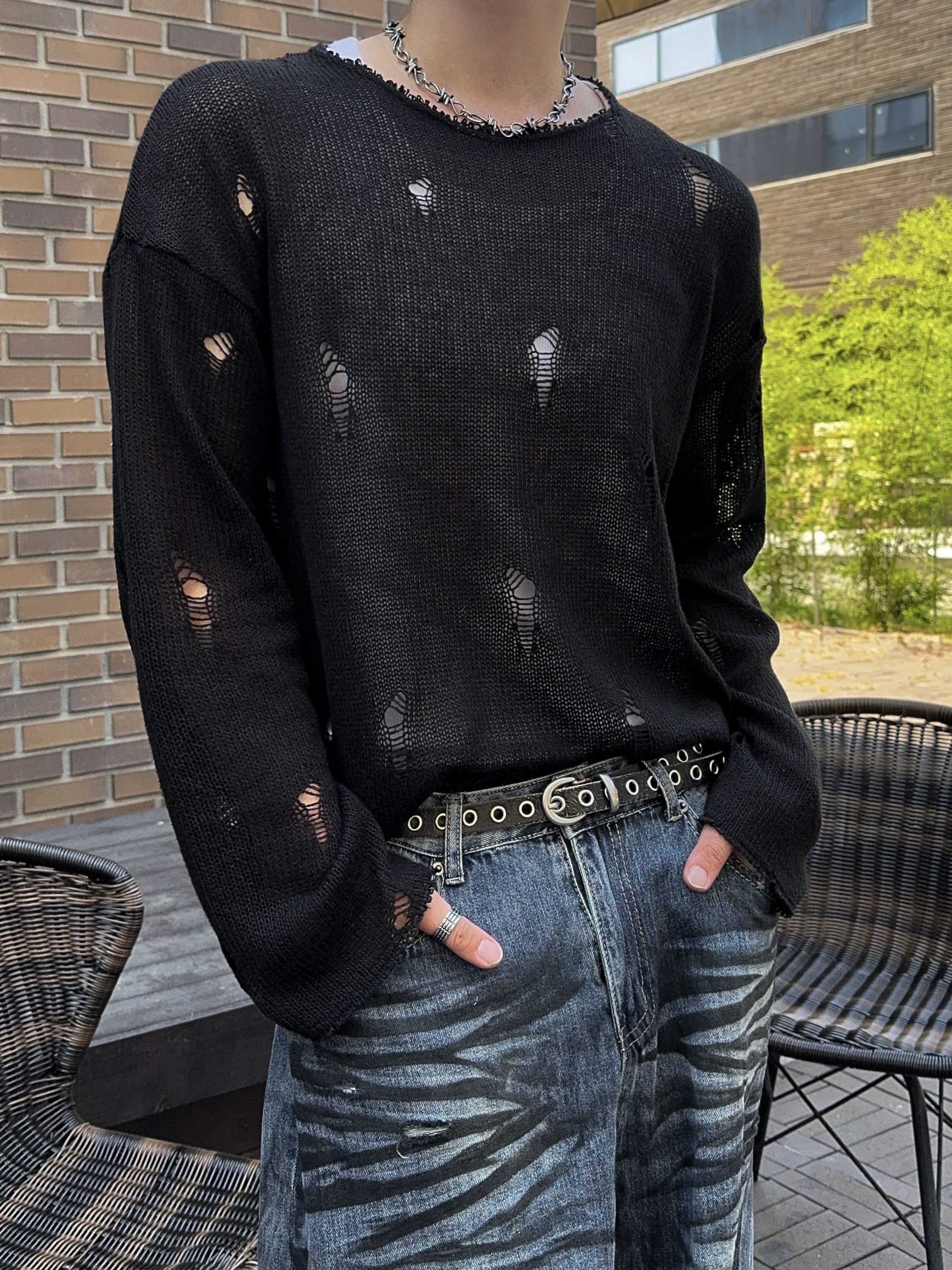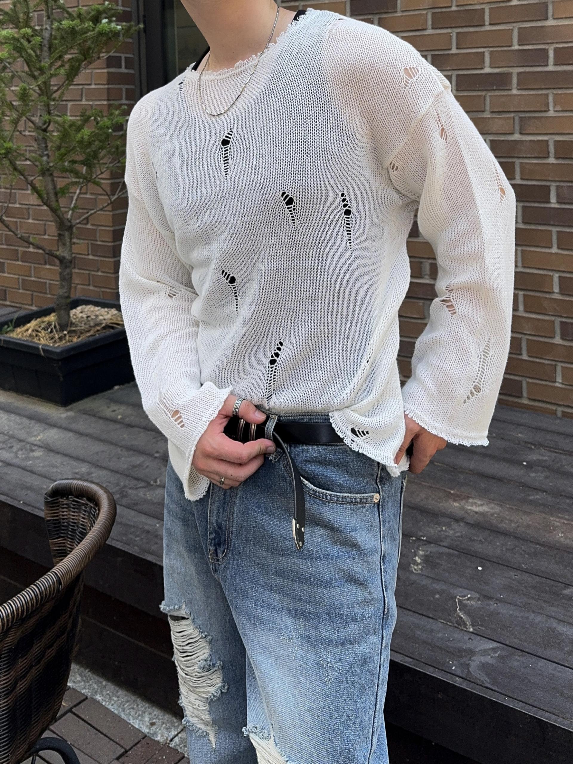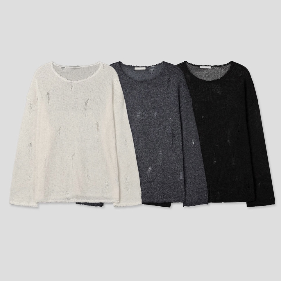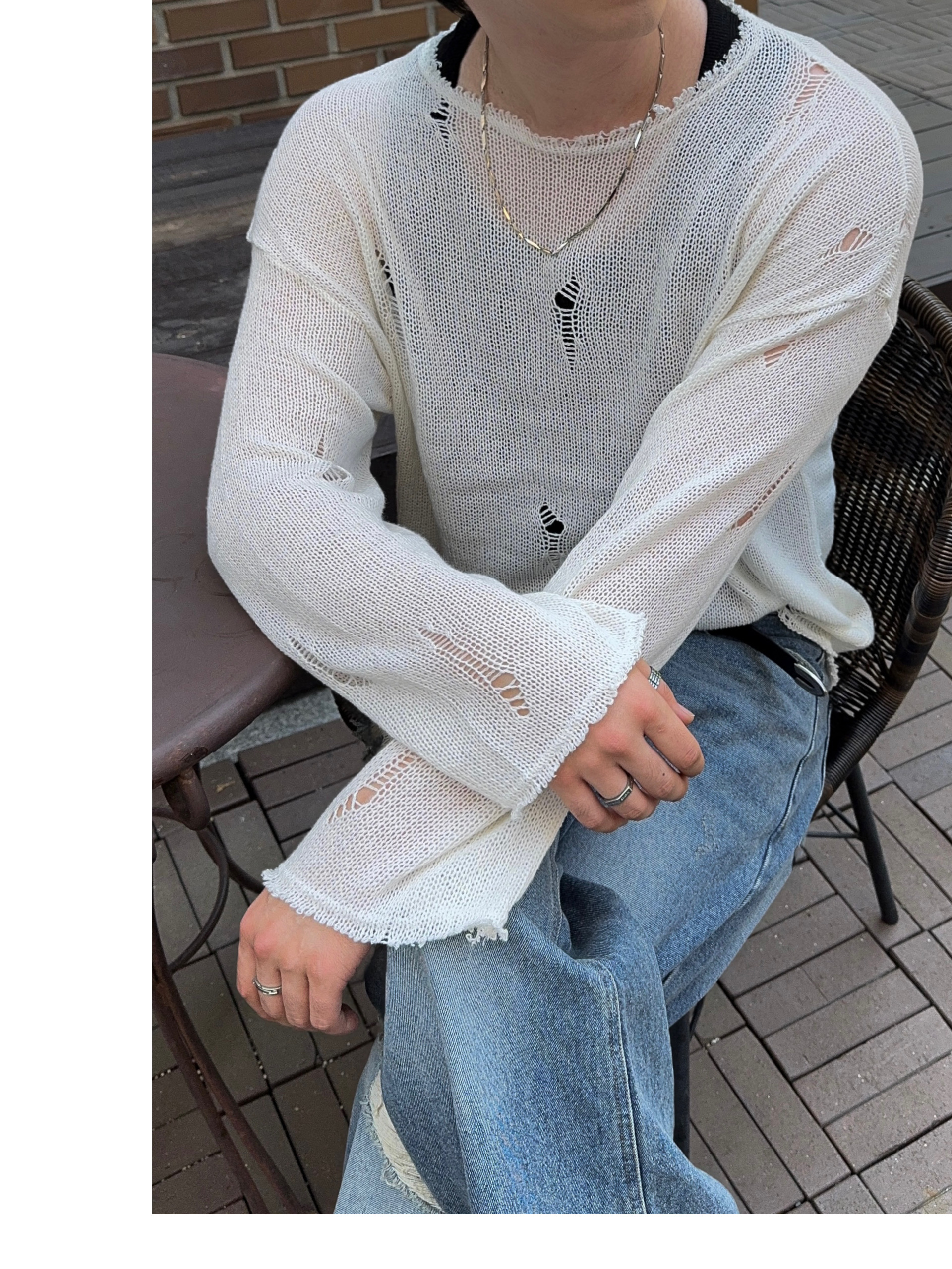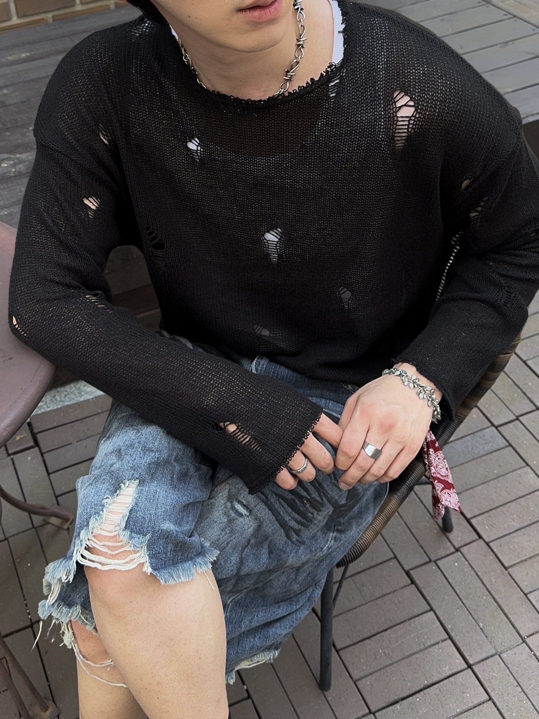 -쾌적한 아웃핏이 돋보이는 데미지 시스루 썸머 니트