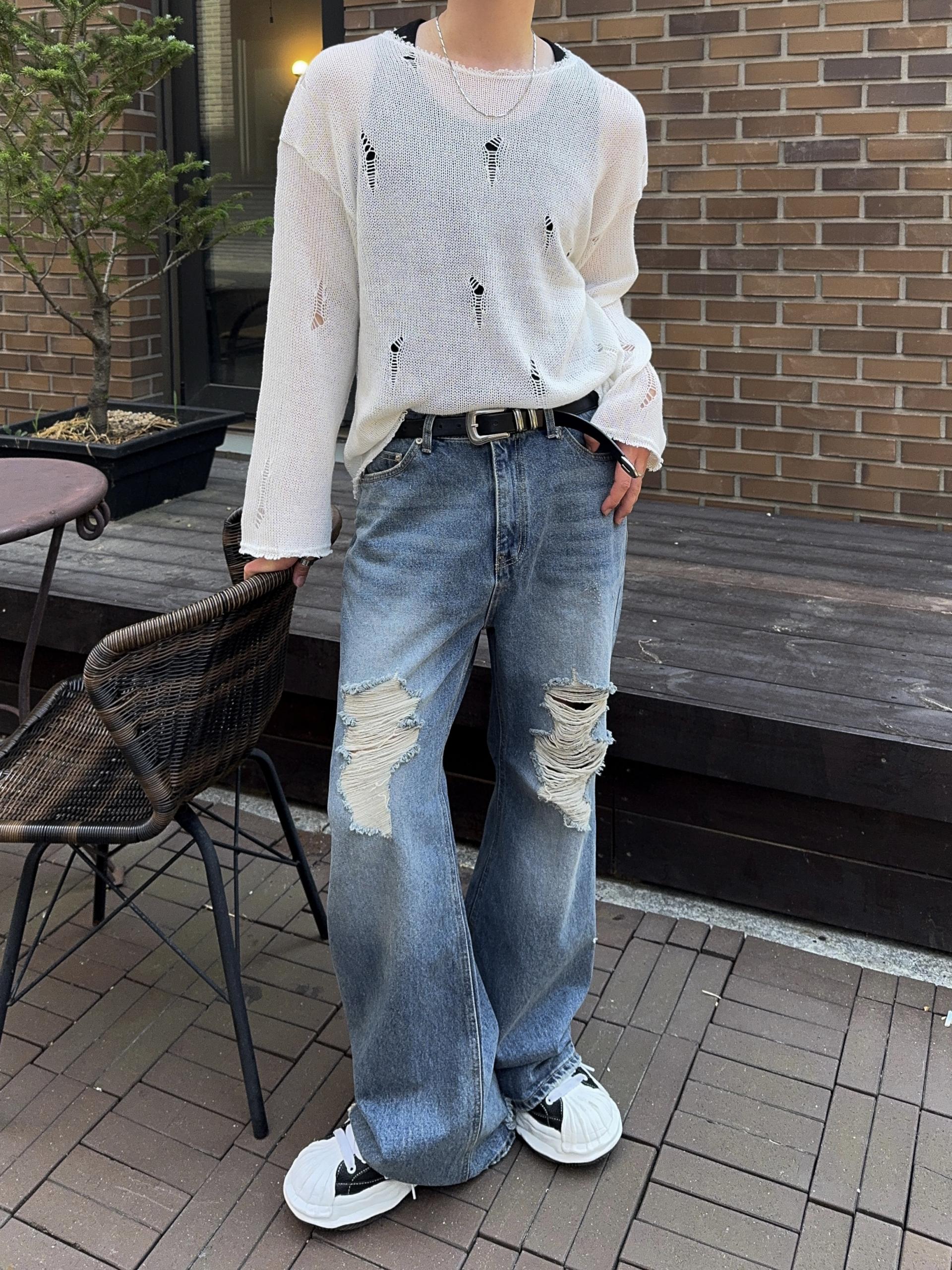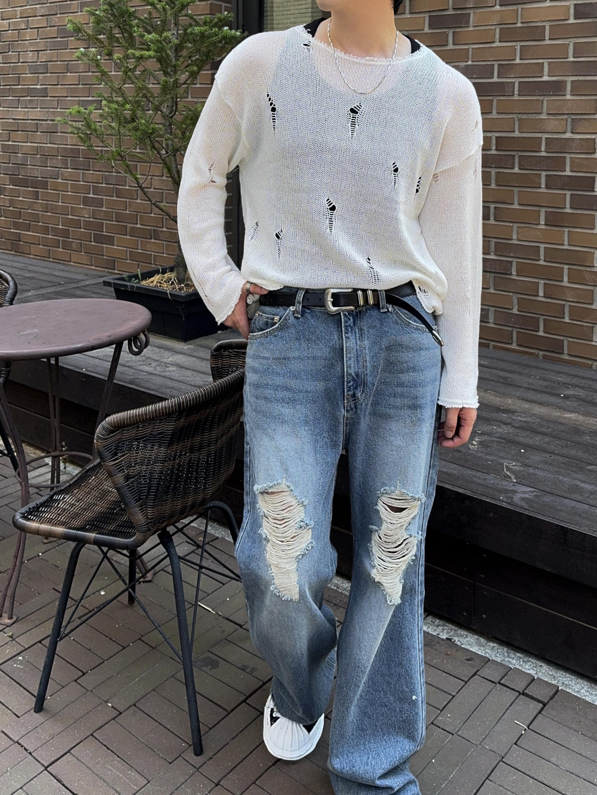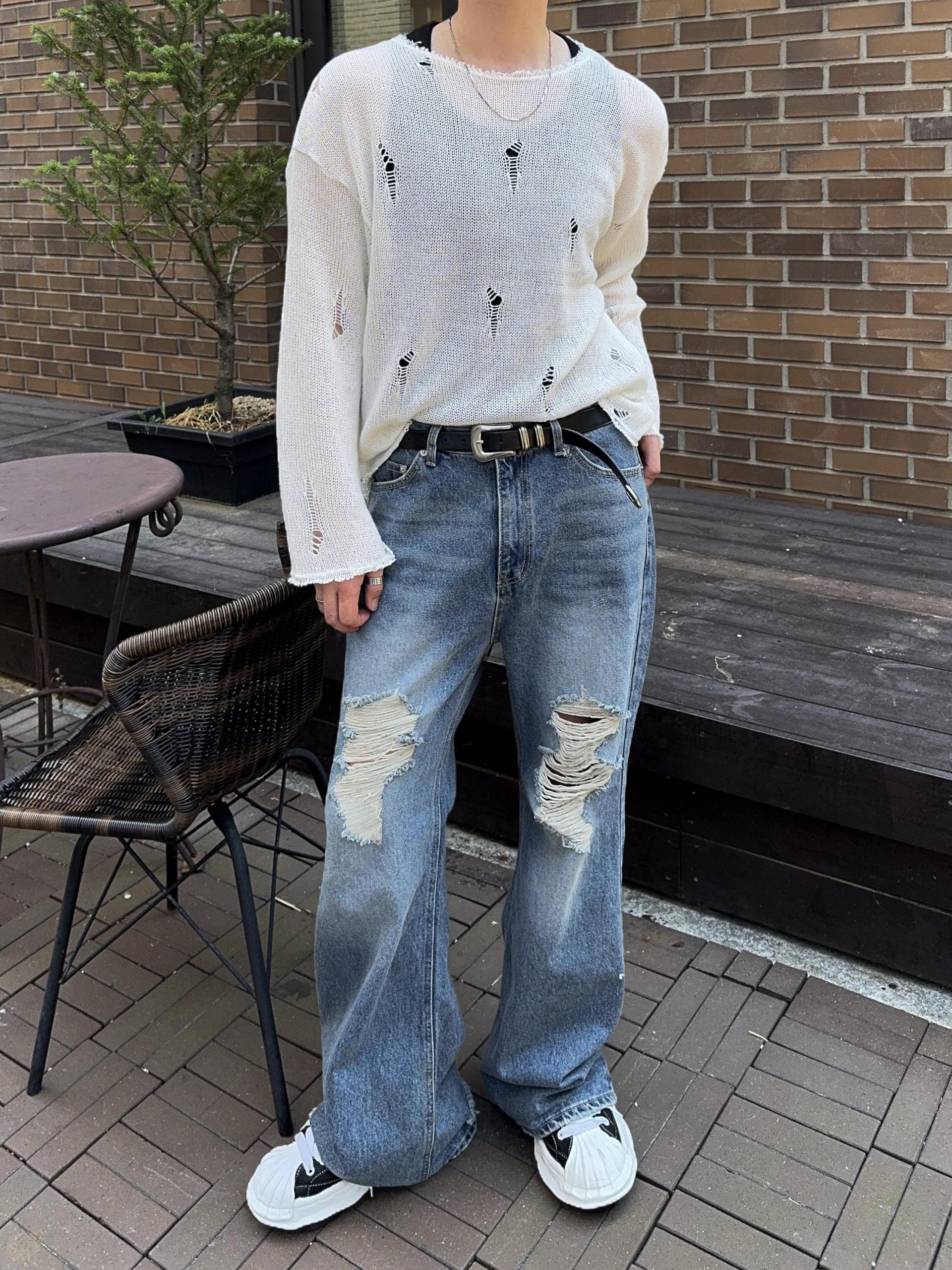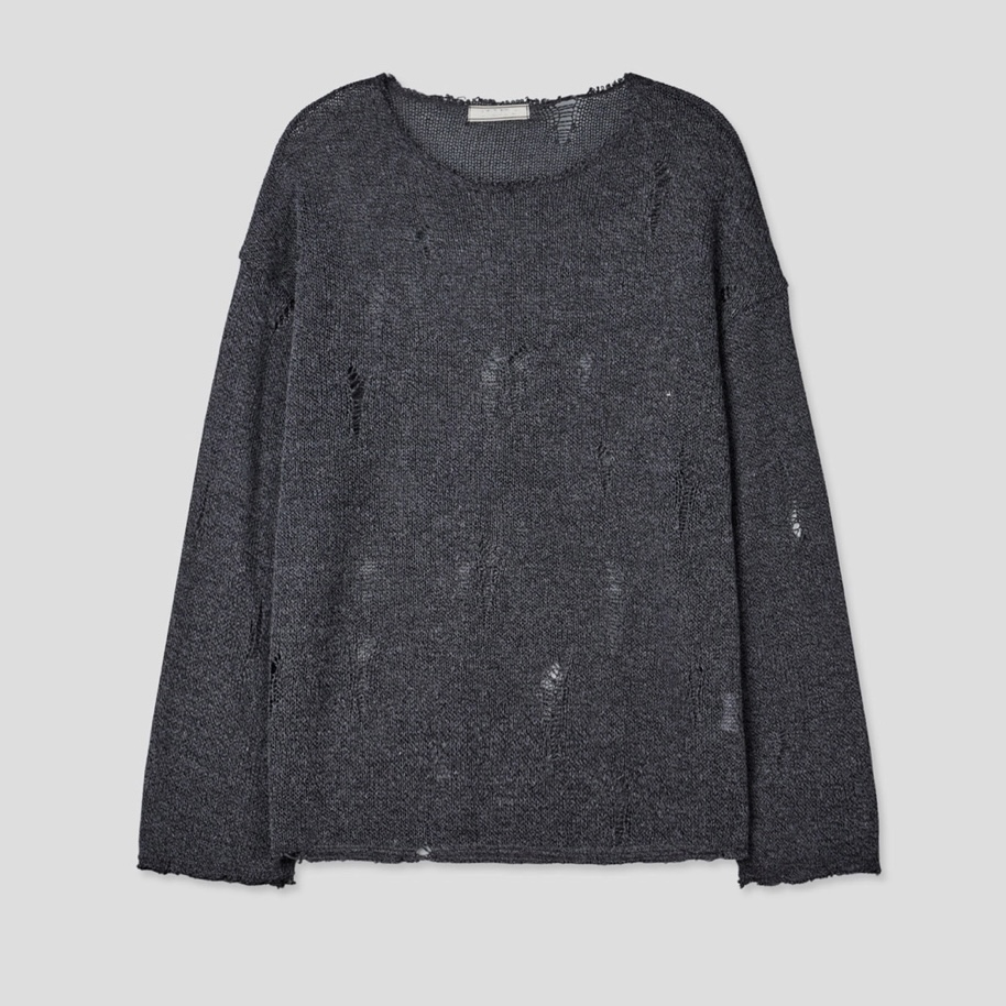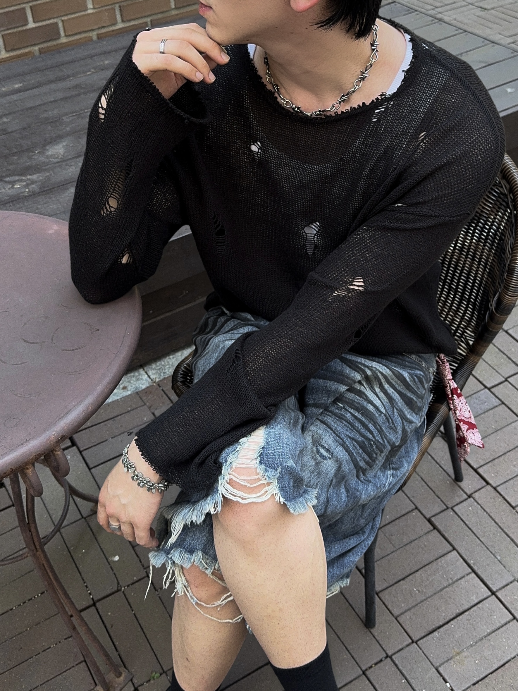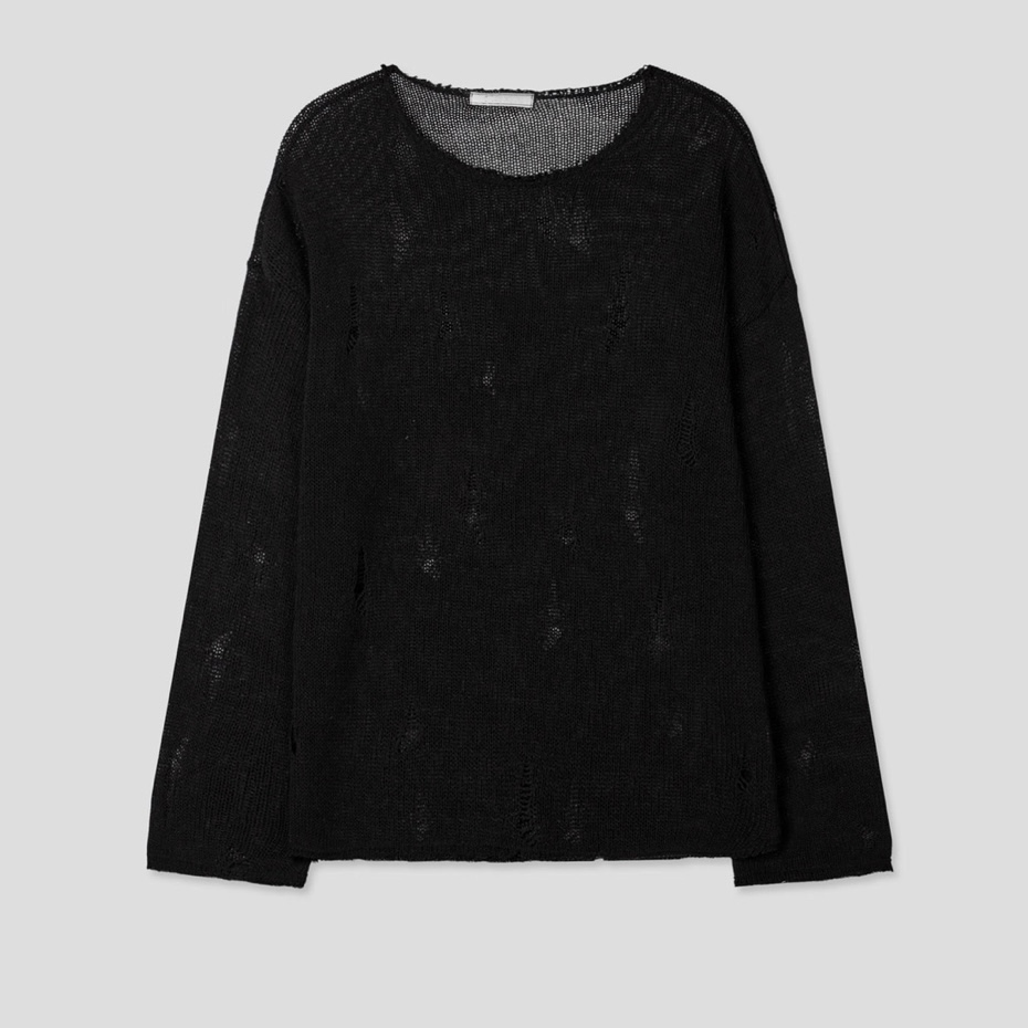 -쾌적한 아웃핏이 돋보이는 데미지 시스루 썸머 니트