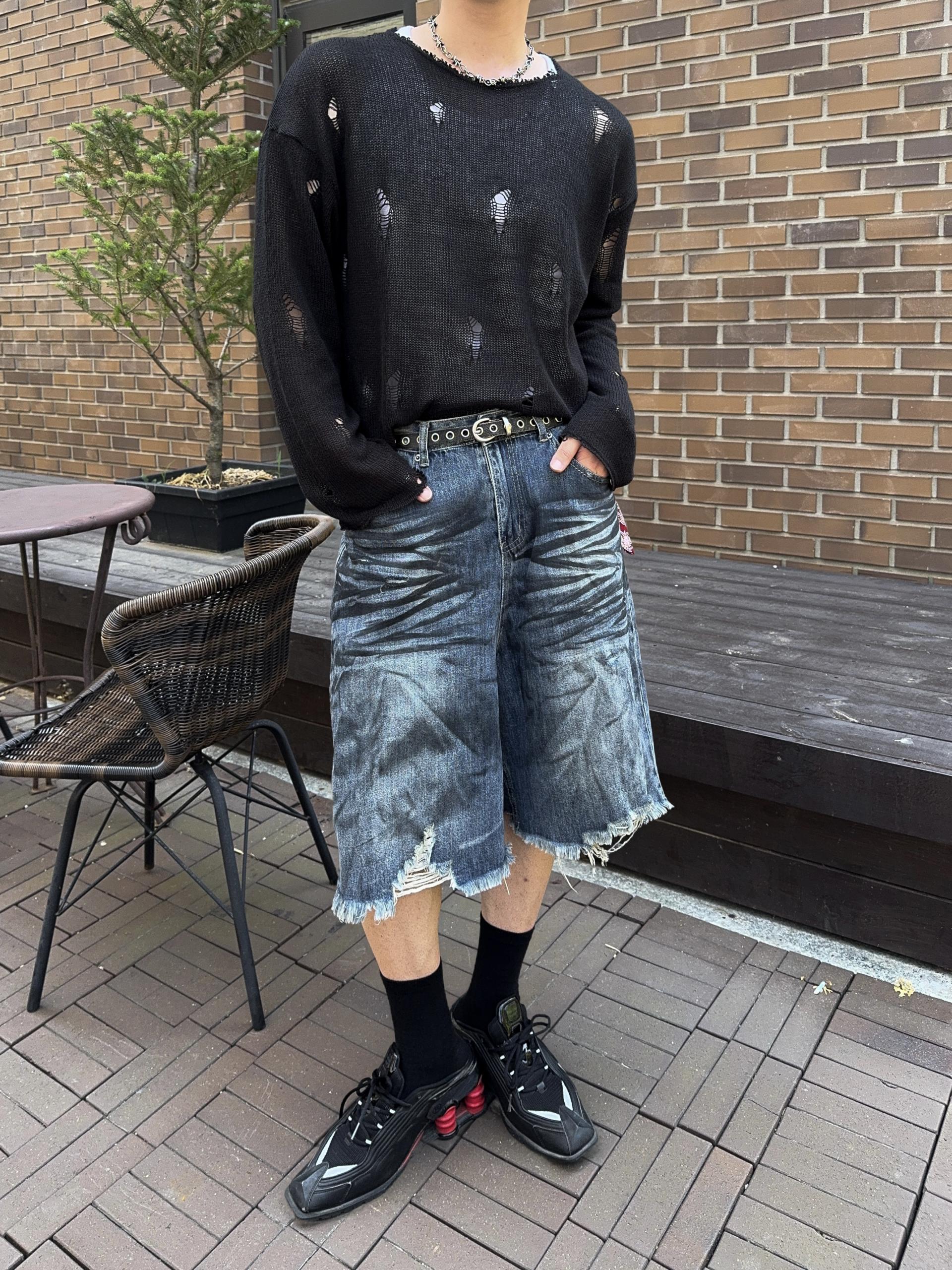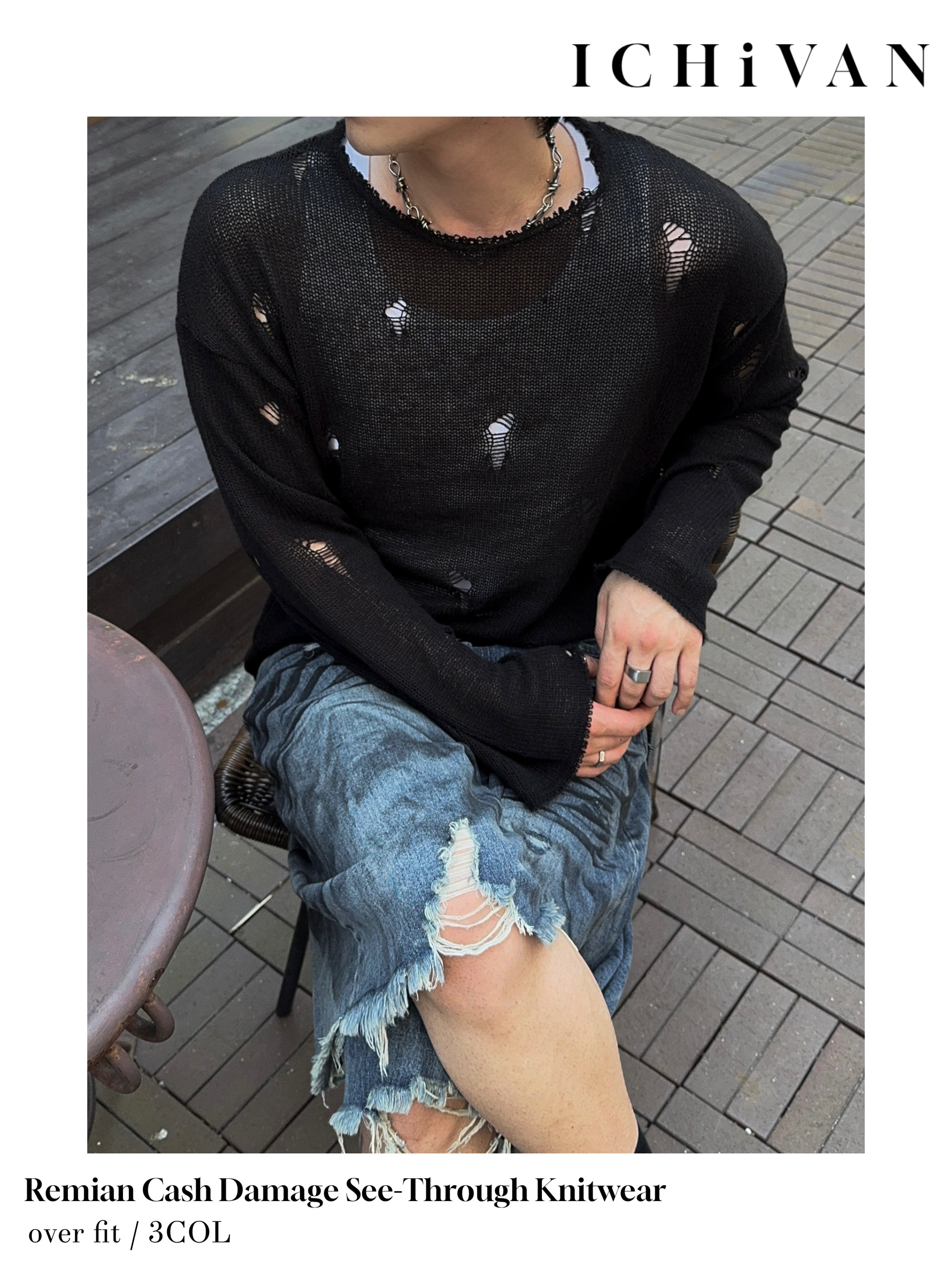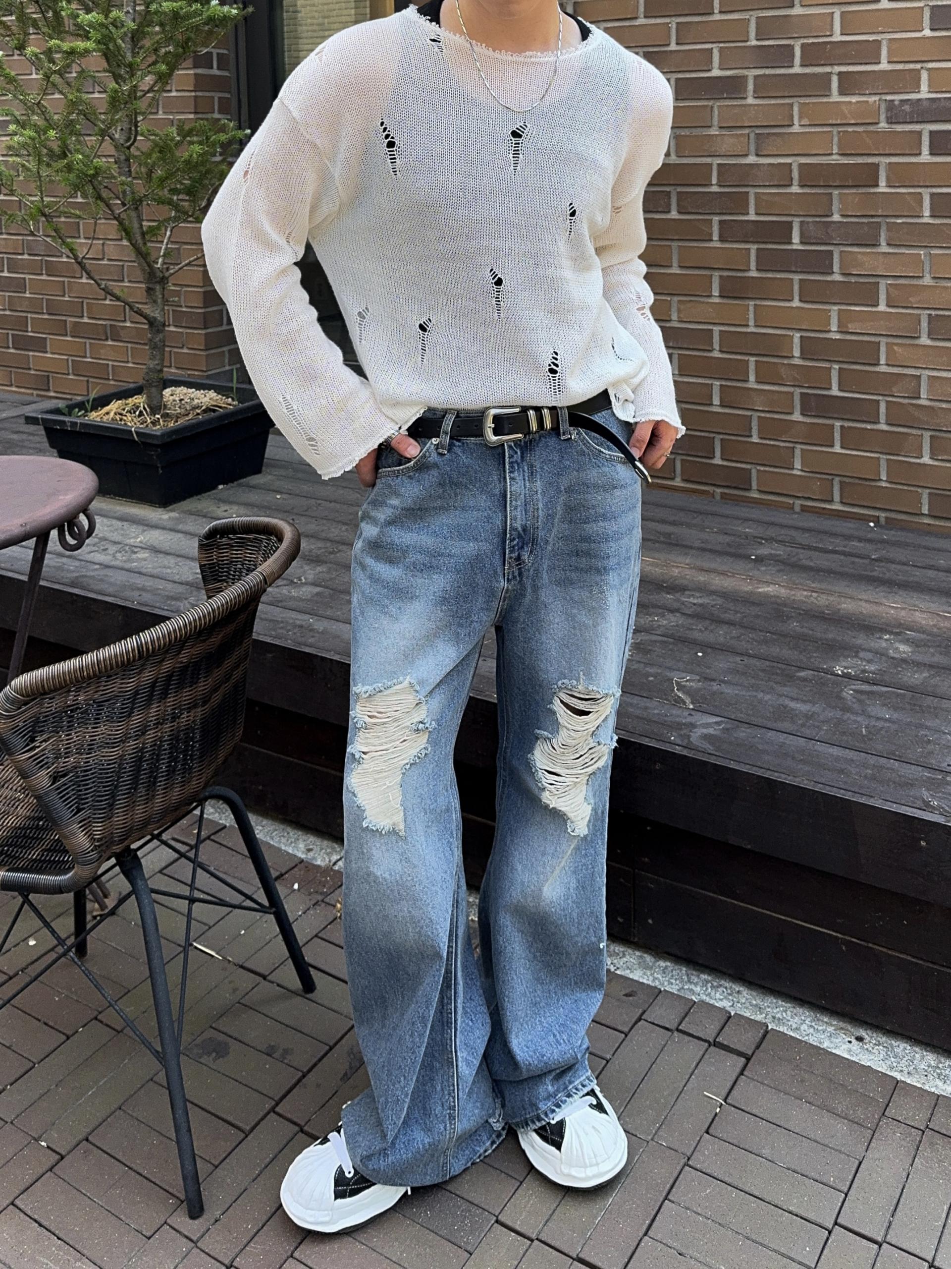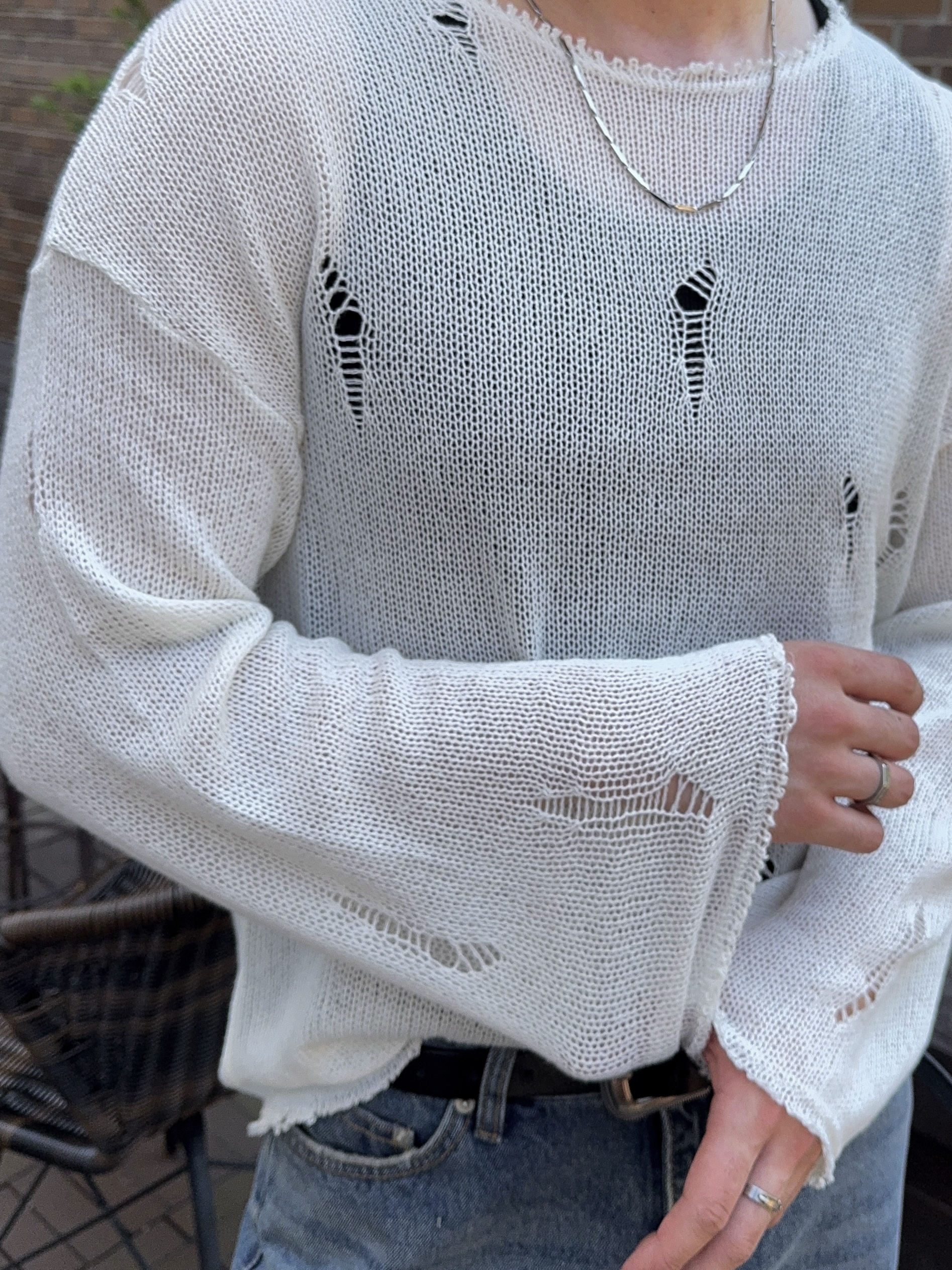 -쾌적한 아웃핏이 돋보이는 데미지 시스루 썸머 니트