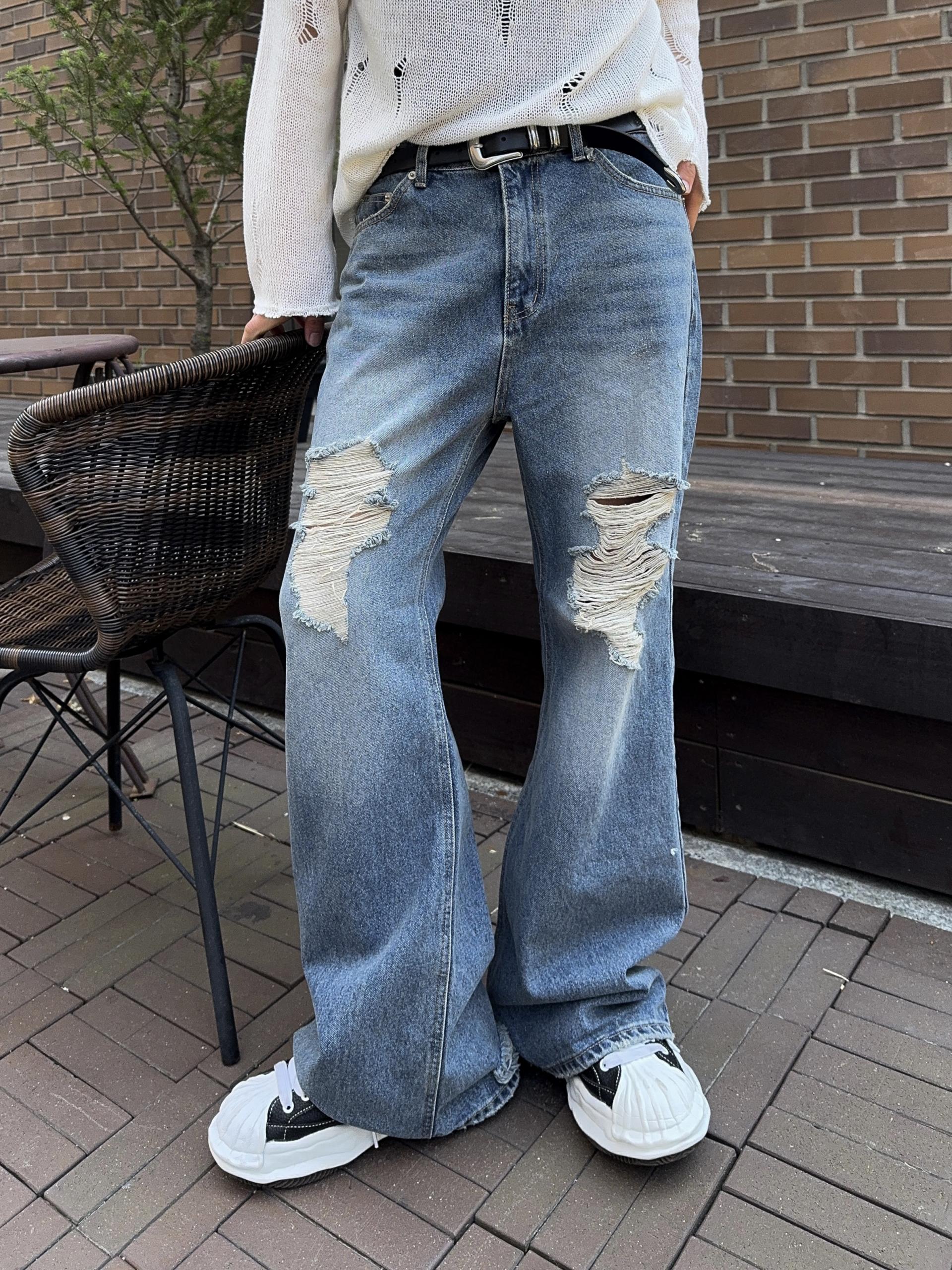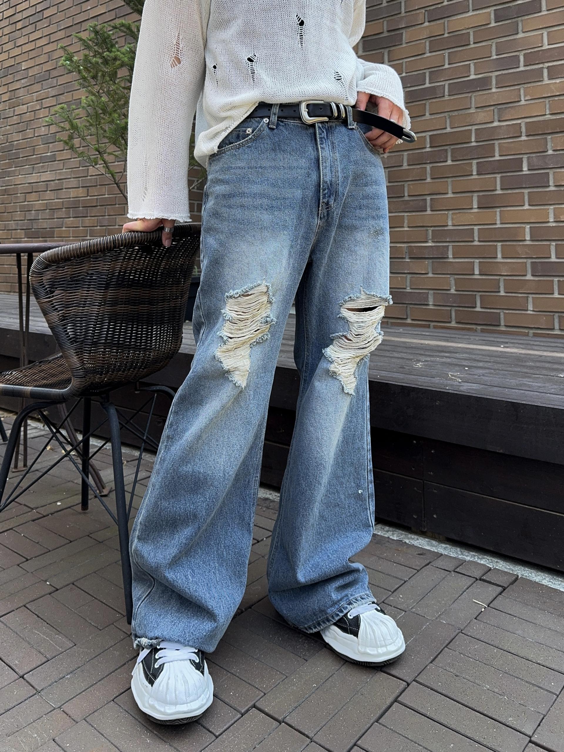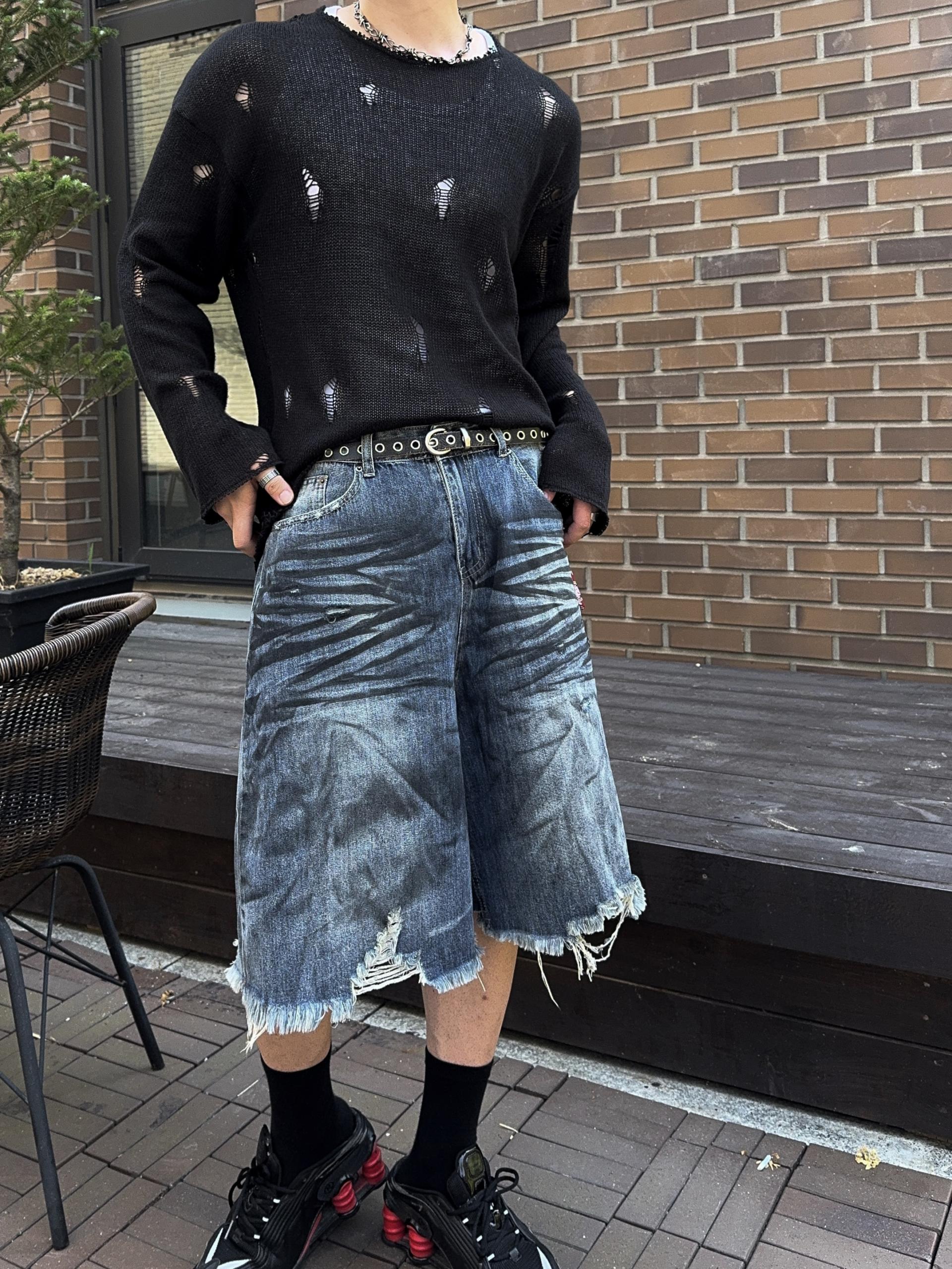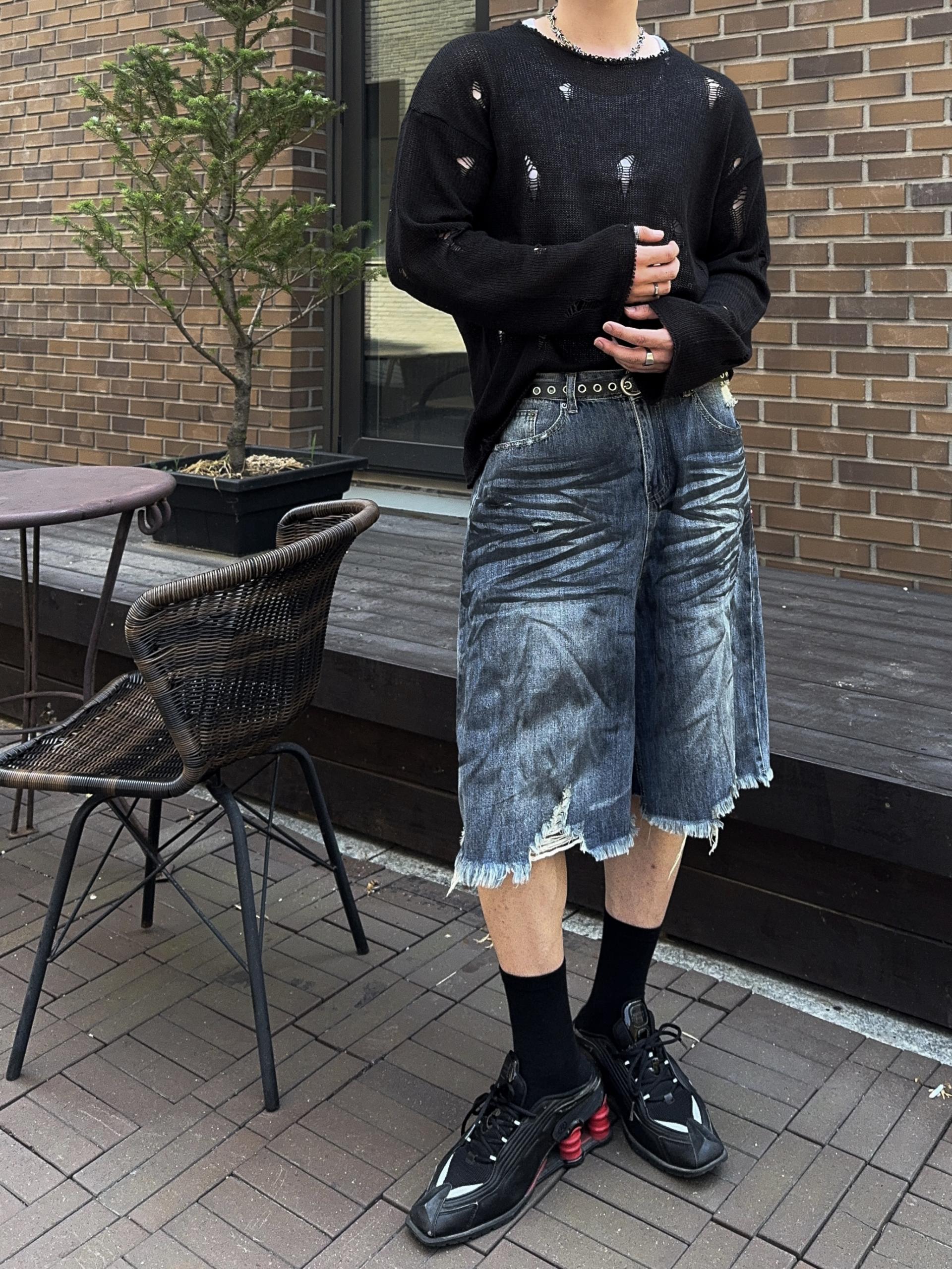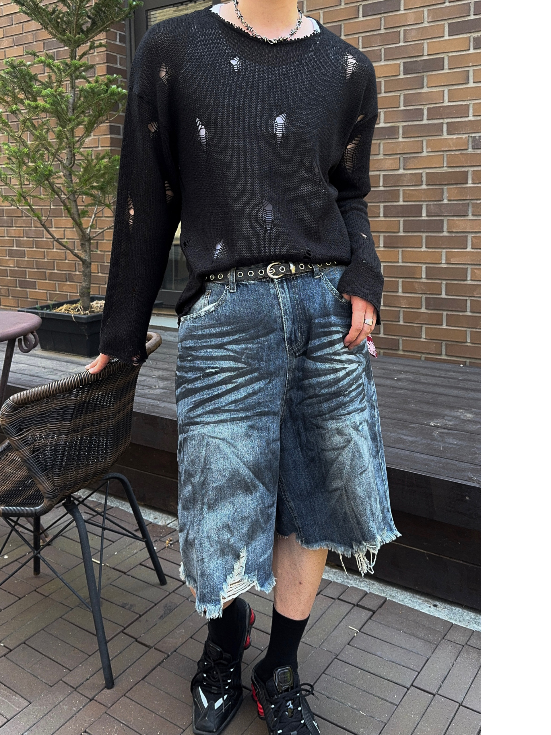 -쾌적한 아웃핏이 돋보이는 데미지 시스루 썸머 니트