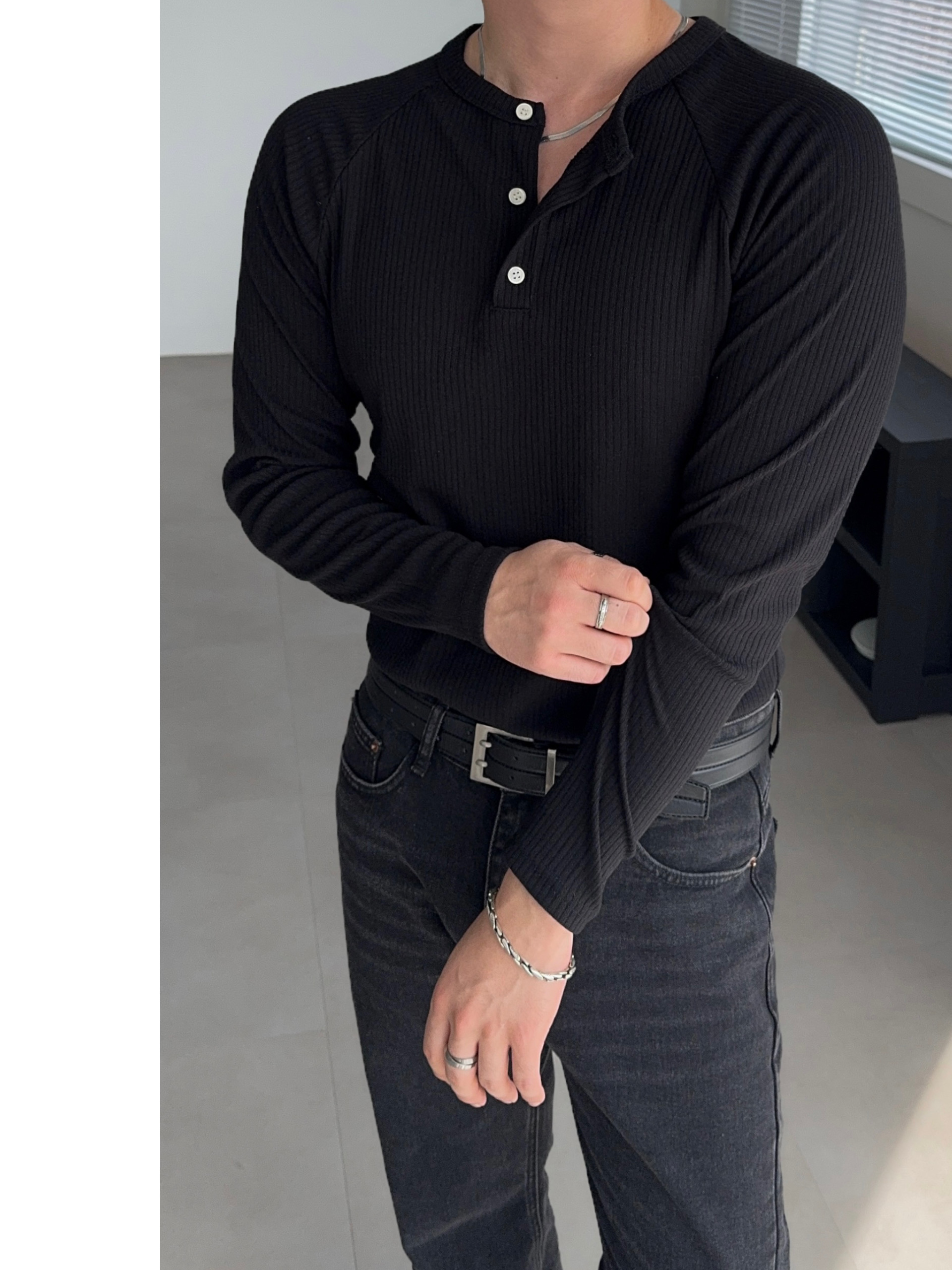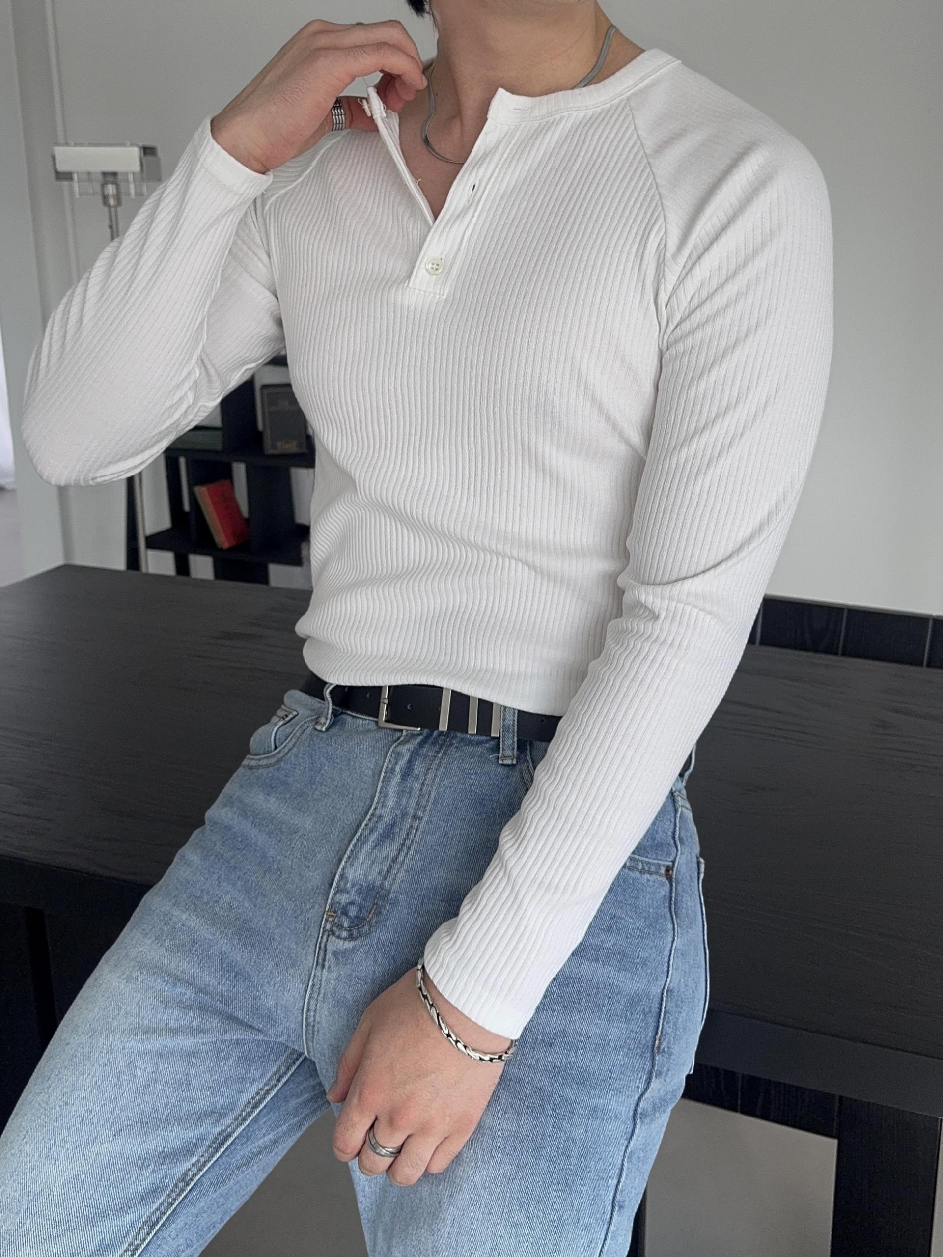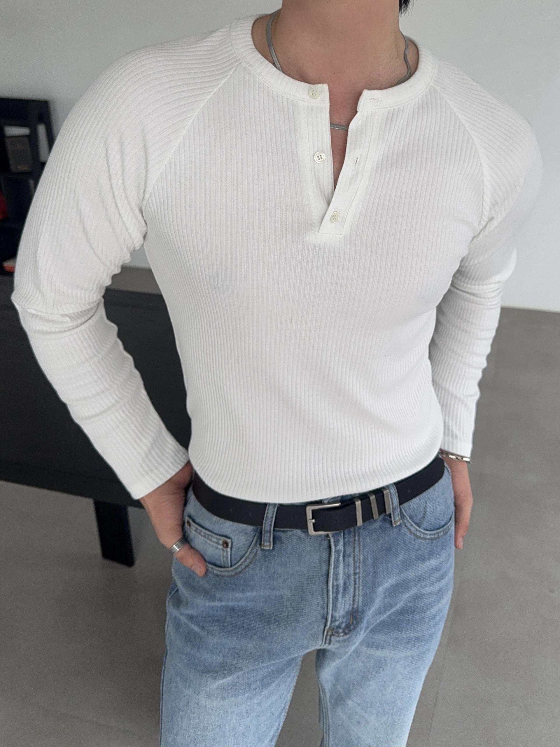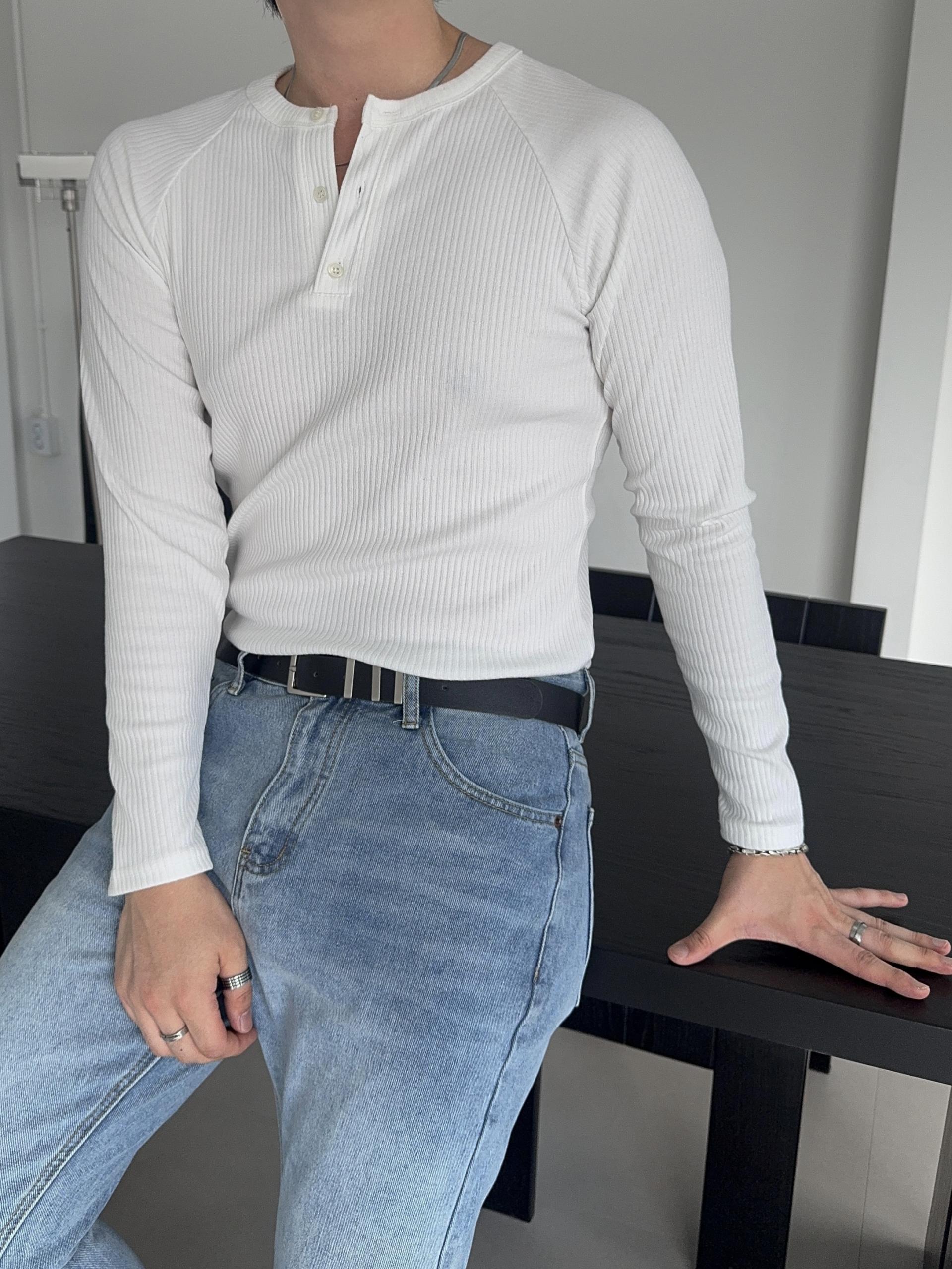 -이너로도 착용하기 좋은 포인트 헨리넥 넥라인