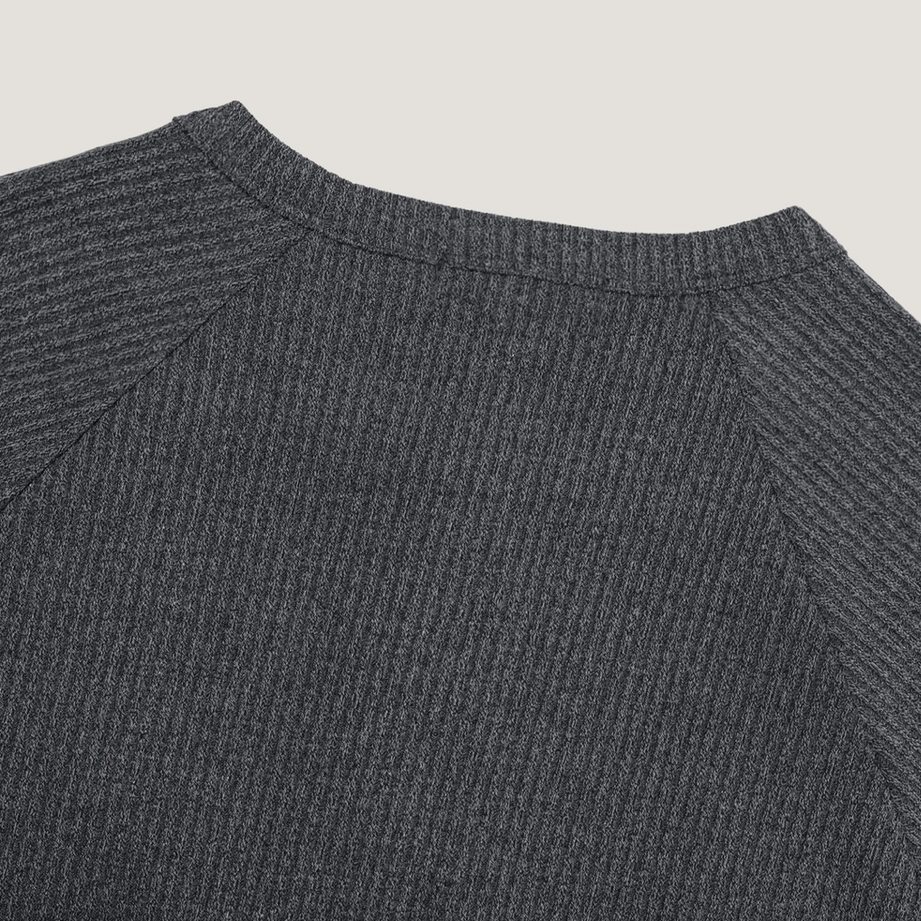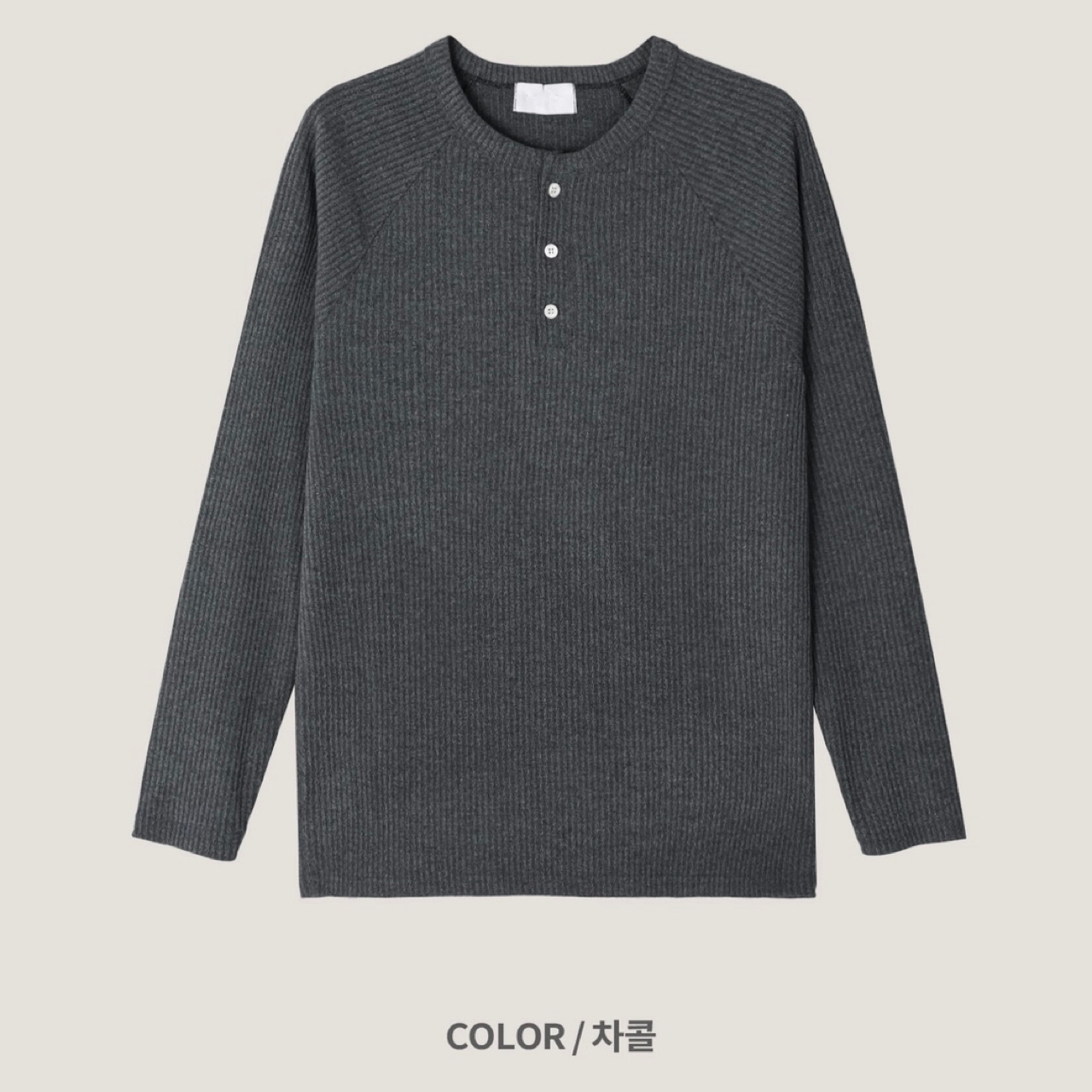 -쫀쫀한 골지 소재로 제작된 헨리넥 티셔츠