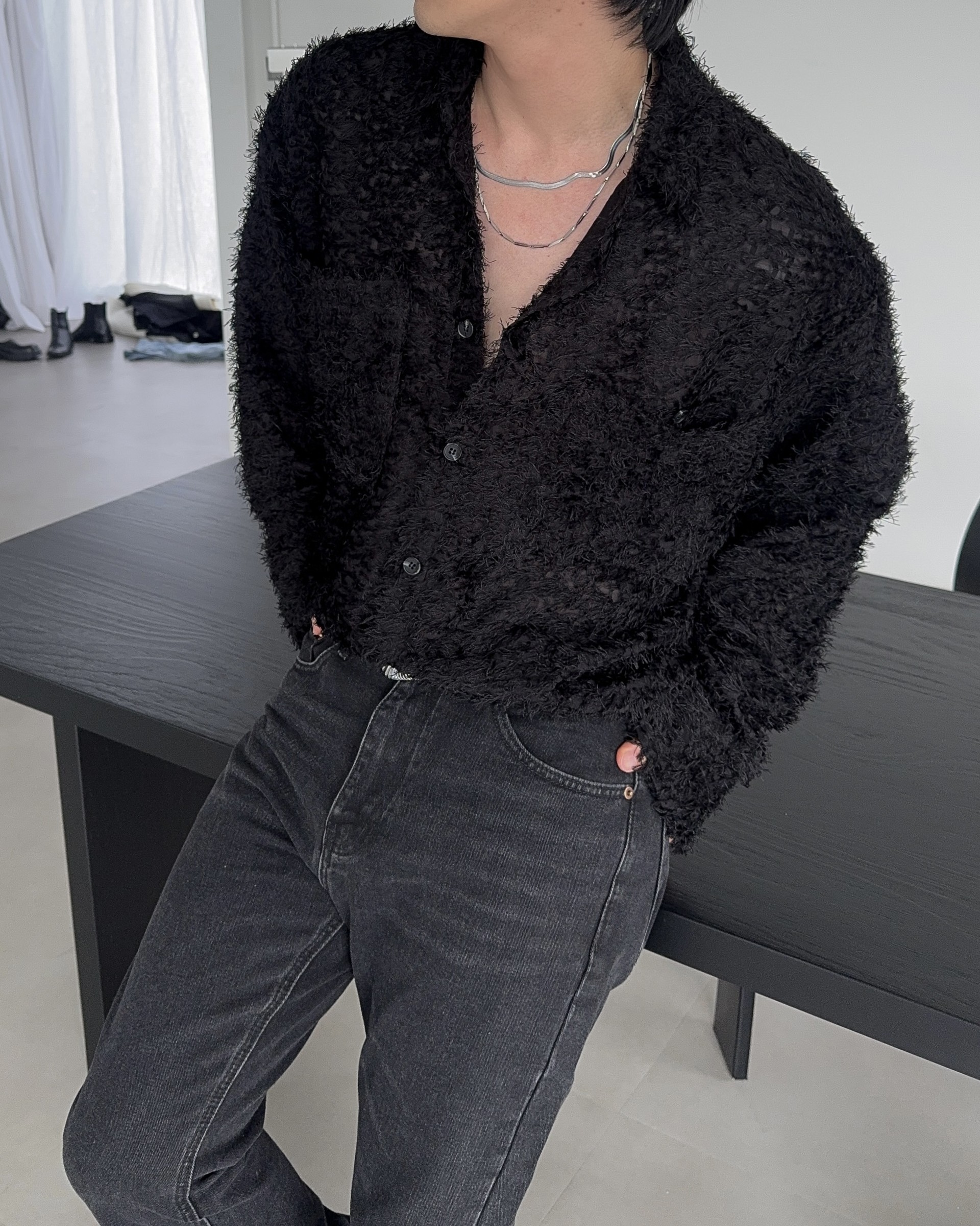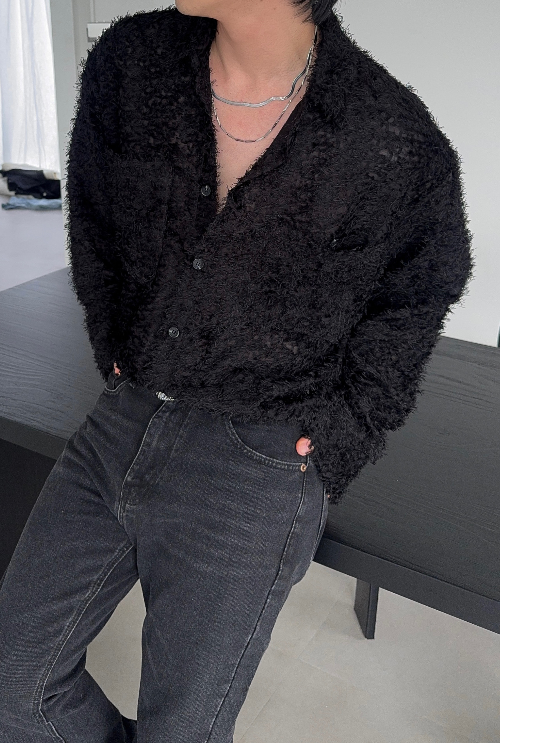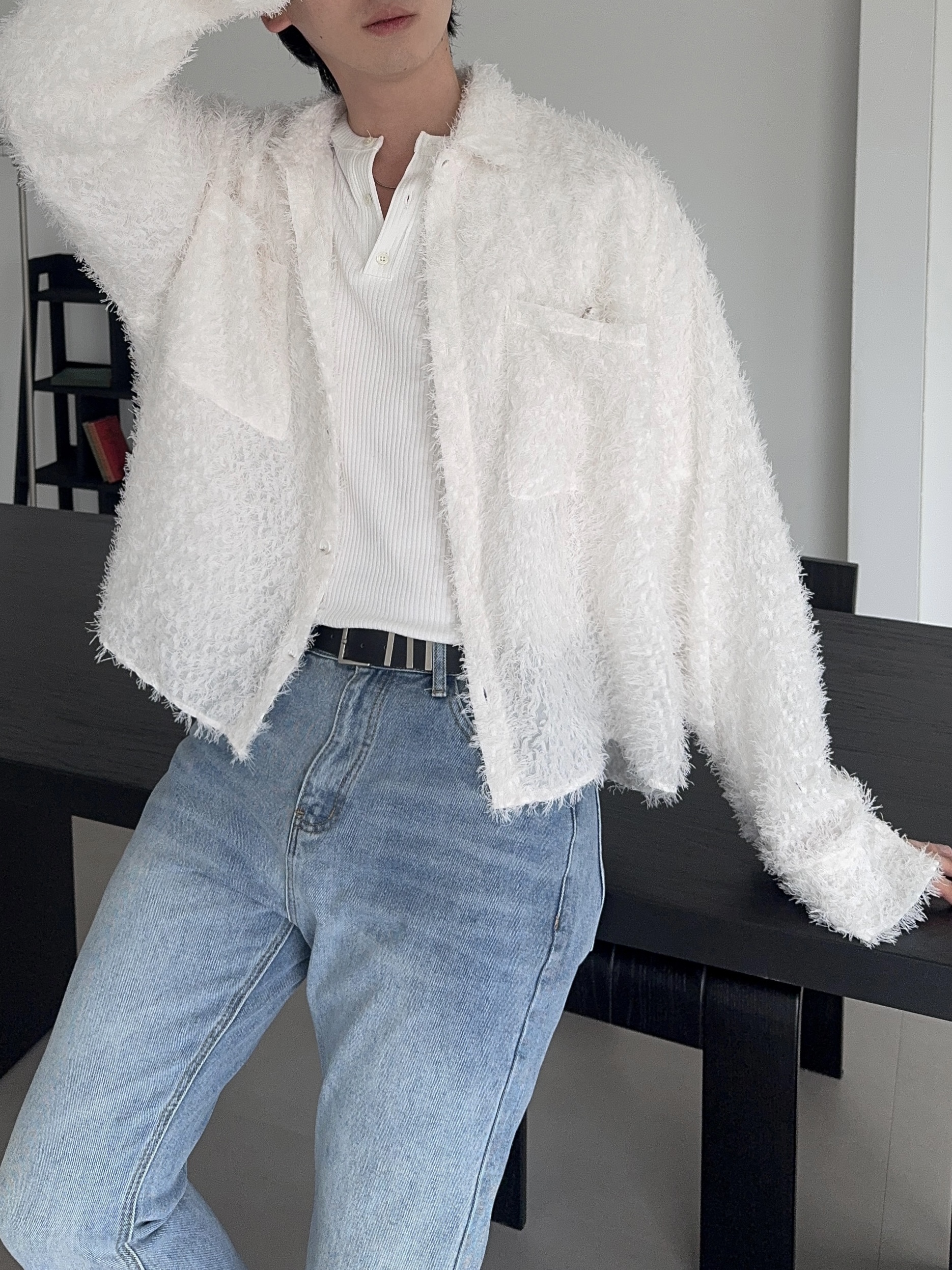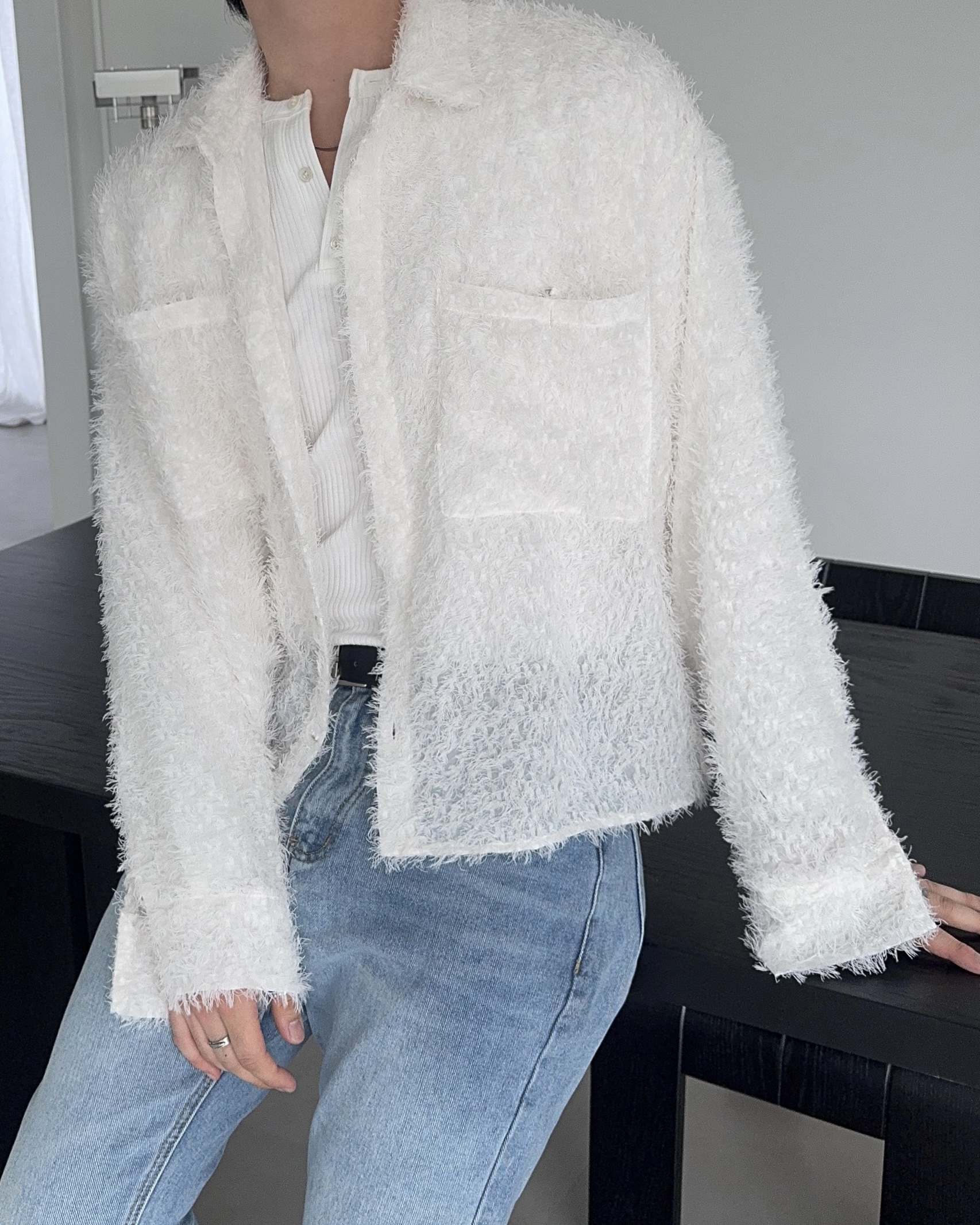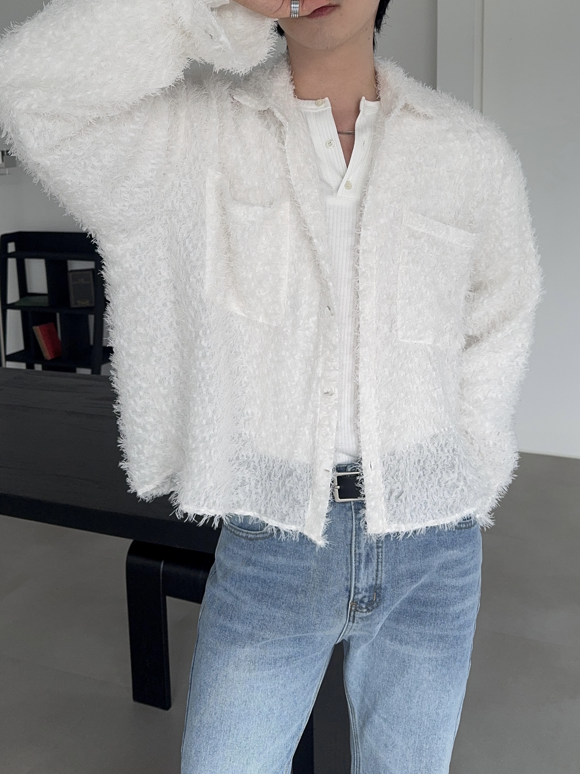 -부드러운 모헤어 소재로 제작된 셔츠 자켓