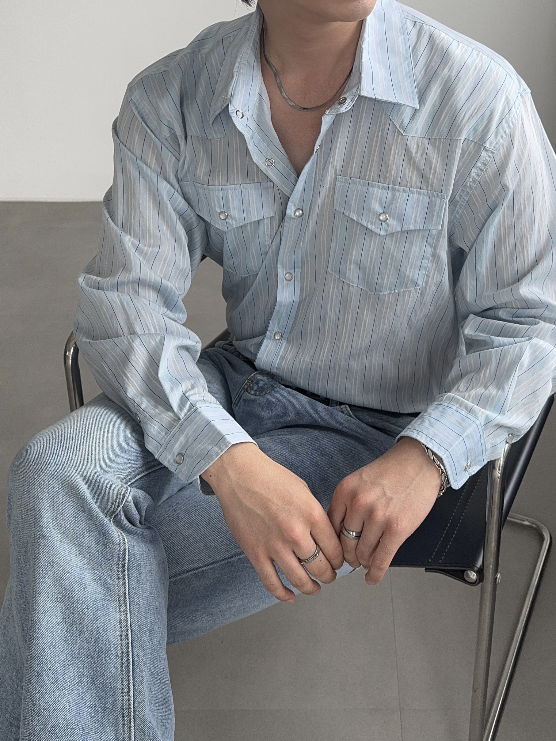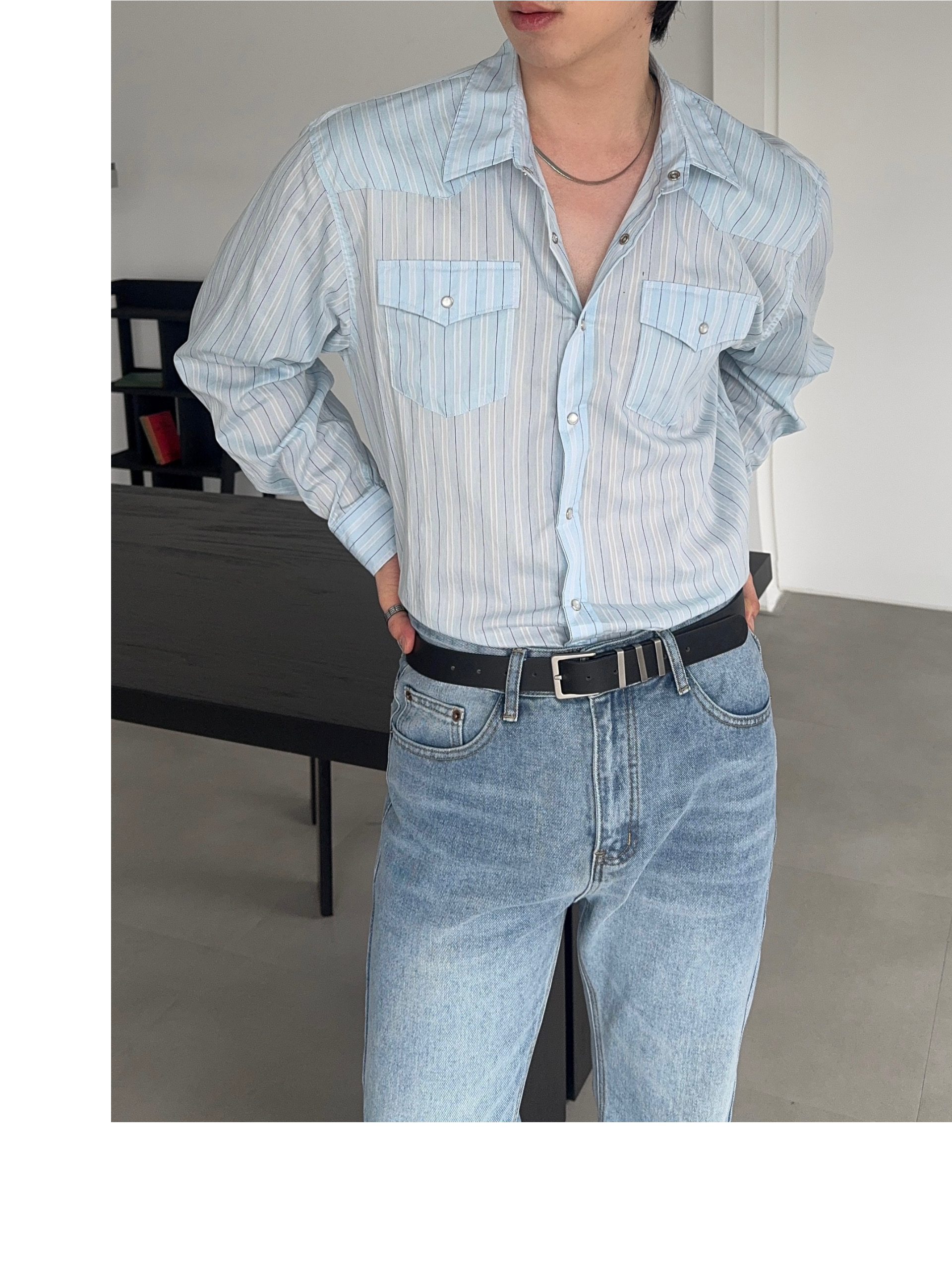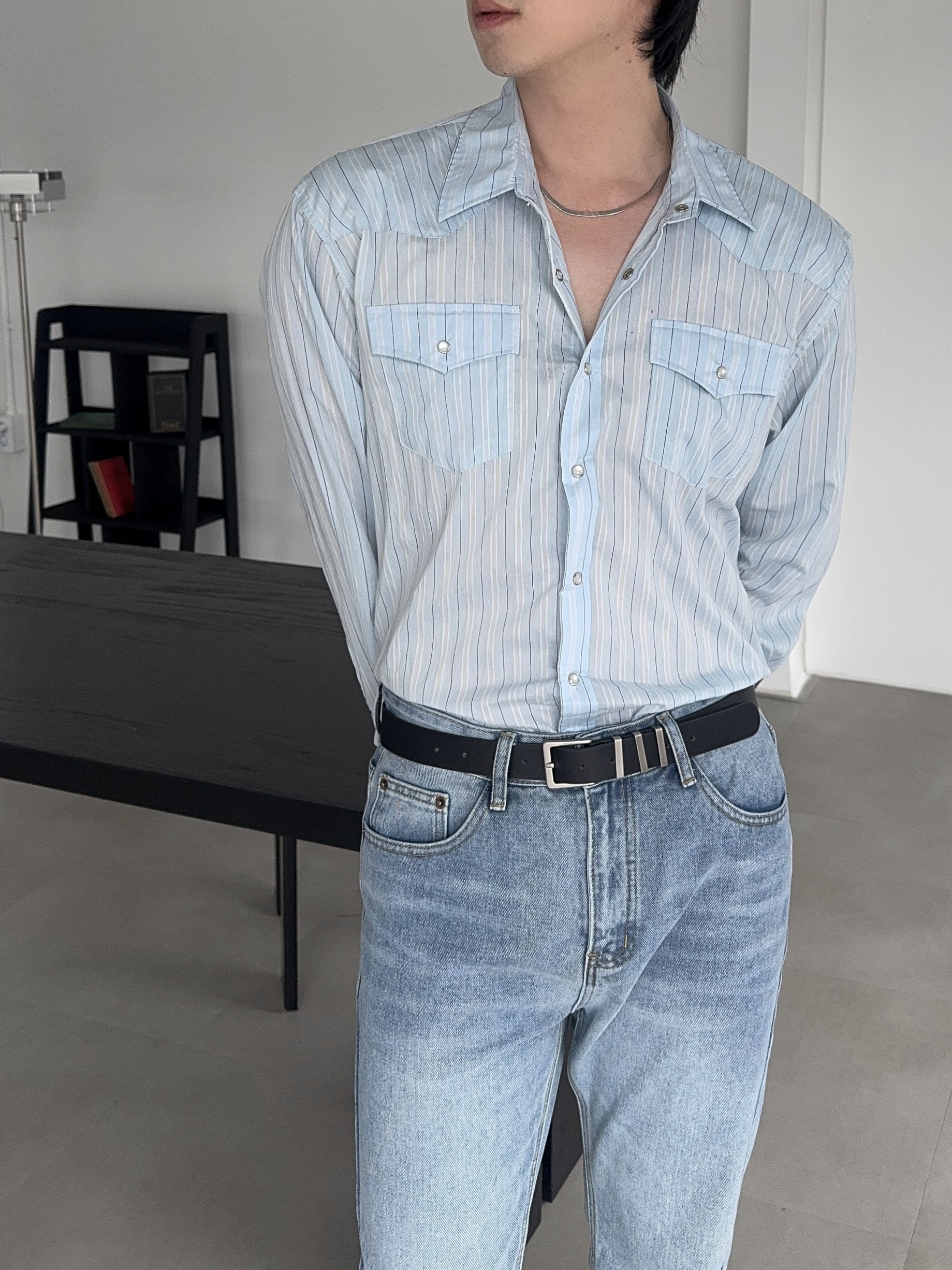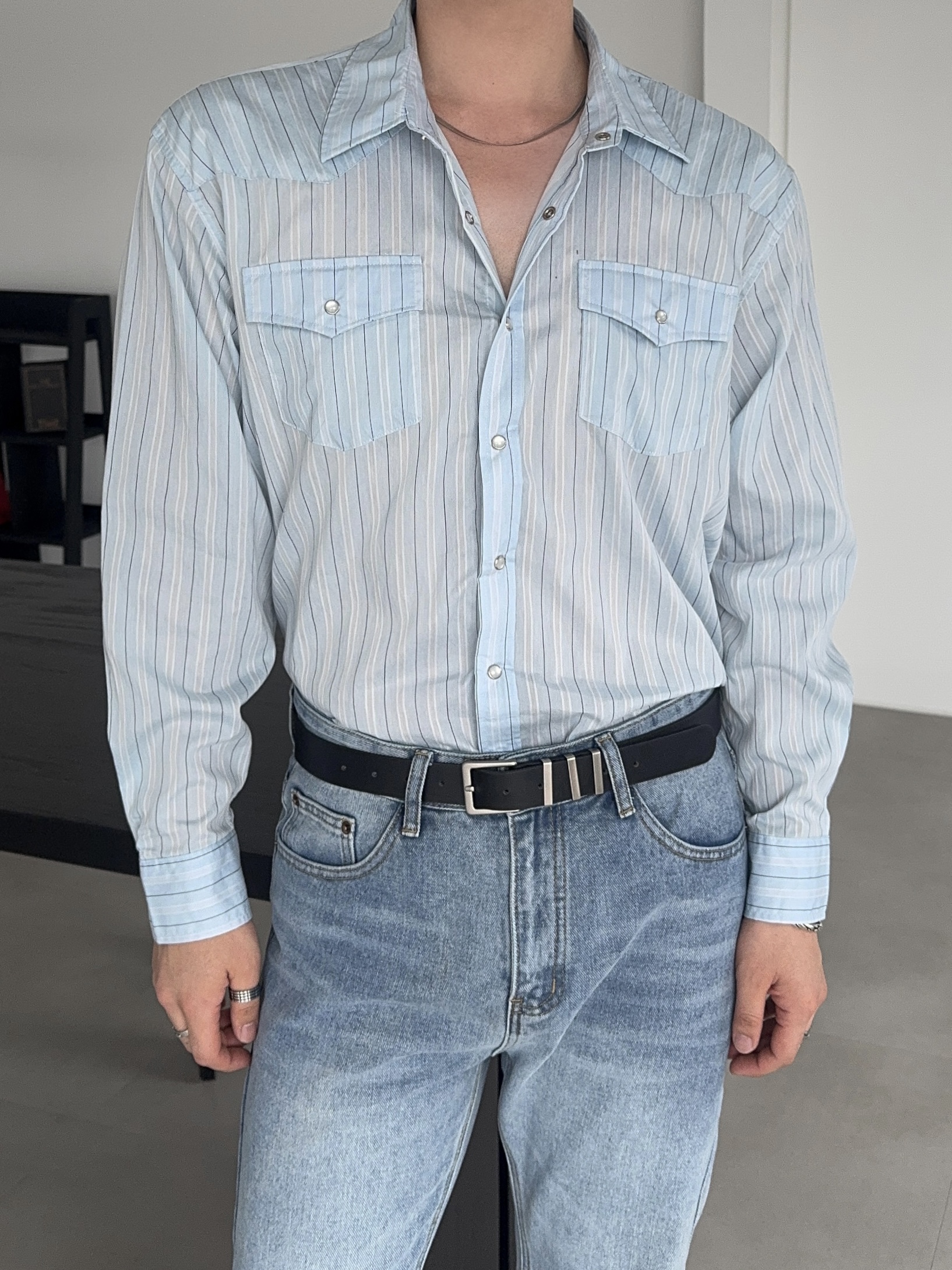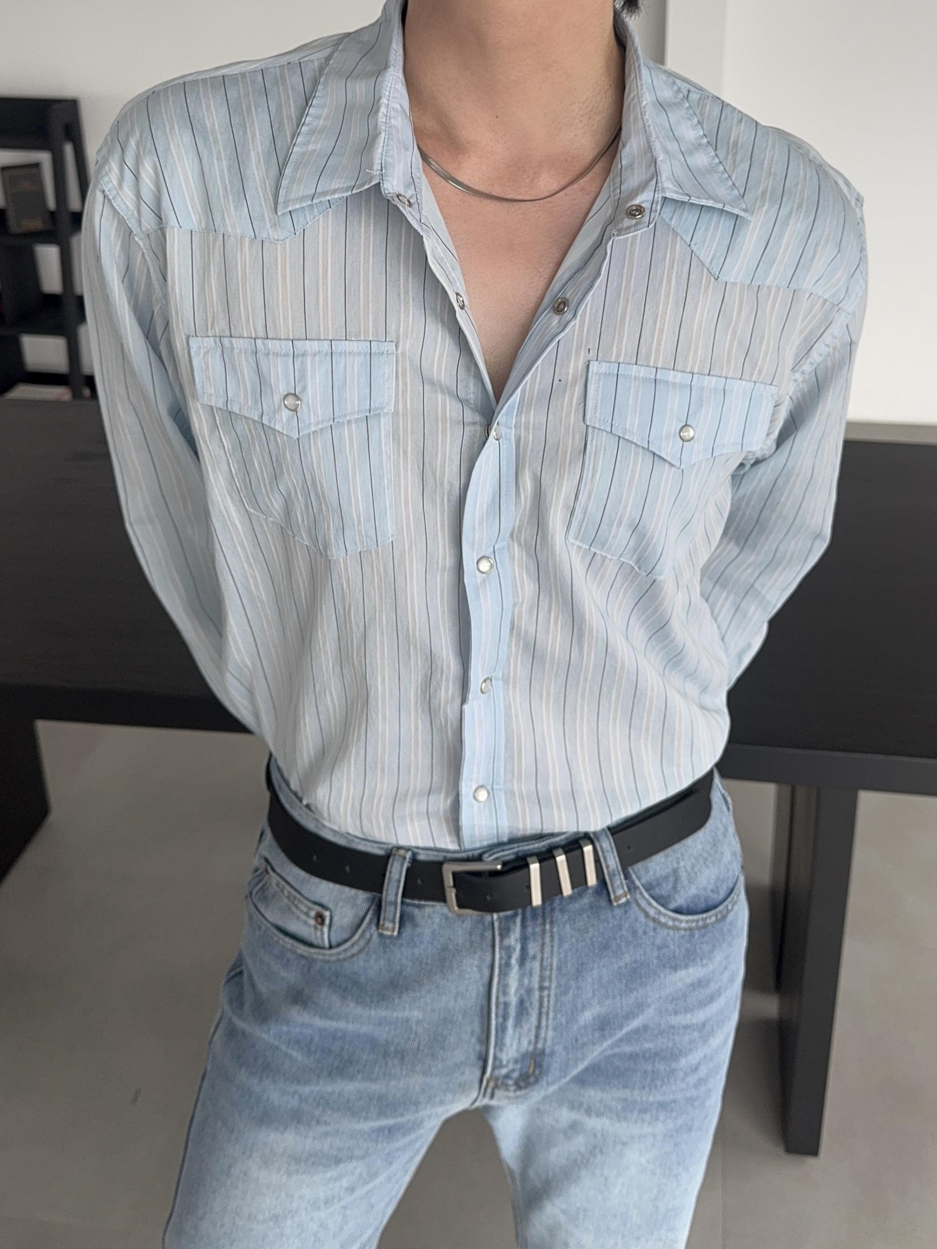 -유니크한 스트라이프 패턴의 웨스턴 셔츠