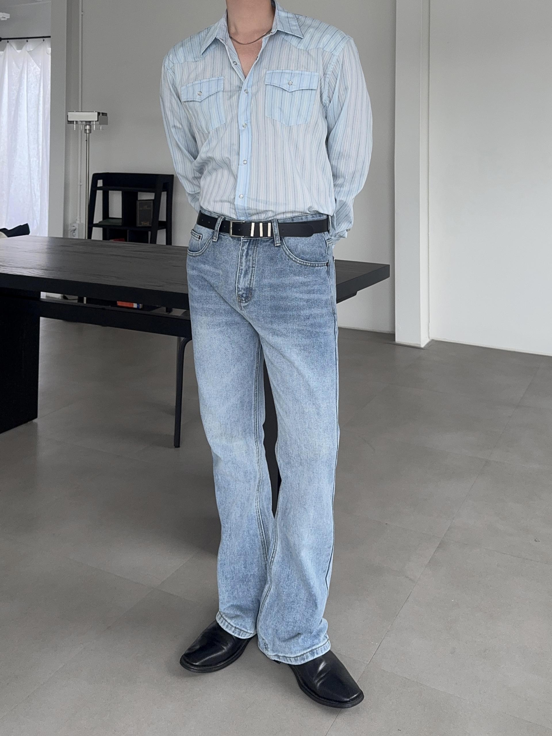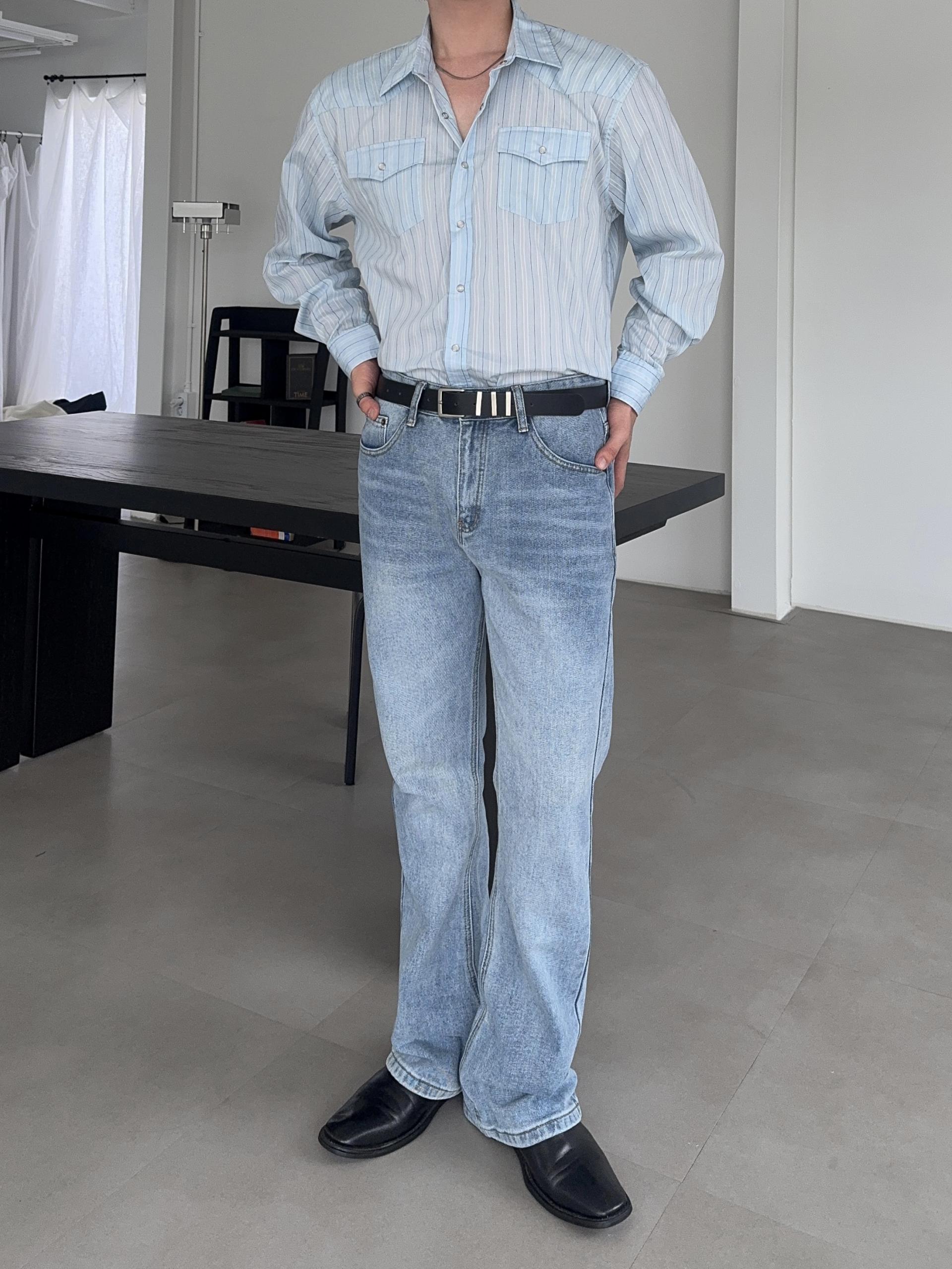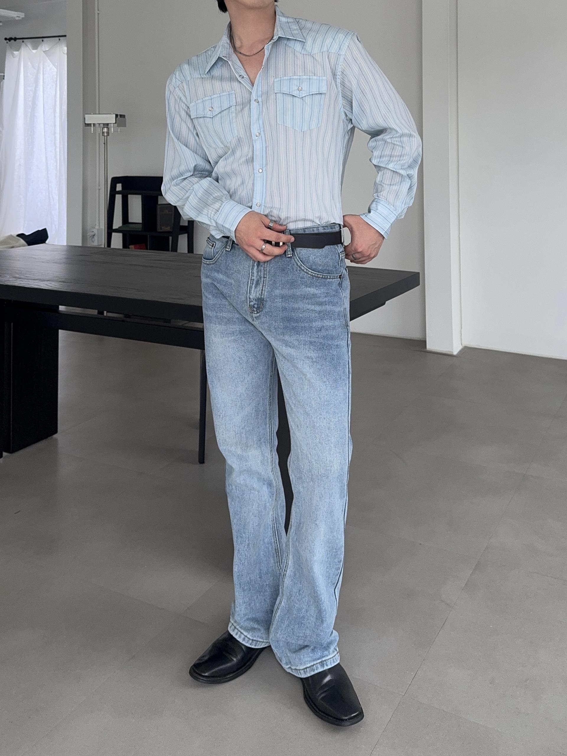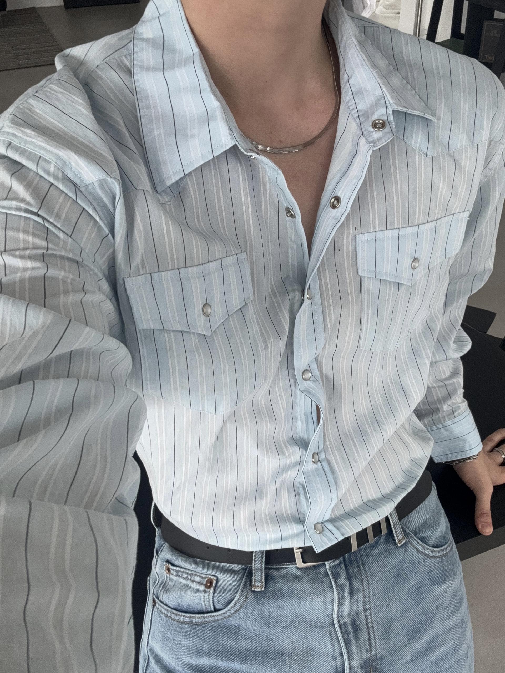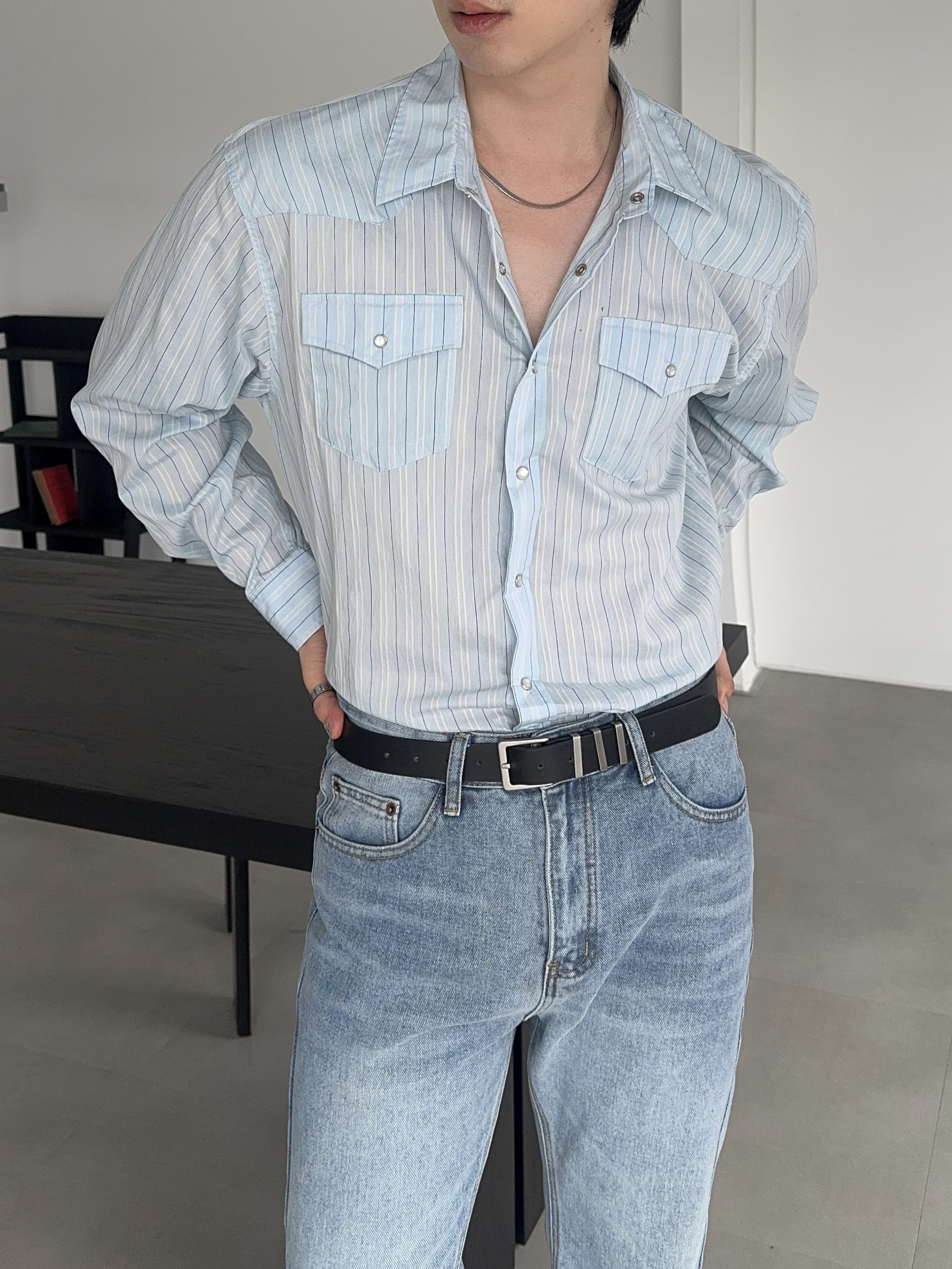 -유니크한 스트라이프 패턴의 웨스턴 셔츠
