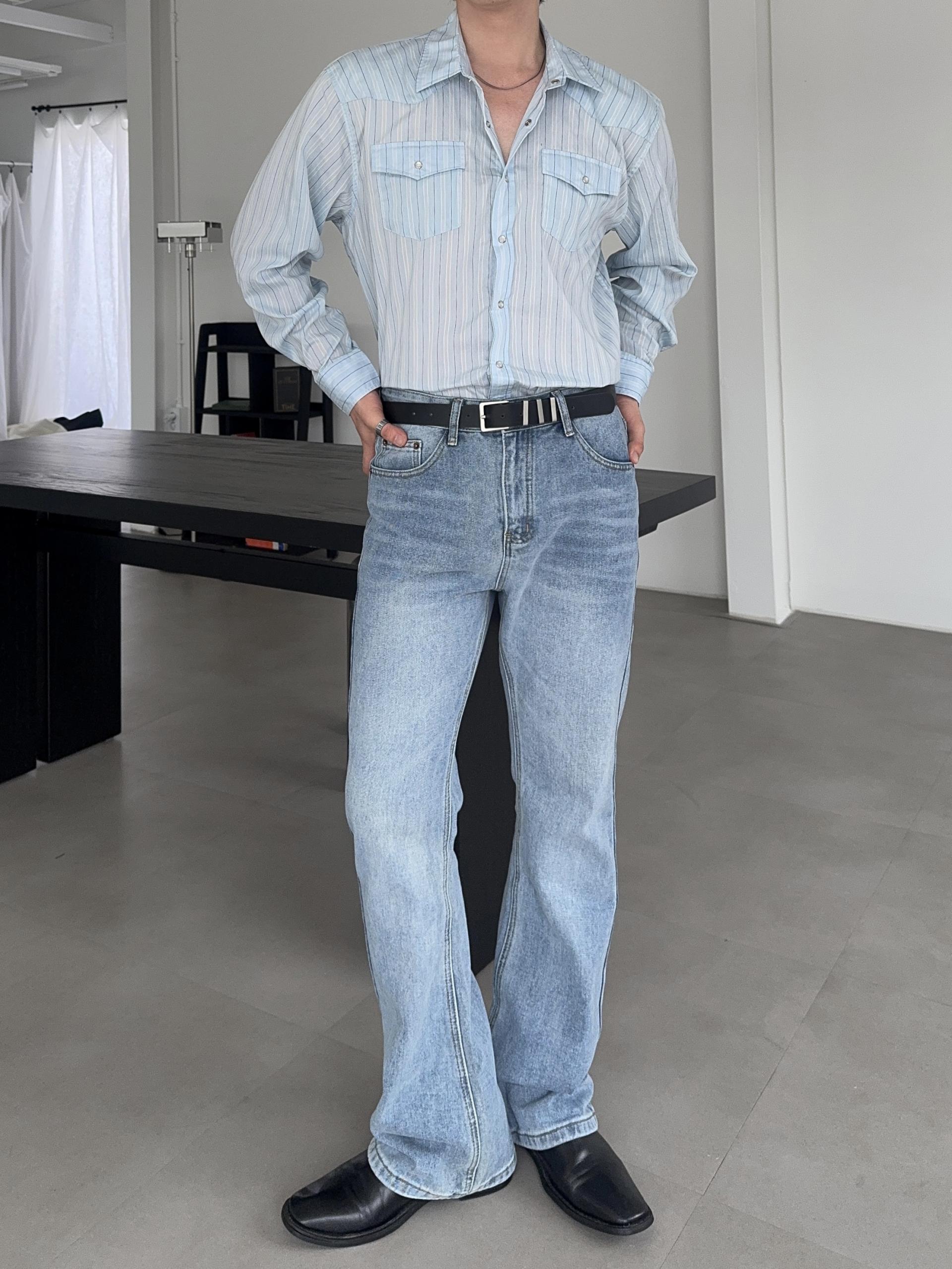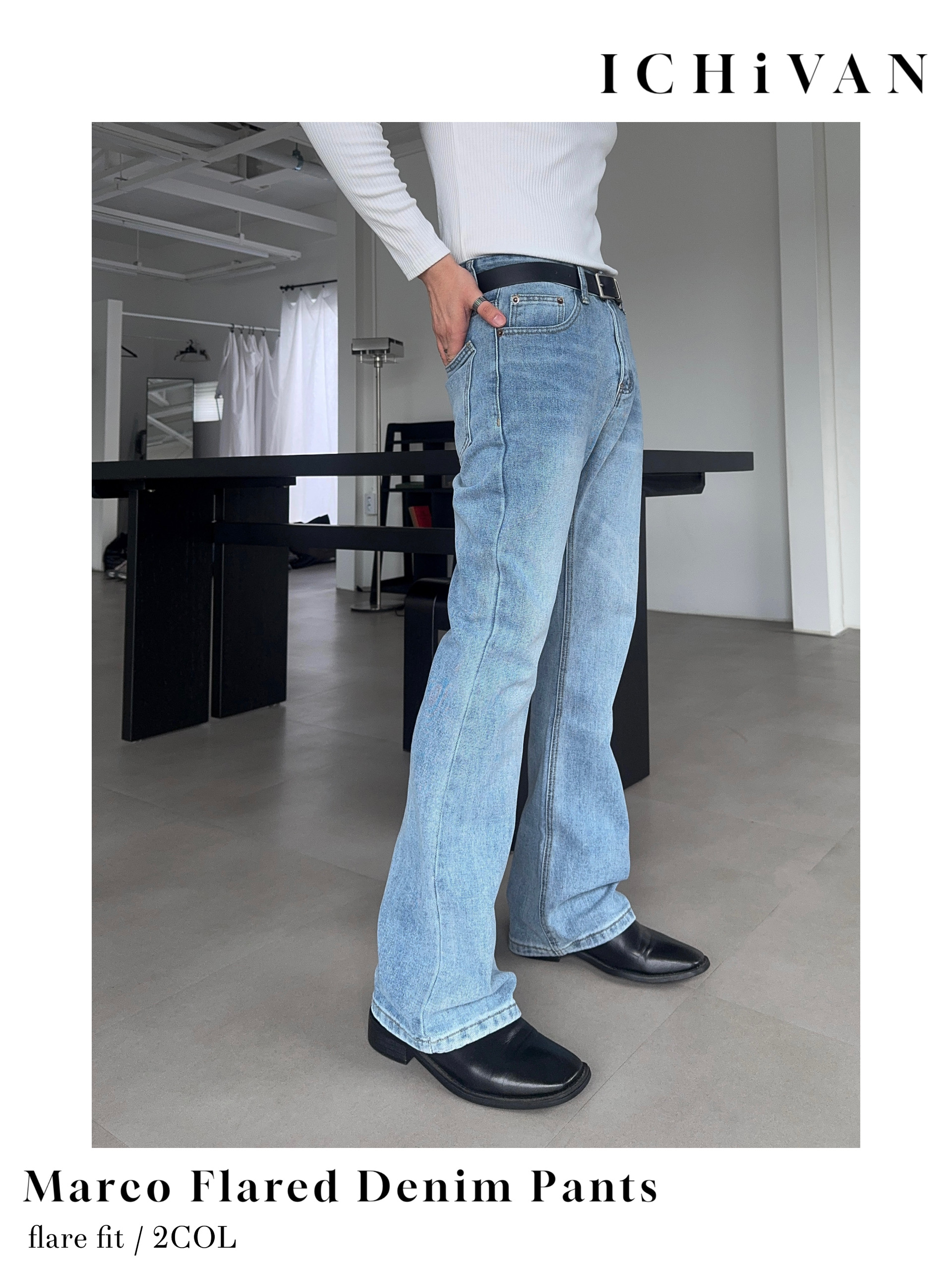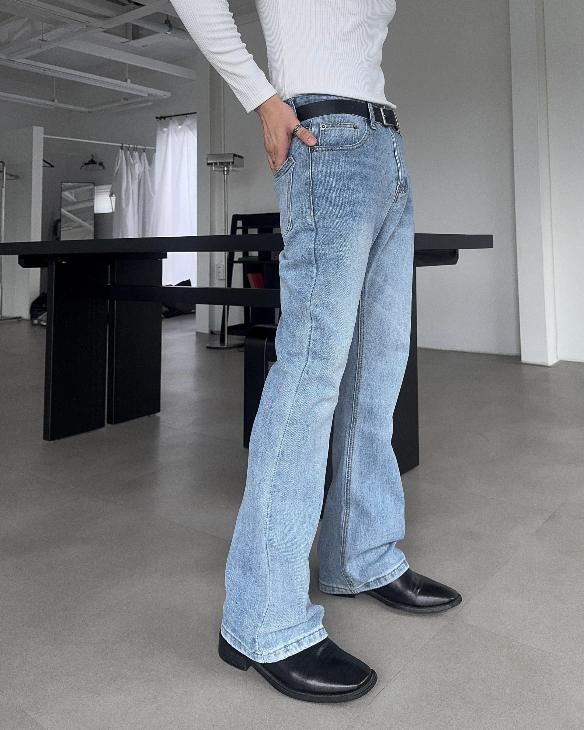-깔끔한 디자인의 플레어 데님 팬츠