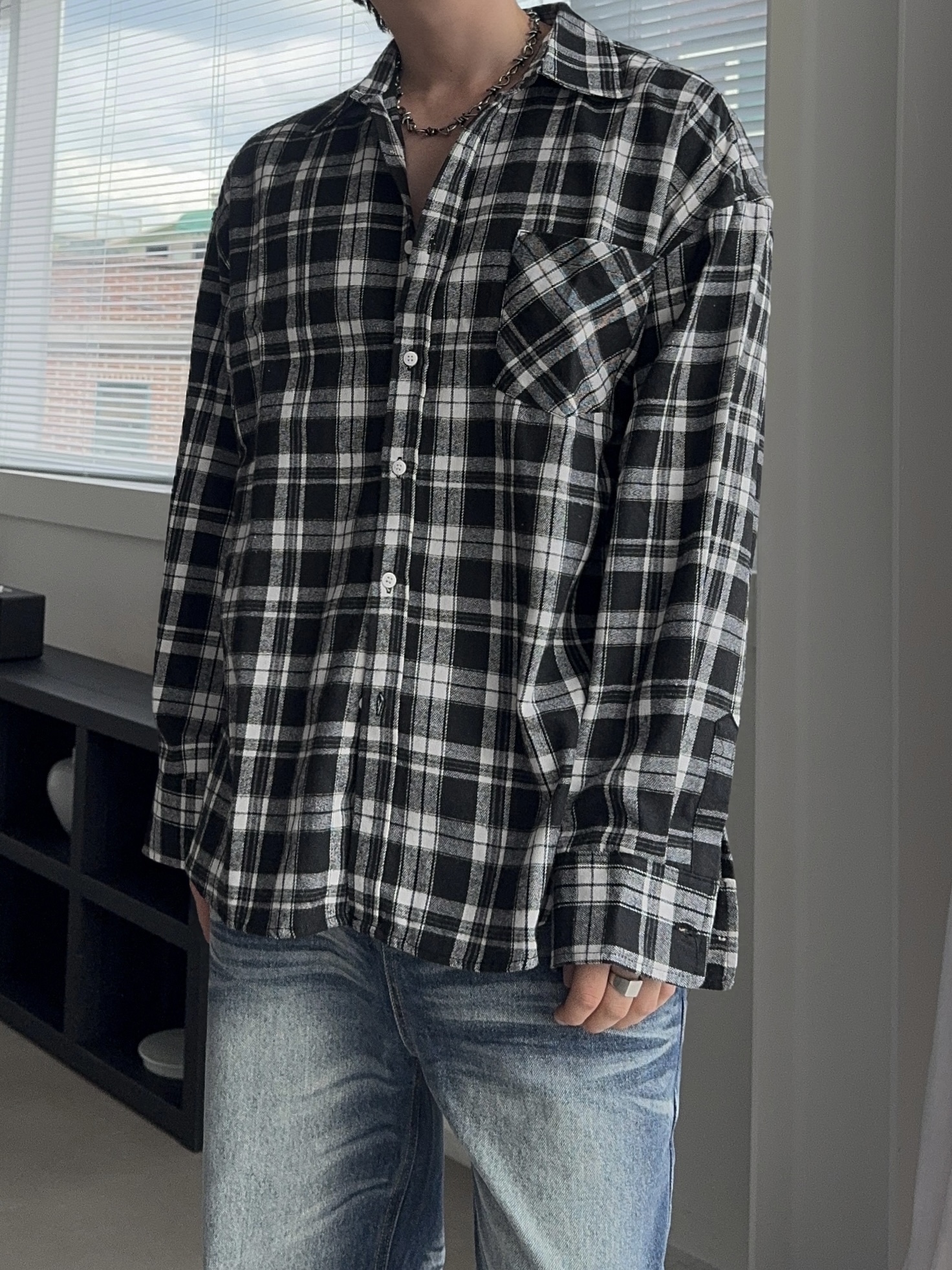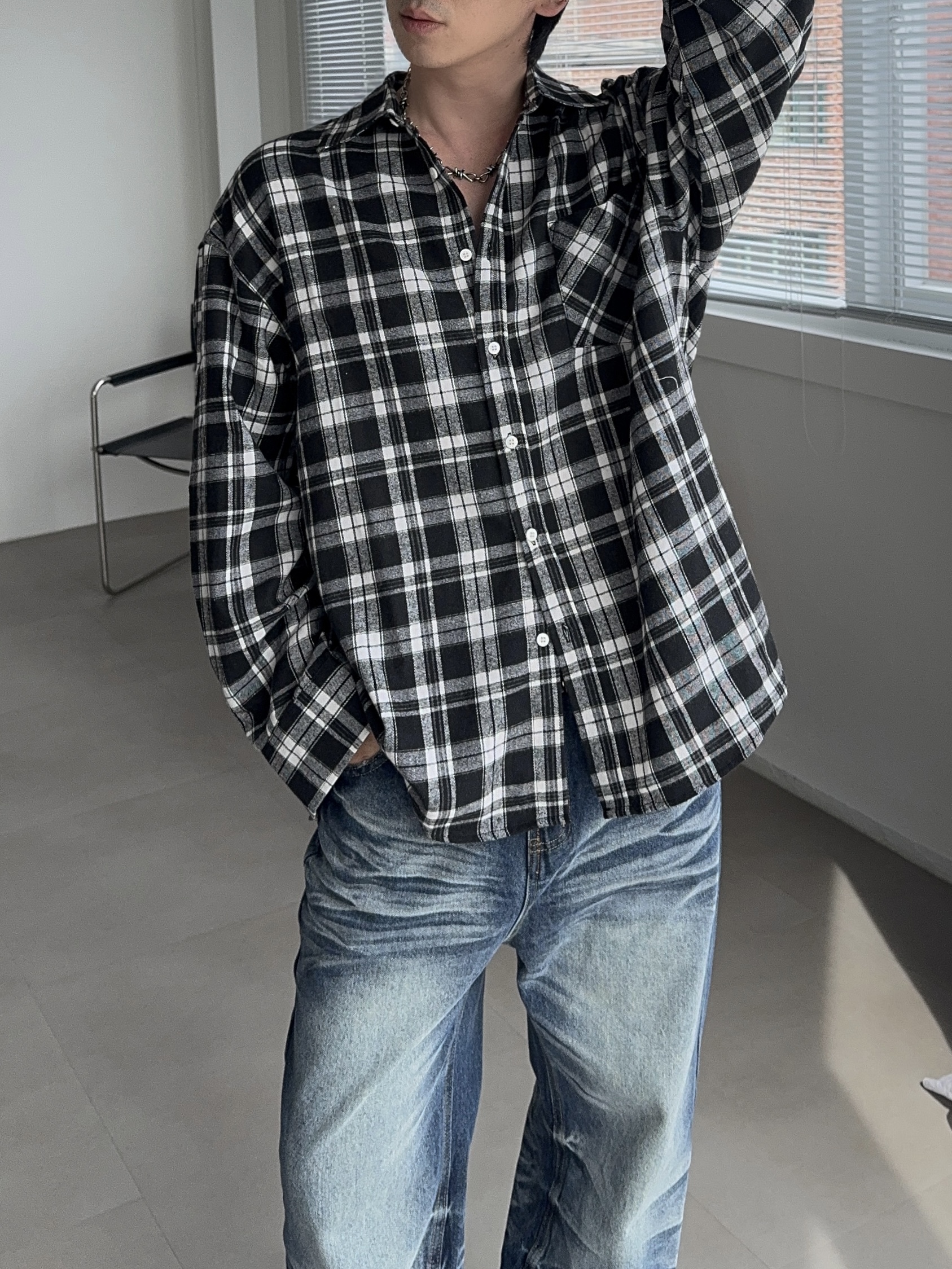 -클래식한 체크 패턴의 셔츠