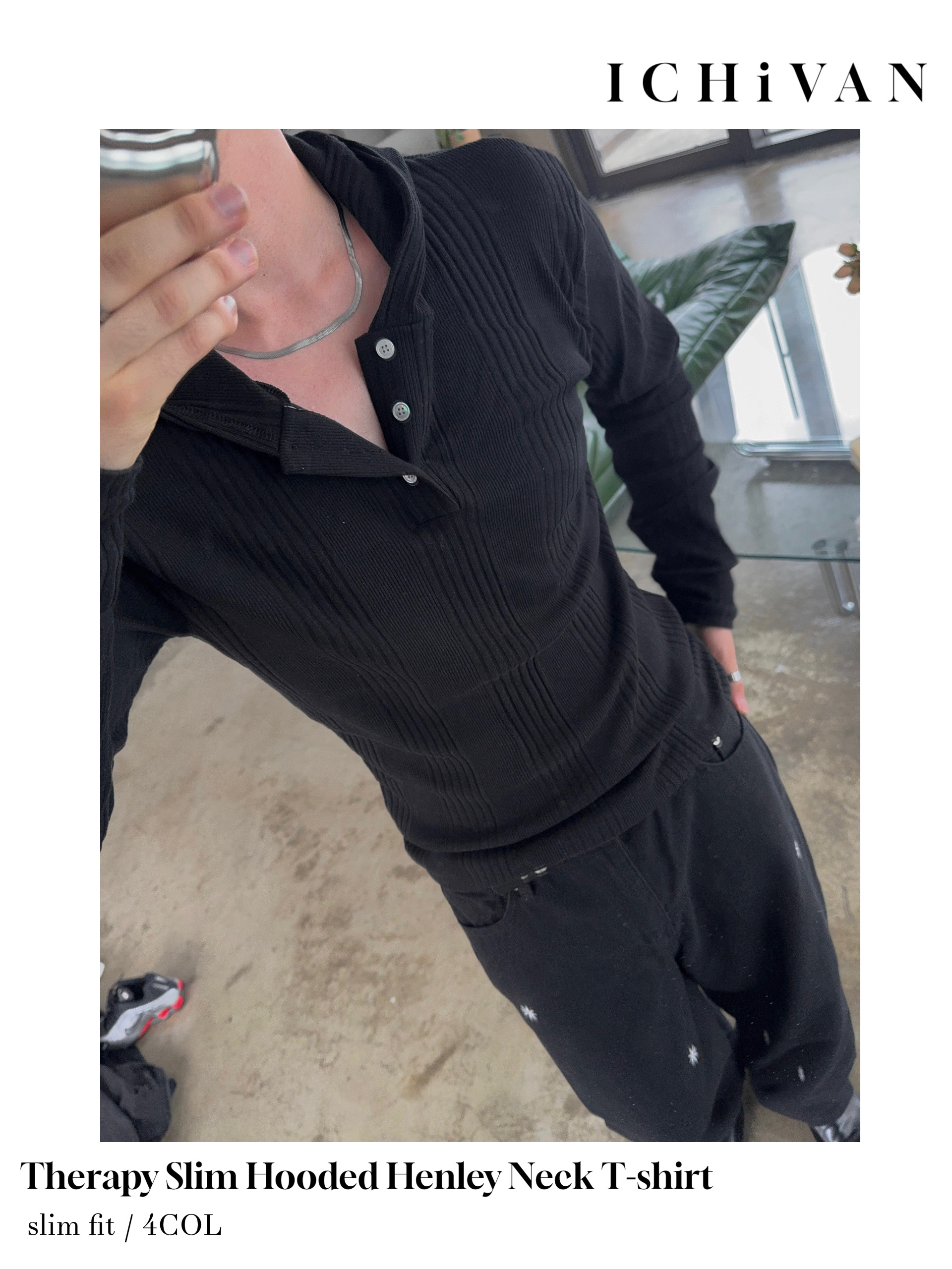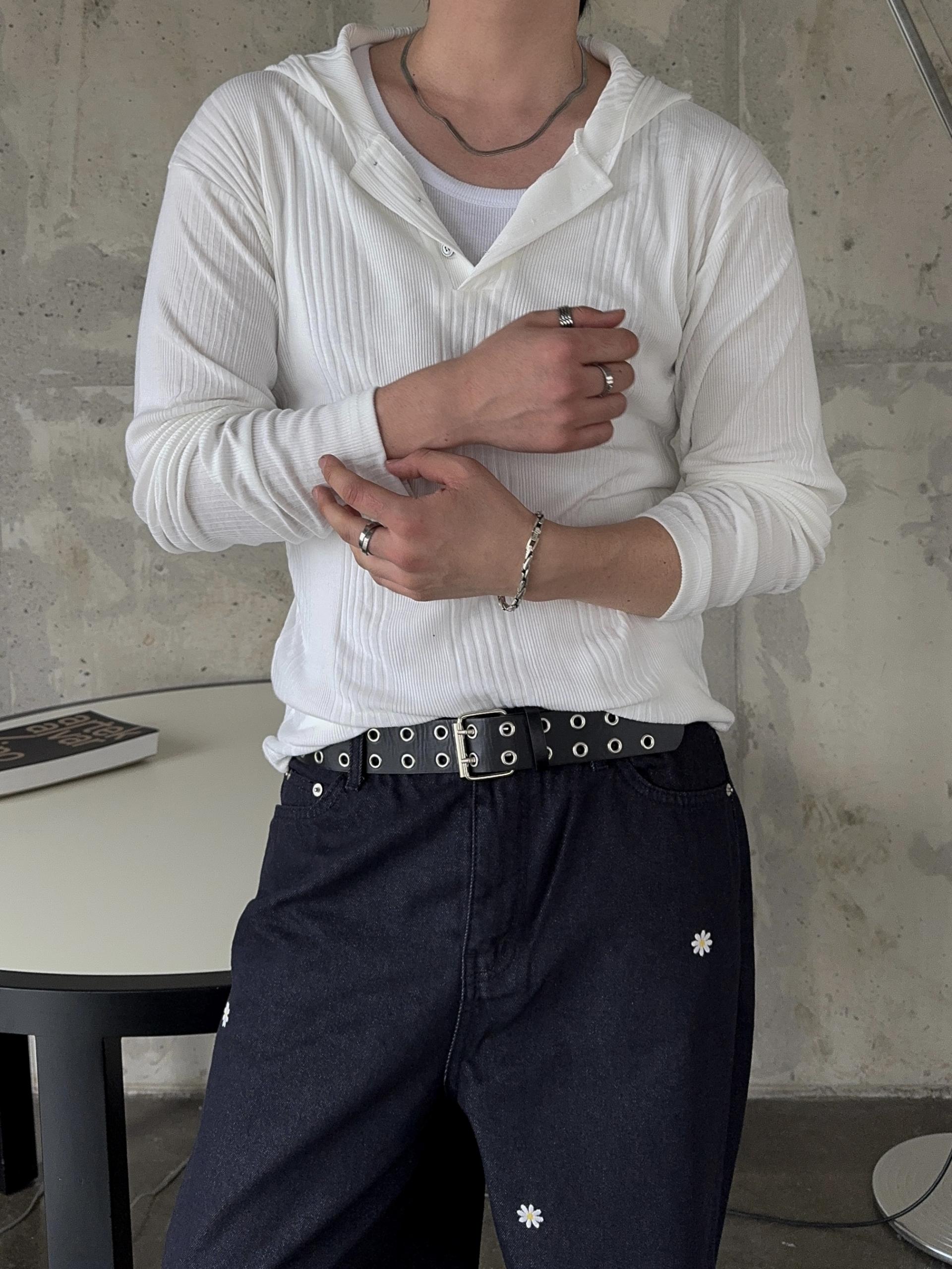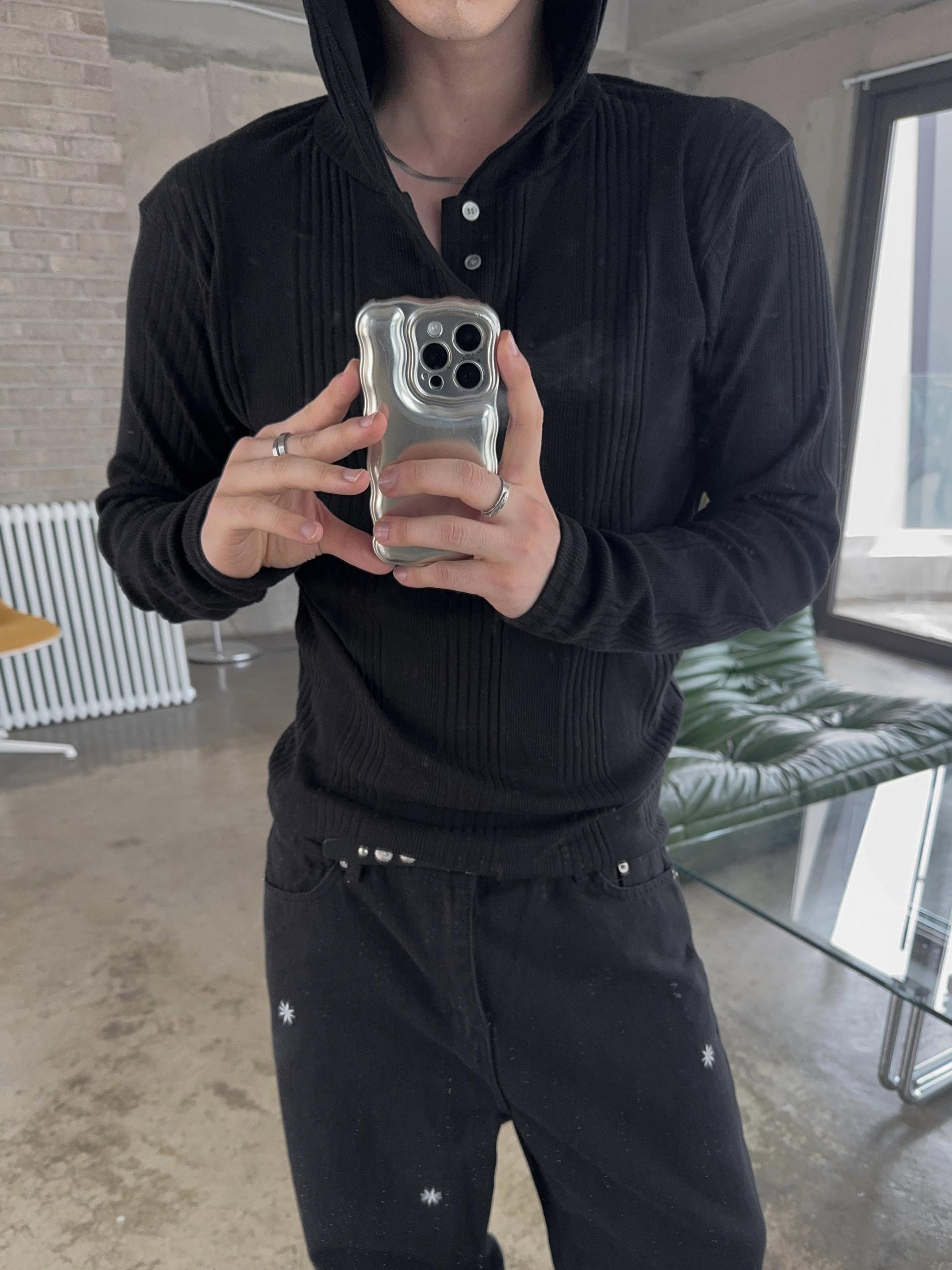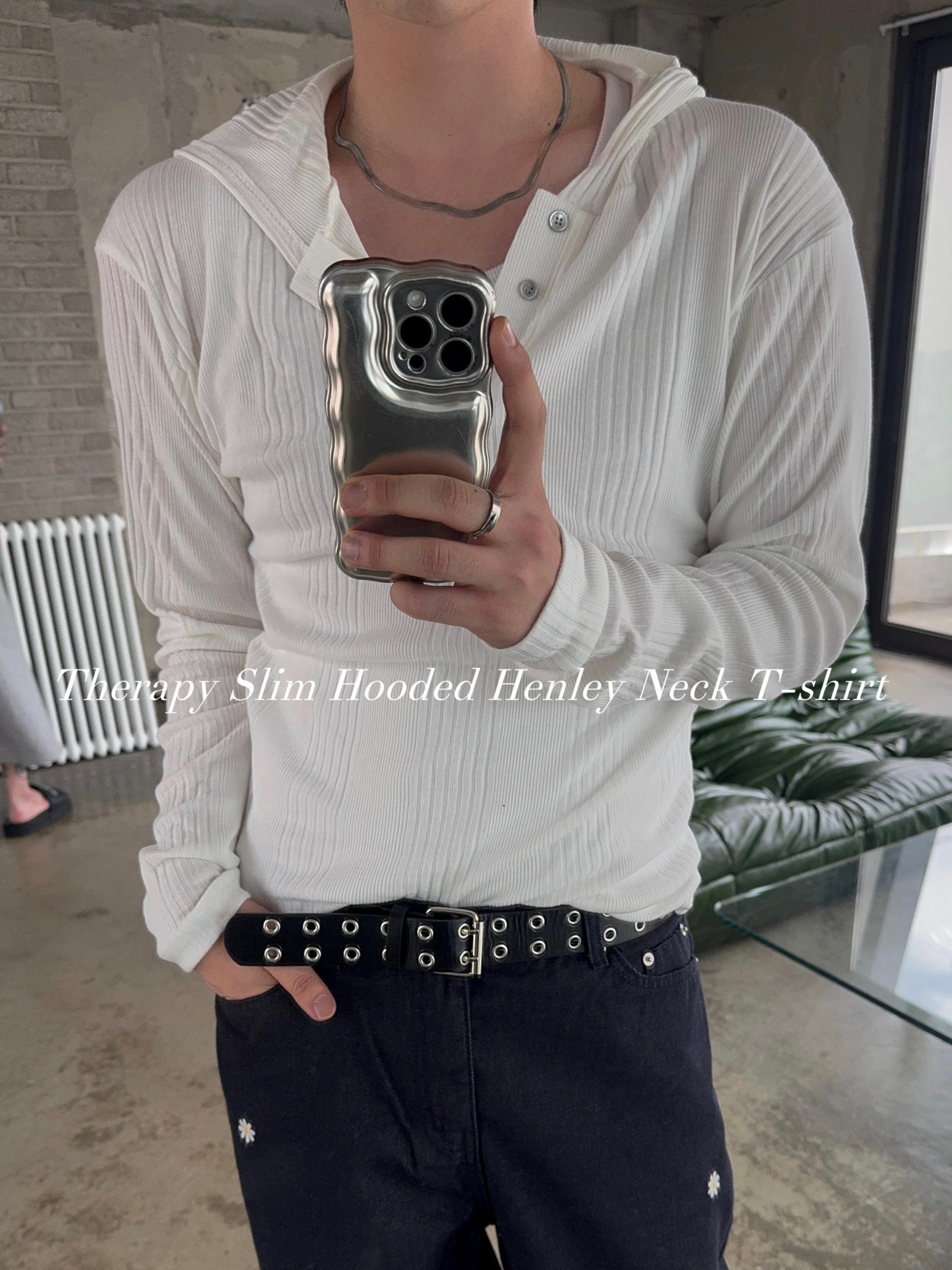 -가볍게 스타일 내기 좋은 헨리넥 후드 티셔츠