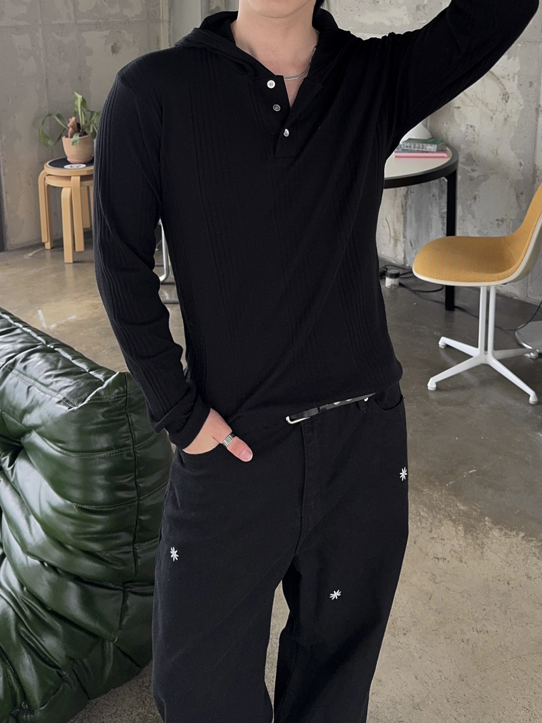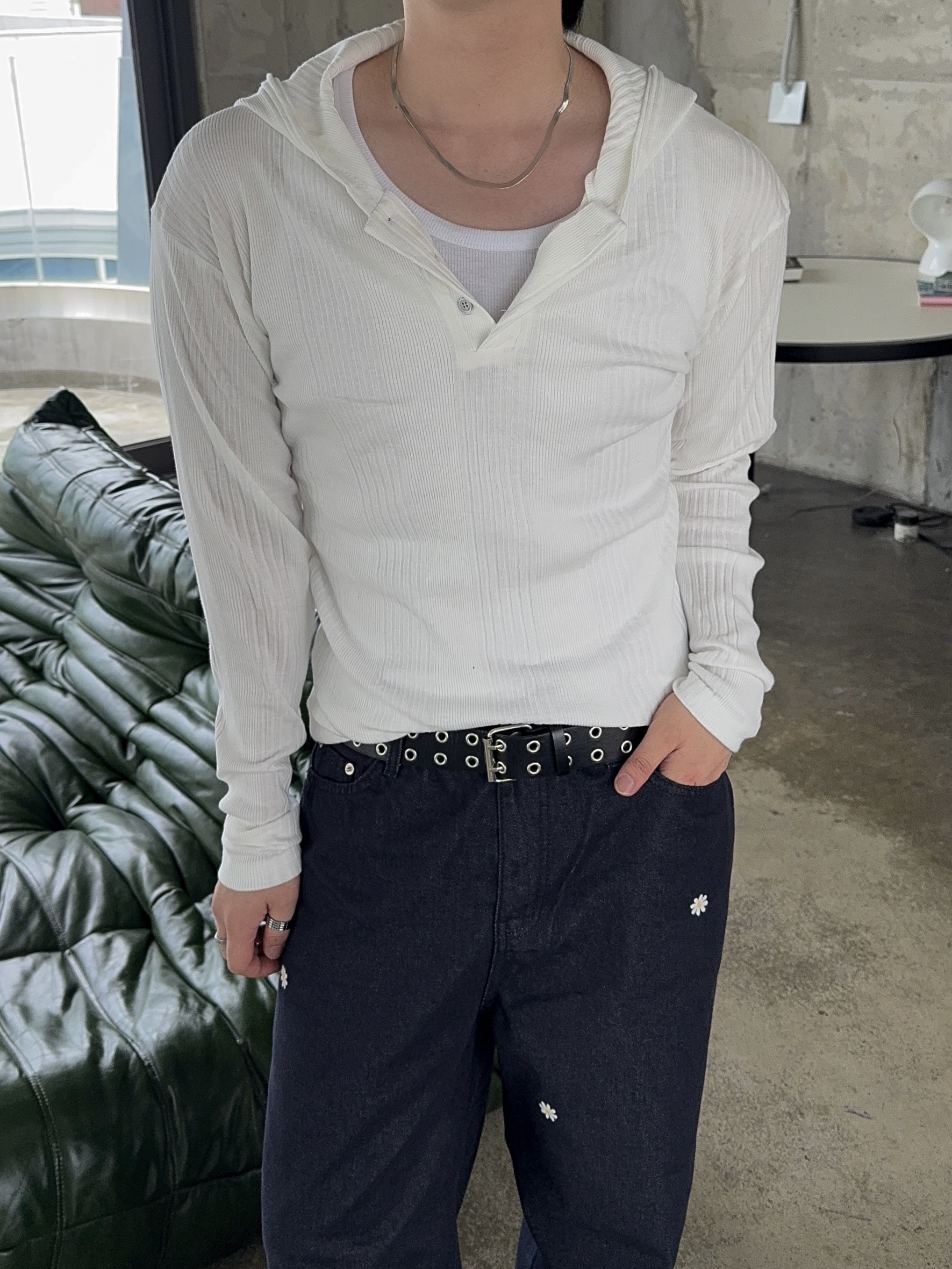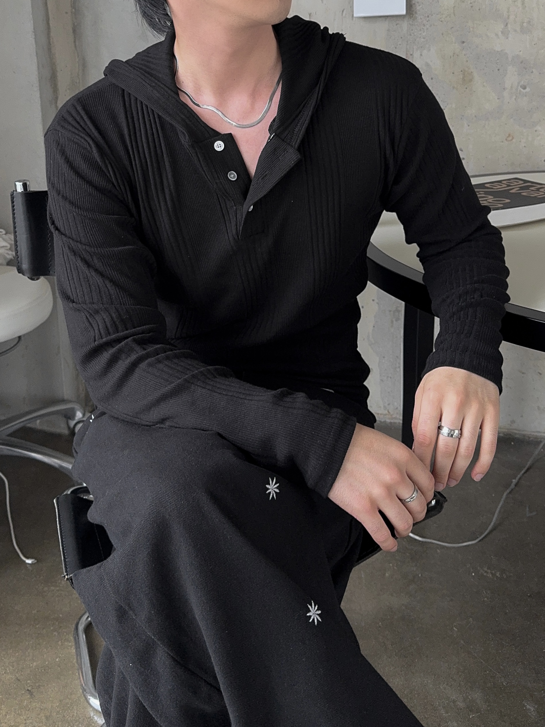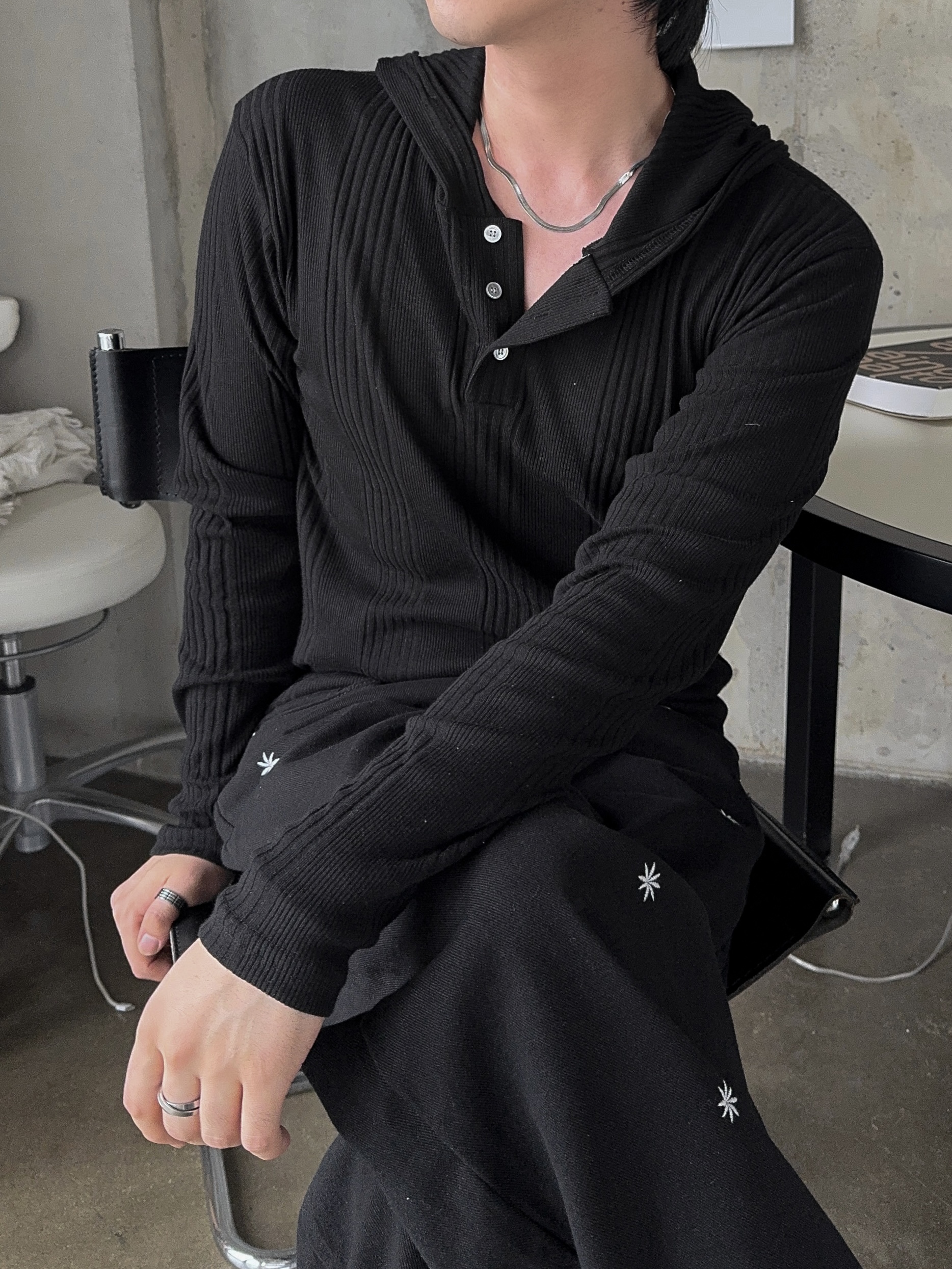 -가볍게 스타일 내기 좋은 헨리넥 후드 티셔츠