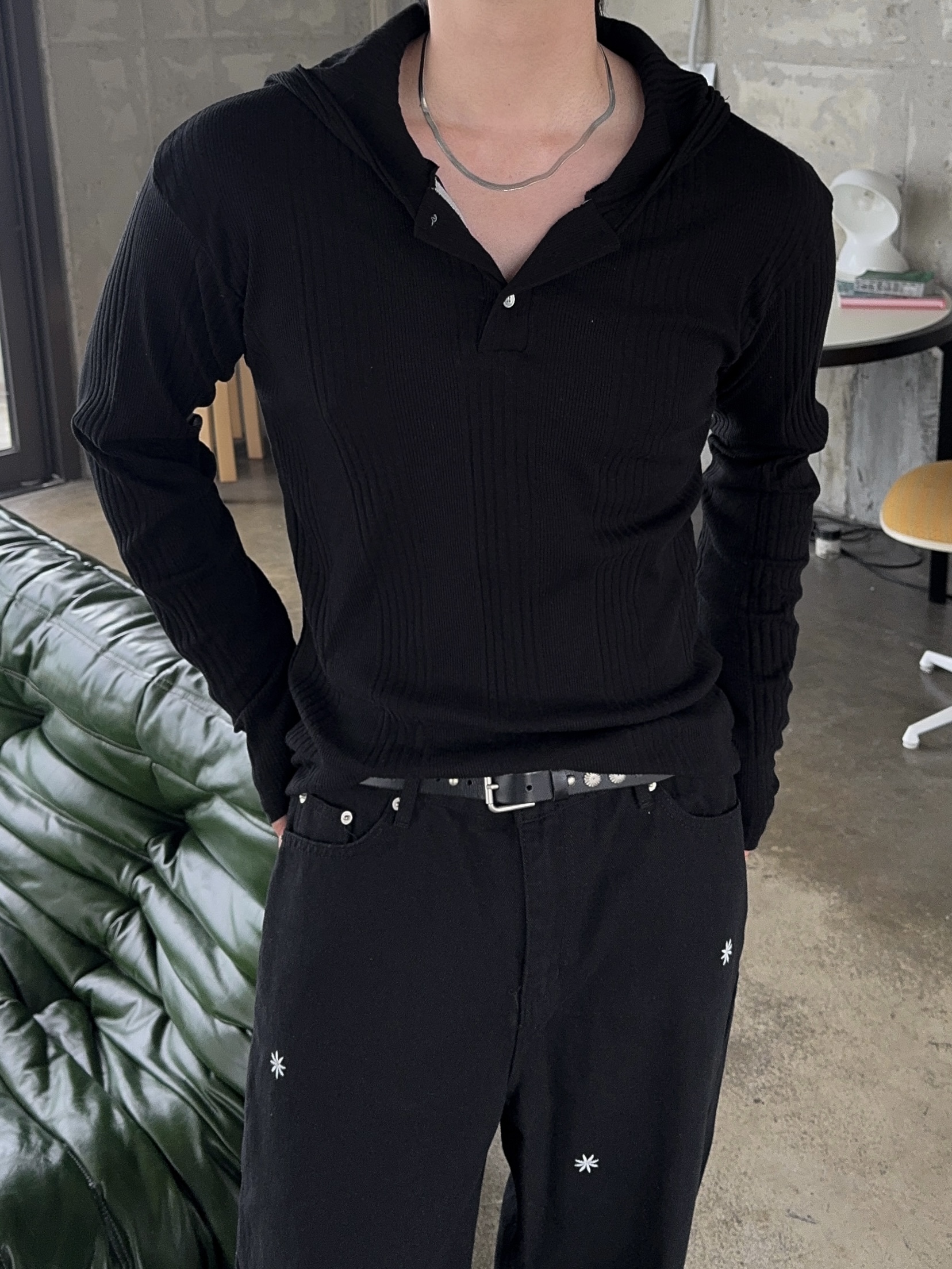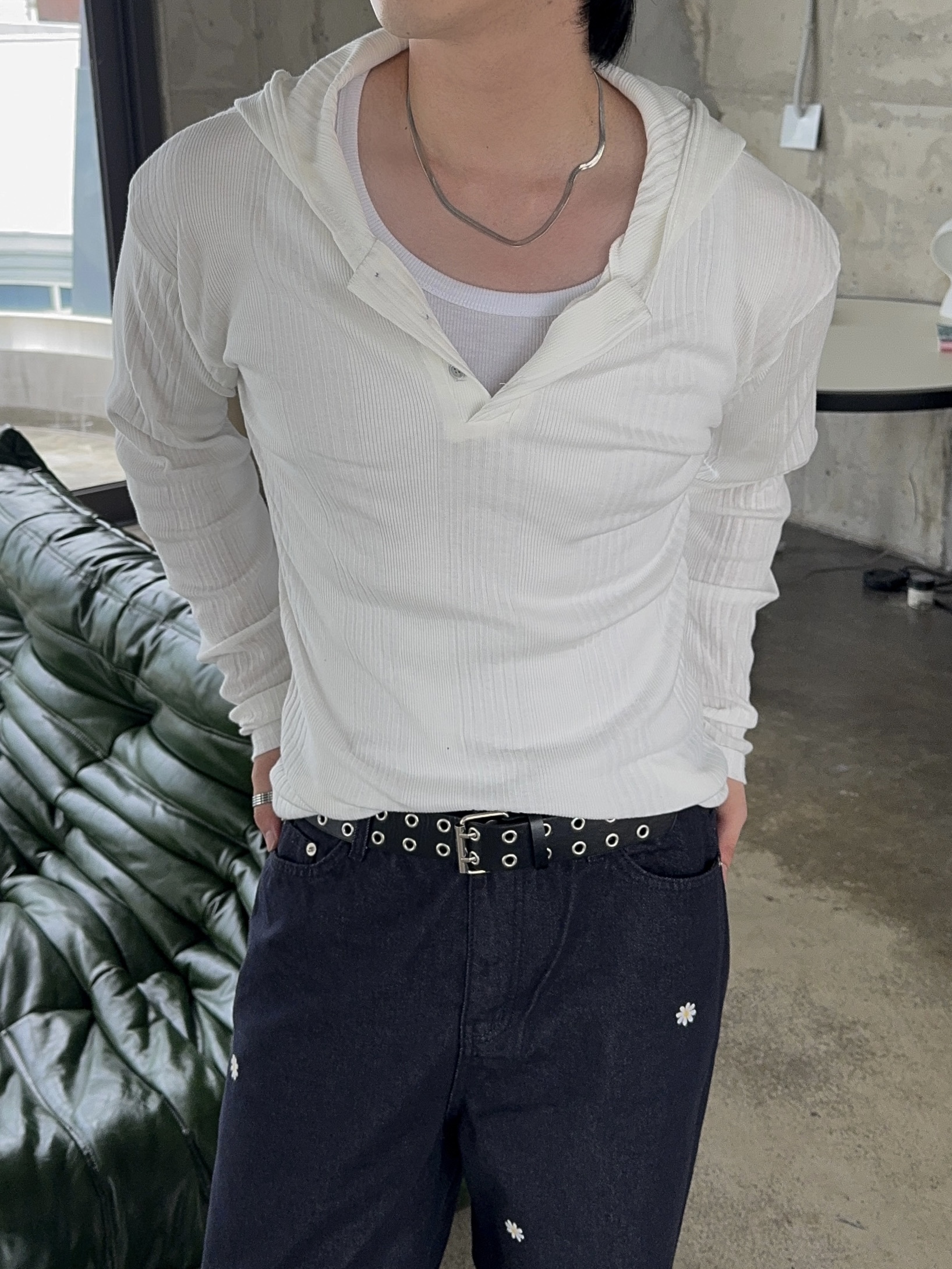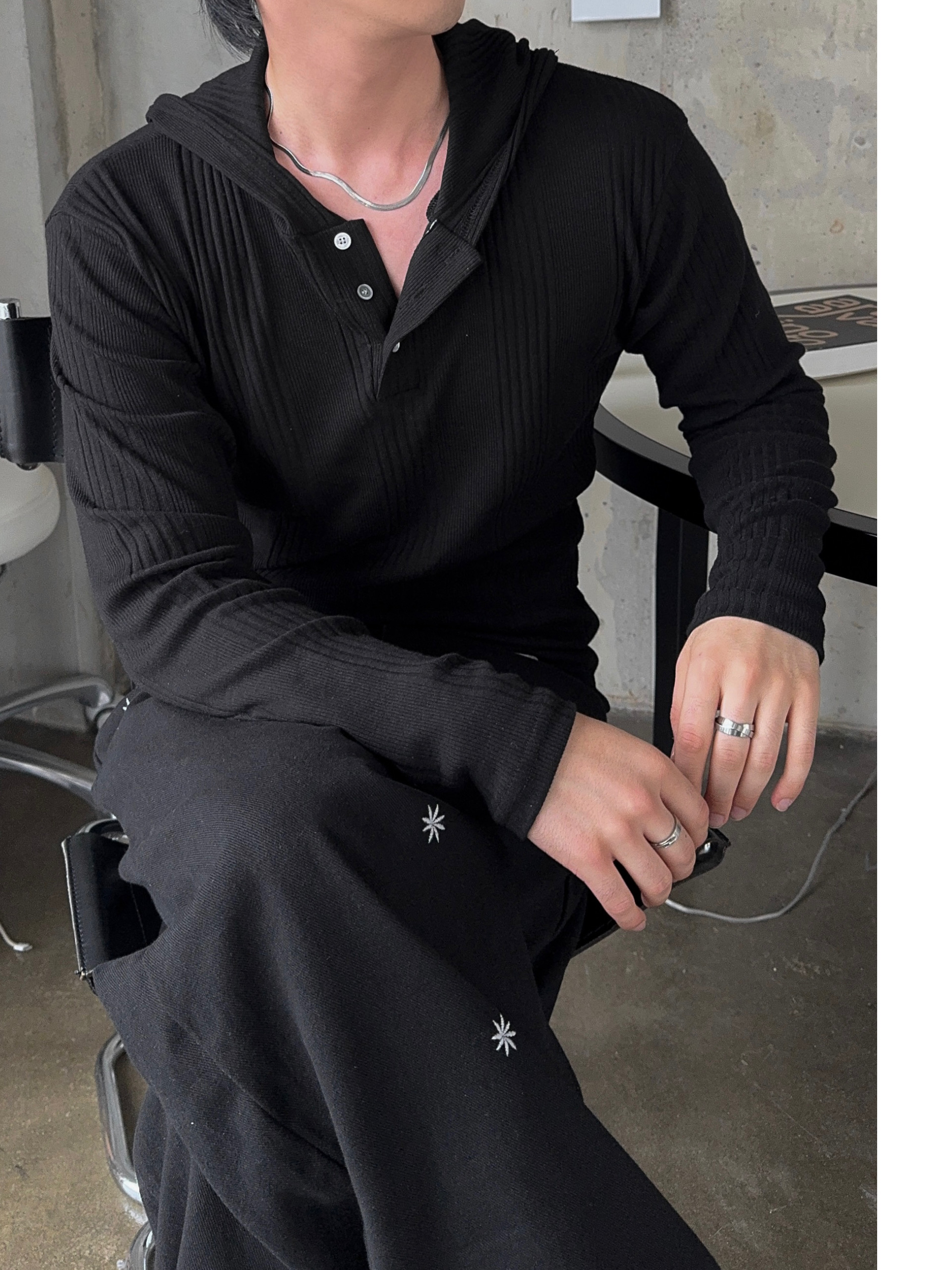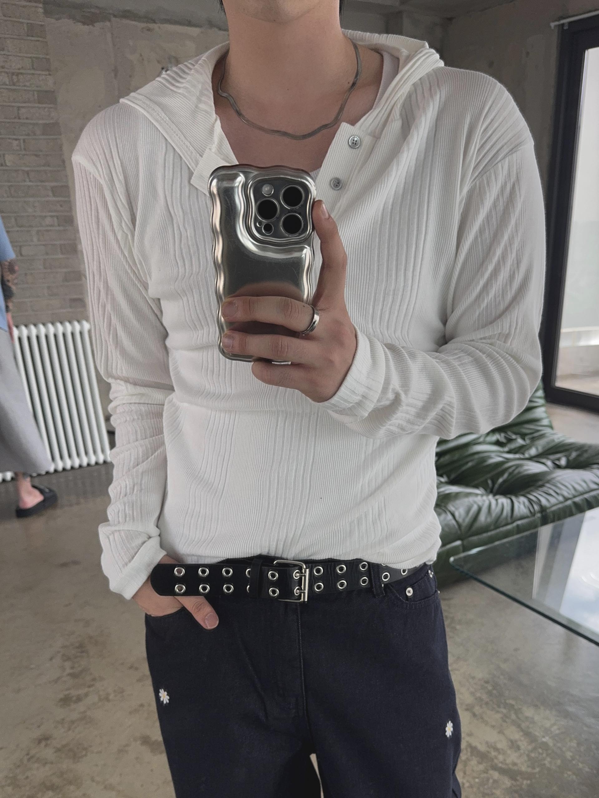 -가볍게 스타일 내기 좋은 헨리넥 후드 티셔츠