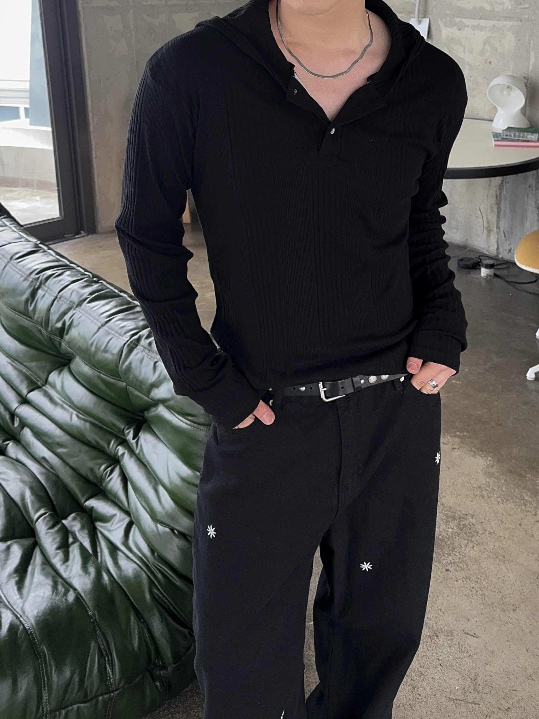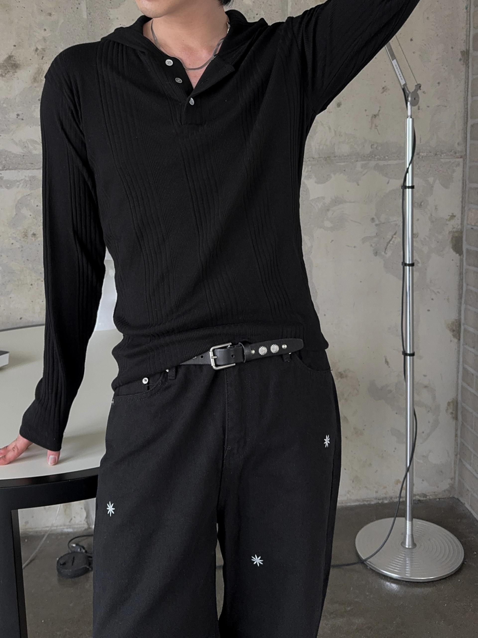-슬림하게 빠진 핏으로 체형에 따라 머슬핏 실루엣 연출