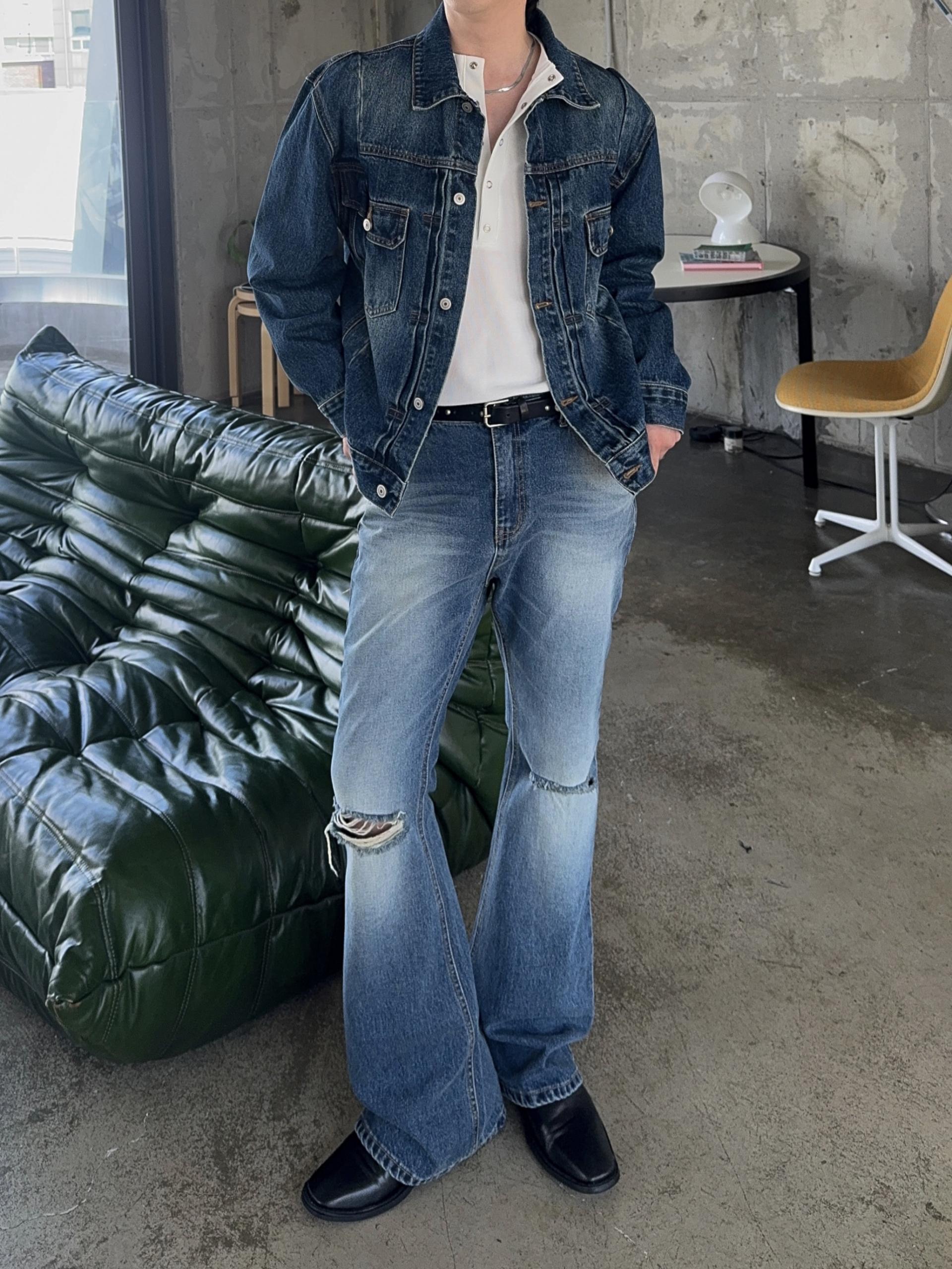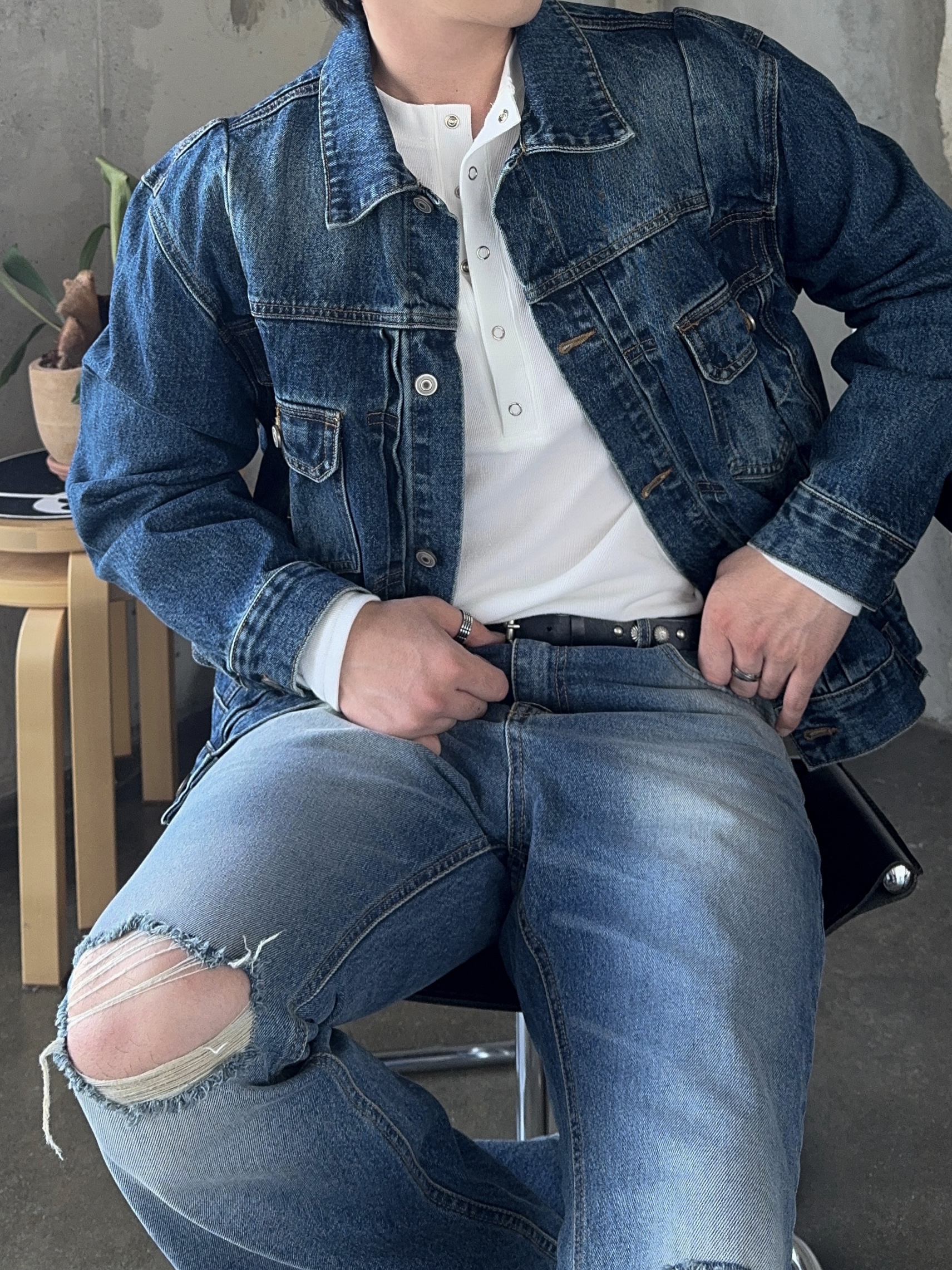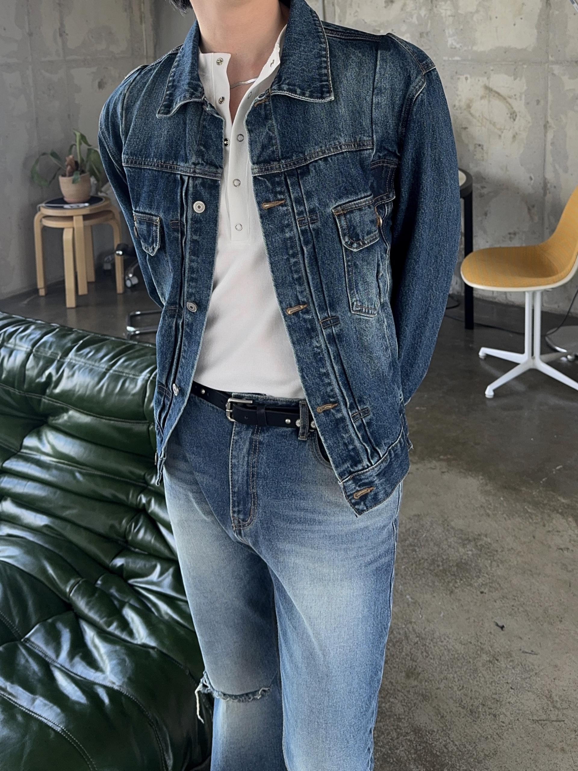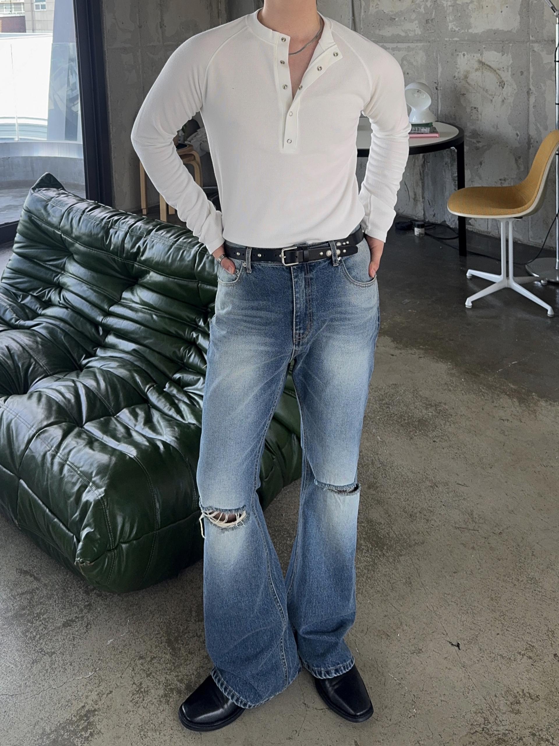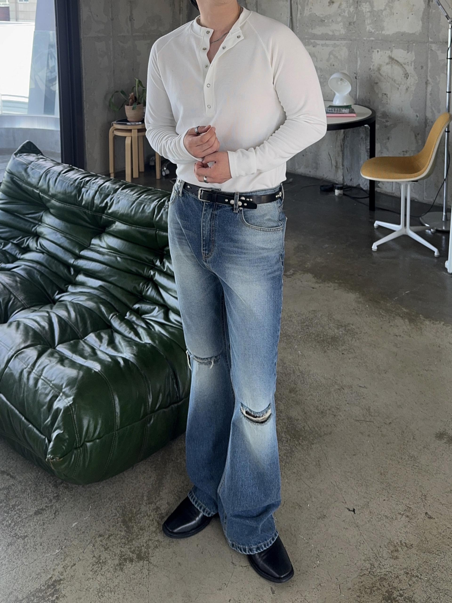 -깊은 딥 헨리넥 디자인과 실버 버튼으로 고급스러운 포인트