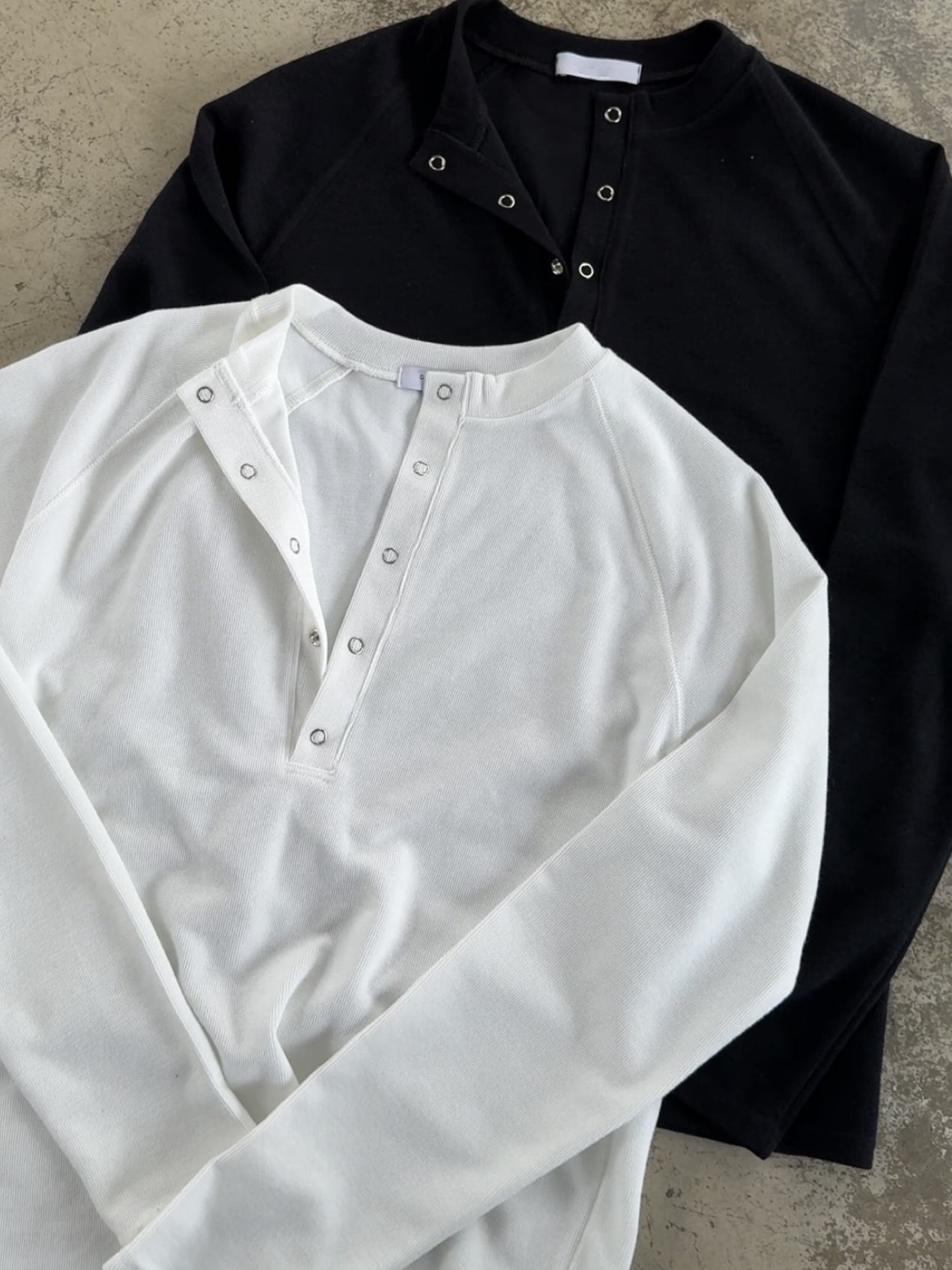 -부드럽고 쫀쫀한 소재로 제작된 헨리넥 티셔츠