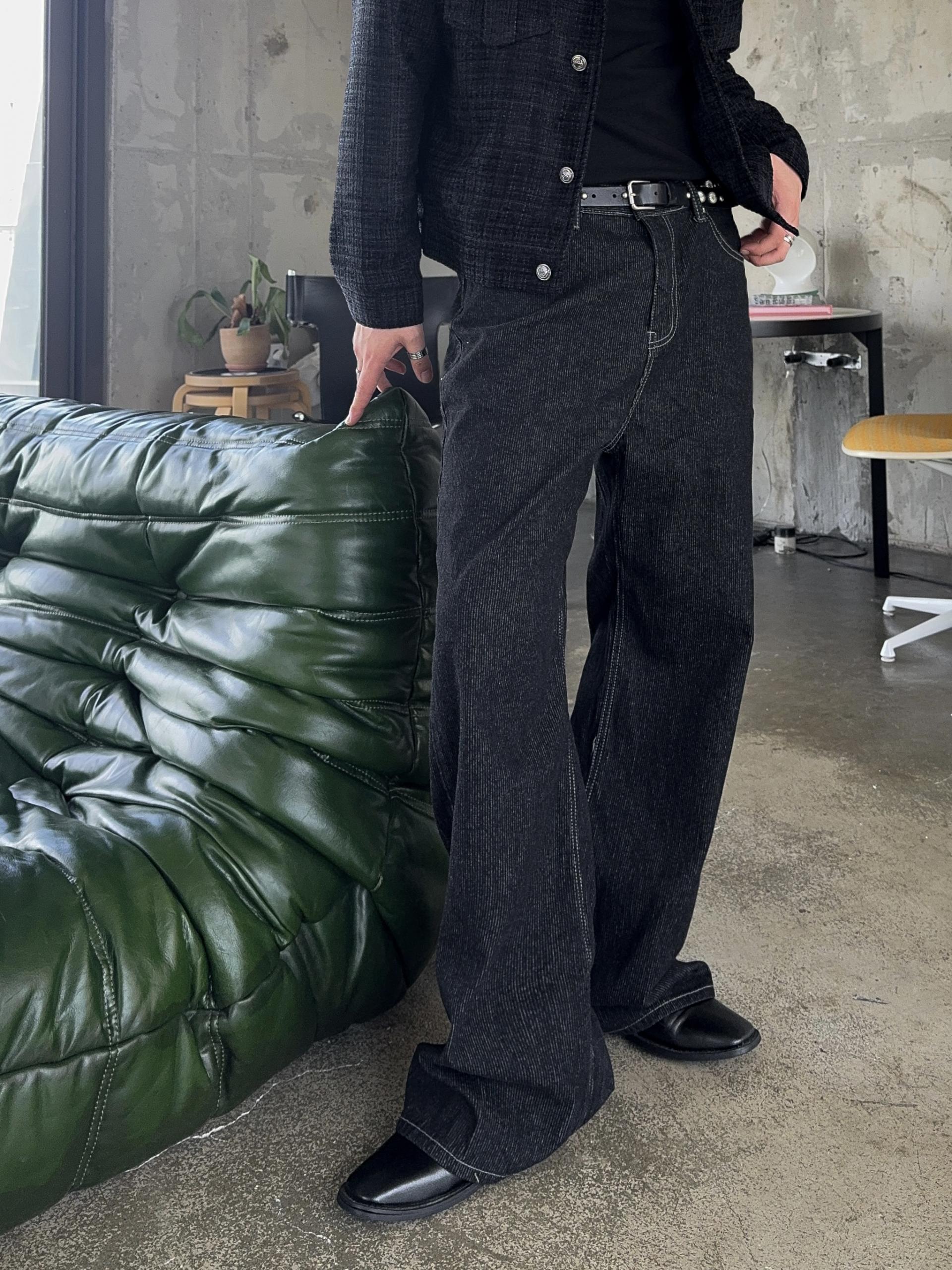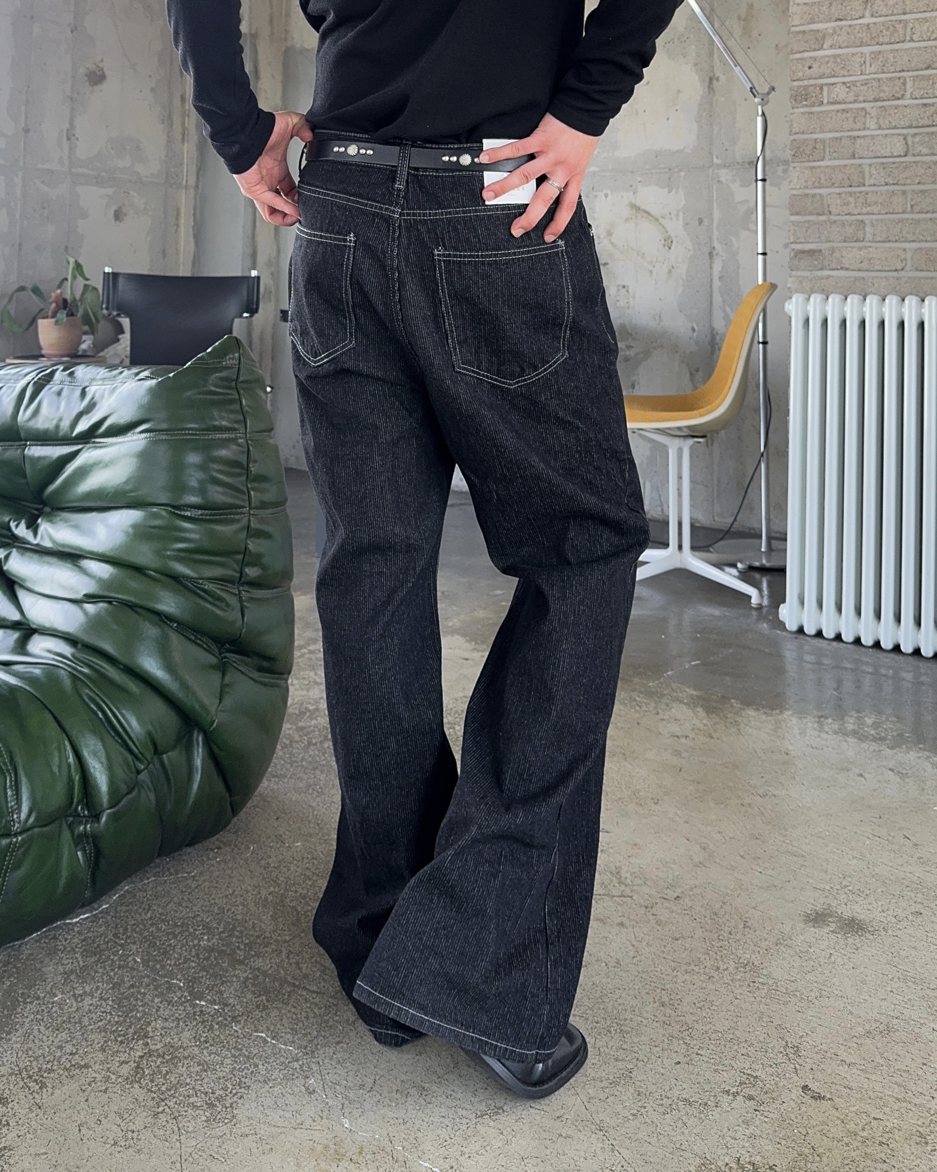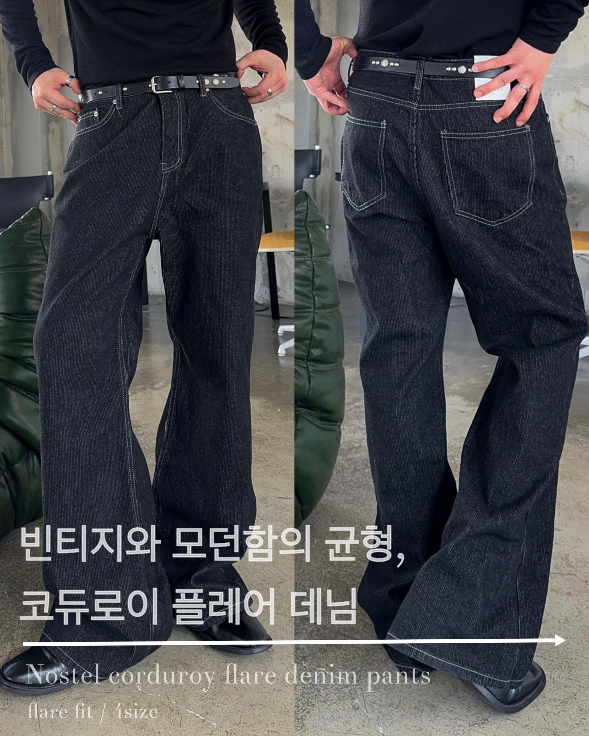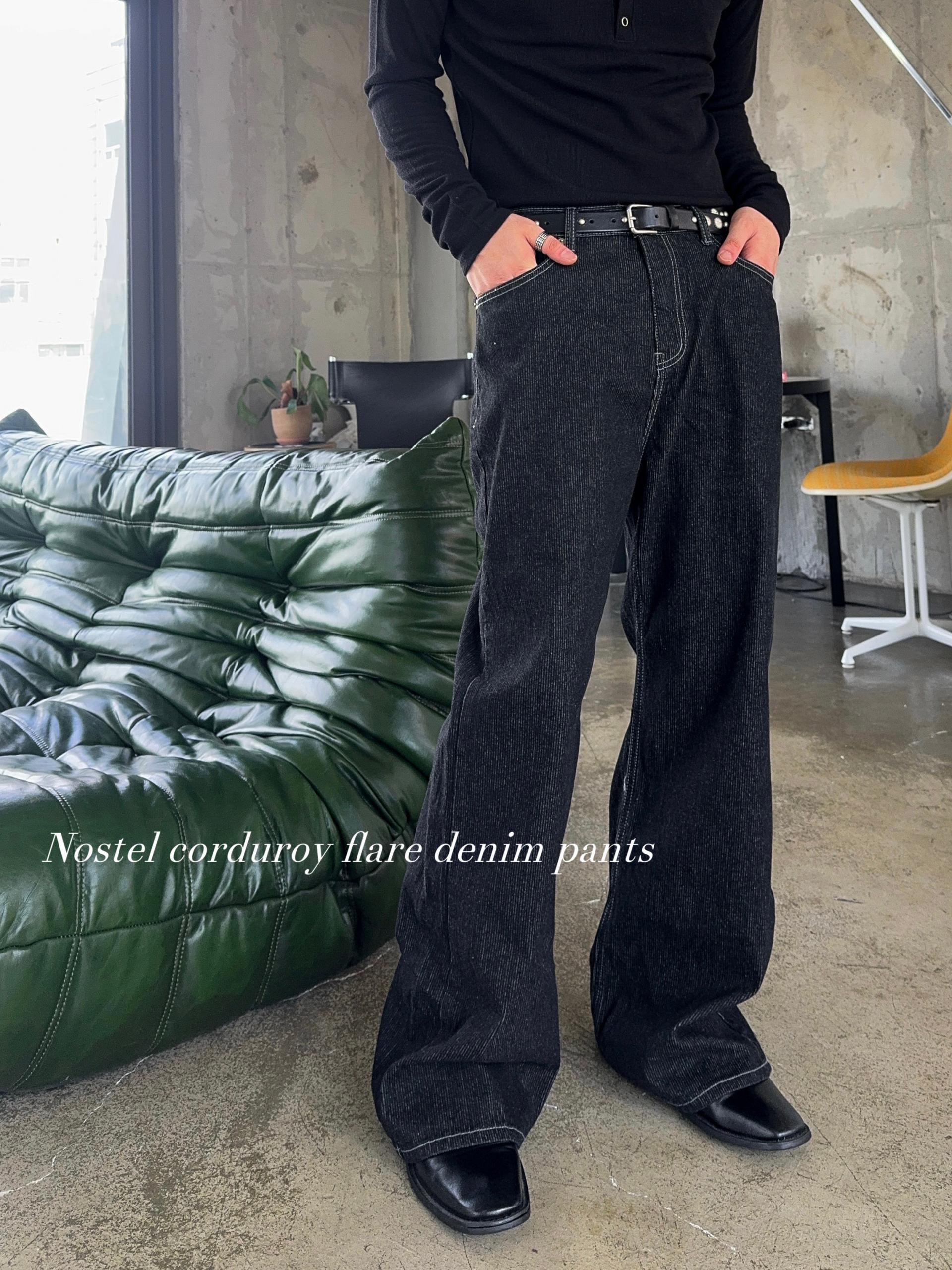 -탄탄한 코듀로이 데님 원단으로 제작된 플레어 팬츠