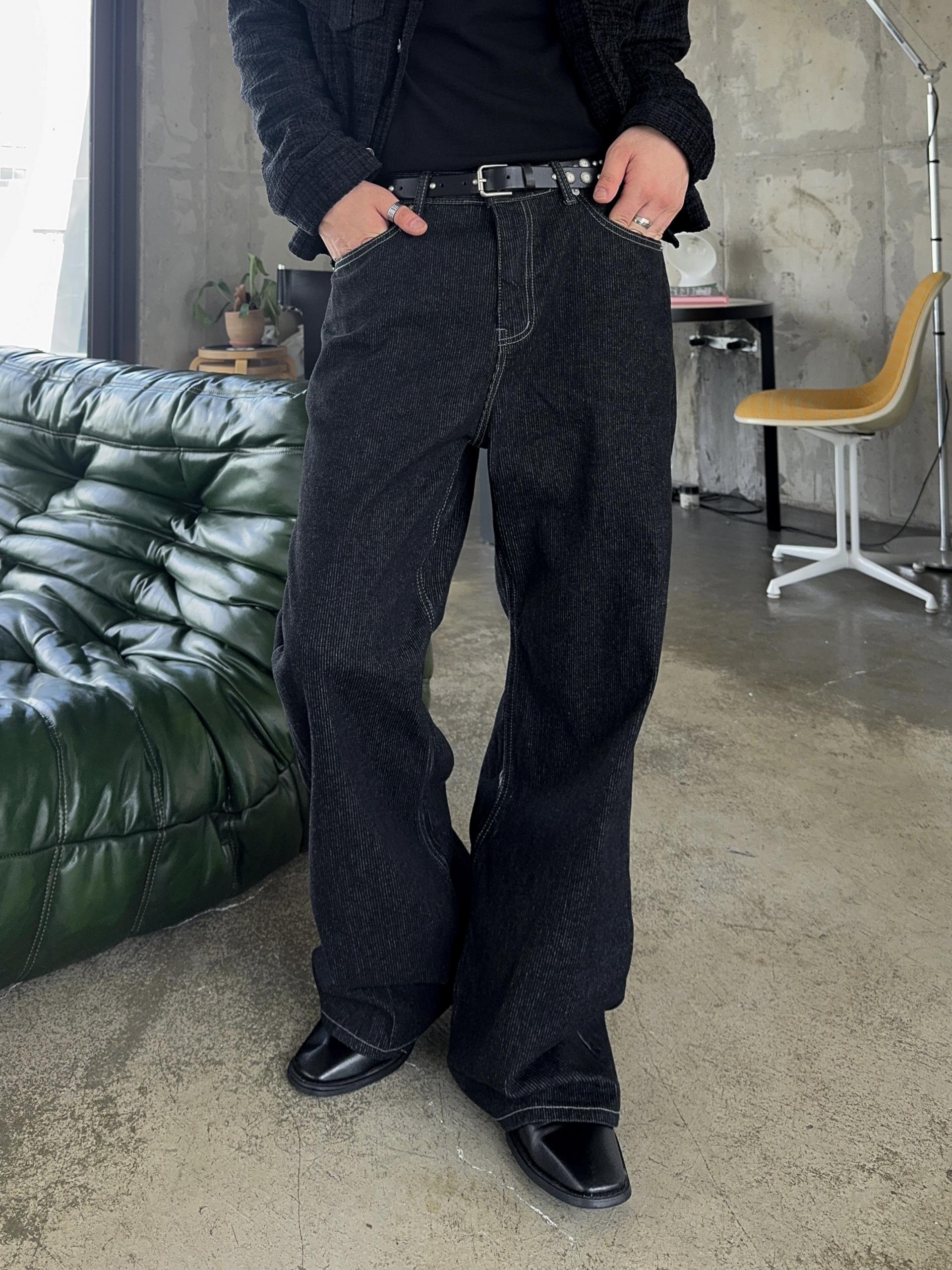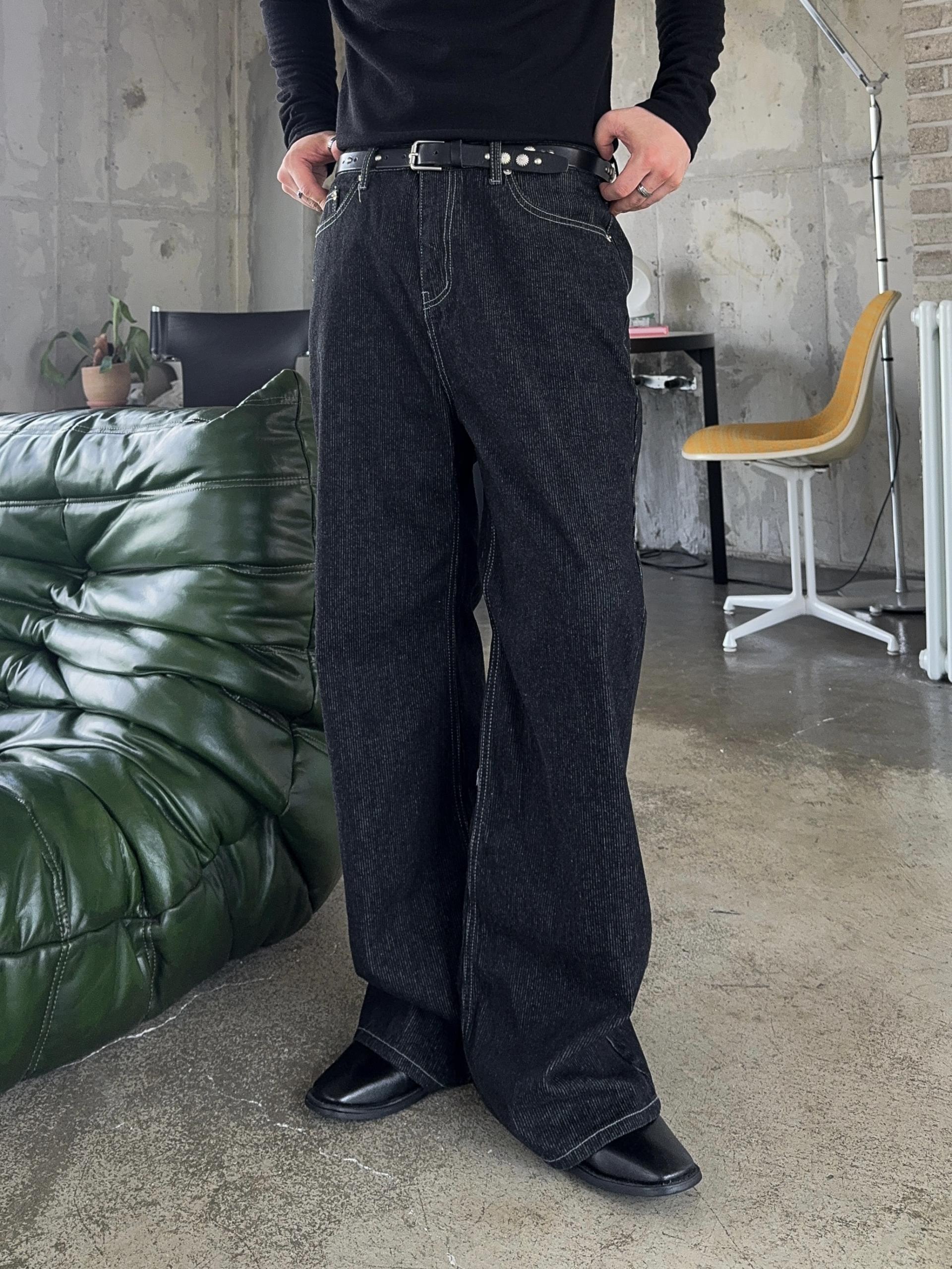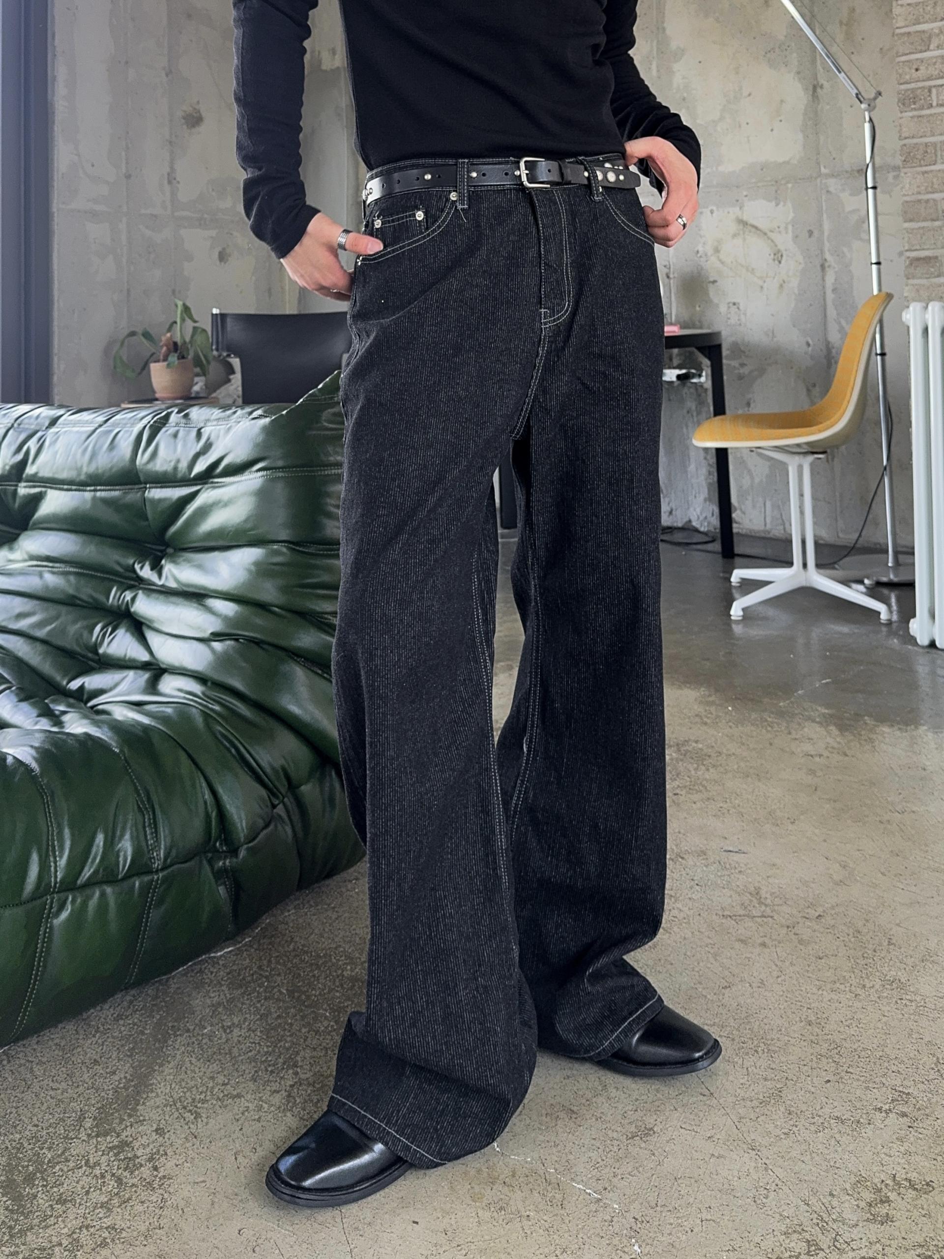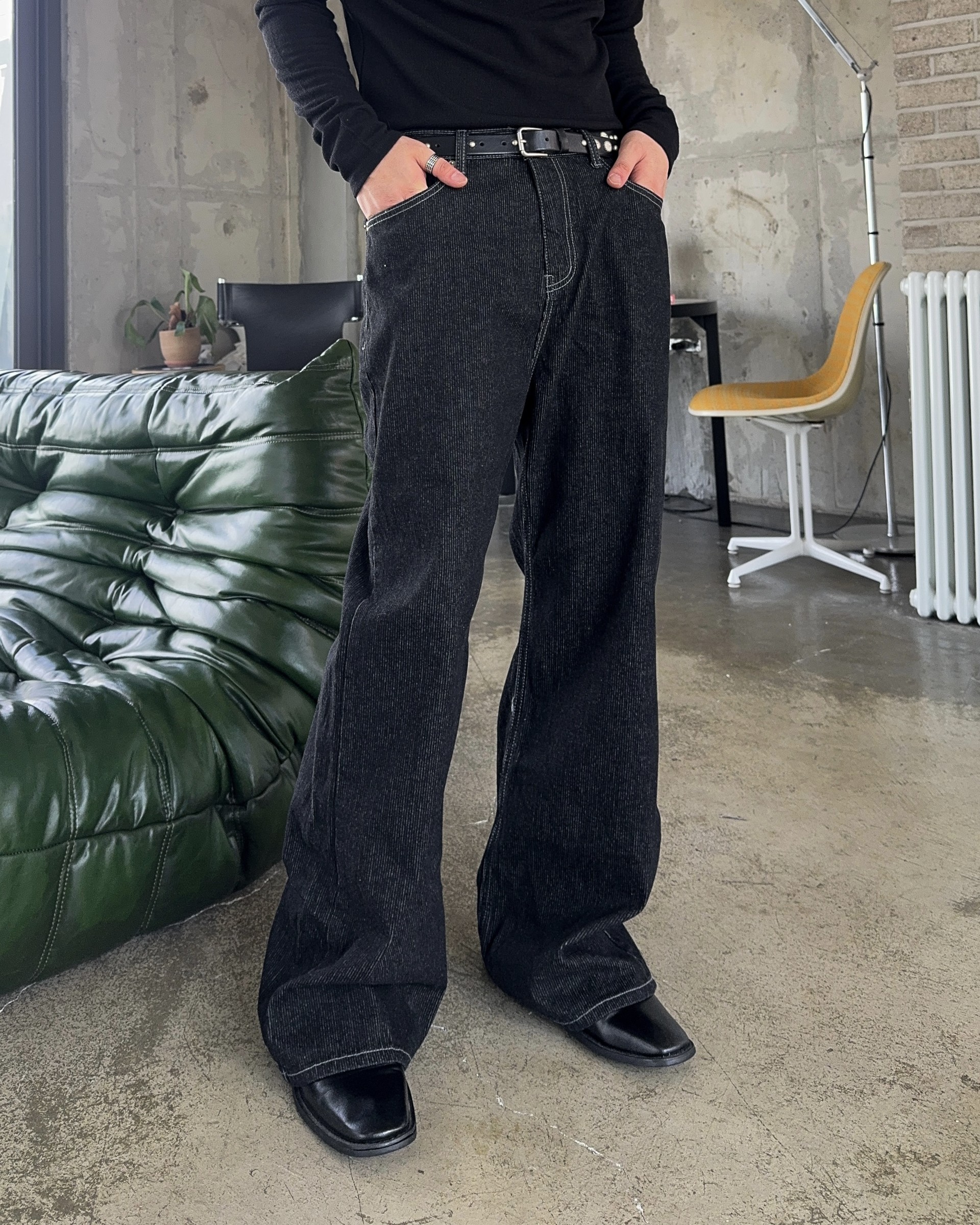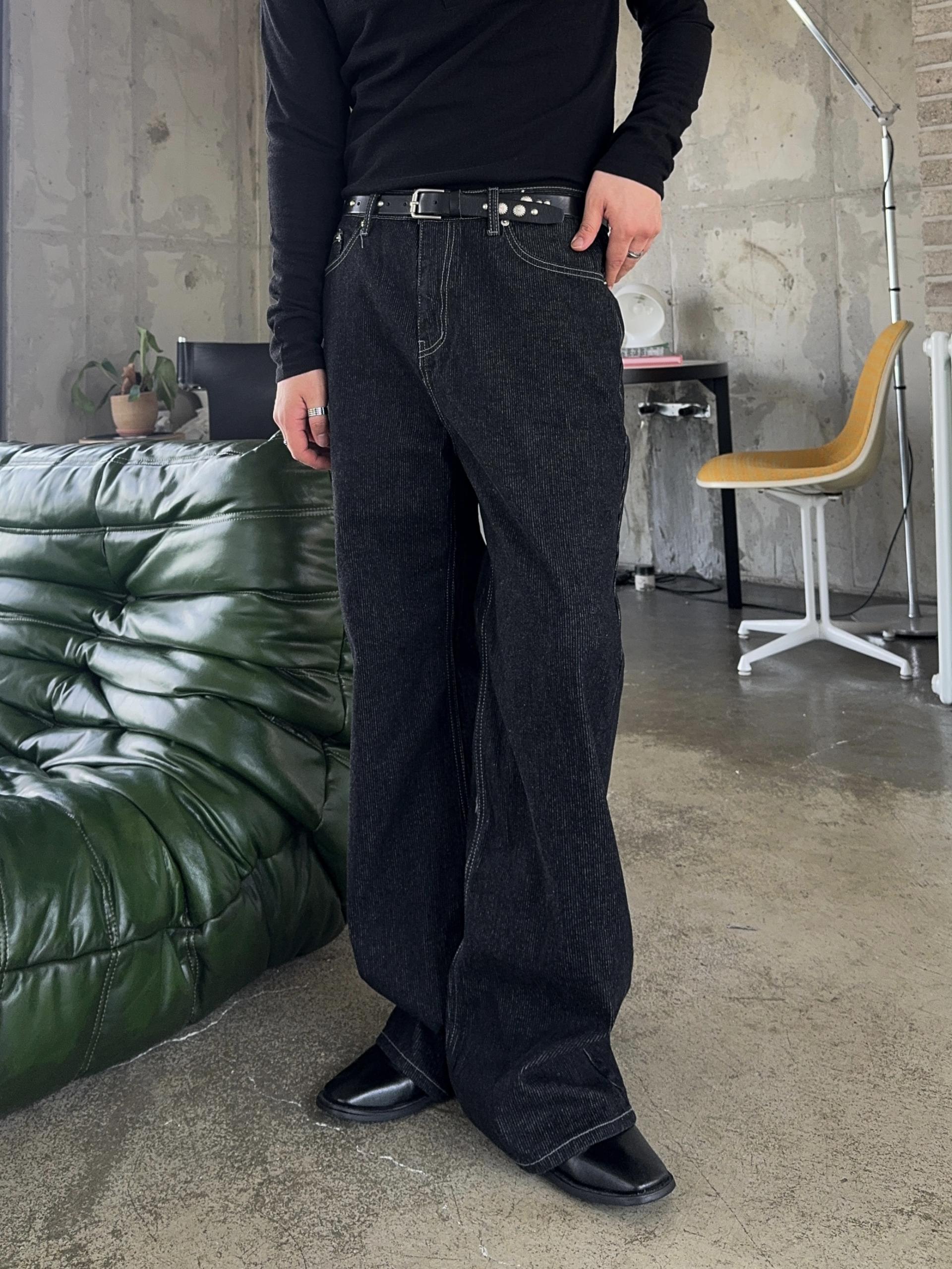 -탄탄한 코듀로이 데님 원단으로 제작된 플레어 팬츠