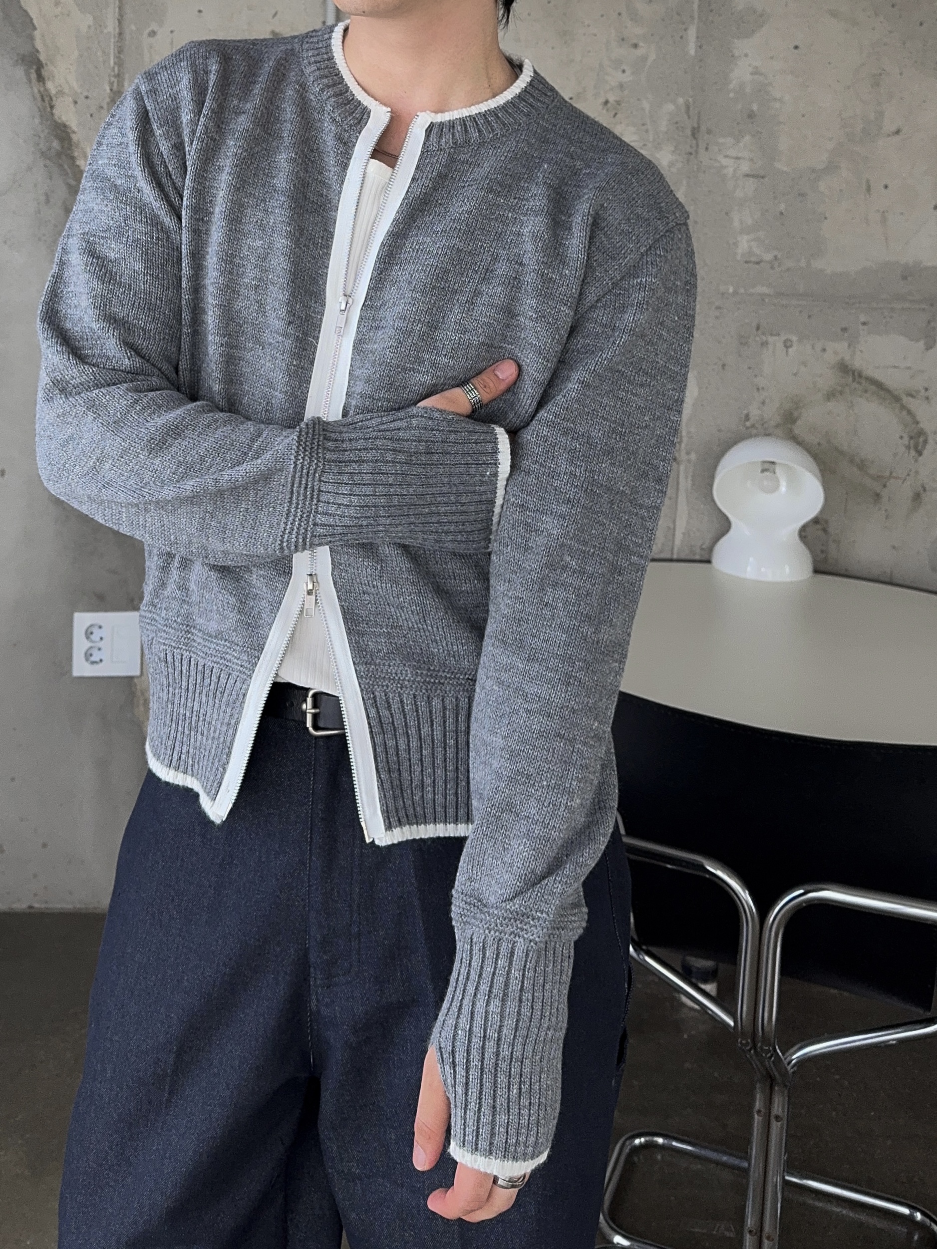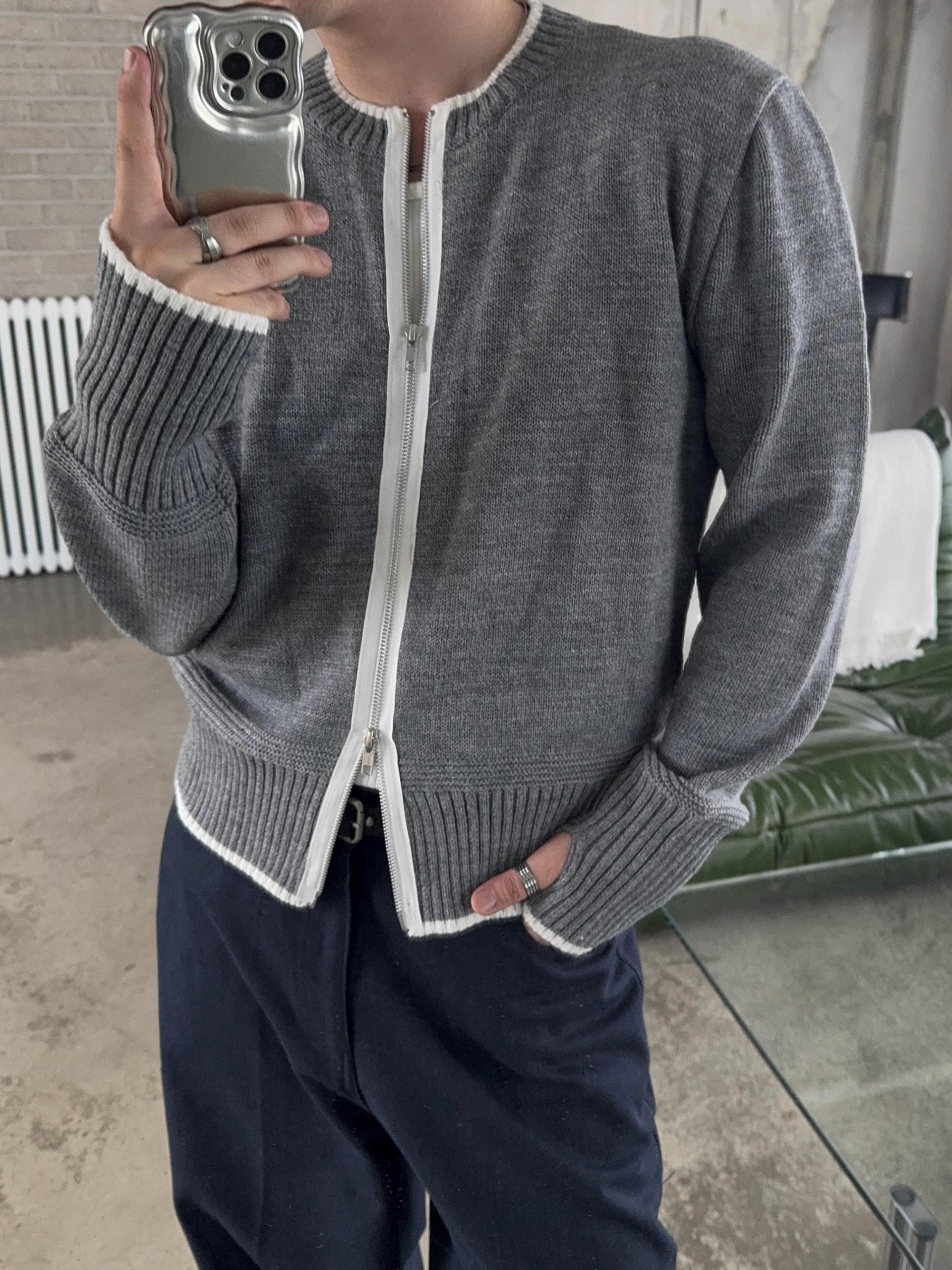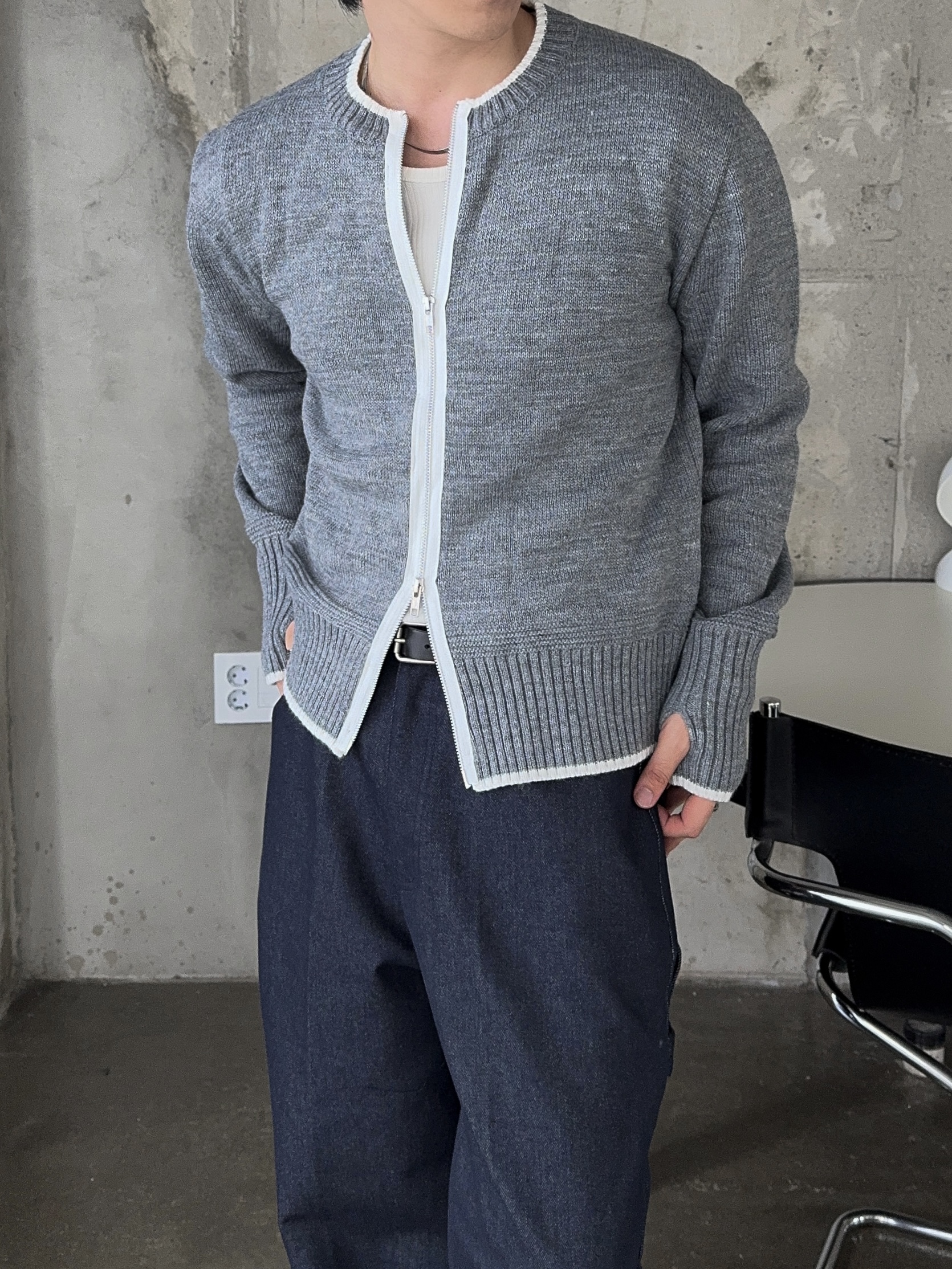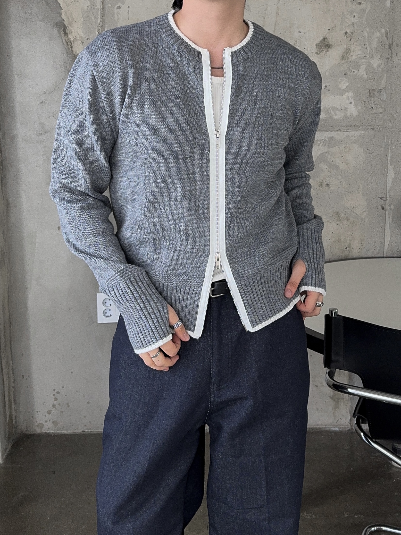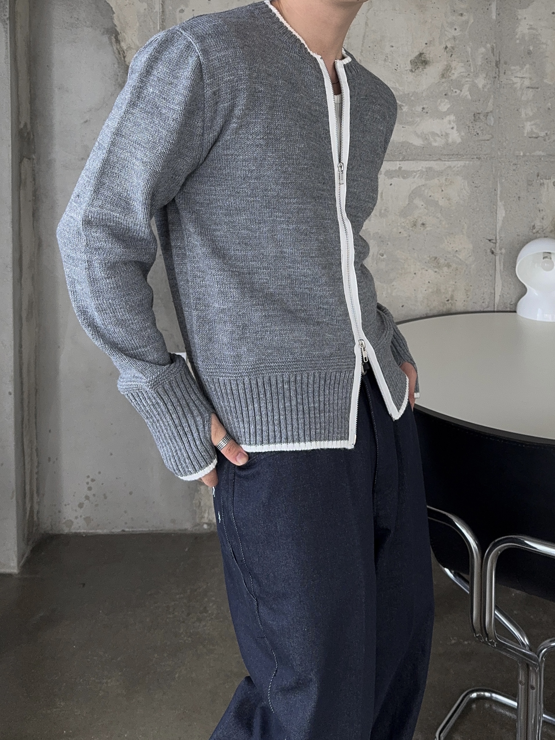 -울 혼방 소재로 부드러운 촉감의 니트 집업