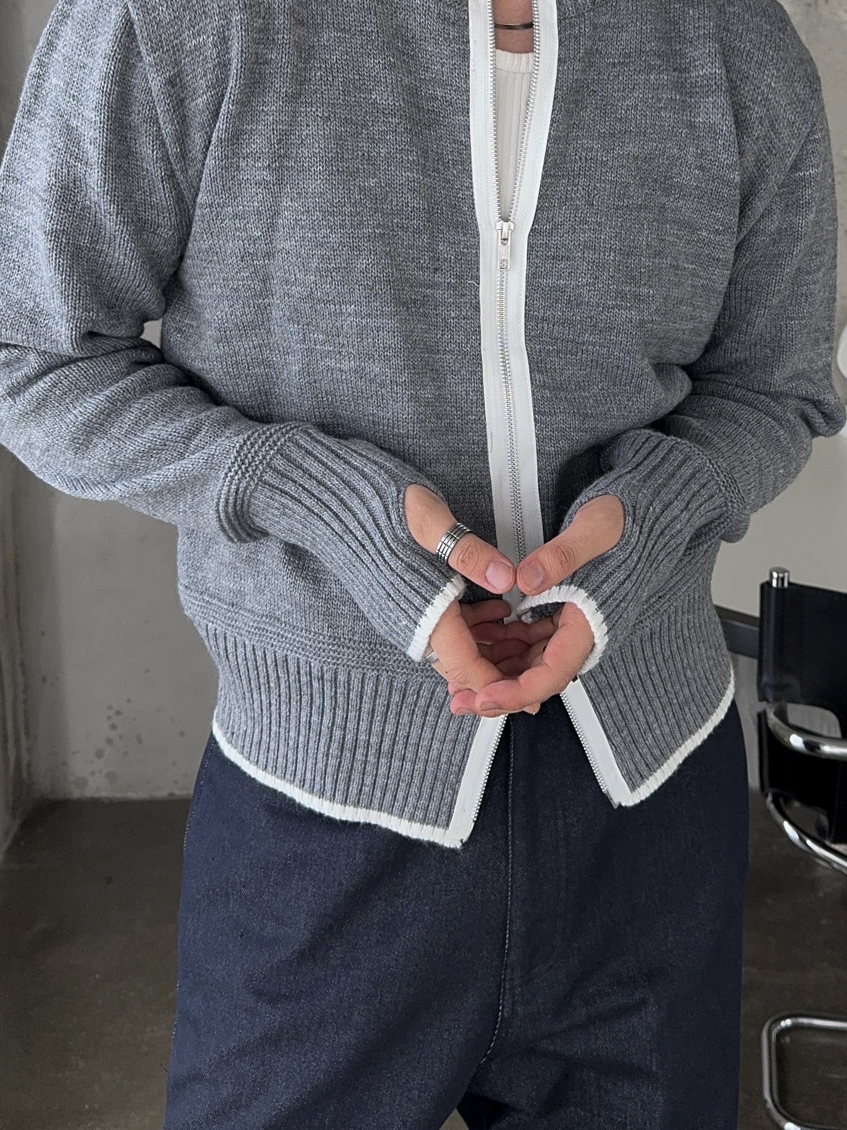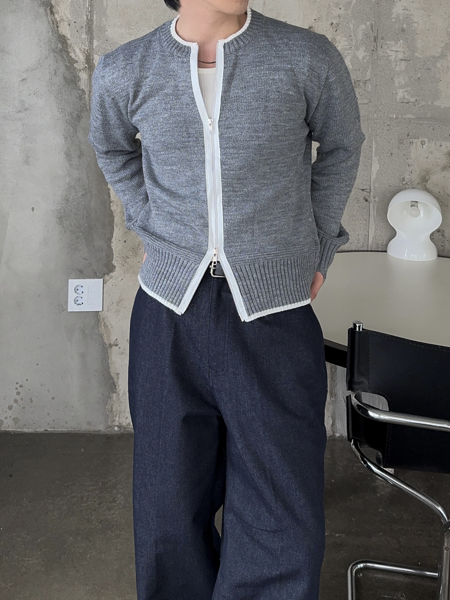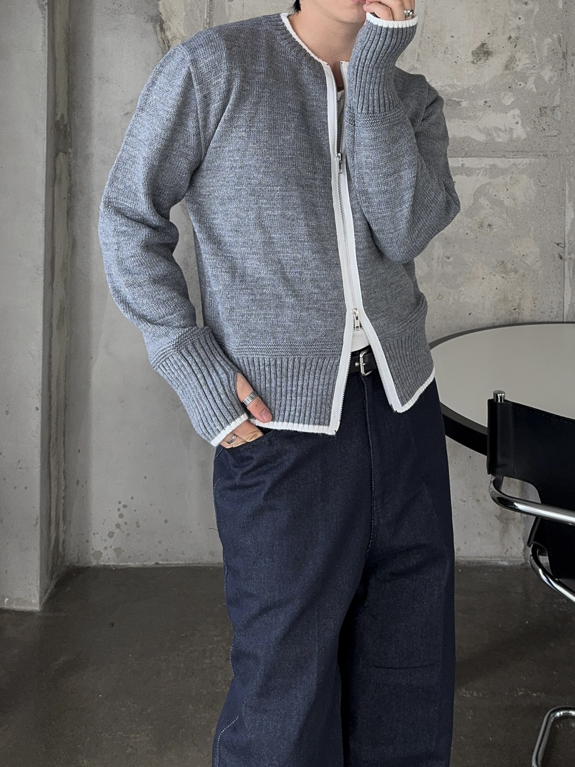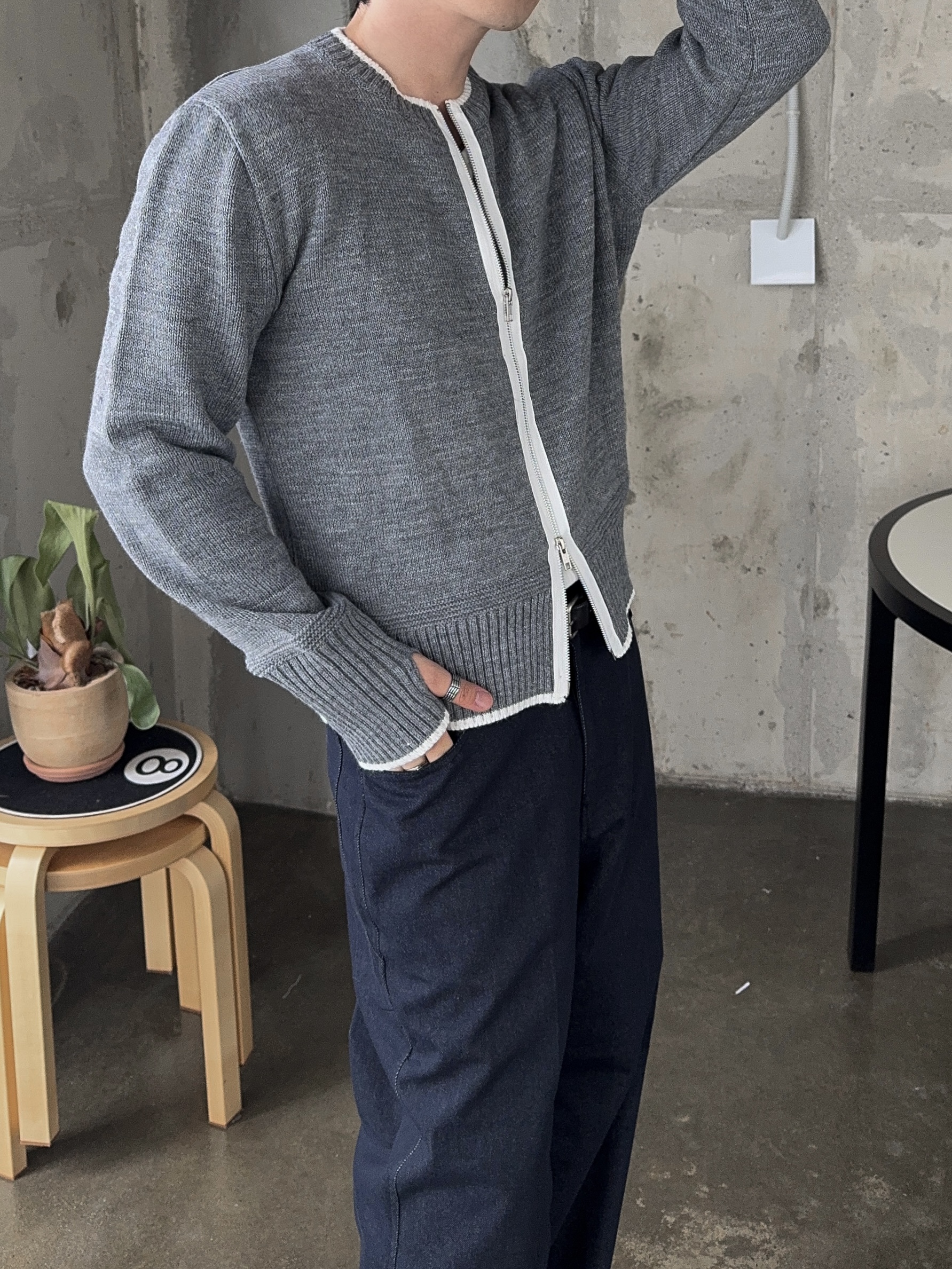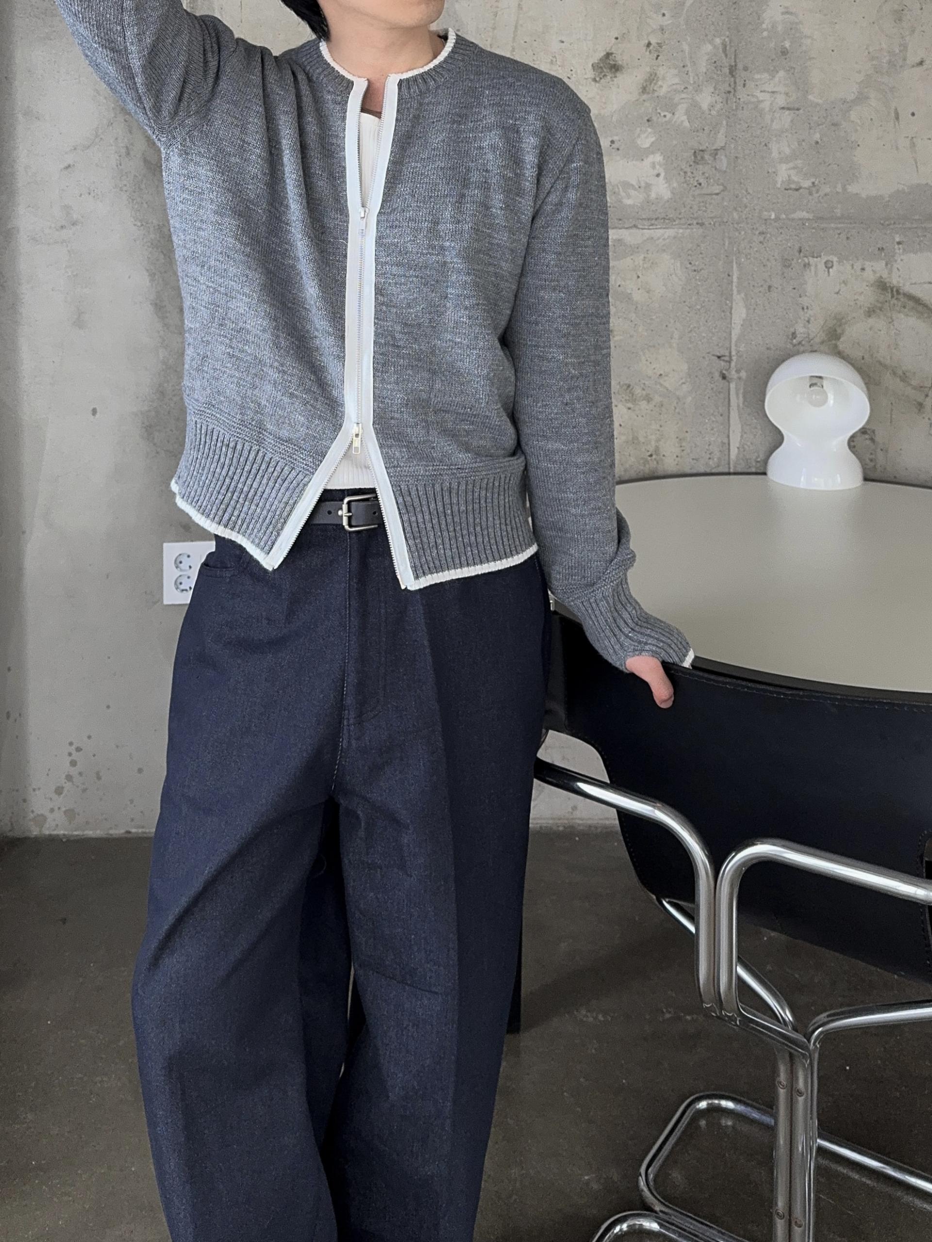 -울 혼방 소재로 부드러운 촉감의 니트 집업