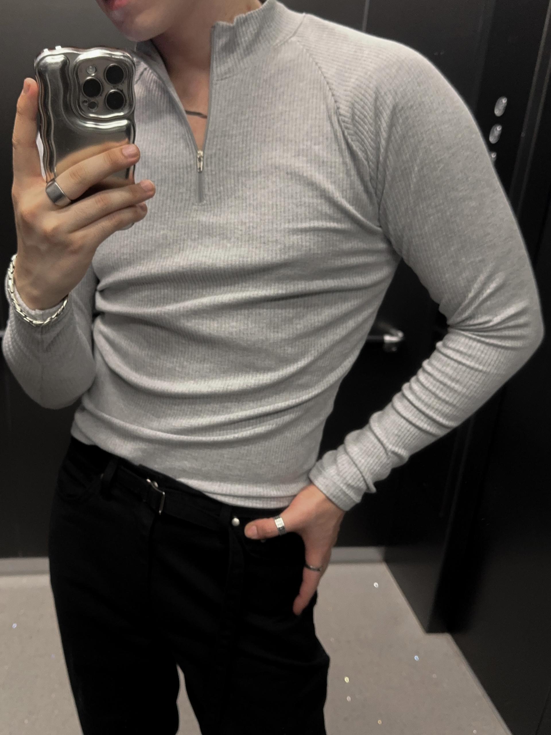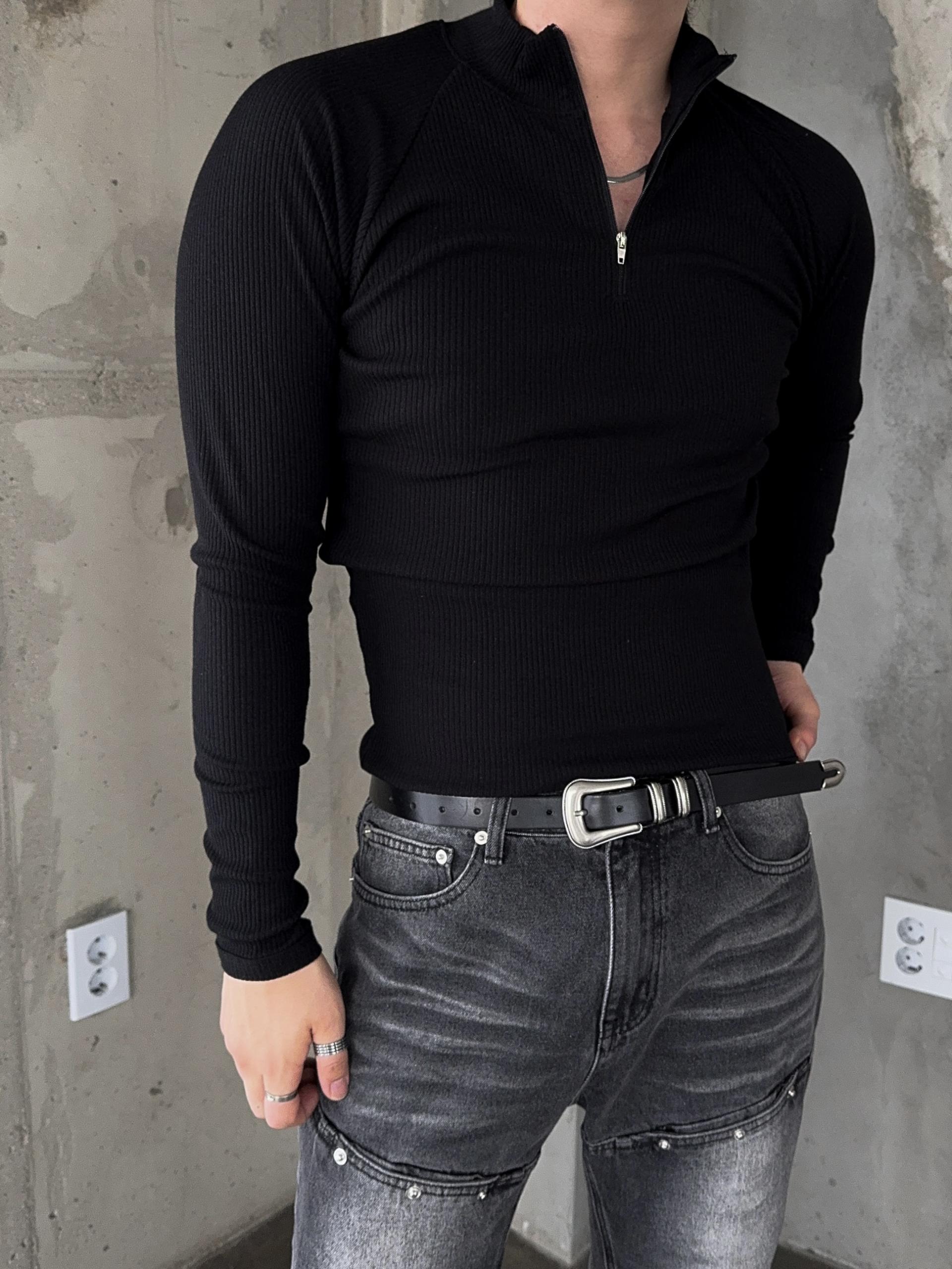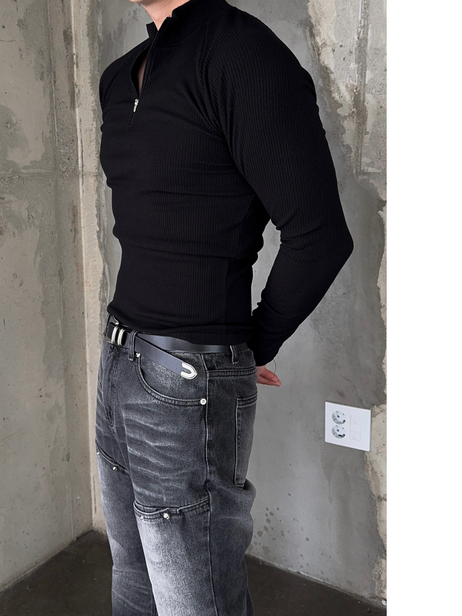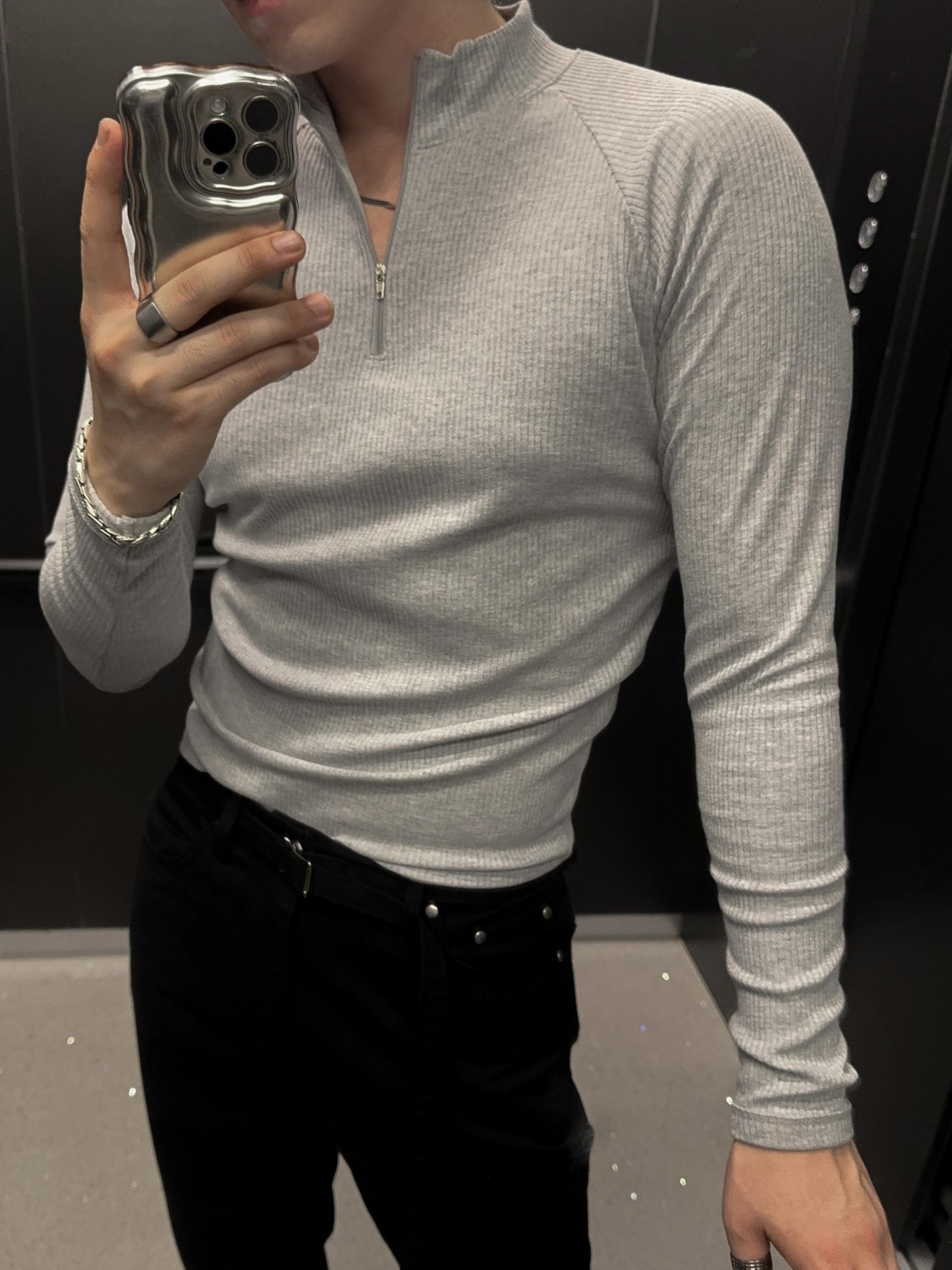 -쫀쫀한 골지 소재로 제작된 반집업 티셔츠