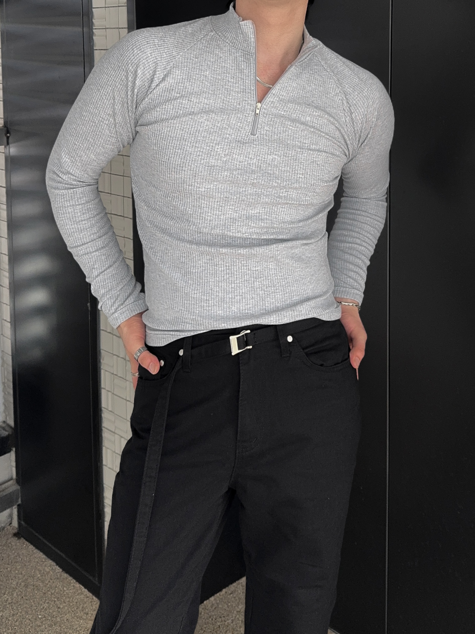 -슬림한 핏으로 체형에따라 슬림핏 , 머슬핏 연출