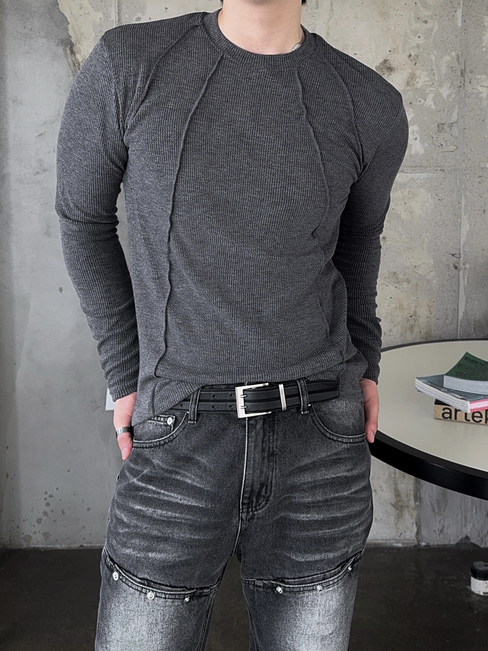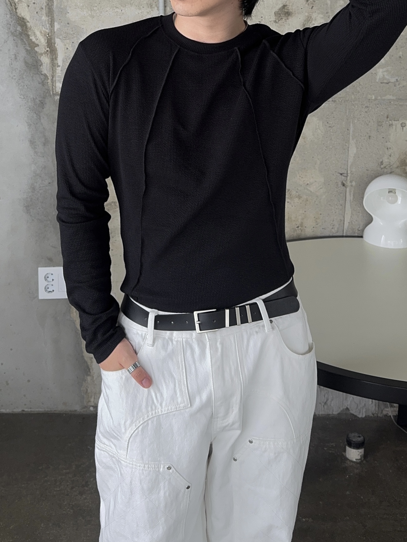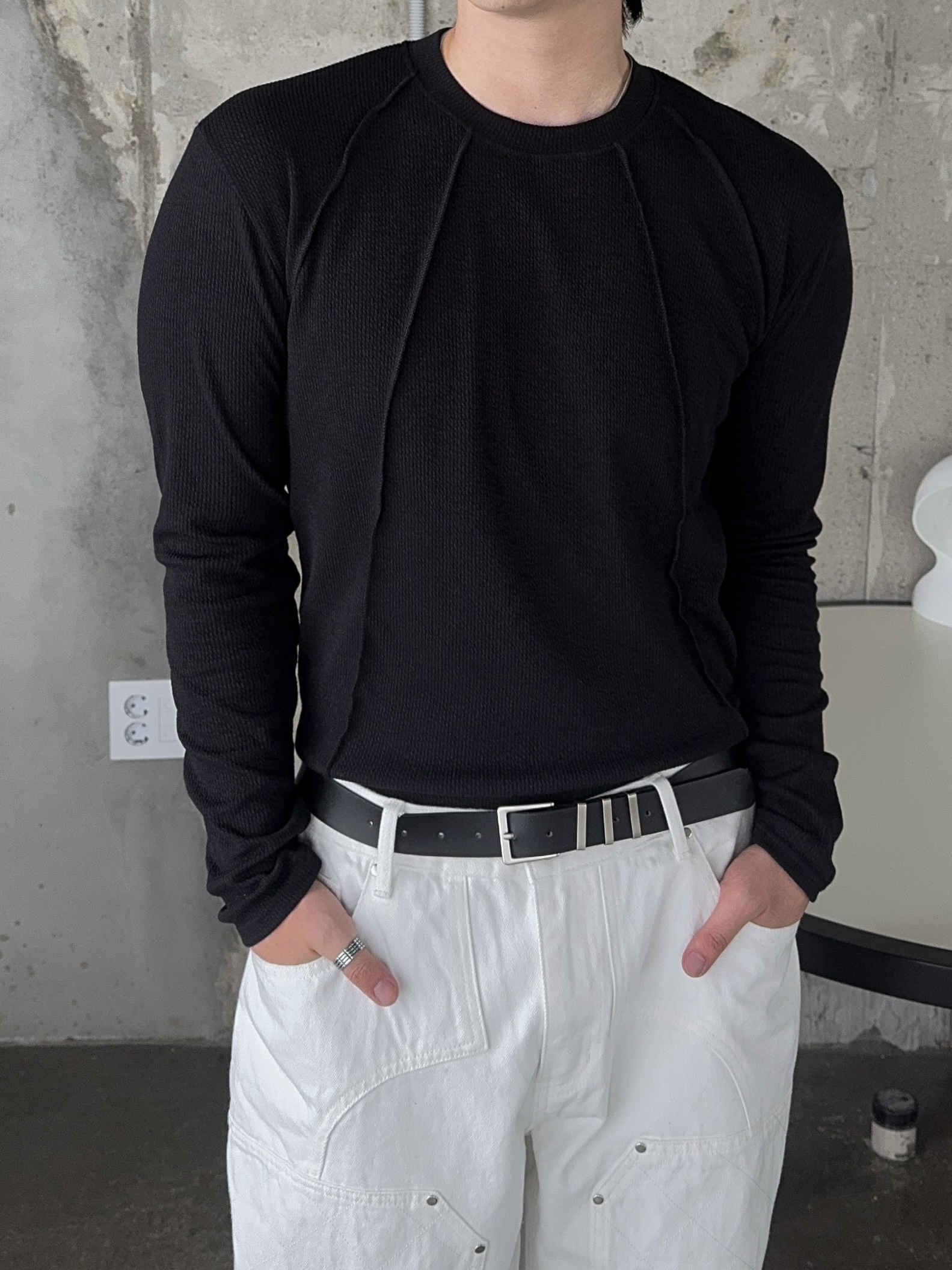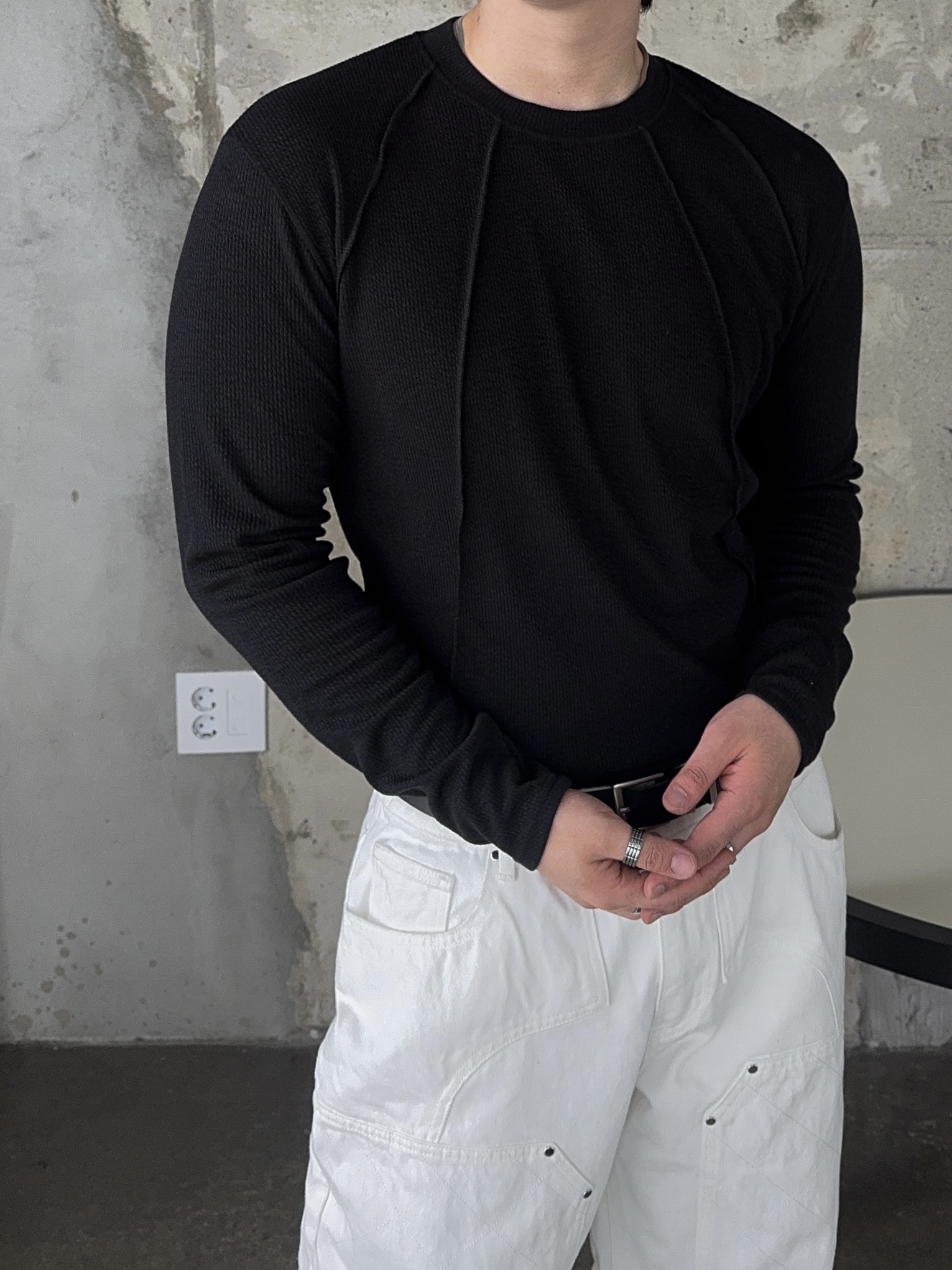 -쫀쫀한 골지 소재로 제작된 롱 슬리브