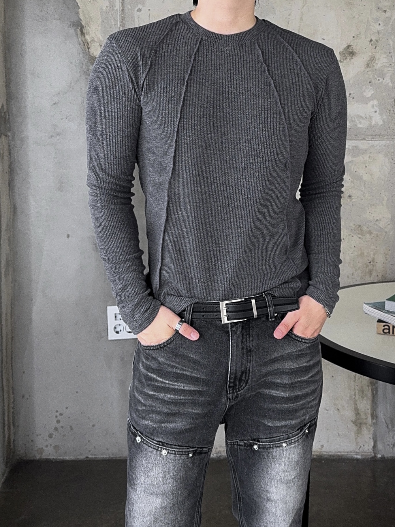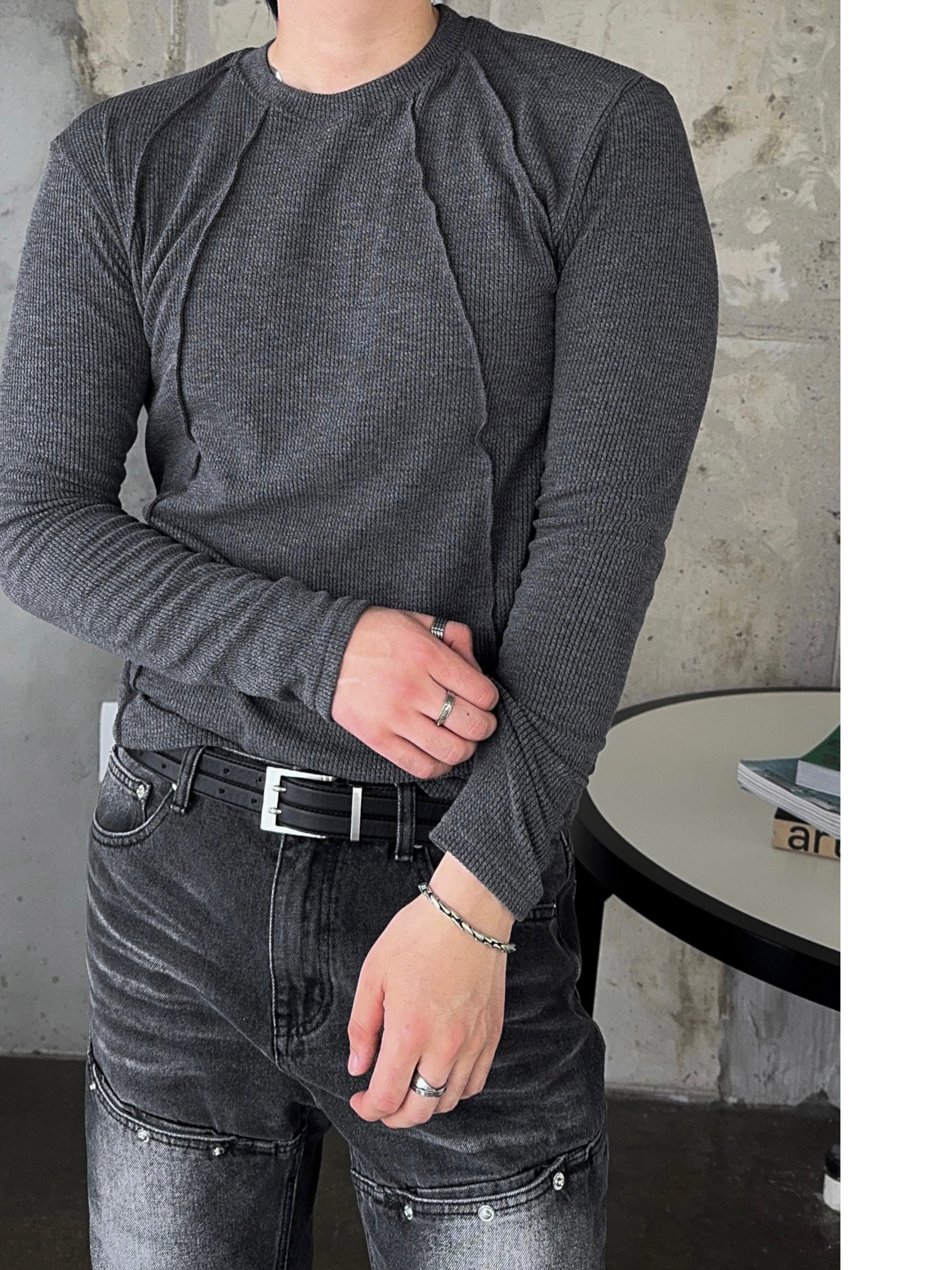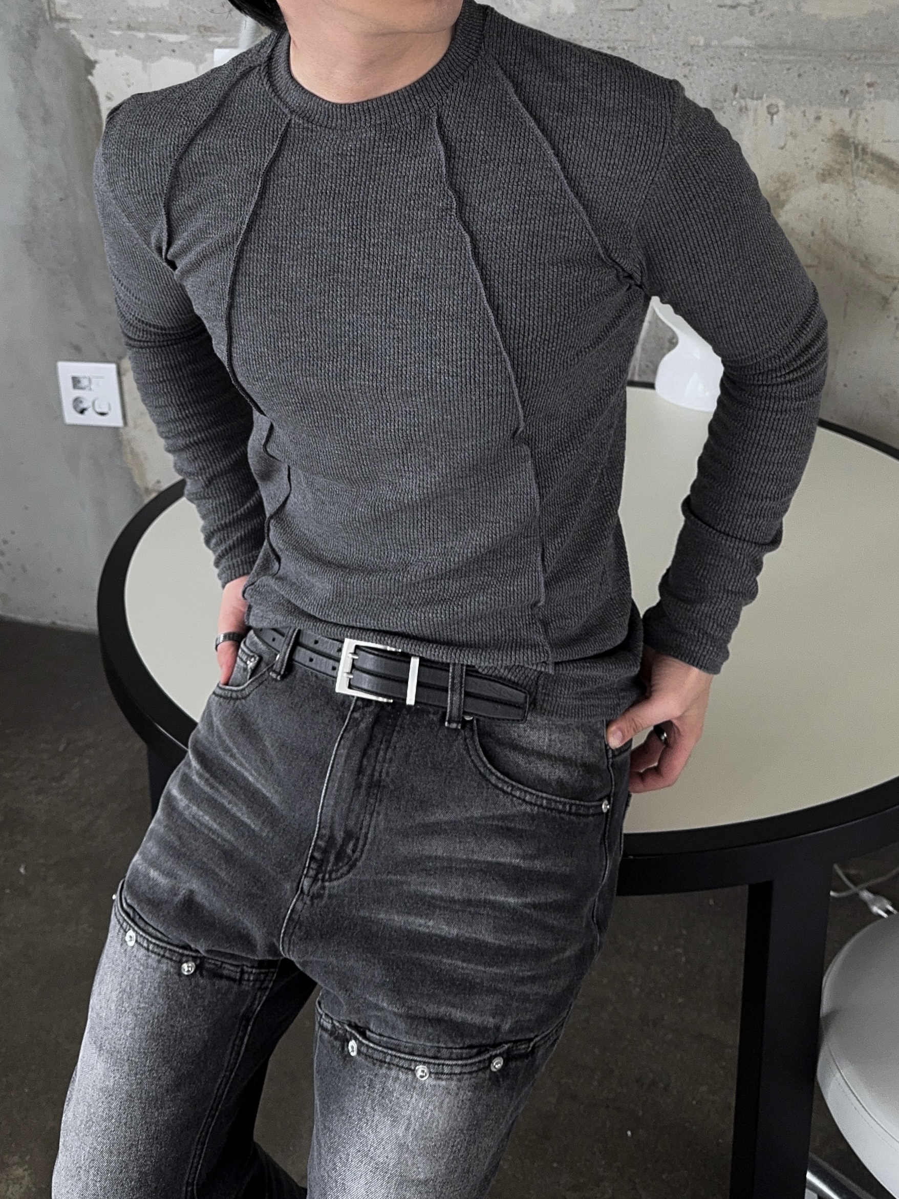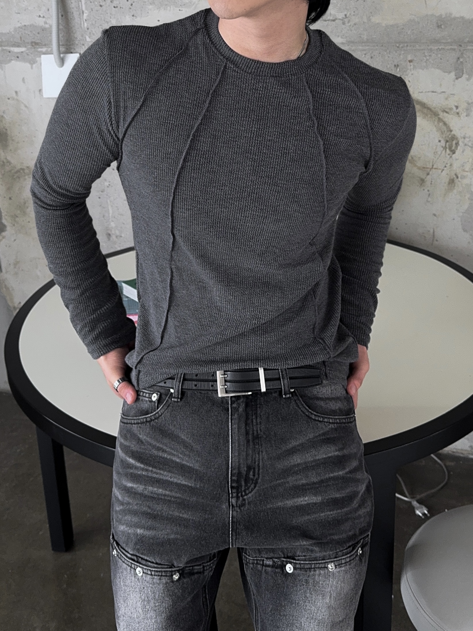 -쫀쫀한 골지 소재로 제작된 롱 슬리브