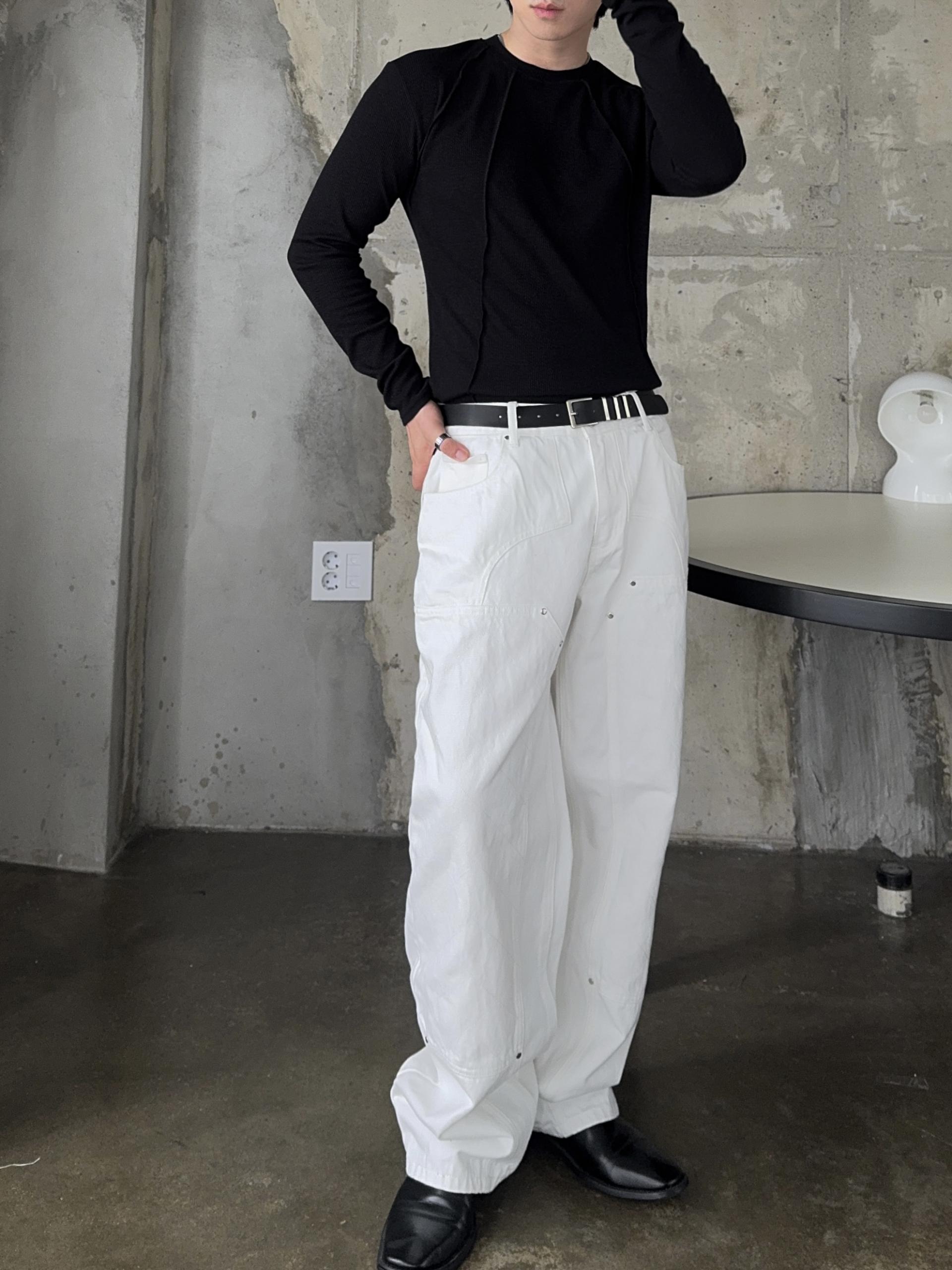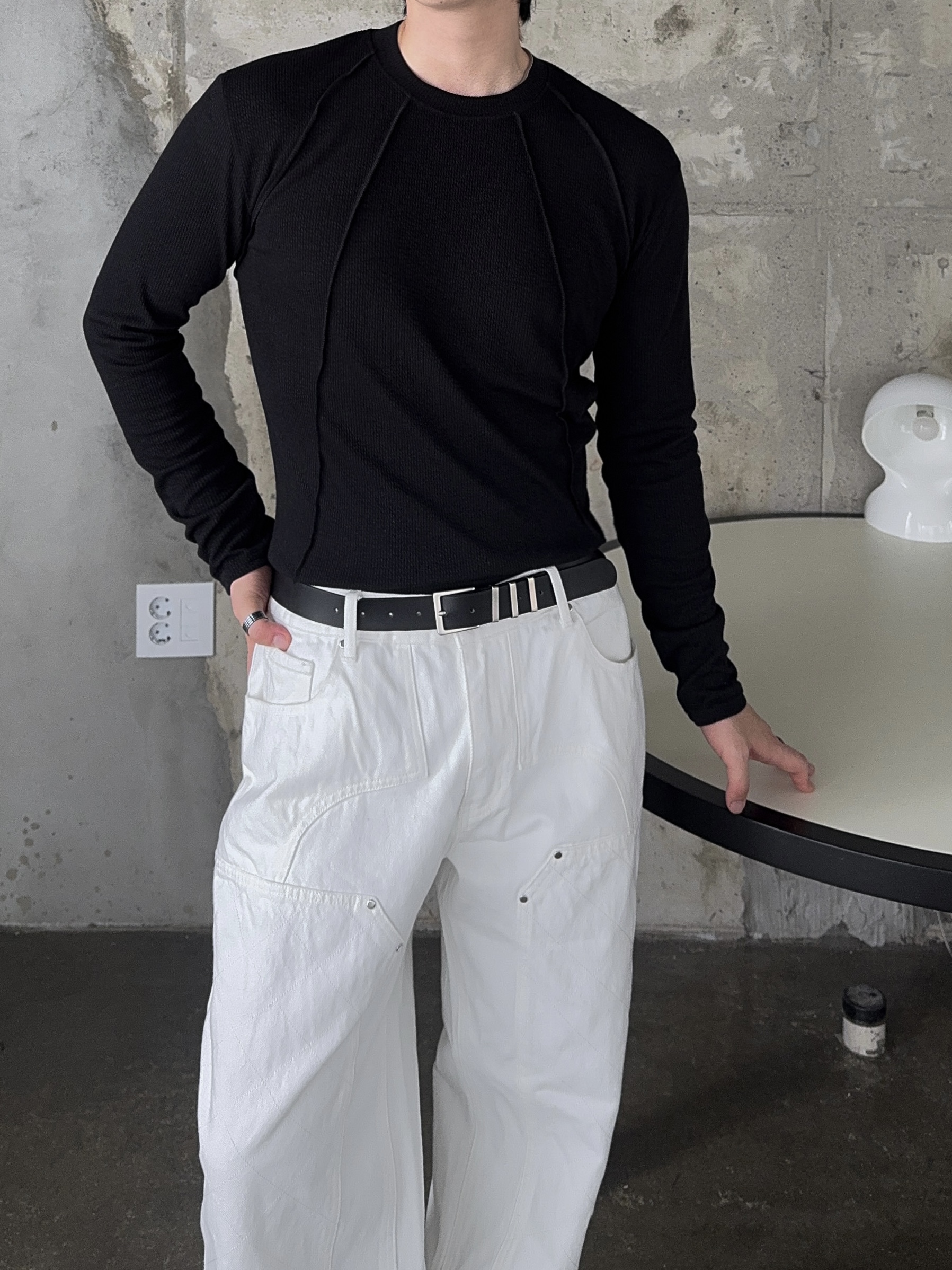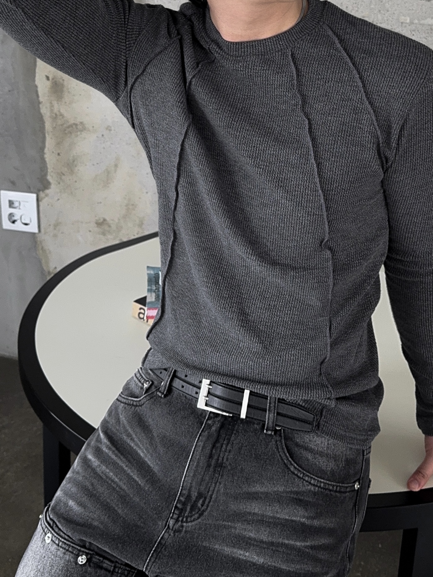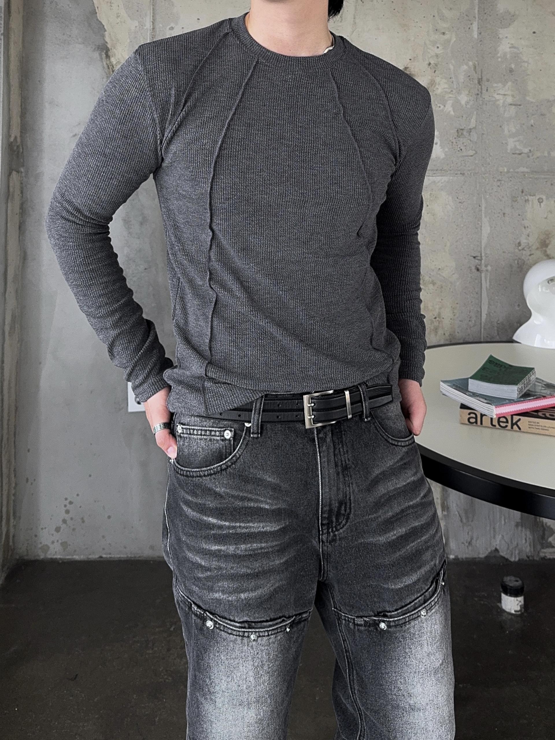 -쫀쫀한 골지 소재로 제작된 롱 슬리브