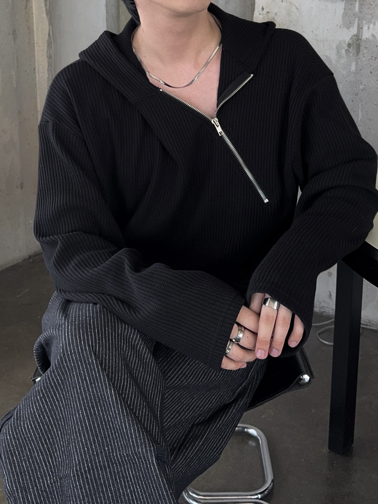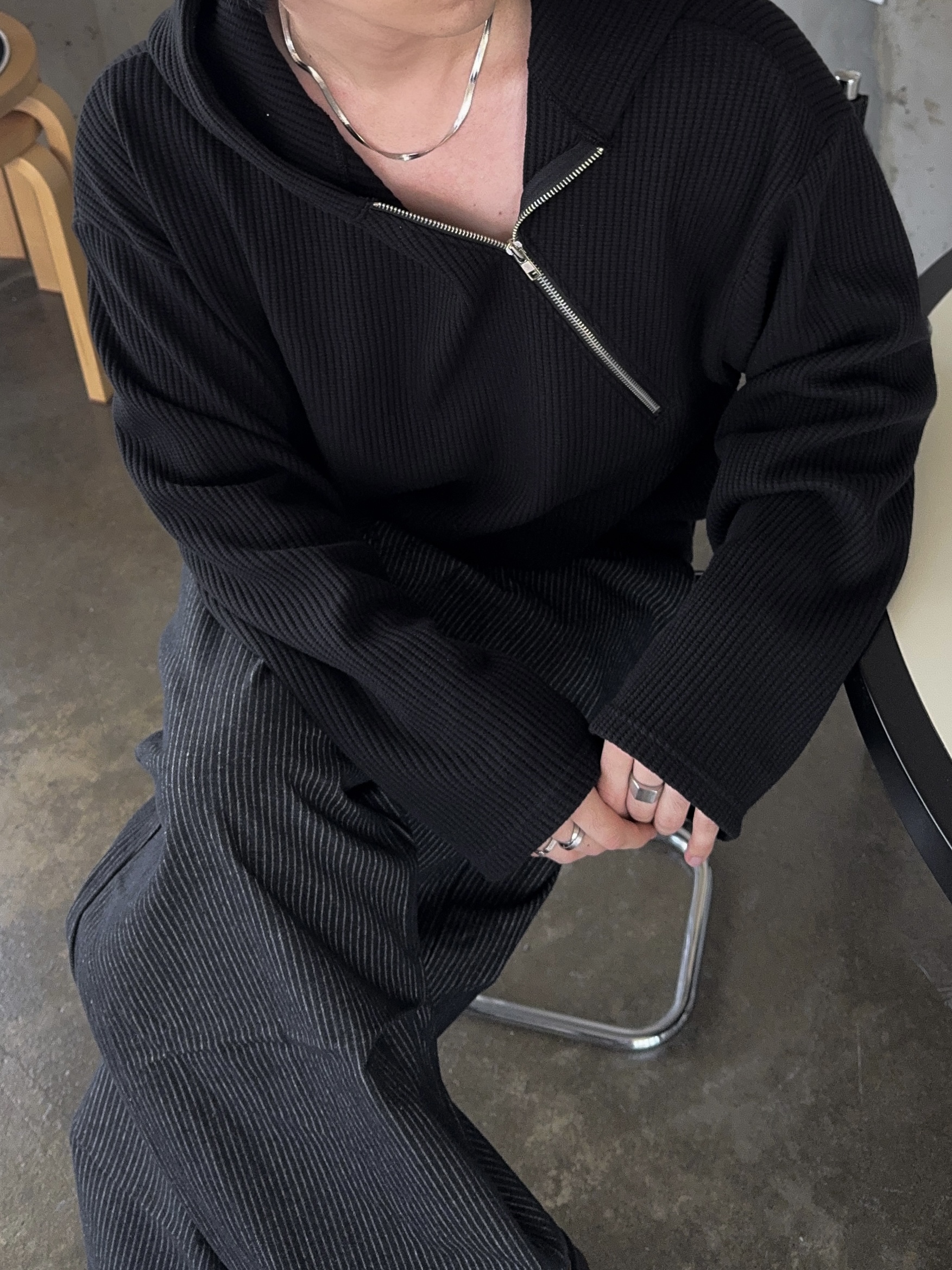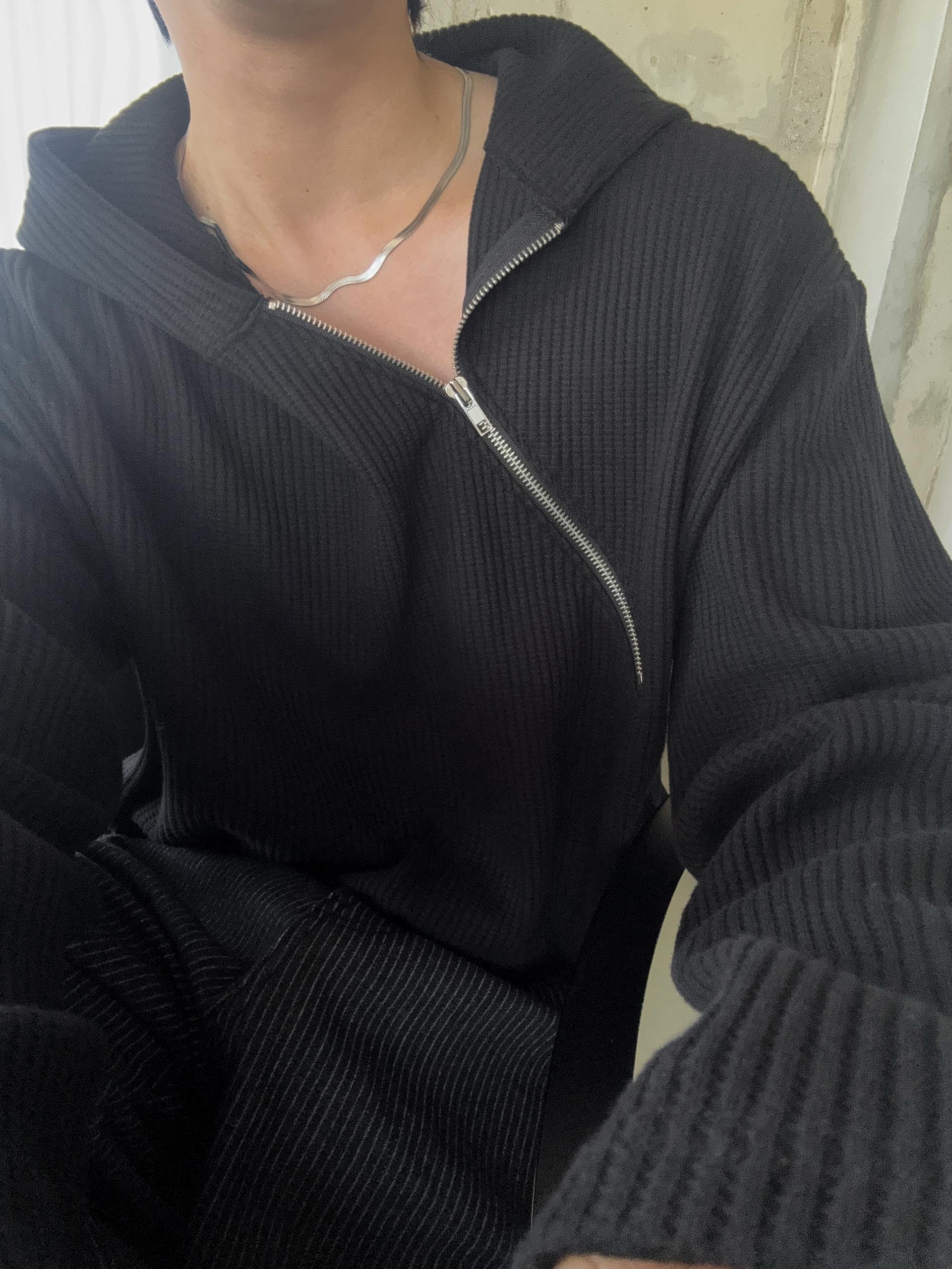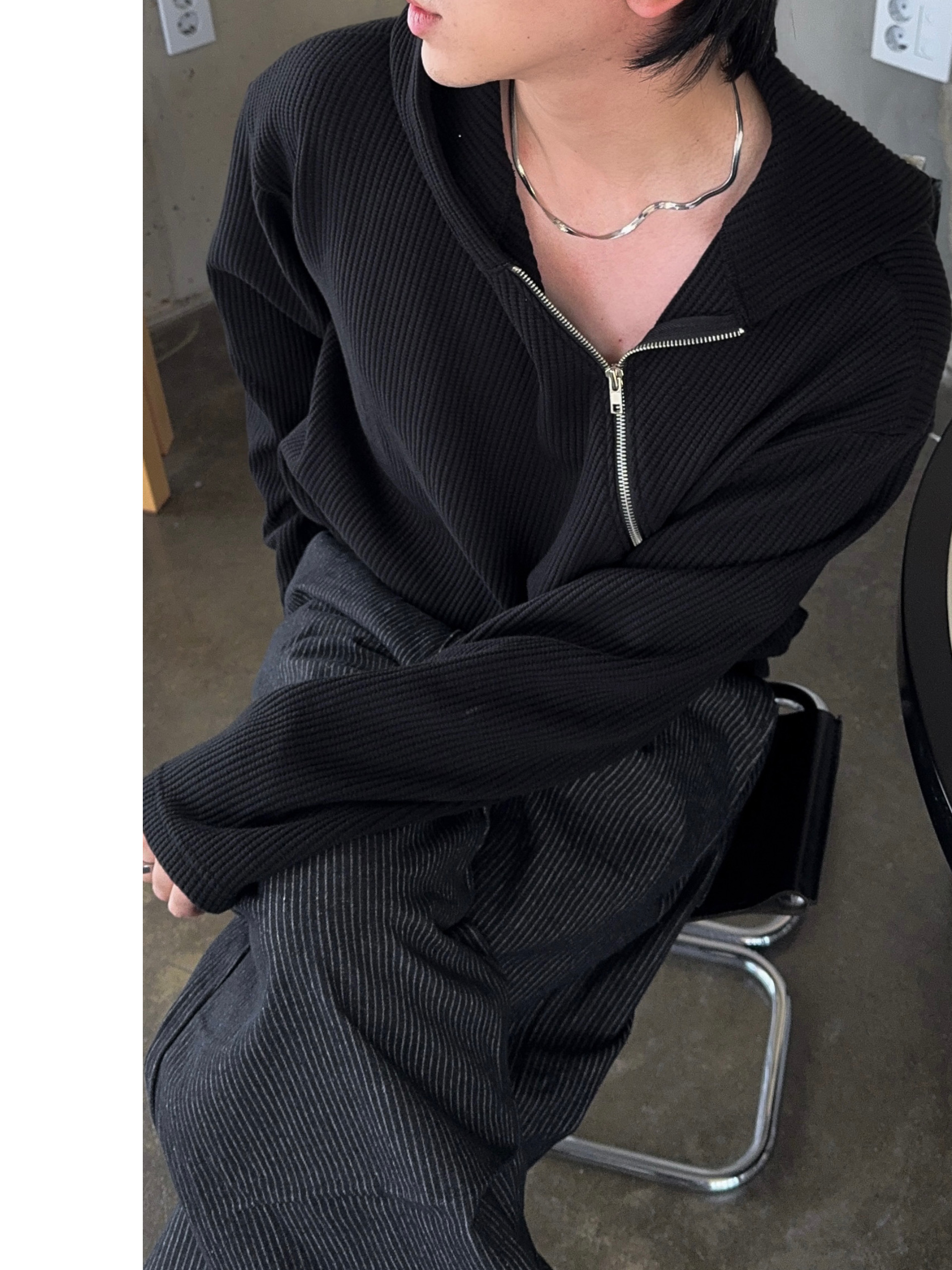 -목 부터 가슴 까지 이어지는 지퍼 디자인으로 다양한 스타일링 연출