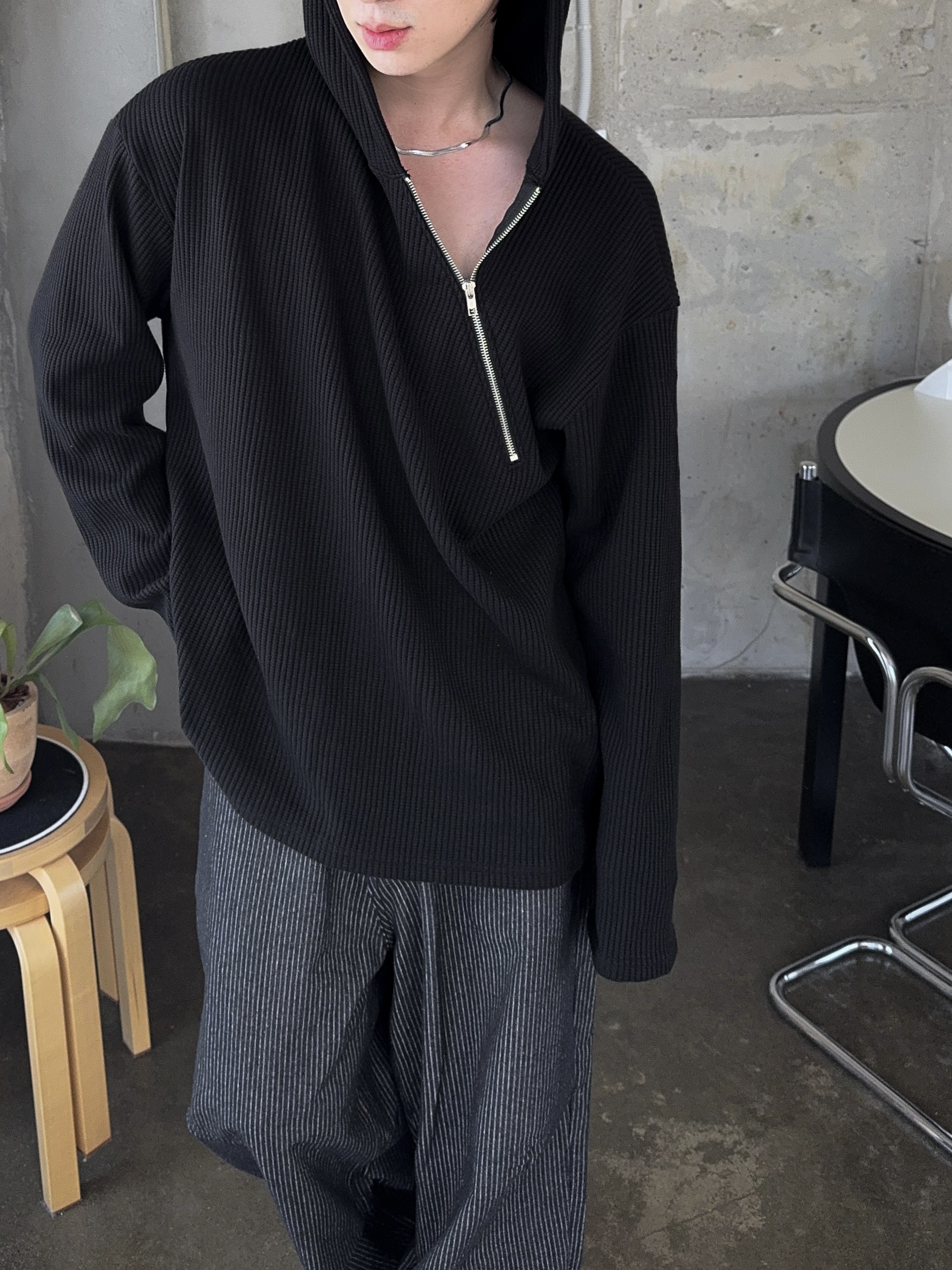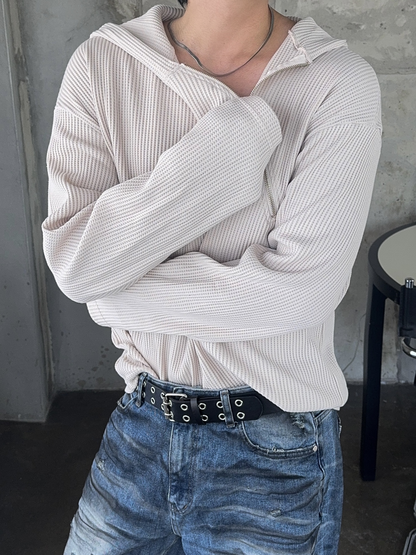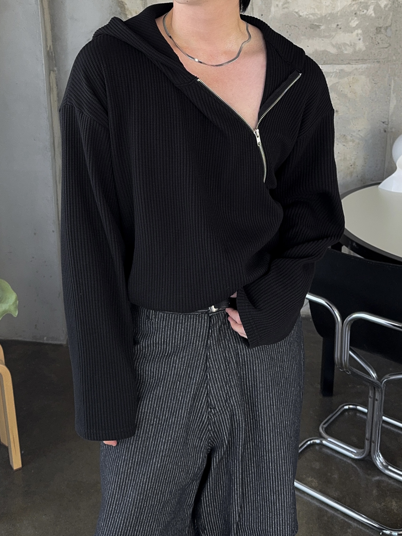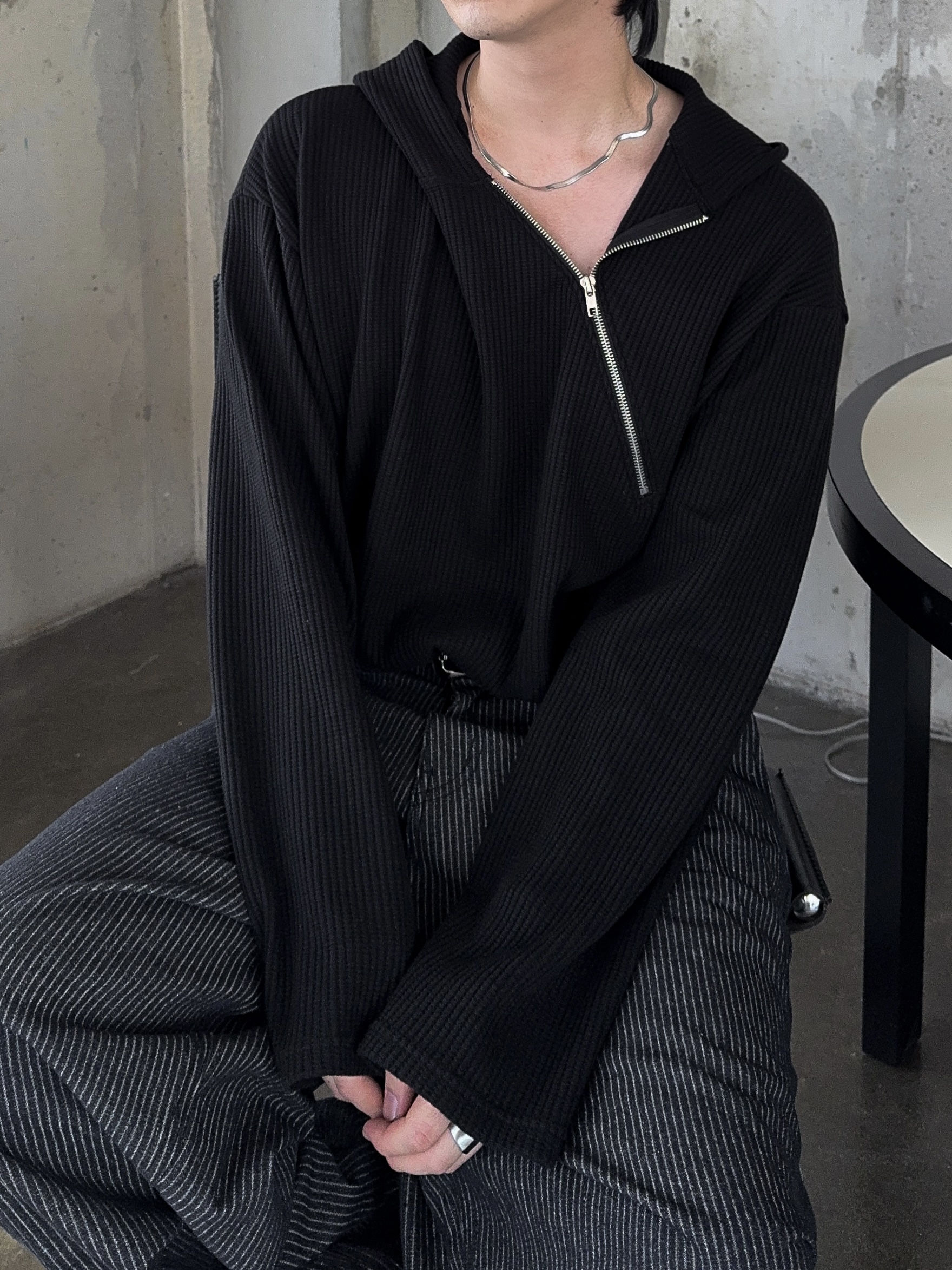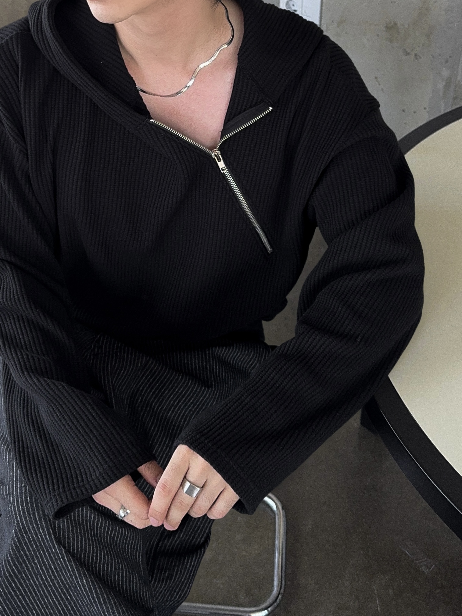 -목 부터 가슴 까지 이어지는 지퍼 디자인으로 다양한 스타일링 연출