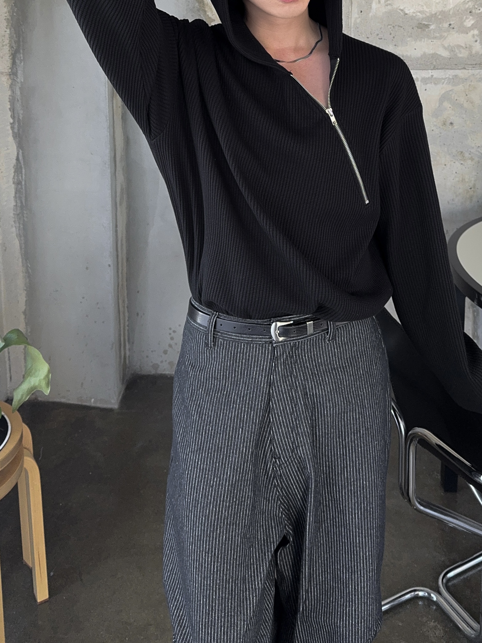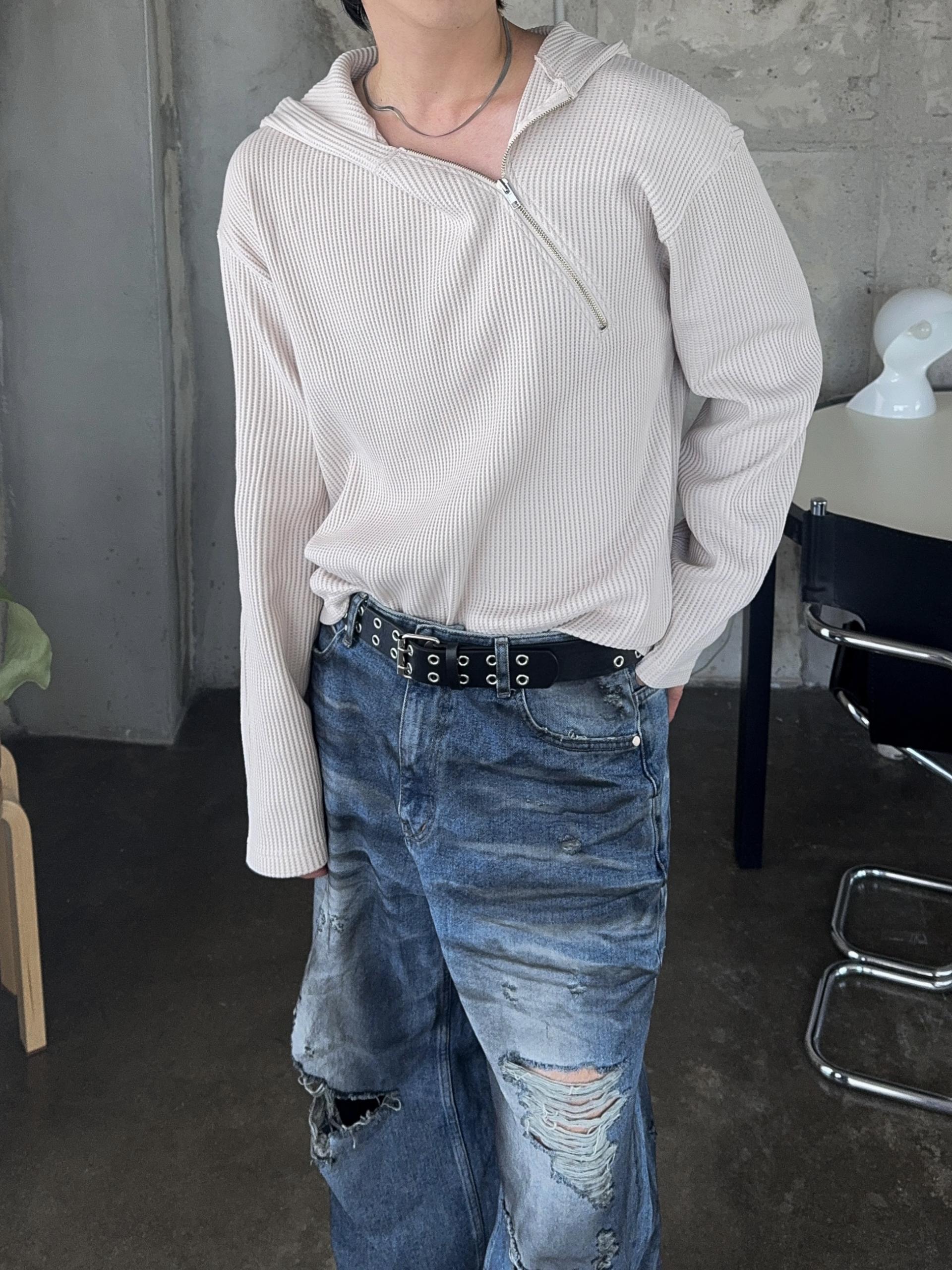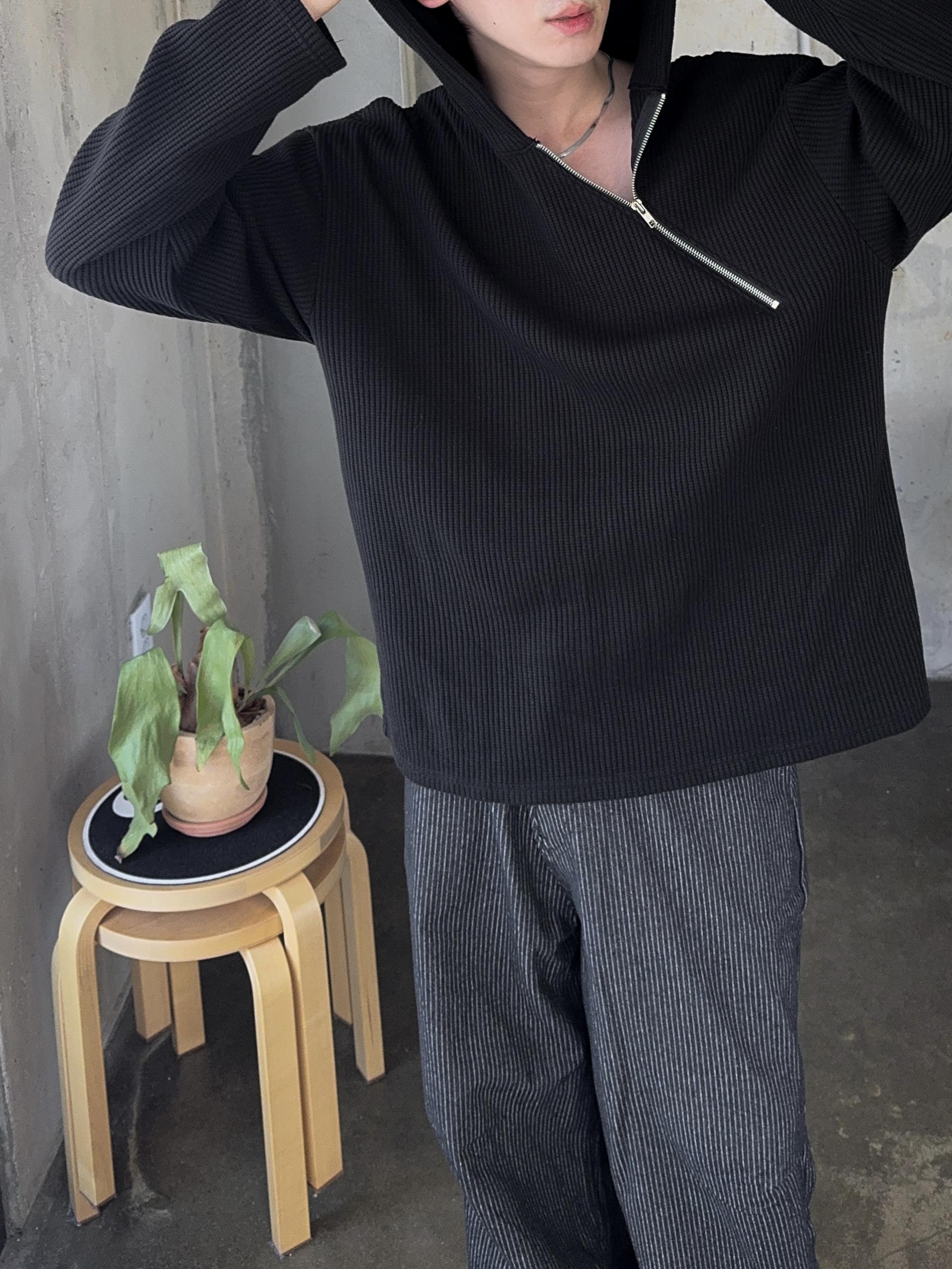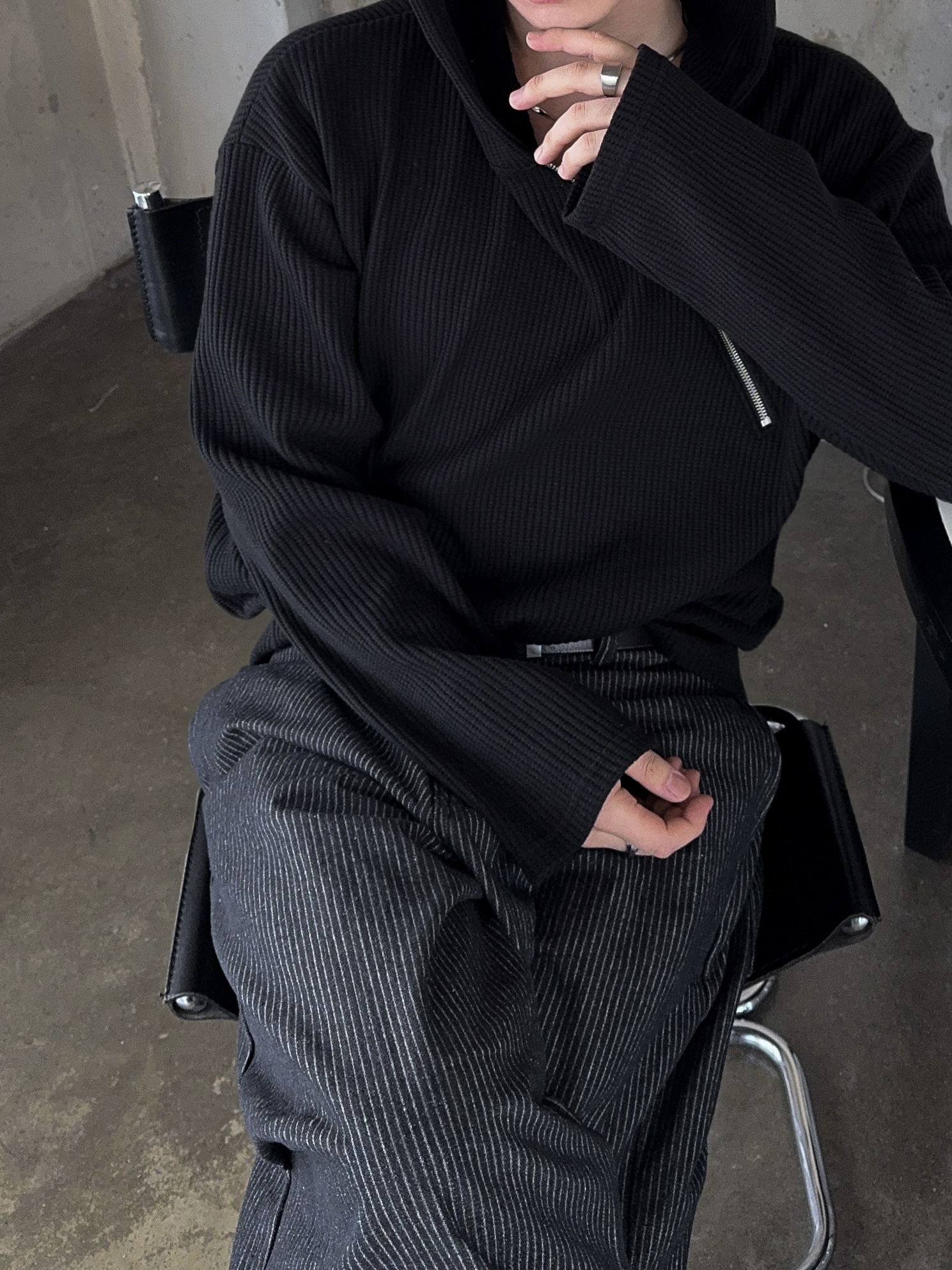 -목 부터 가슴 까지 이어지는 지퍼 디자인으로 다양한 스타일링 연출