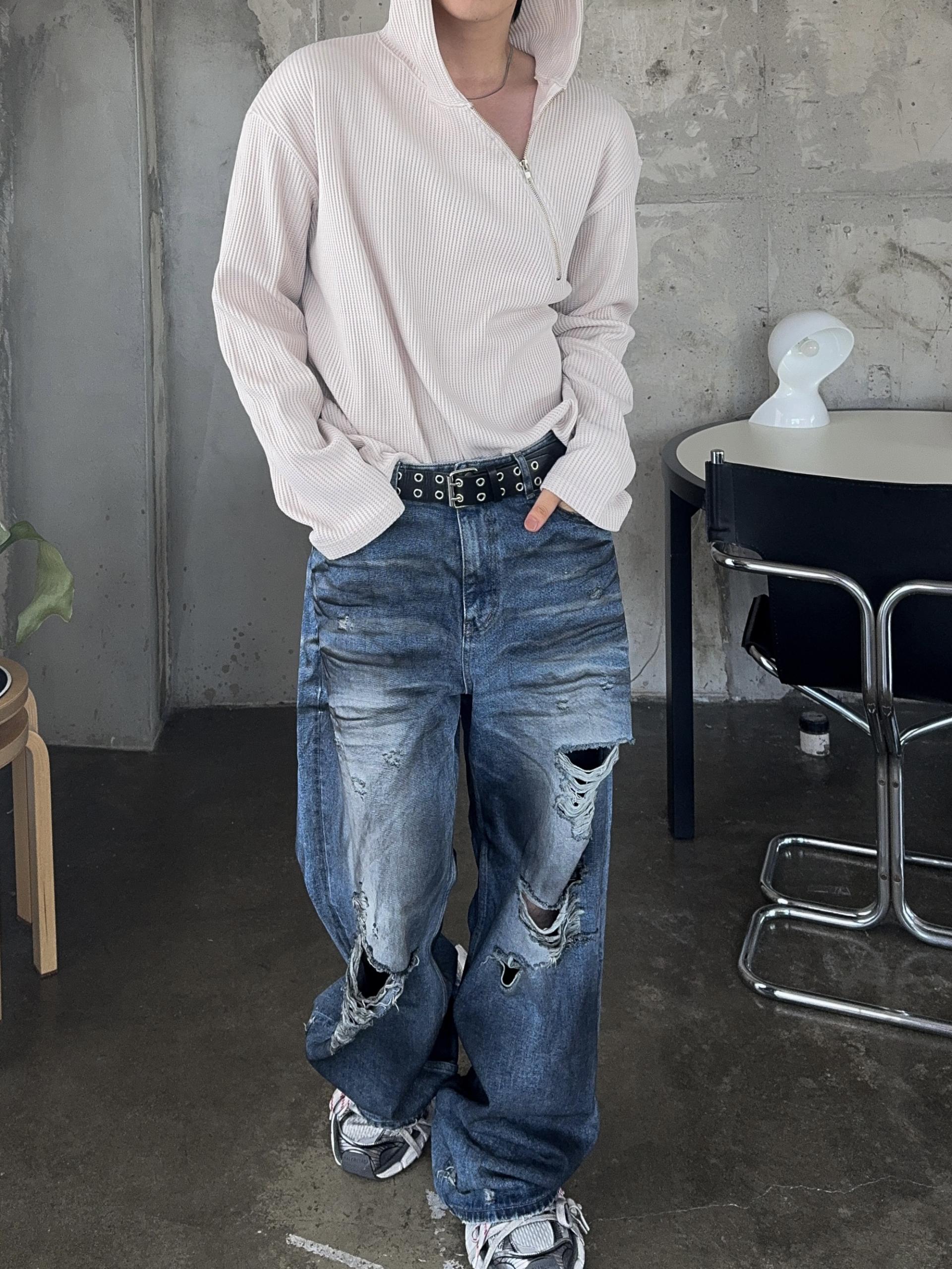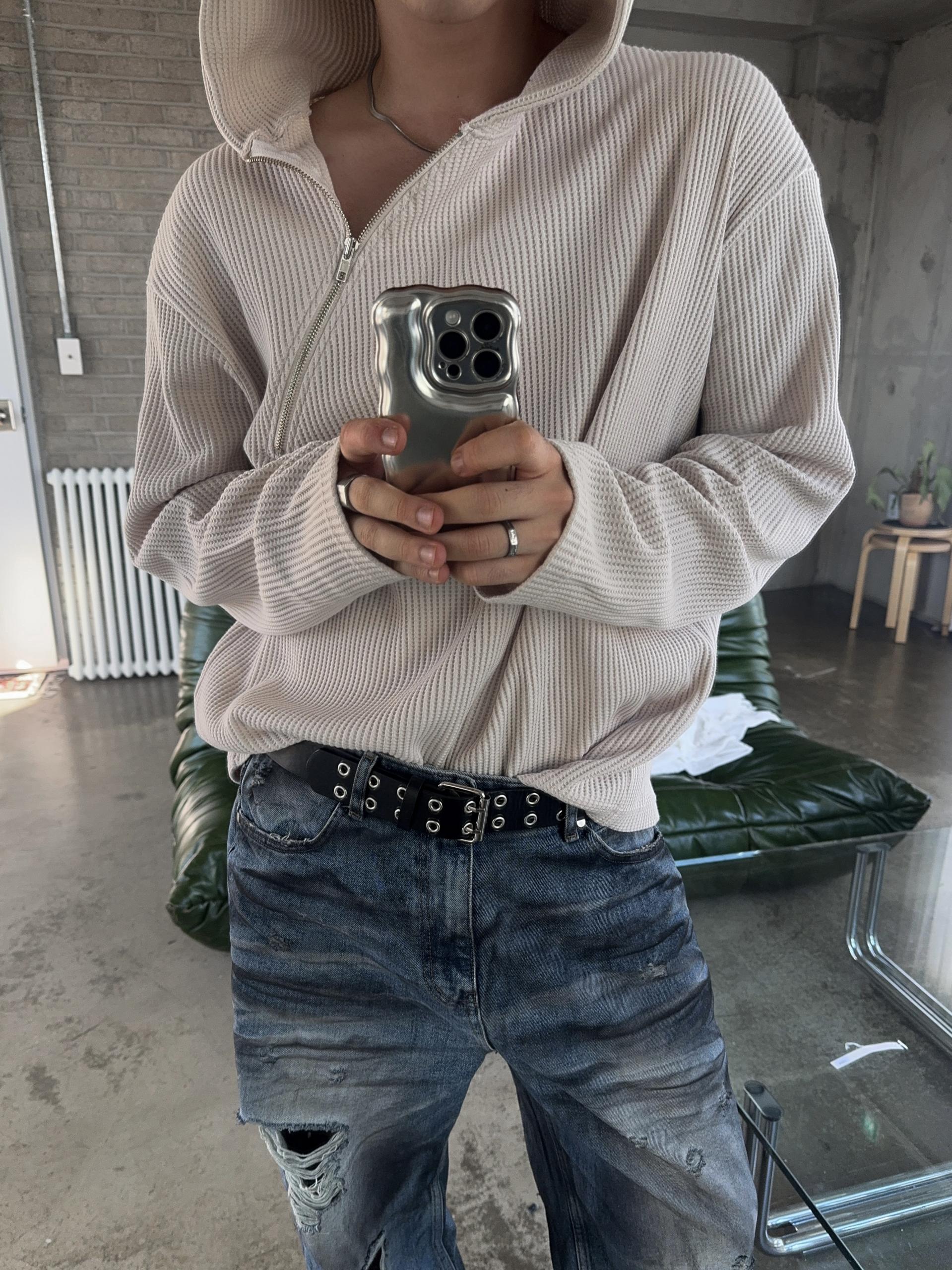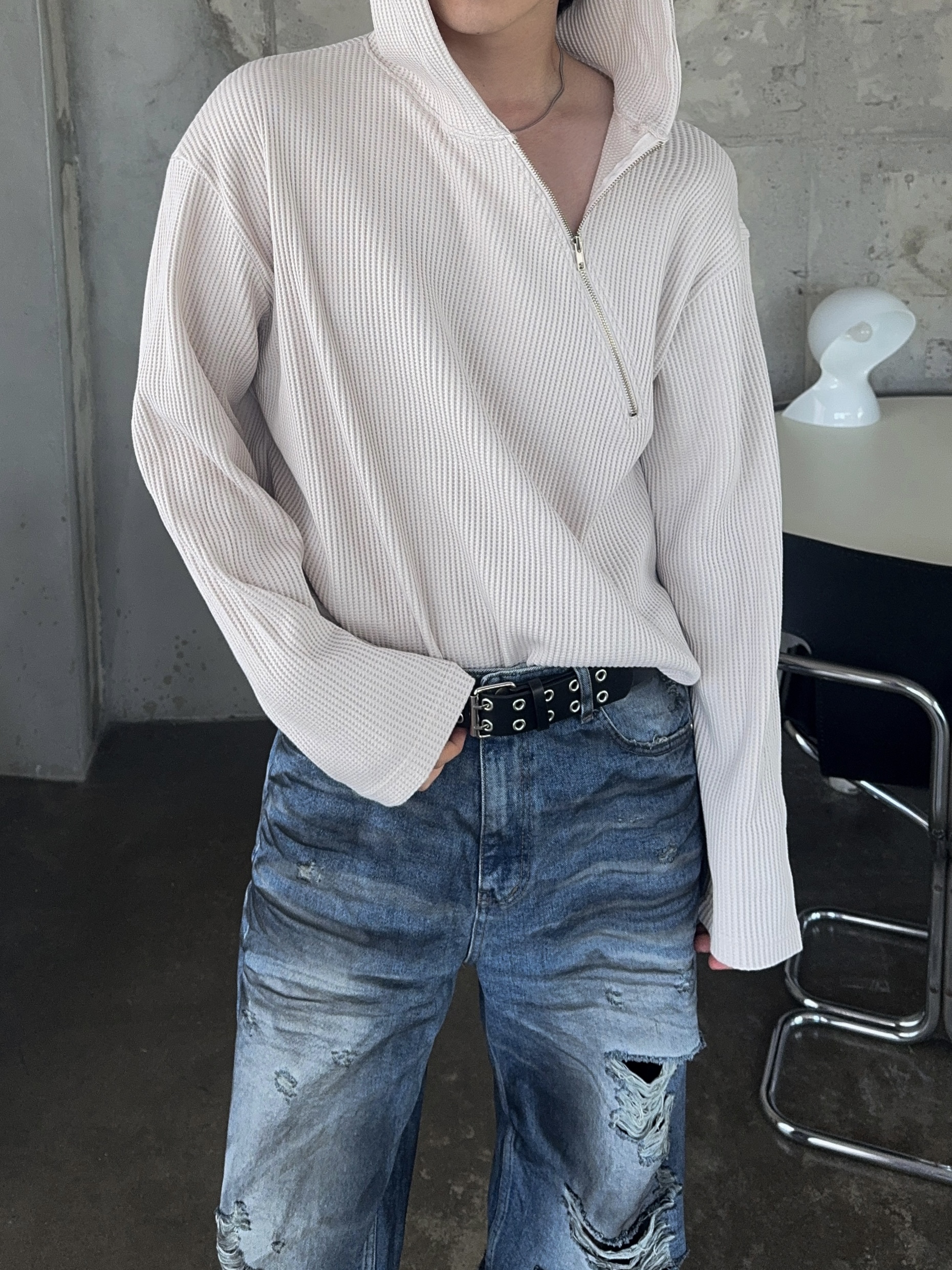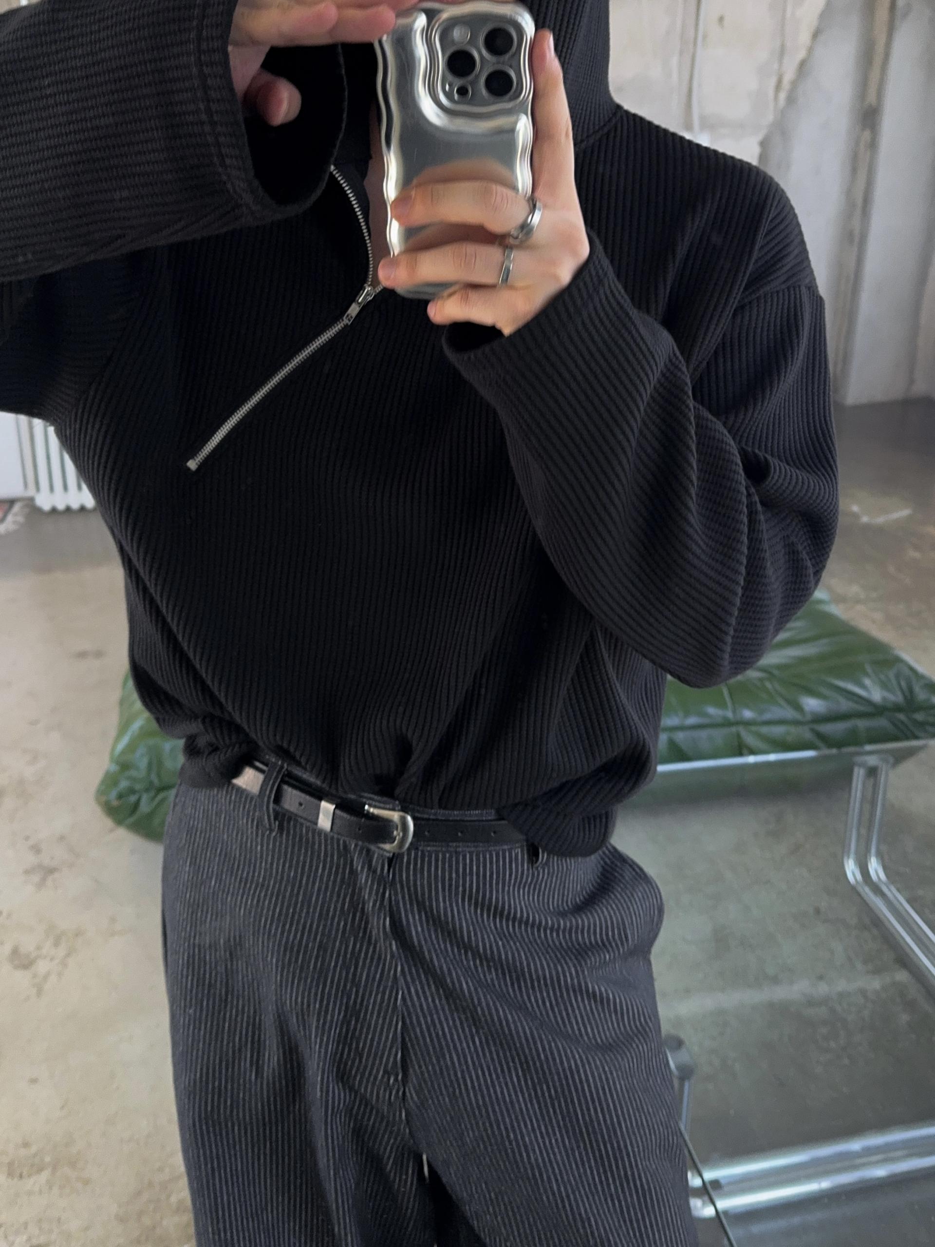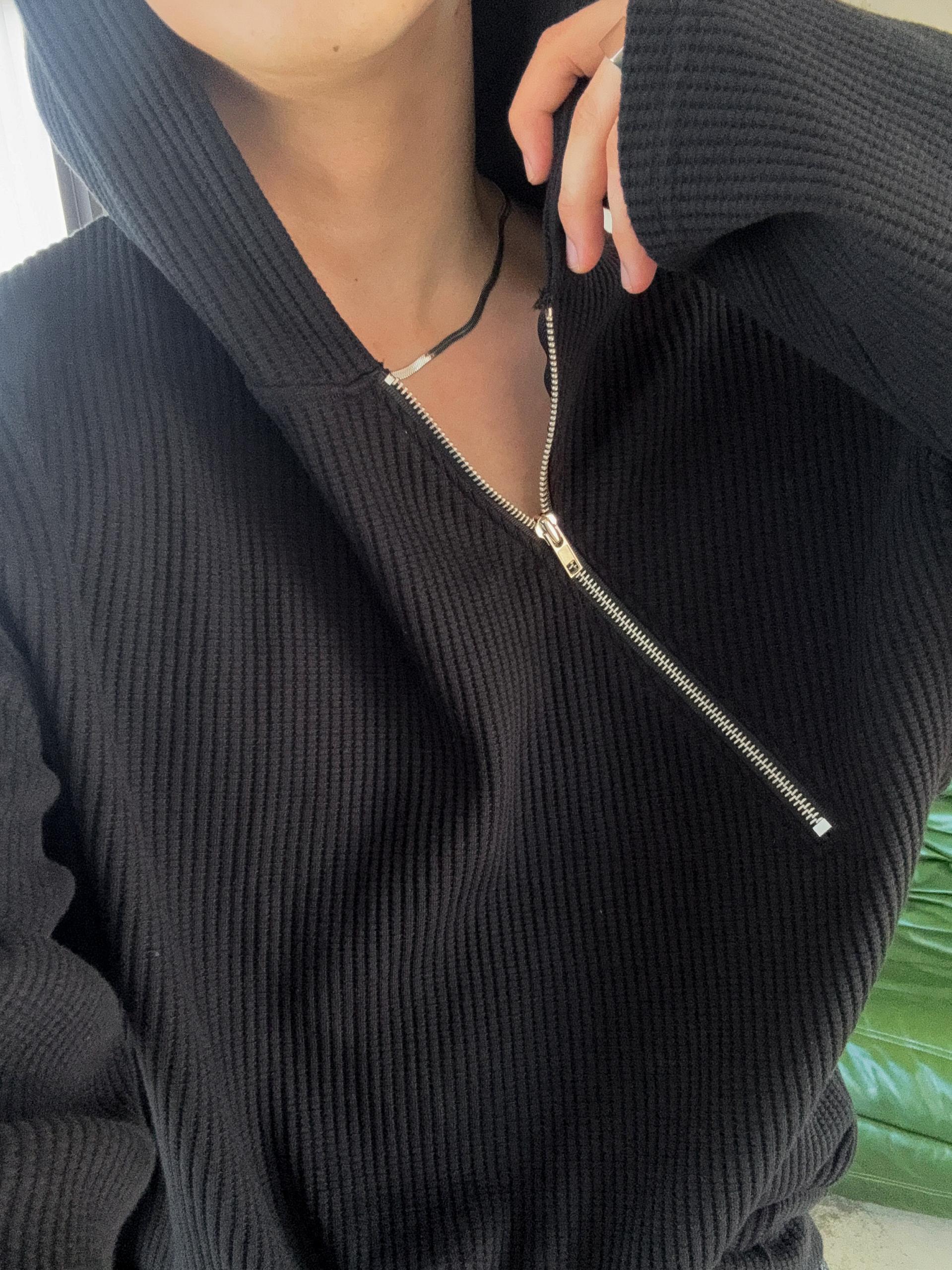 -목 부터 가슴 까지 이어지는 지퍼 디자인으로 다양한 스타일링 연출