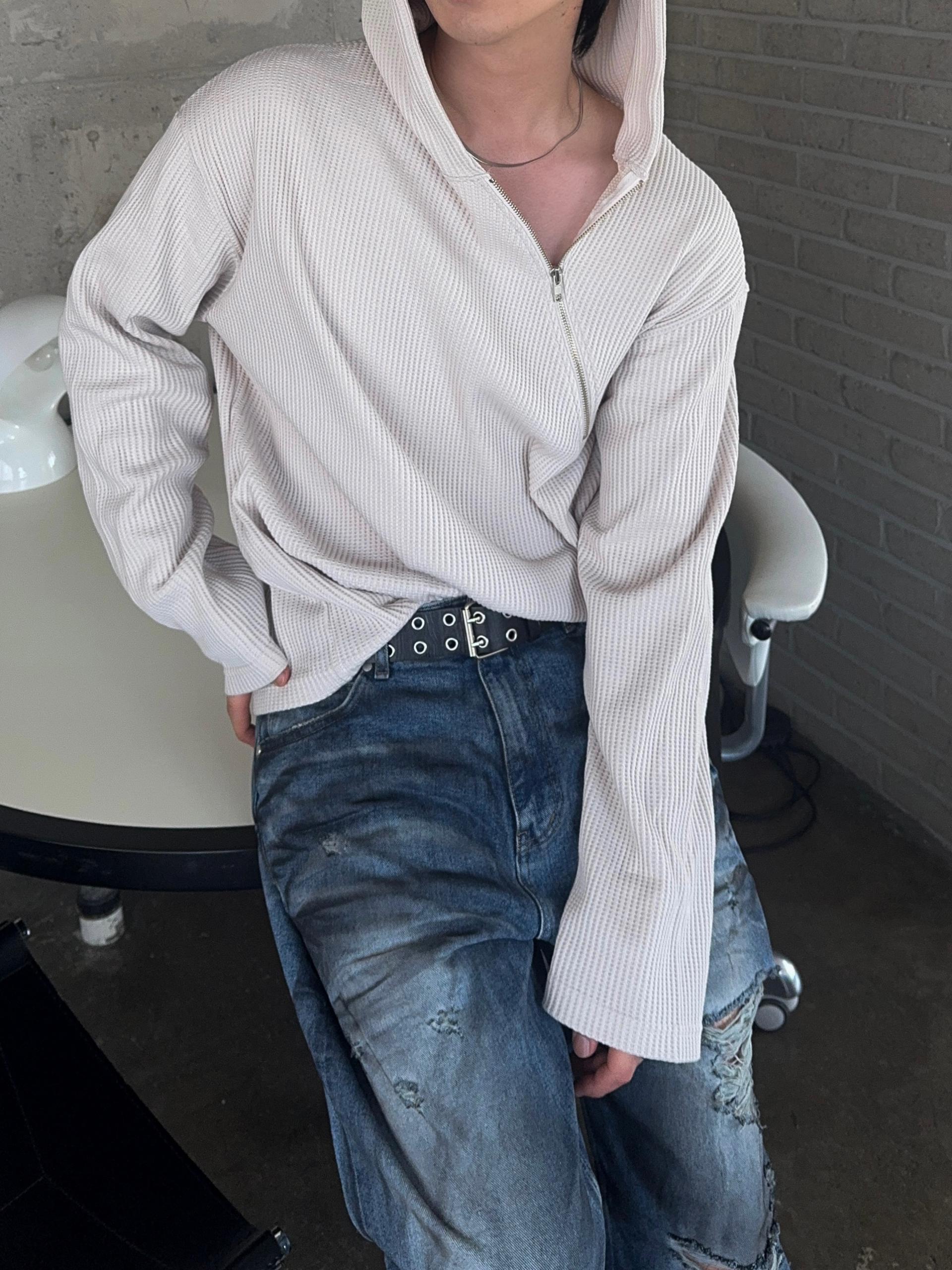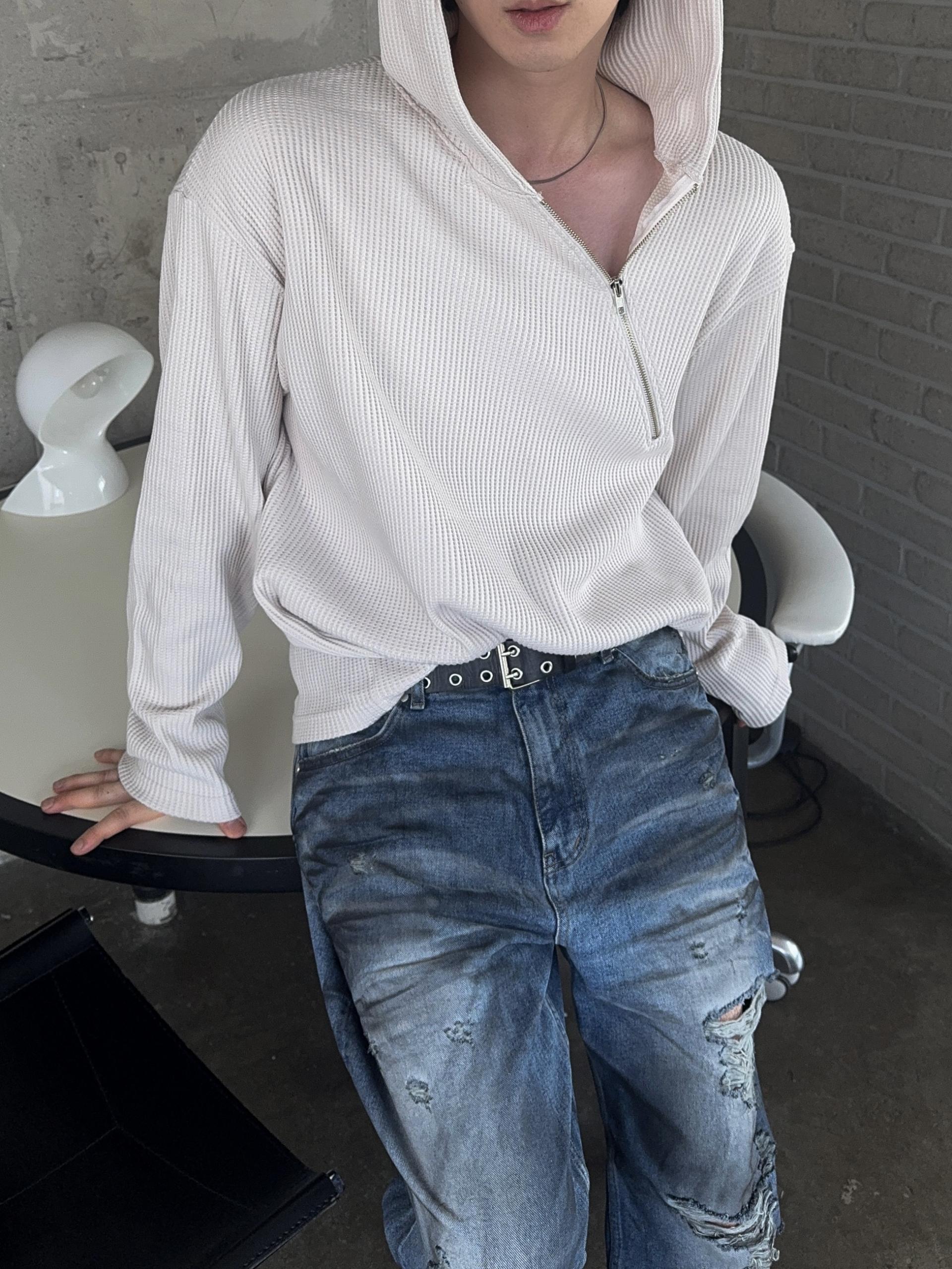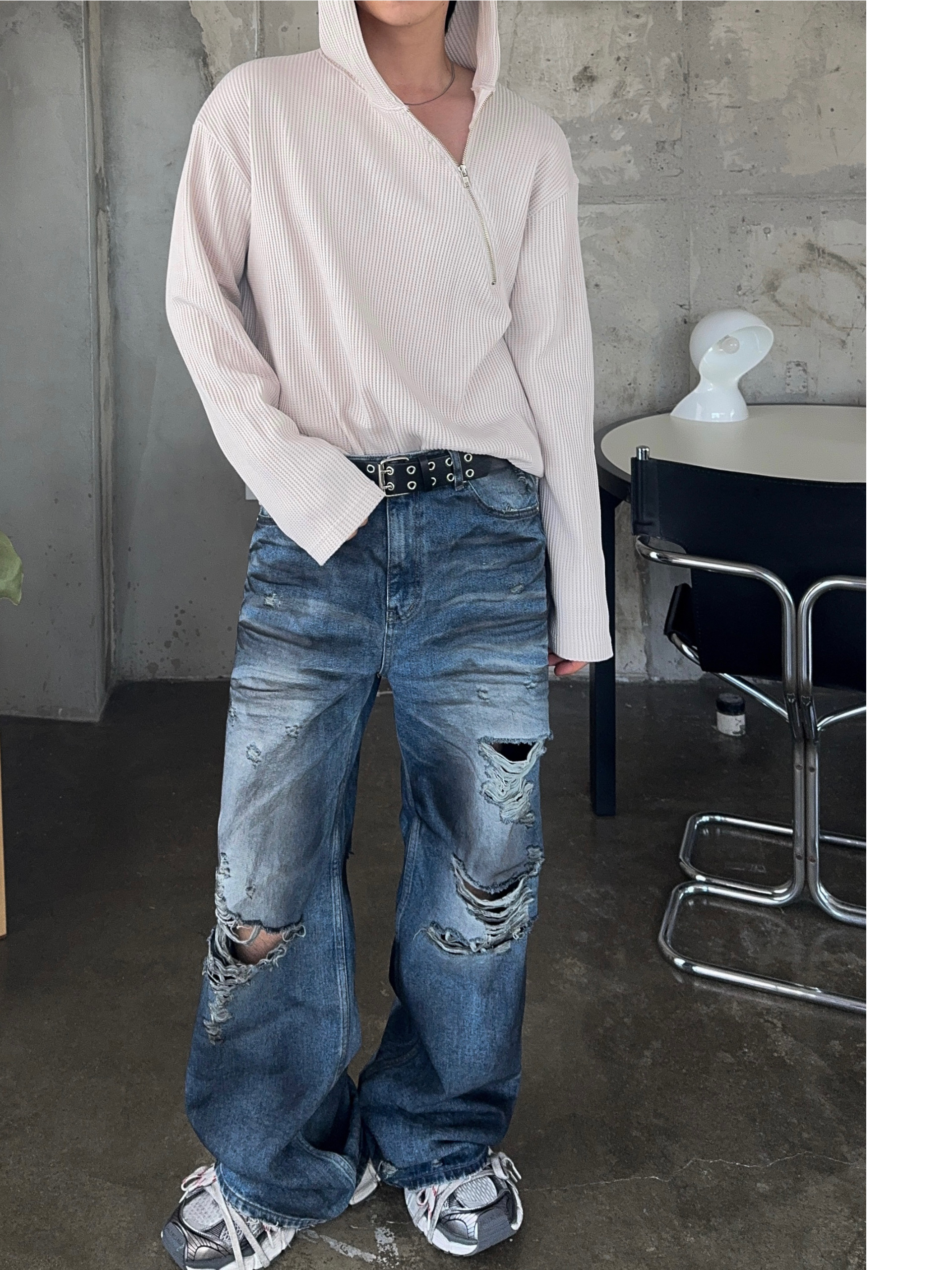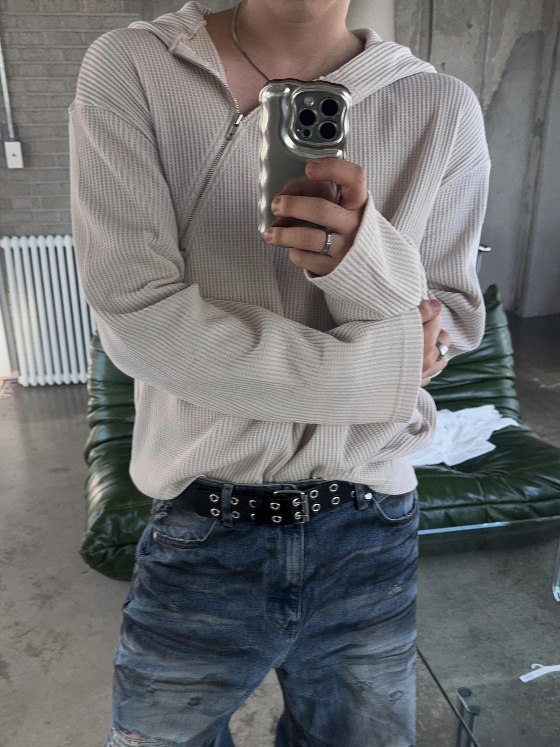 -목 부터 가슴 까지 이어지는 지퍼 디자인으로 다양한 스타일링 연출