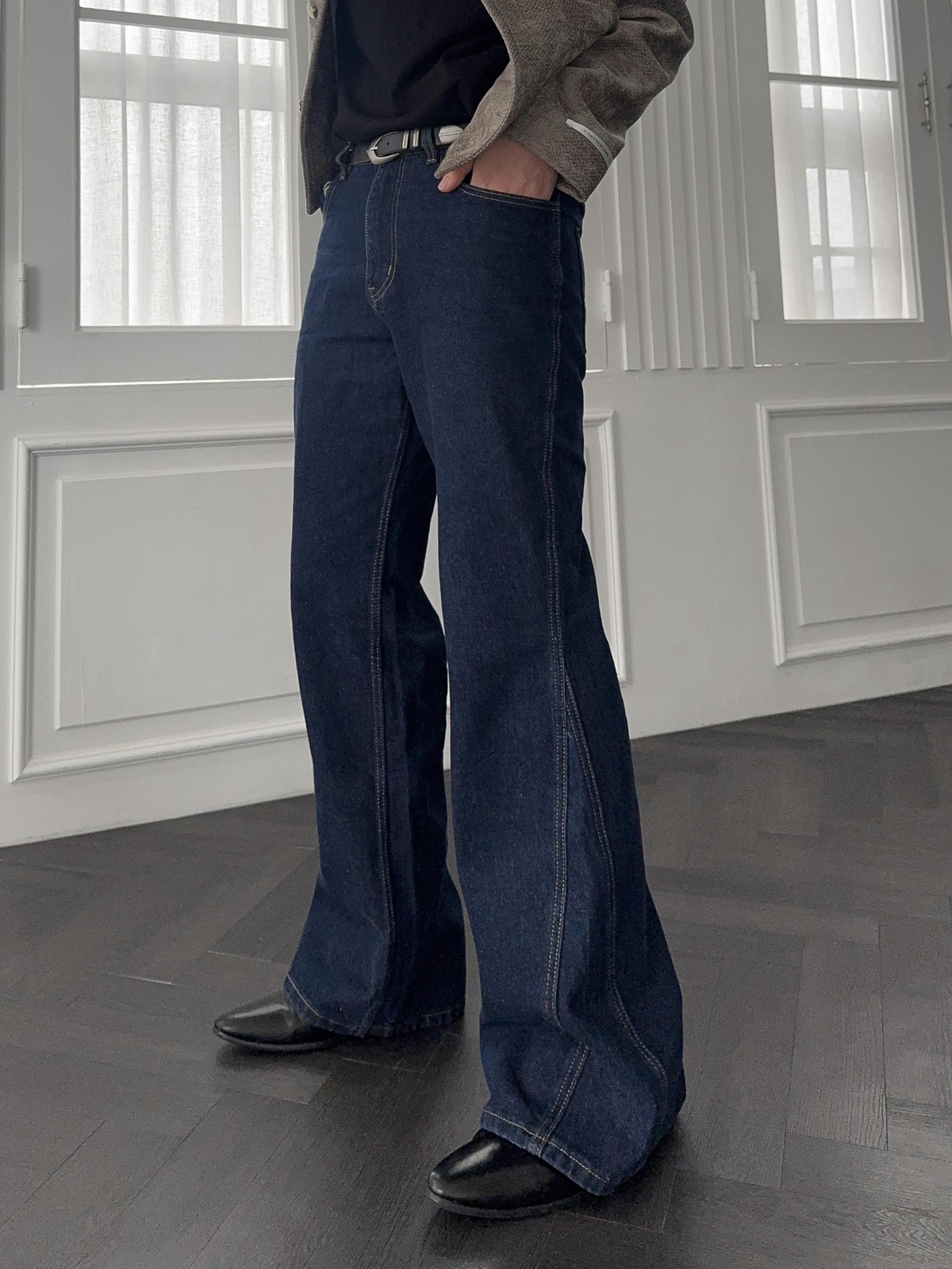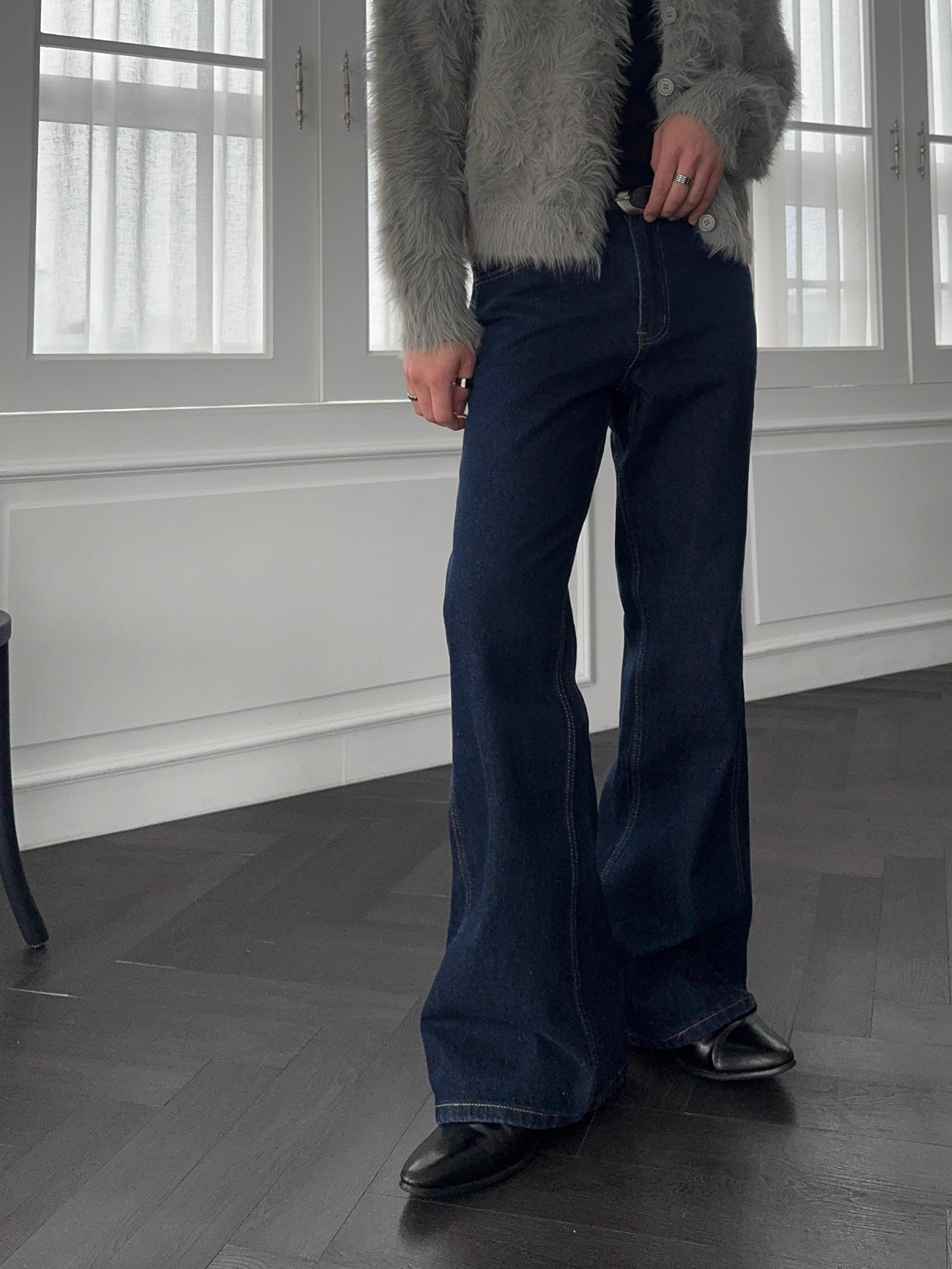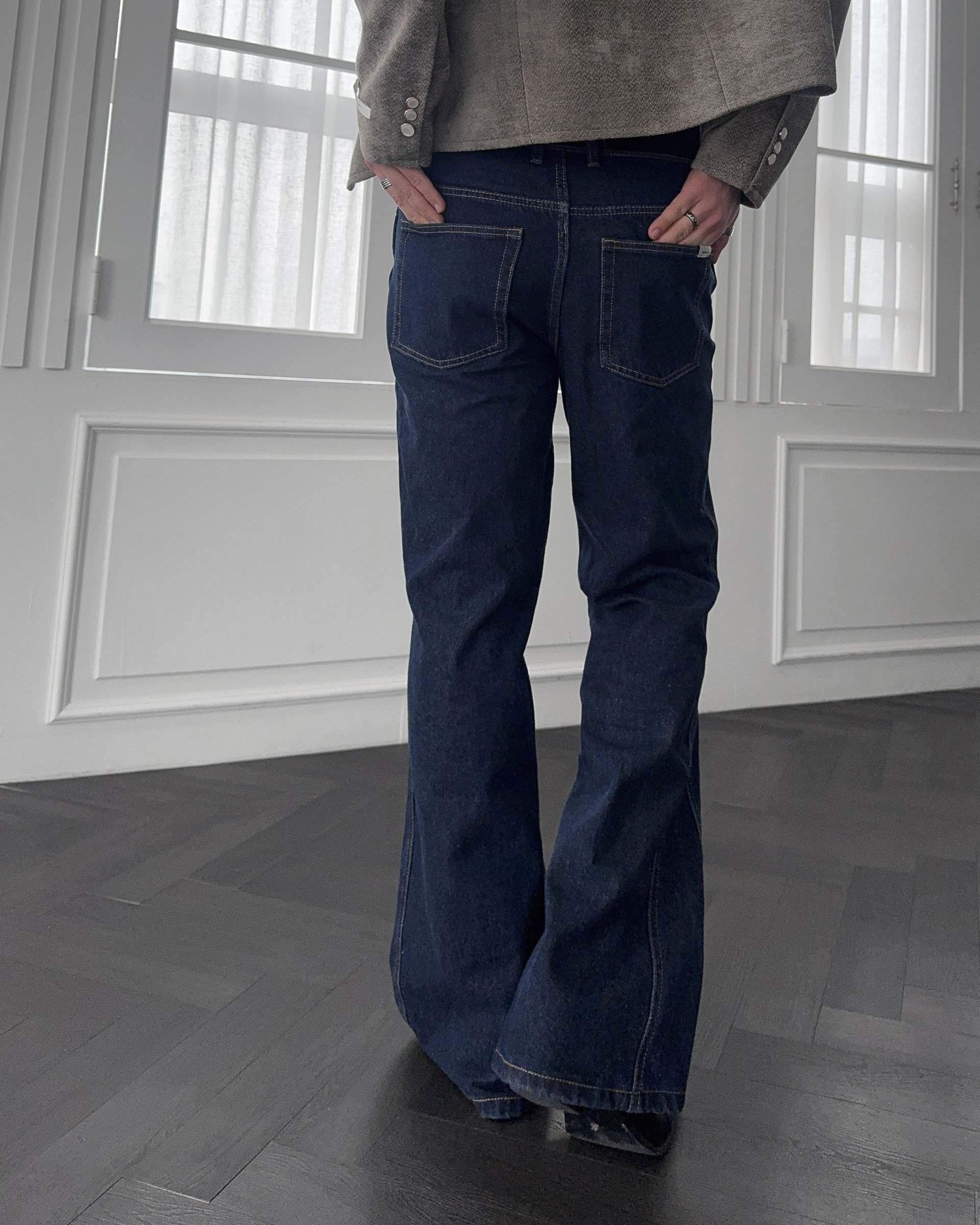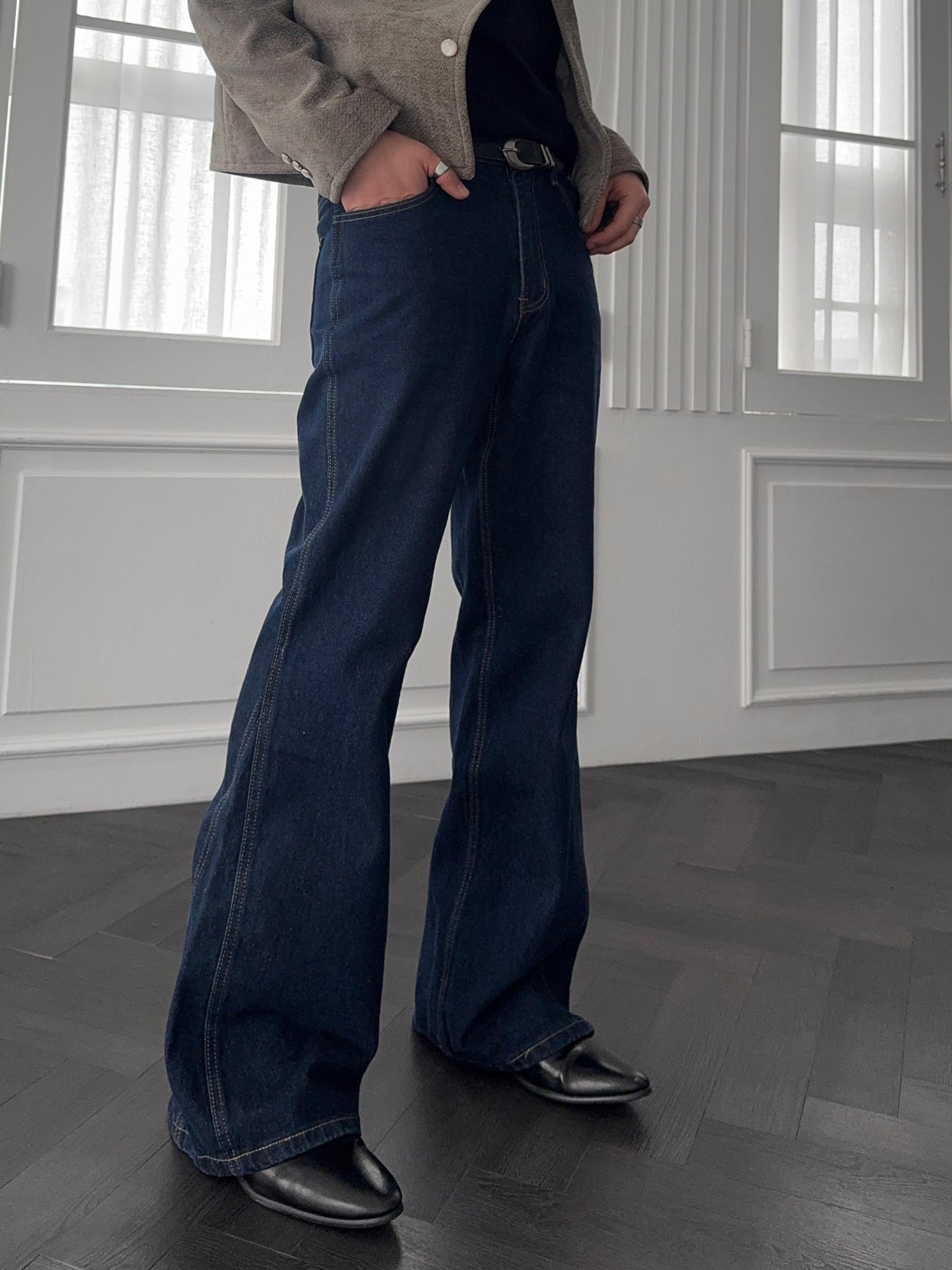-탄탄한 데님 원단으로 제작된 플레어 팬츠