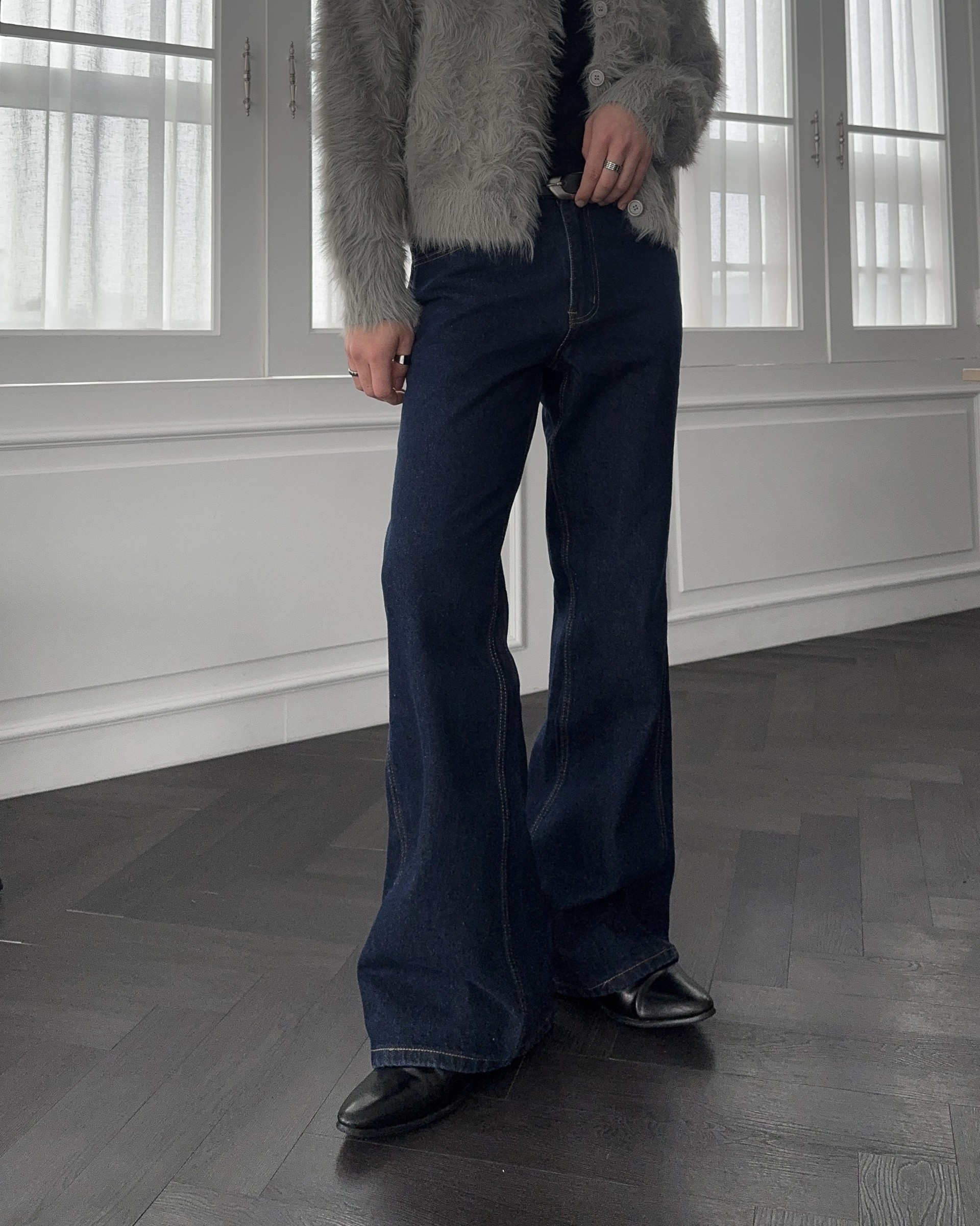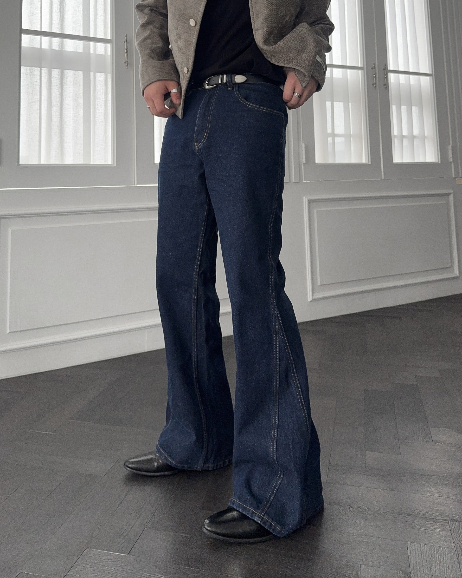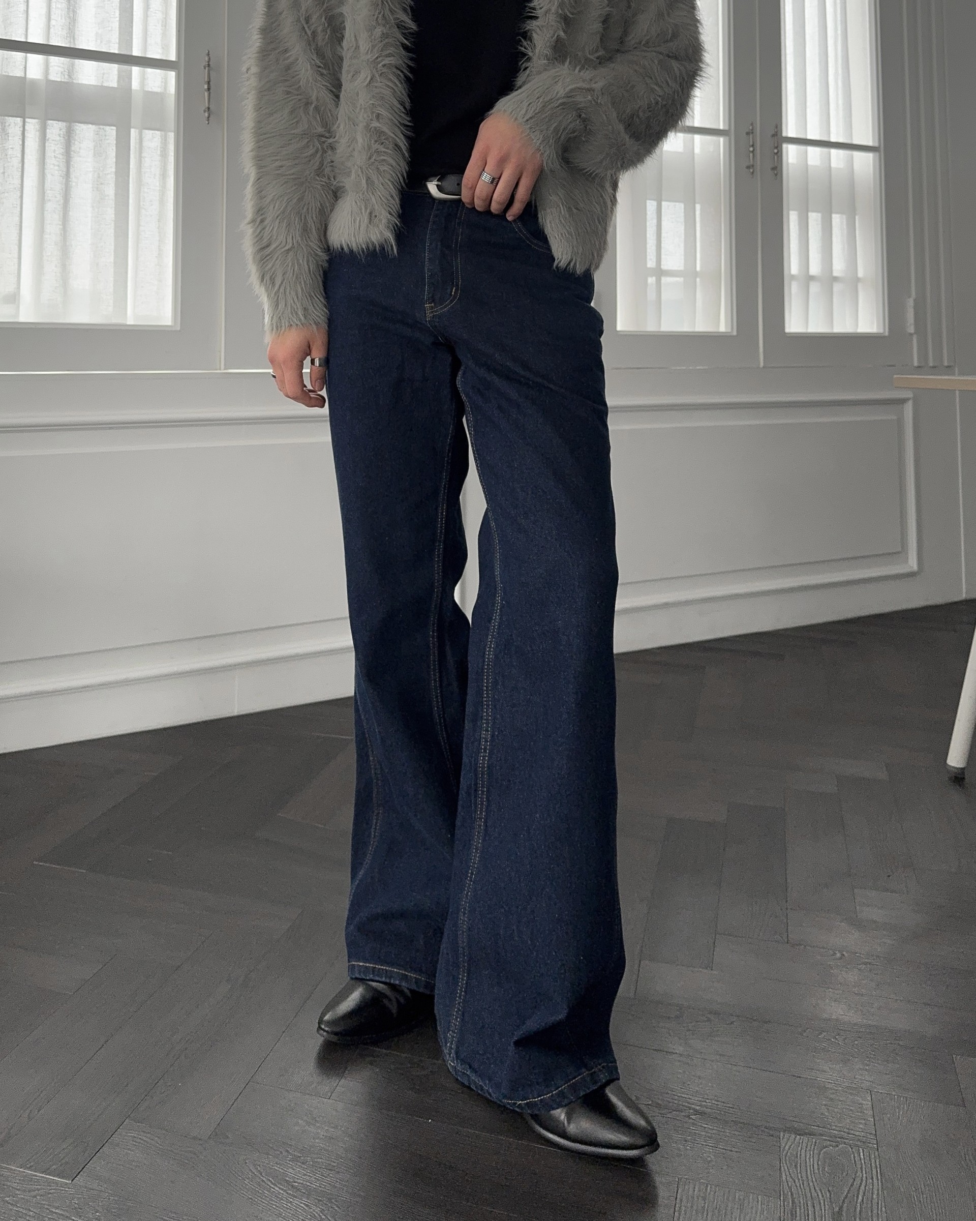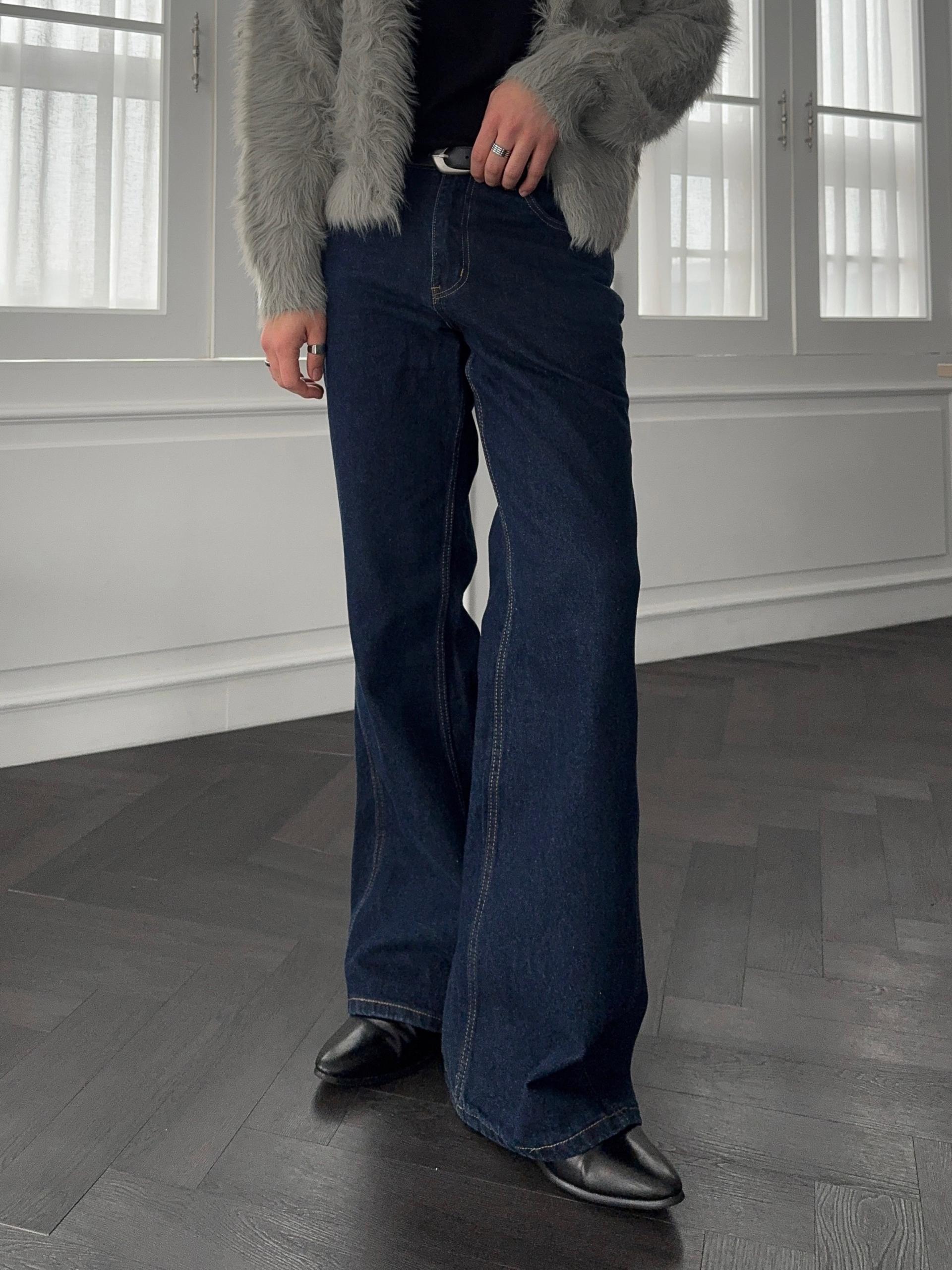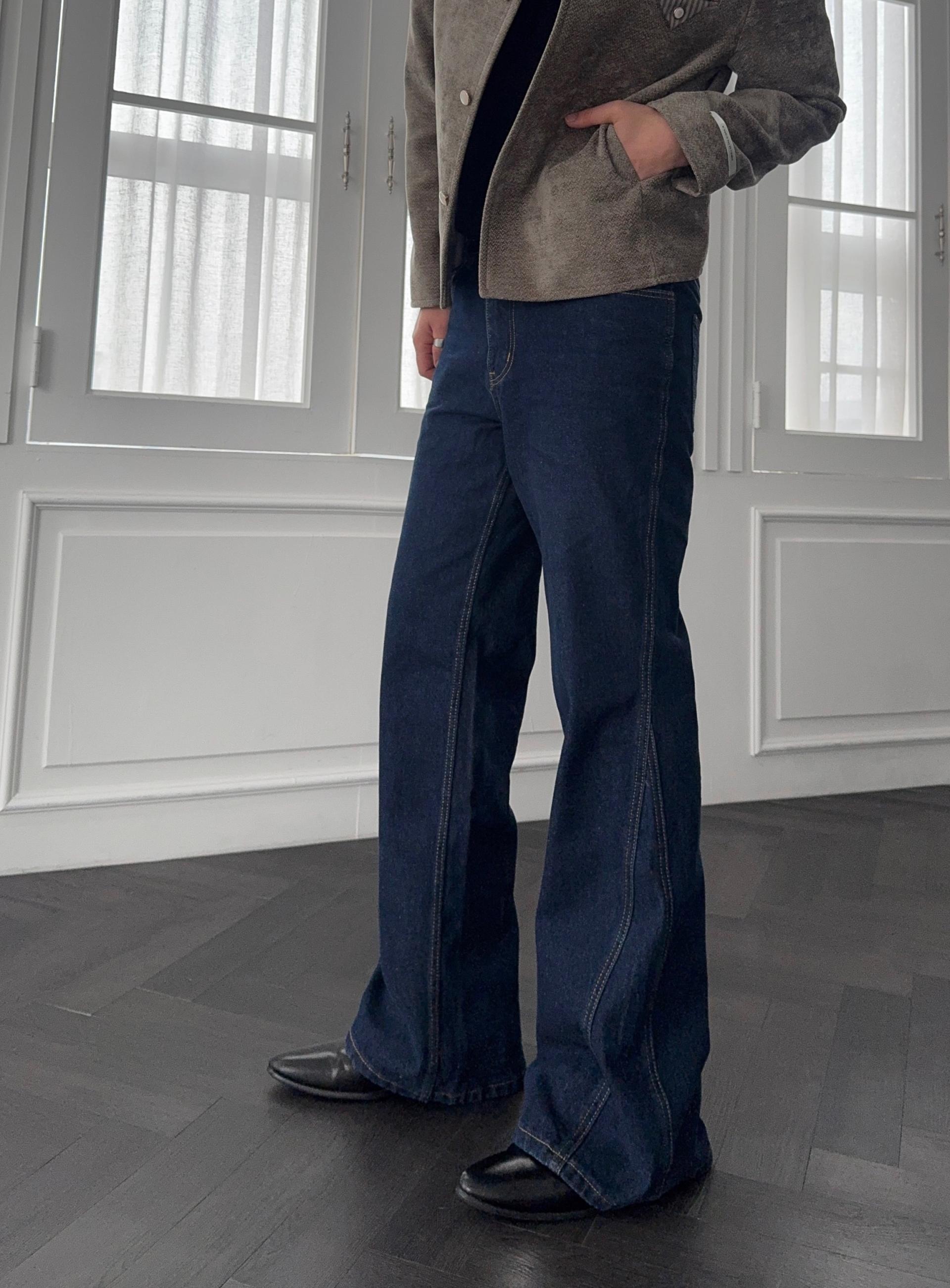 -탄탄한 데님 원단으로 제작된 플레어 팬츠