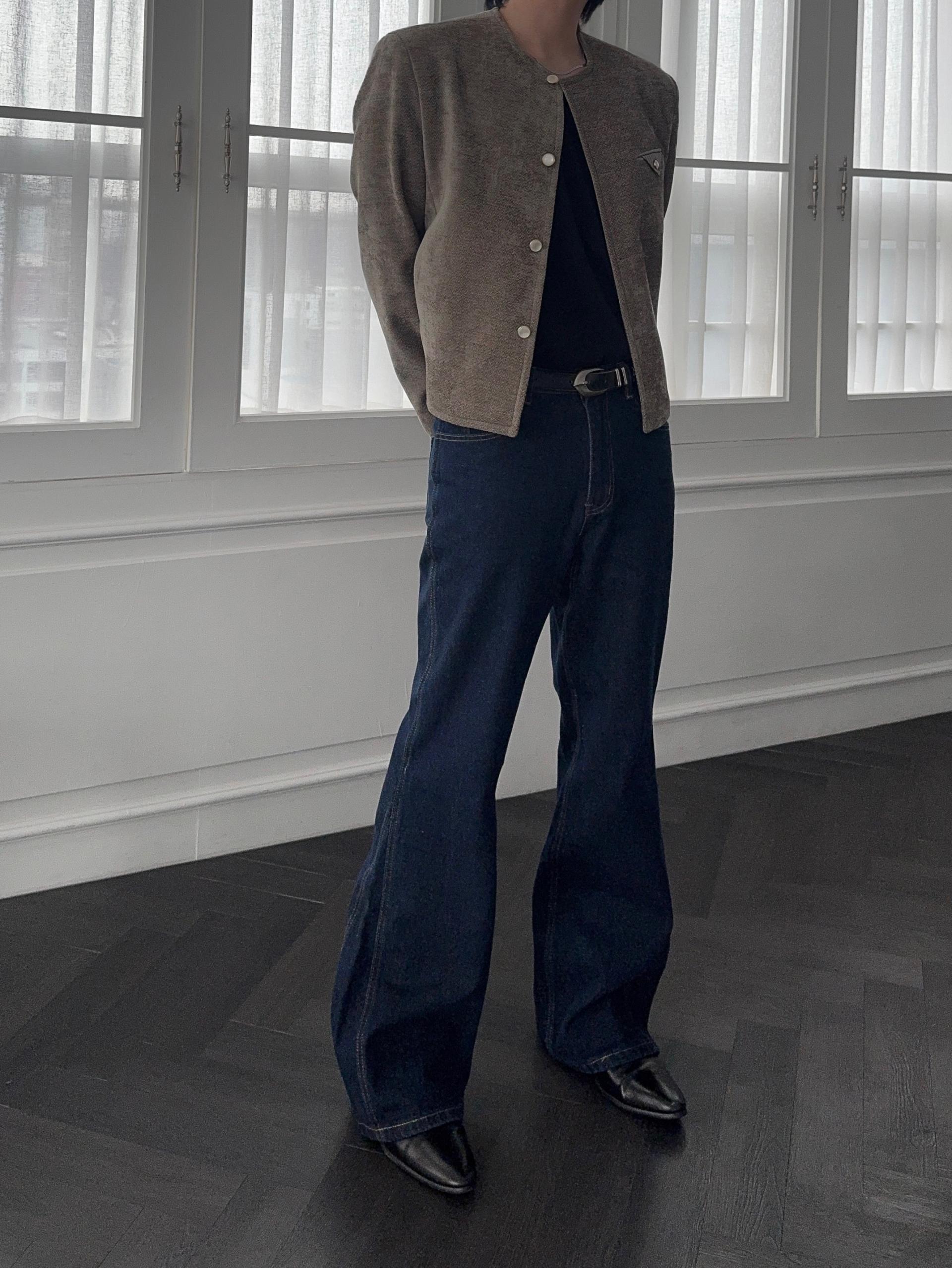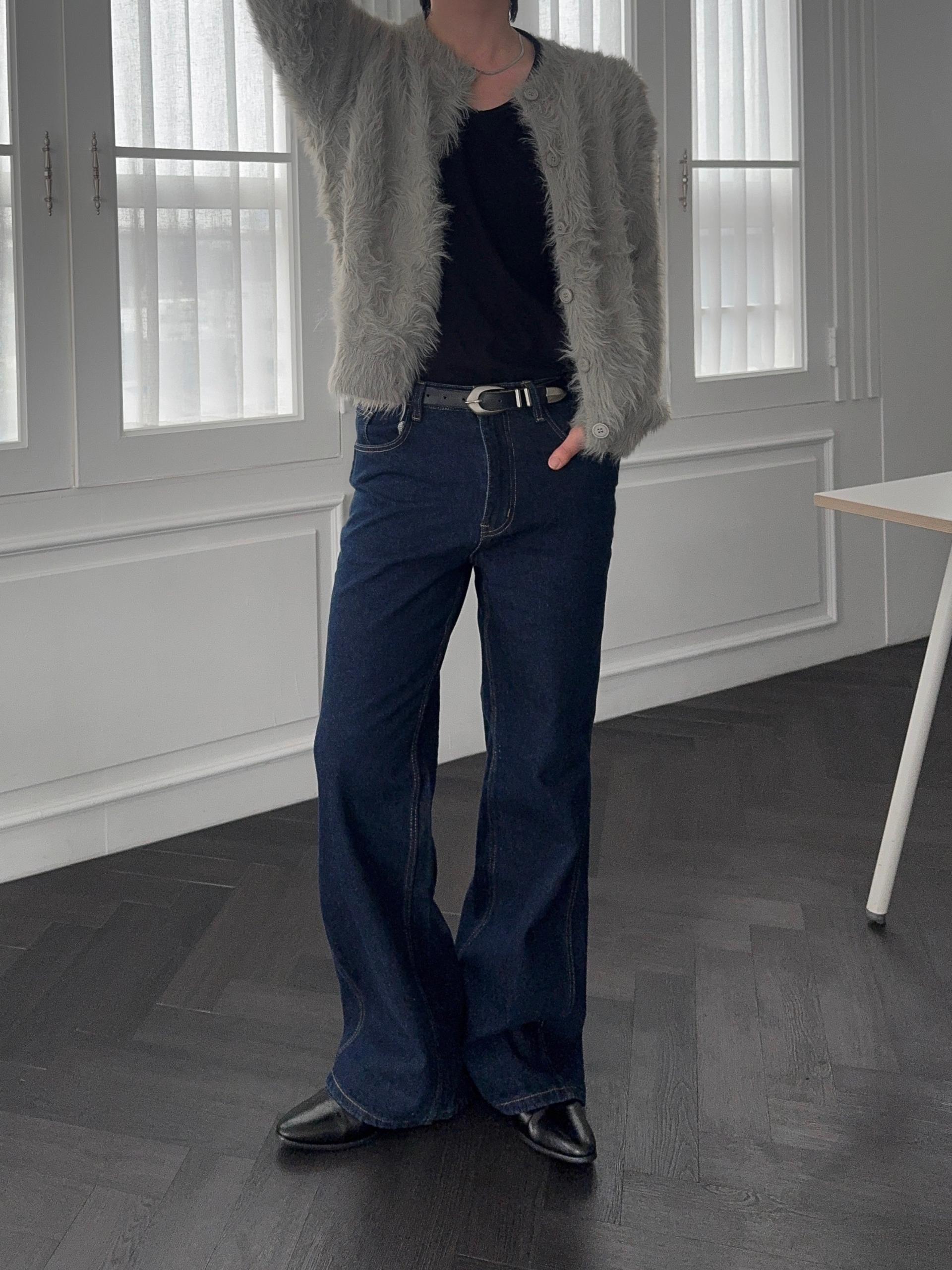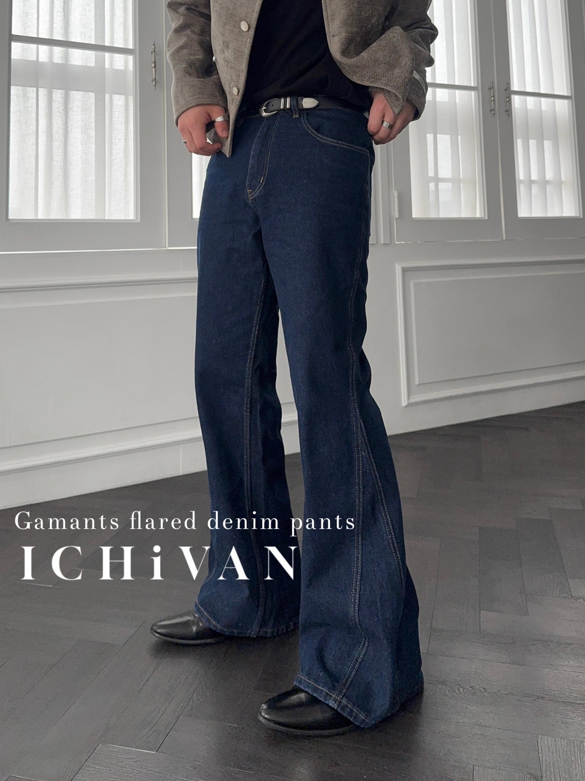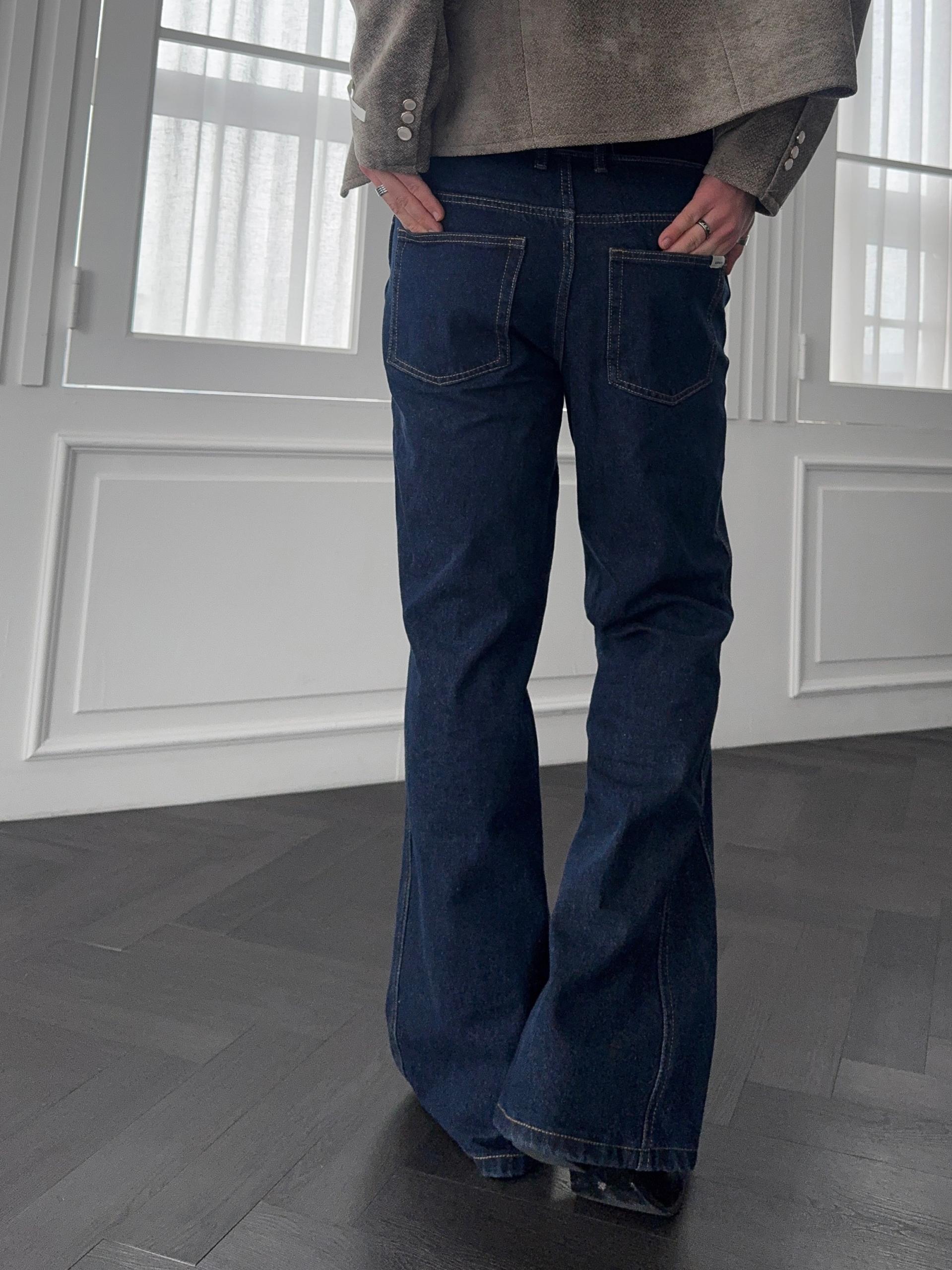 -탄탄한 데님 원단으로 제작된 플레어 팬츠
