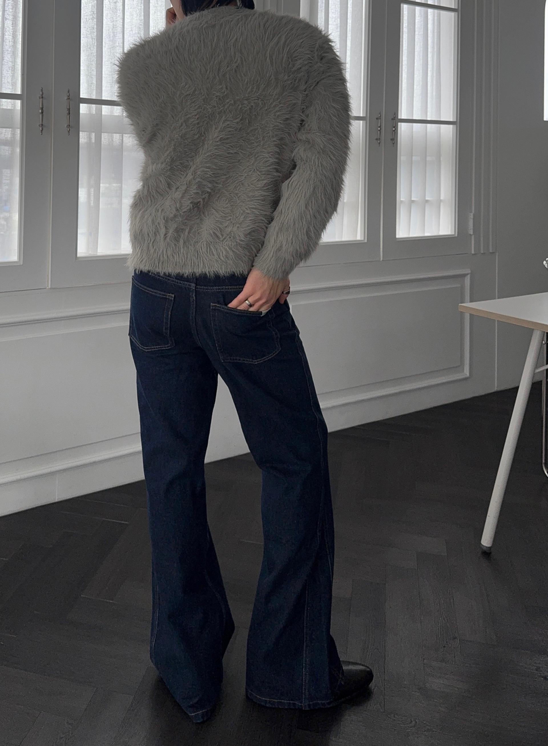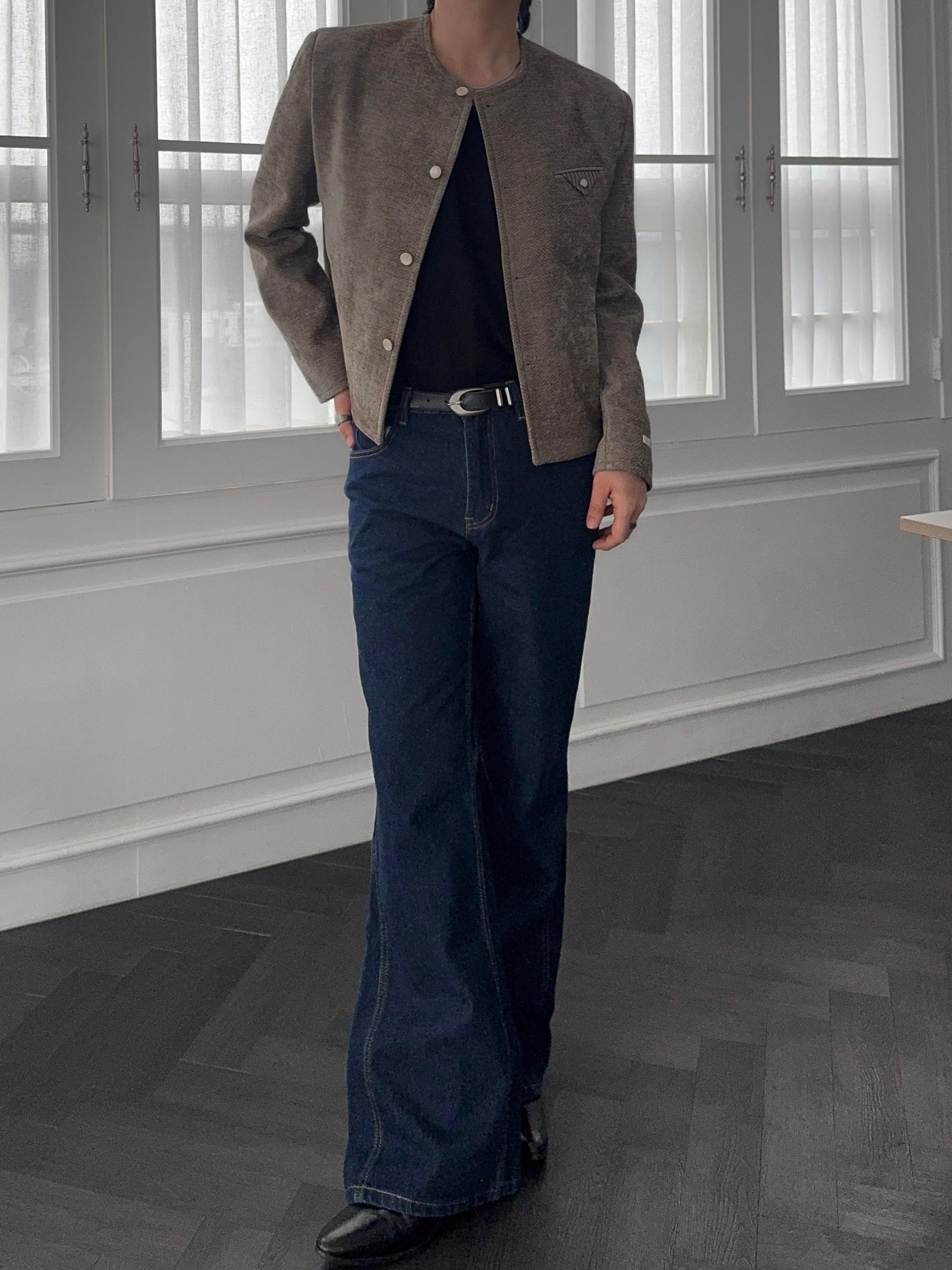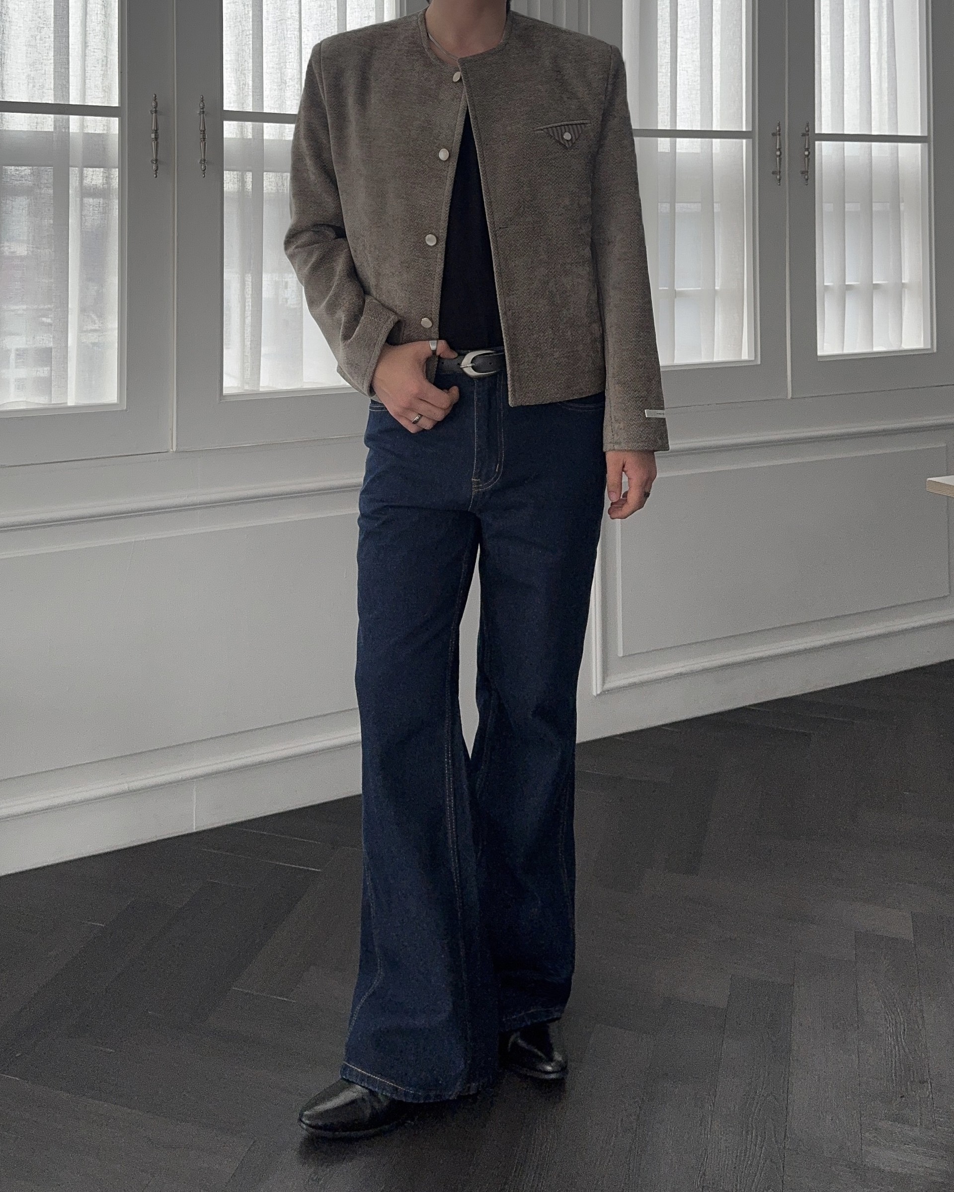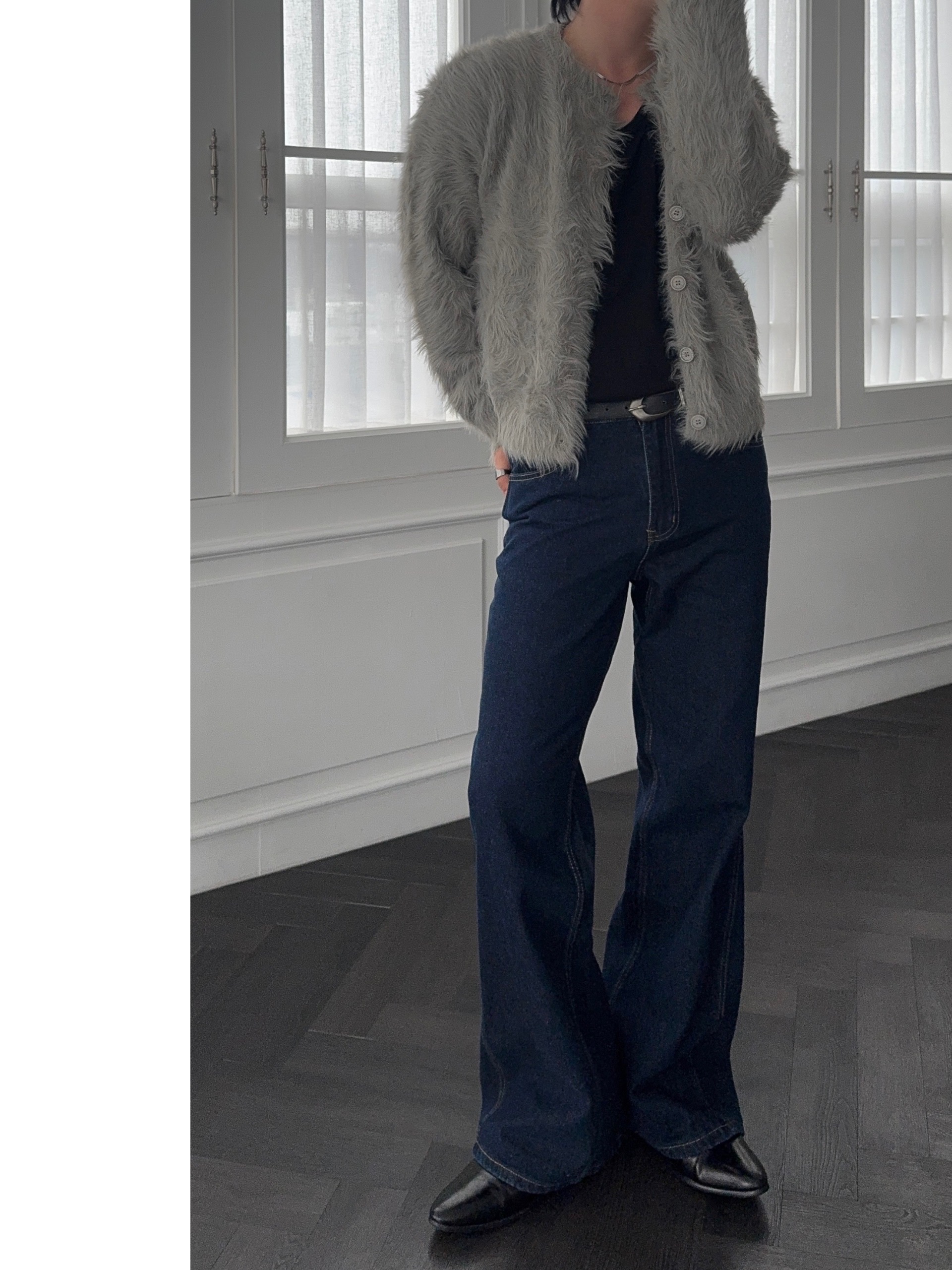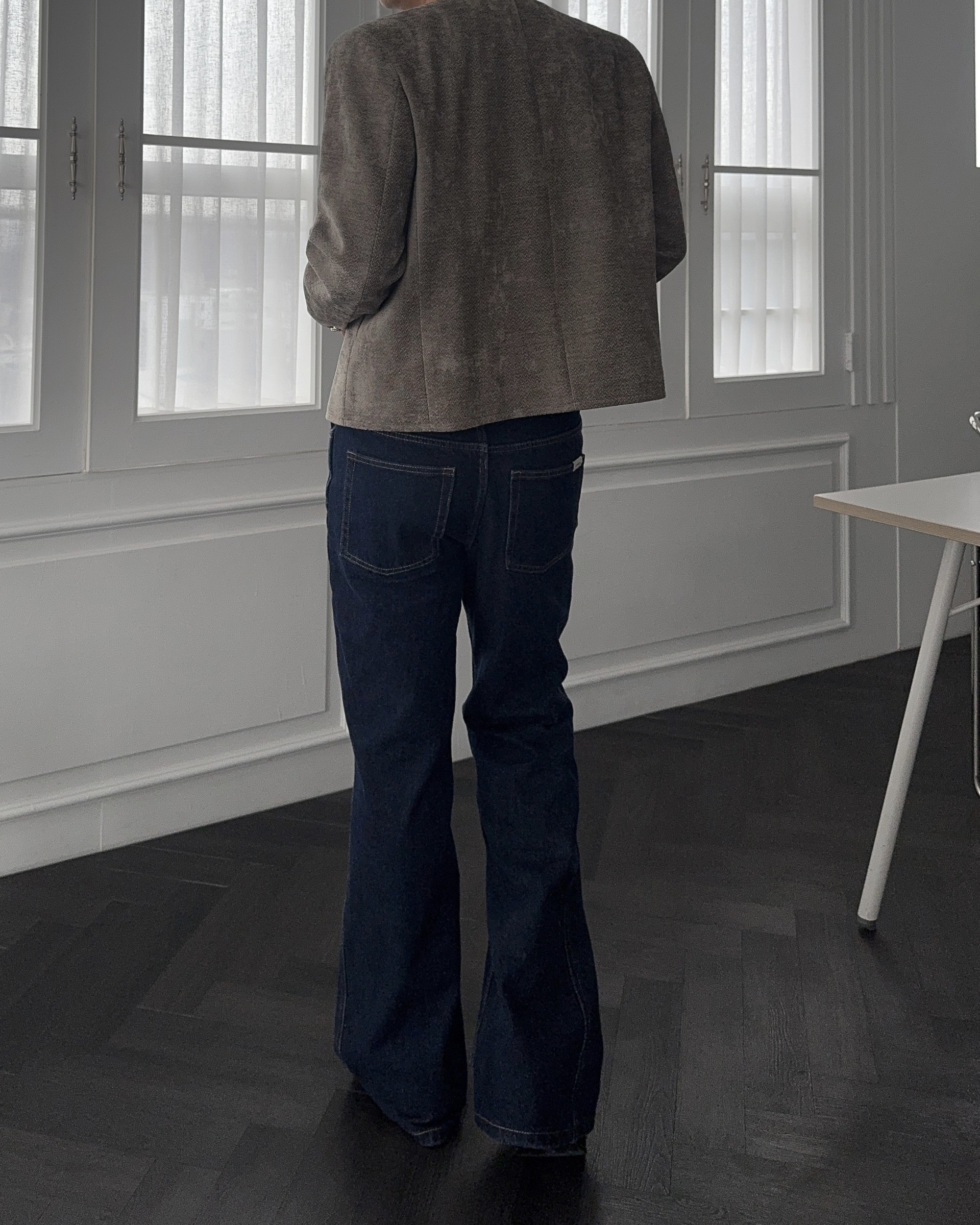 -탄탄한 데님 원단으로 제작된 플레어 팬츠