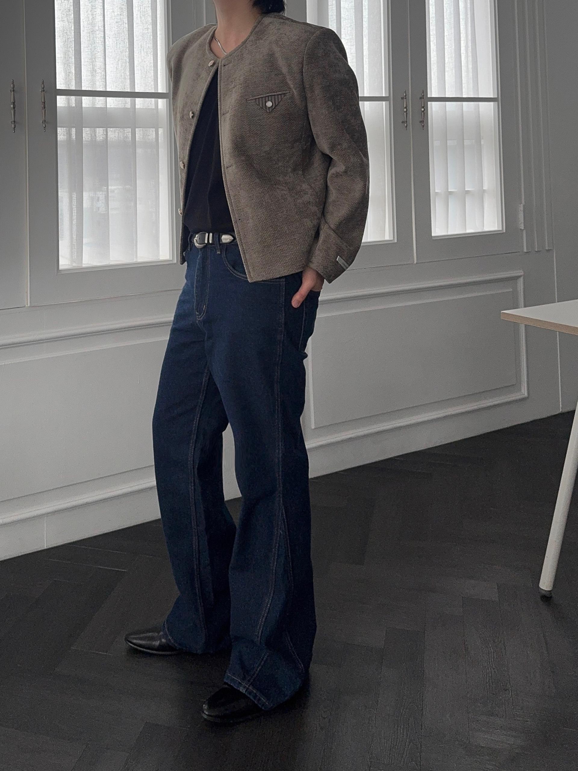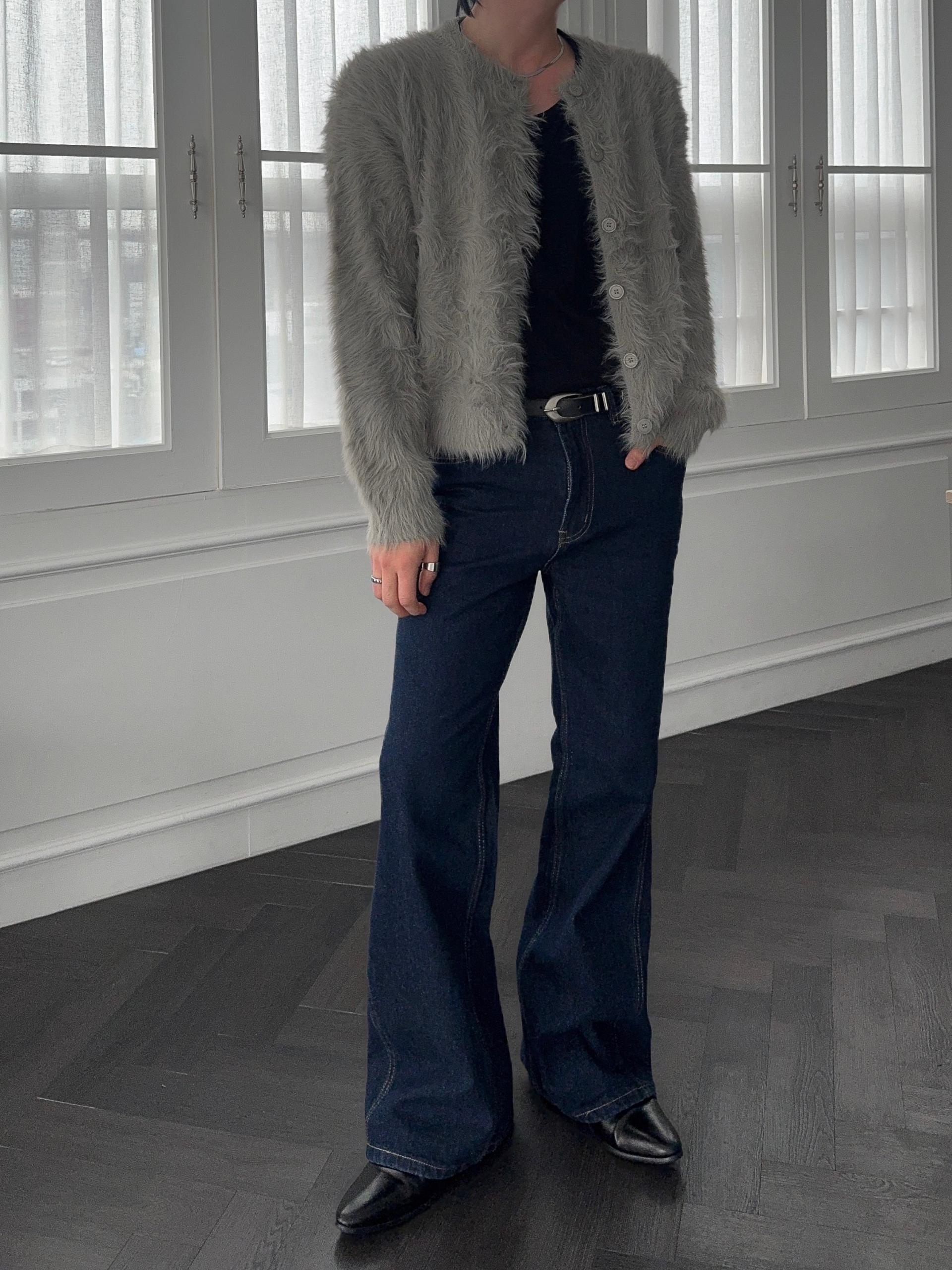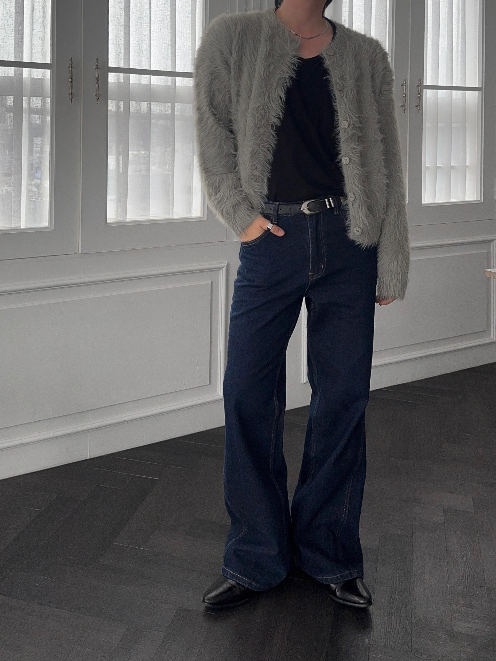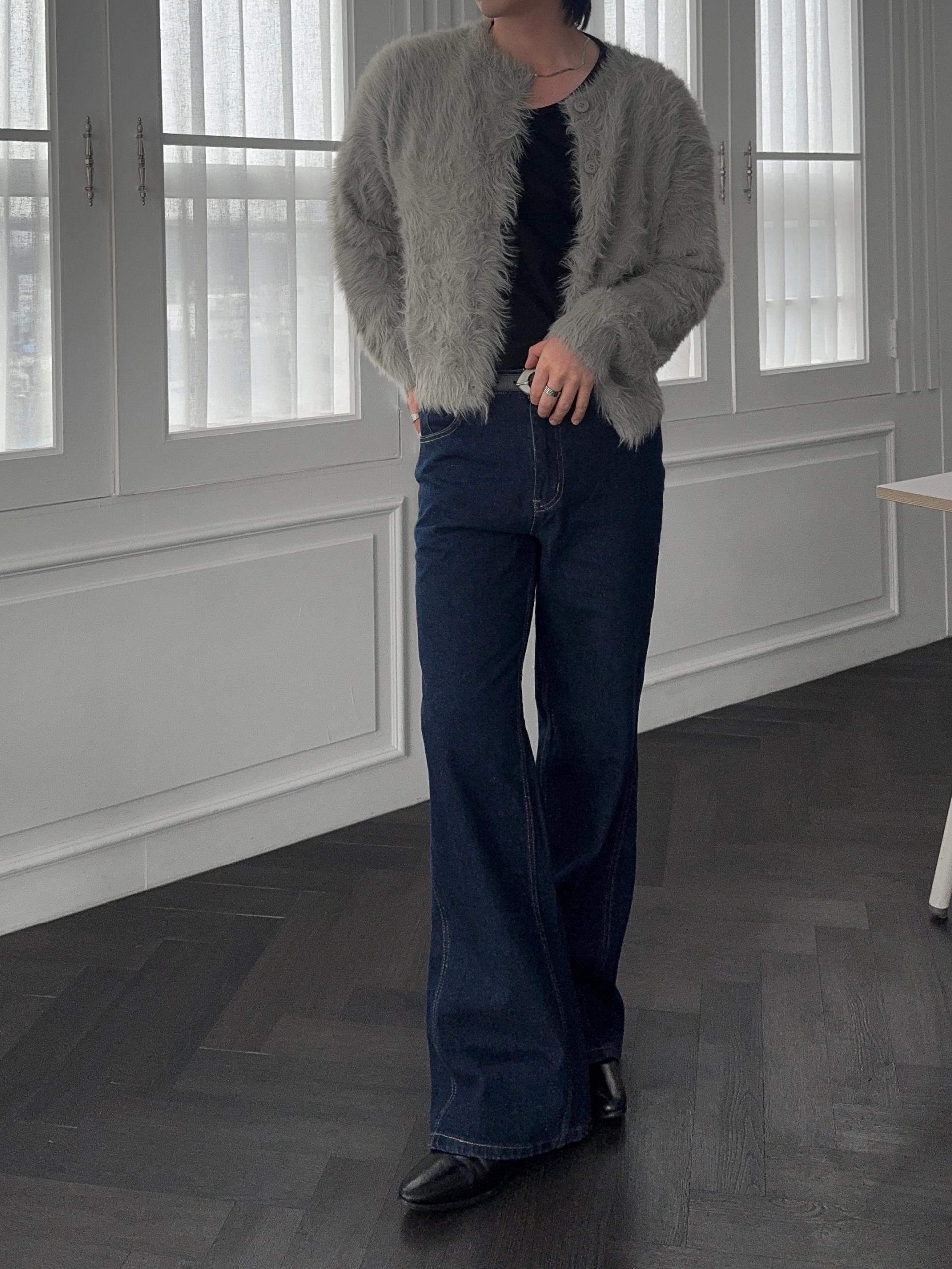 -탄탄한 데님 원단으로 제작된 플레어 팬츠
