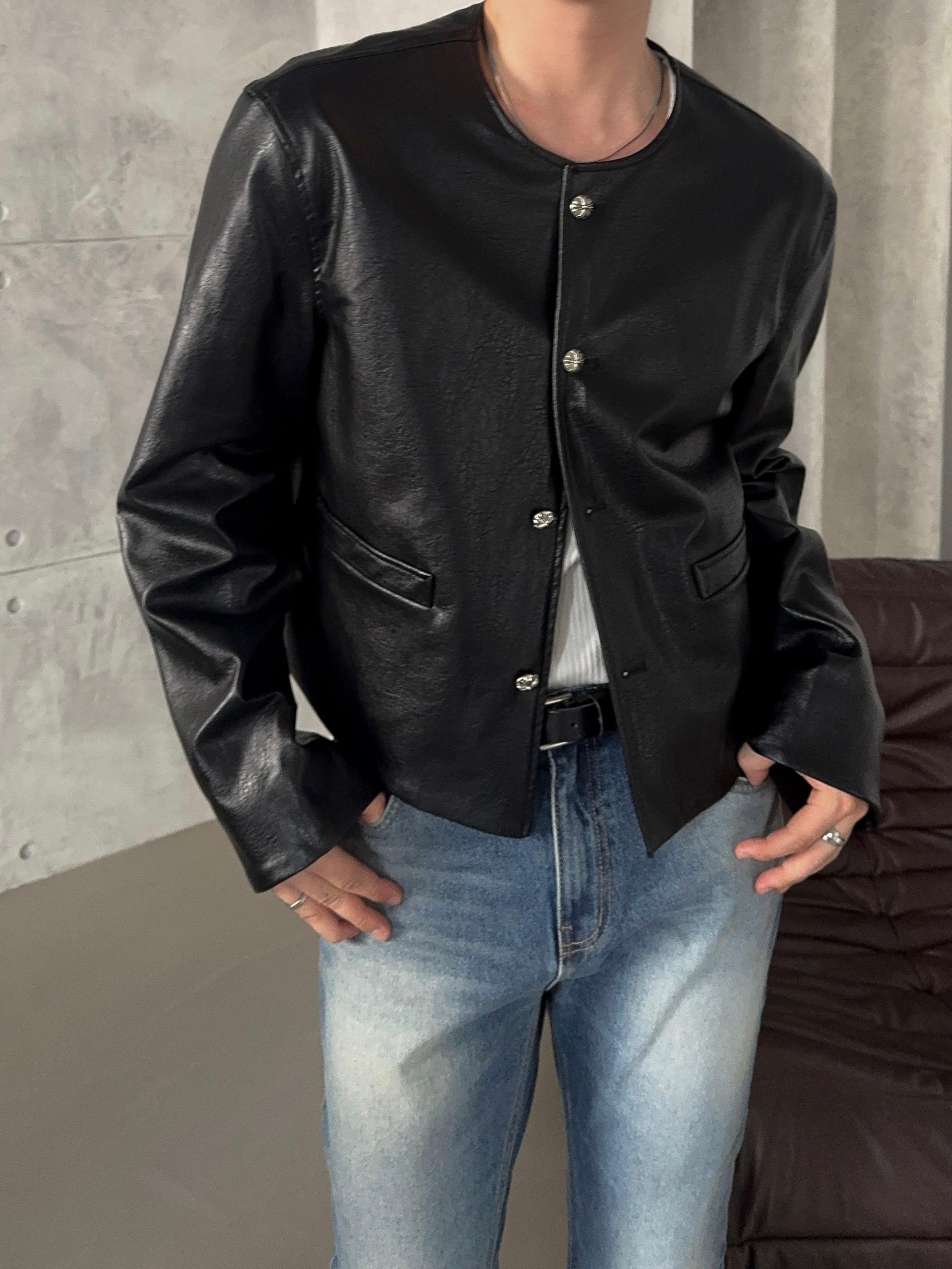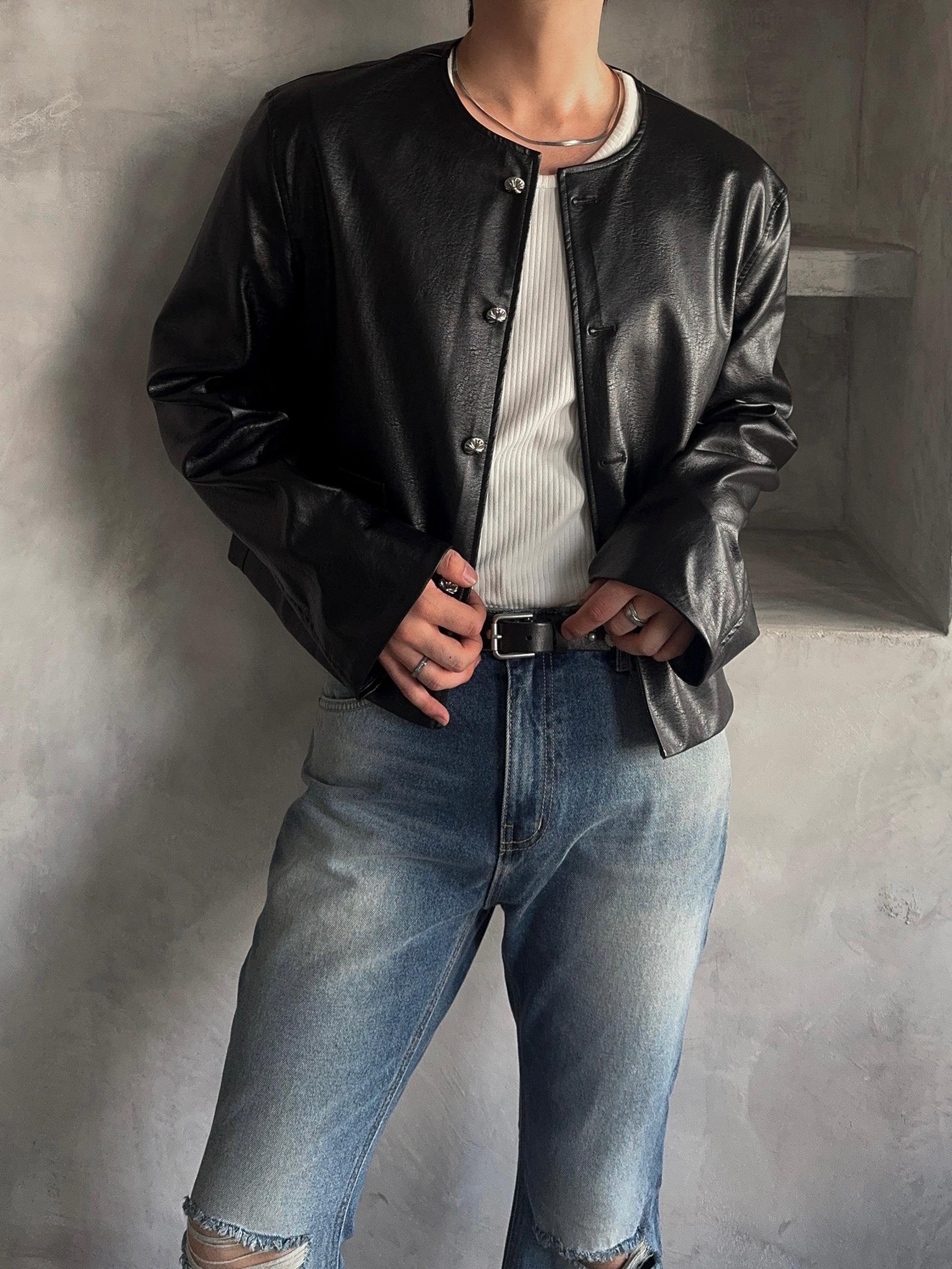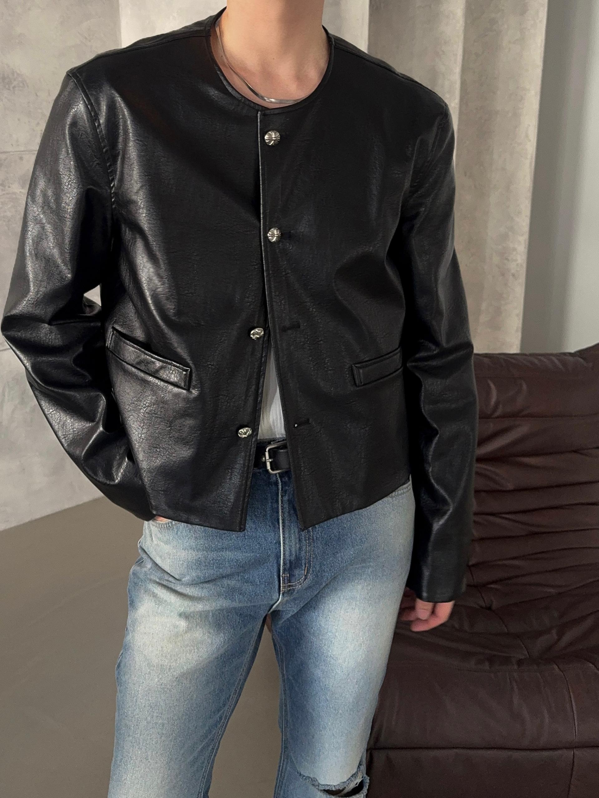 -빈티지한 크랙감이 돋보이는 레더소재로 제작된 자켓