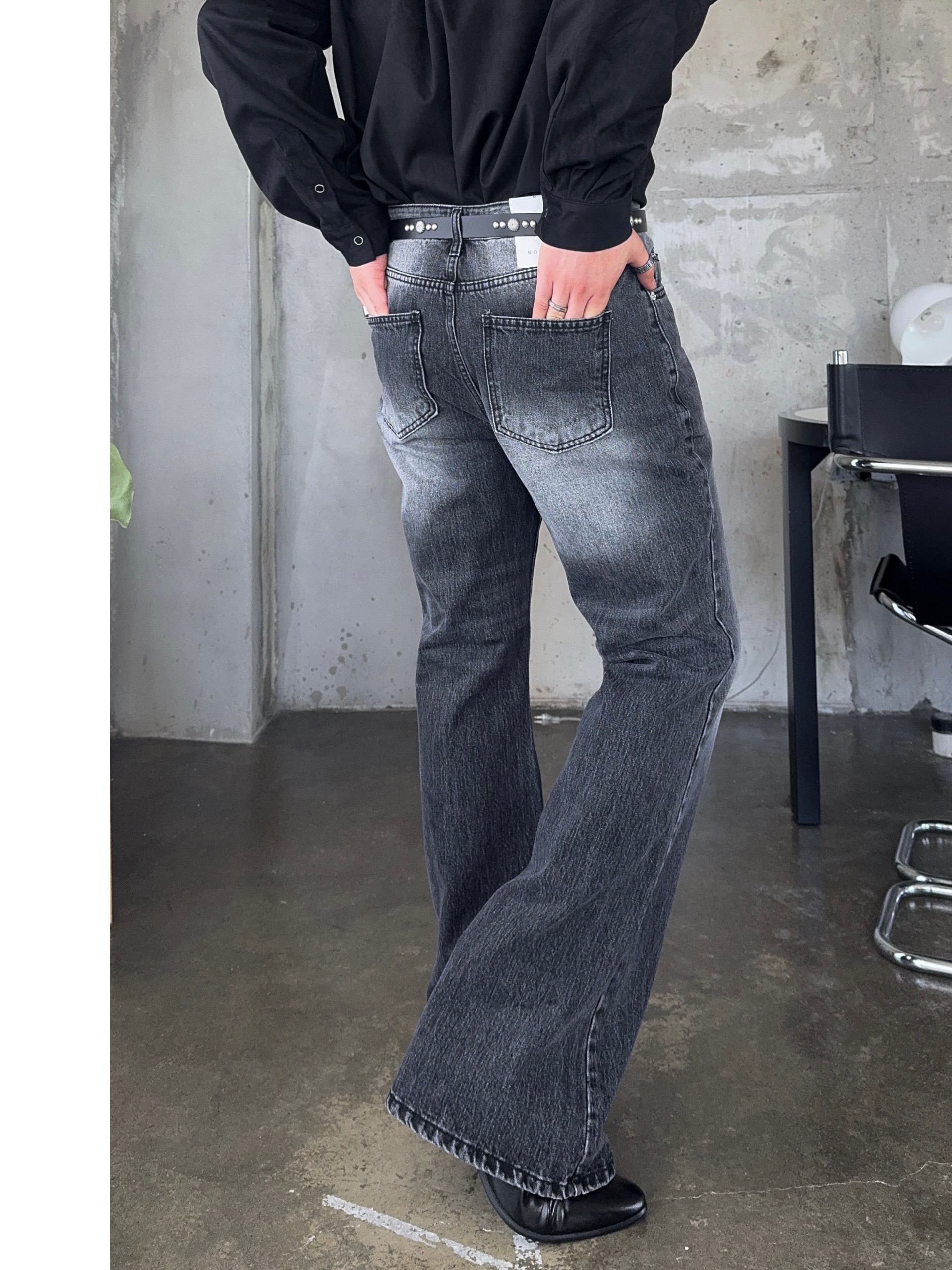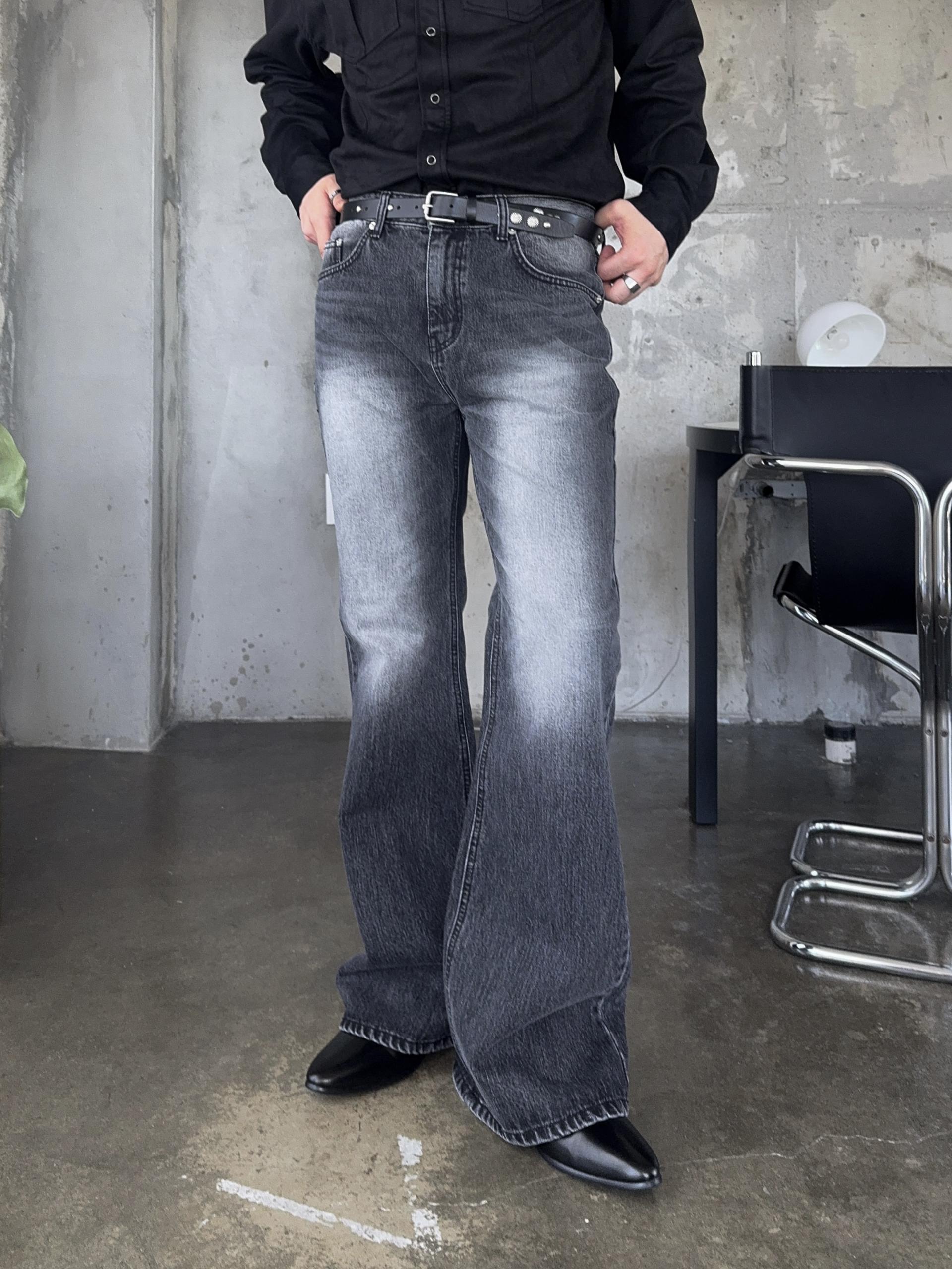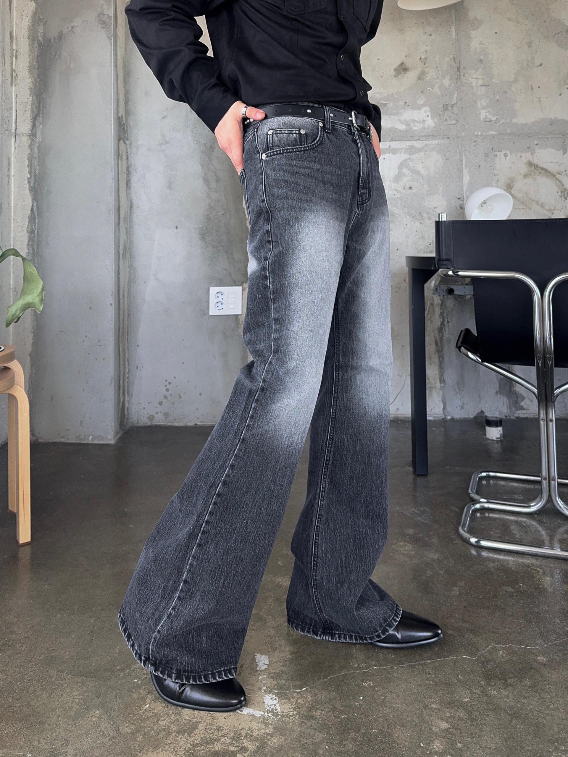 -탄탄한 데님 원단으로 제작된 플레어 팬츠