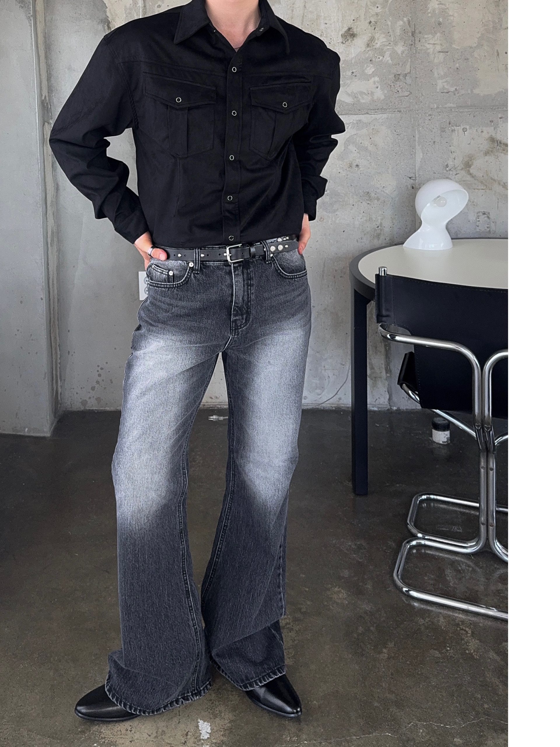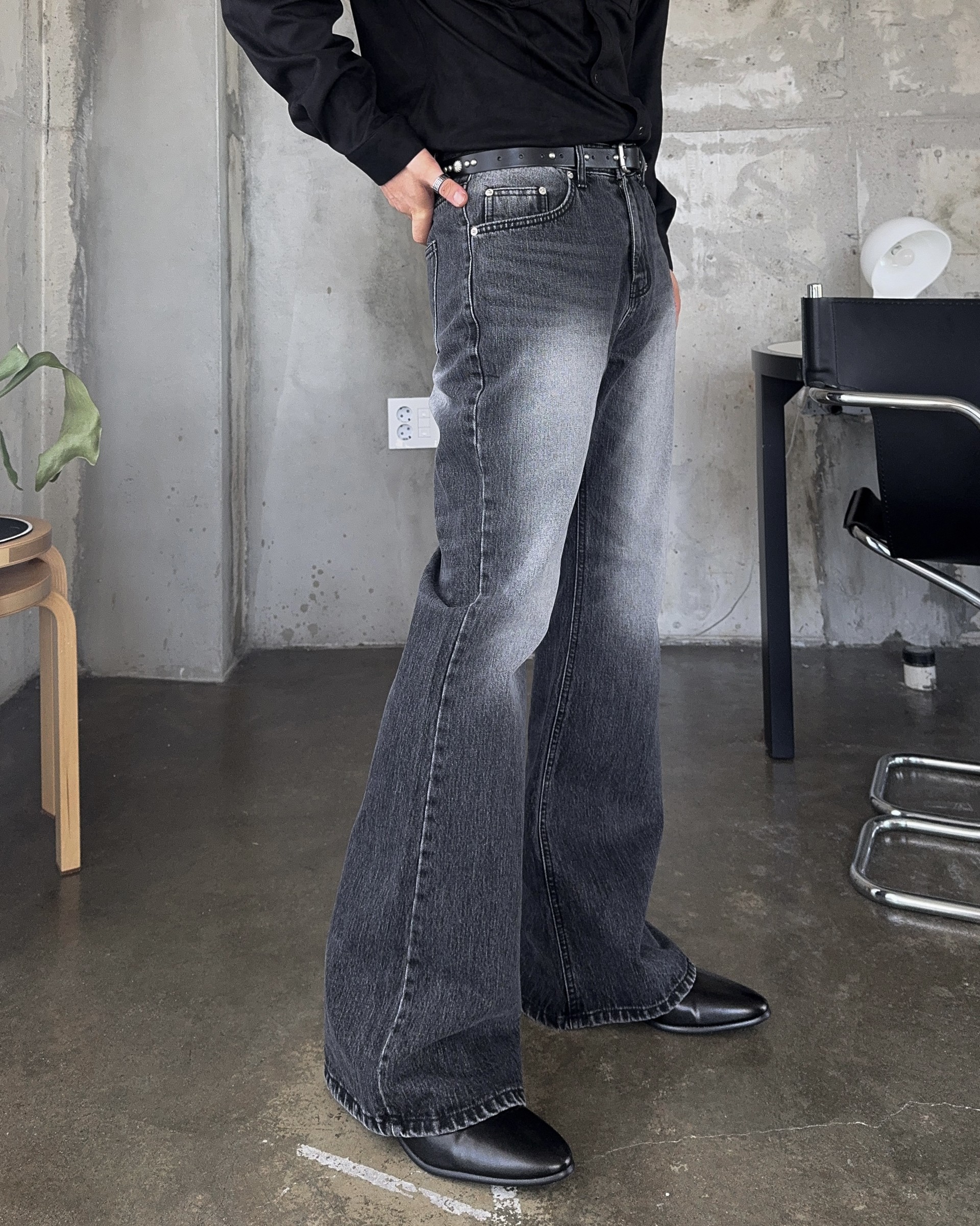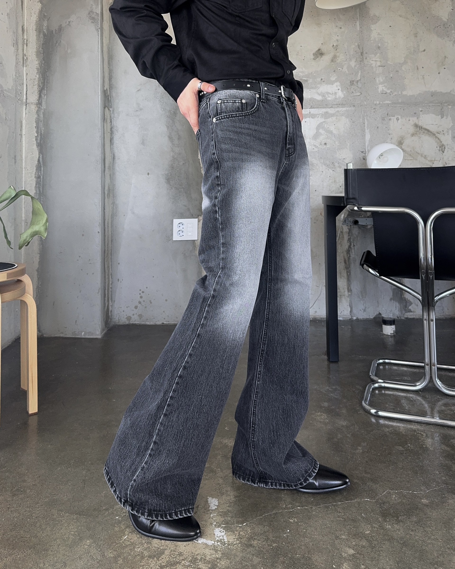 -탄탄한 데님 원단으로 제작된 플레어 팬츠