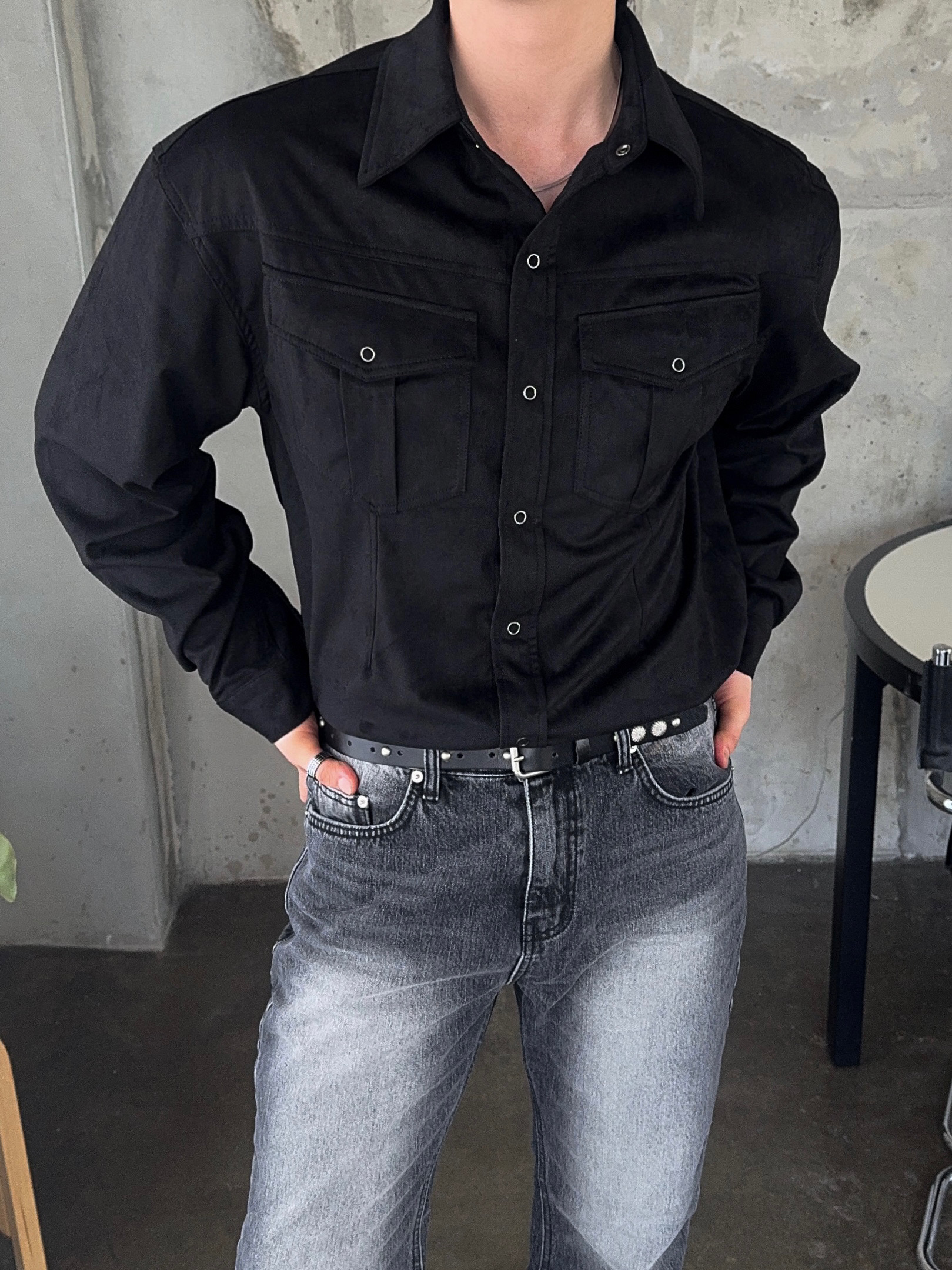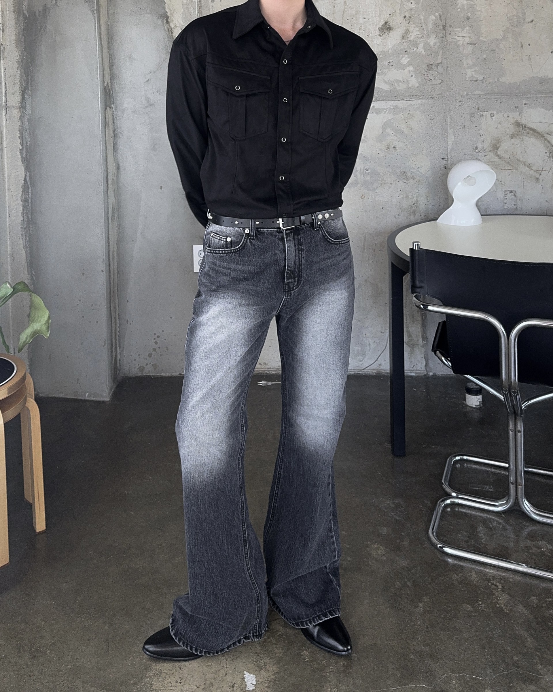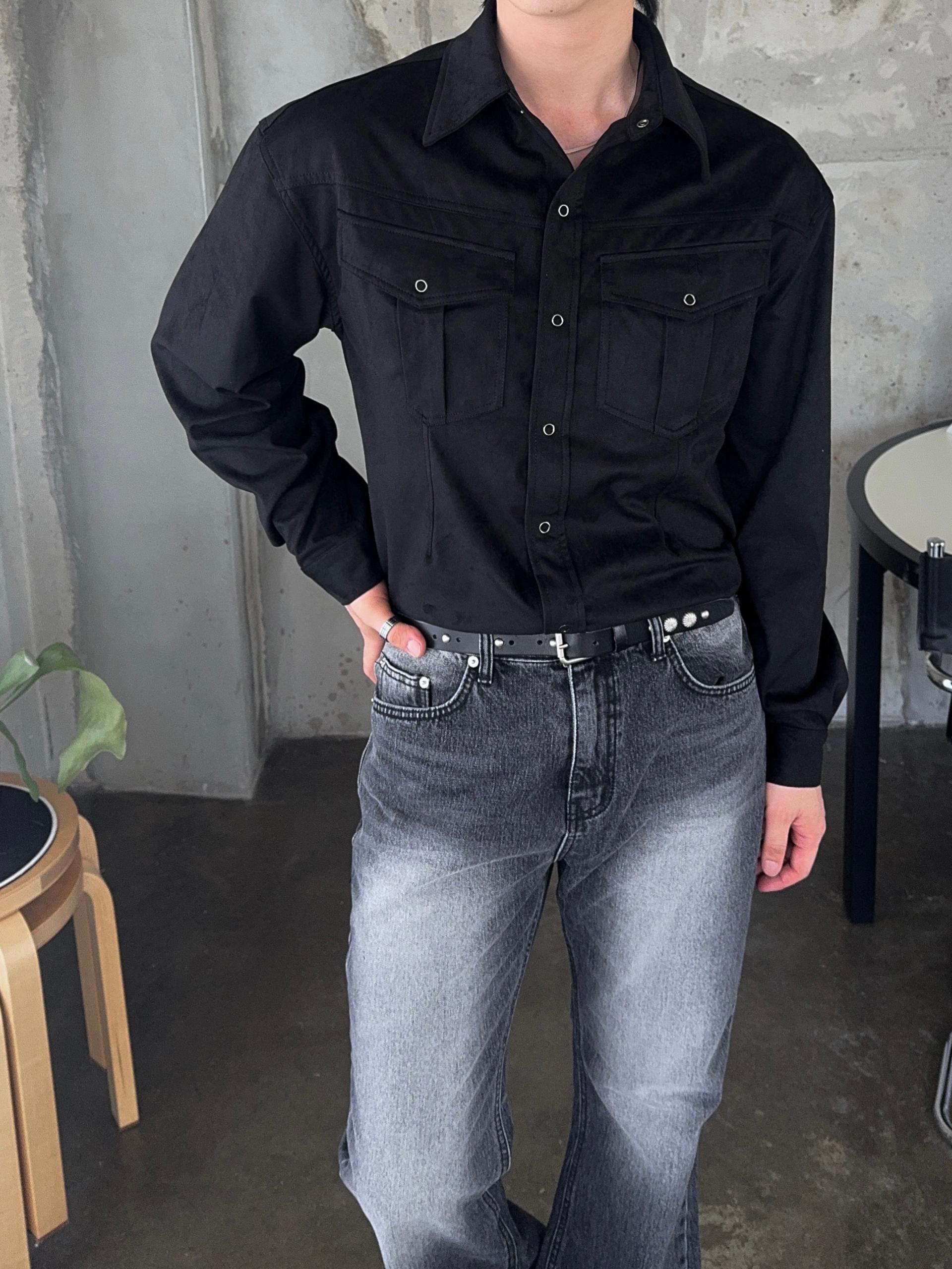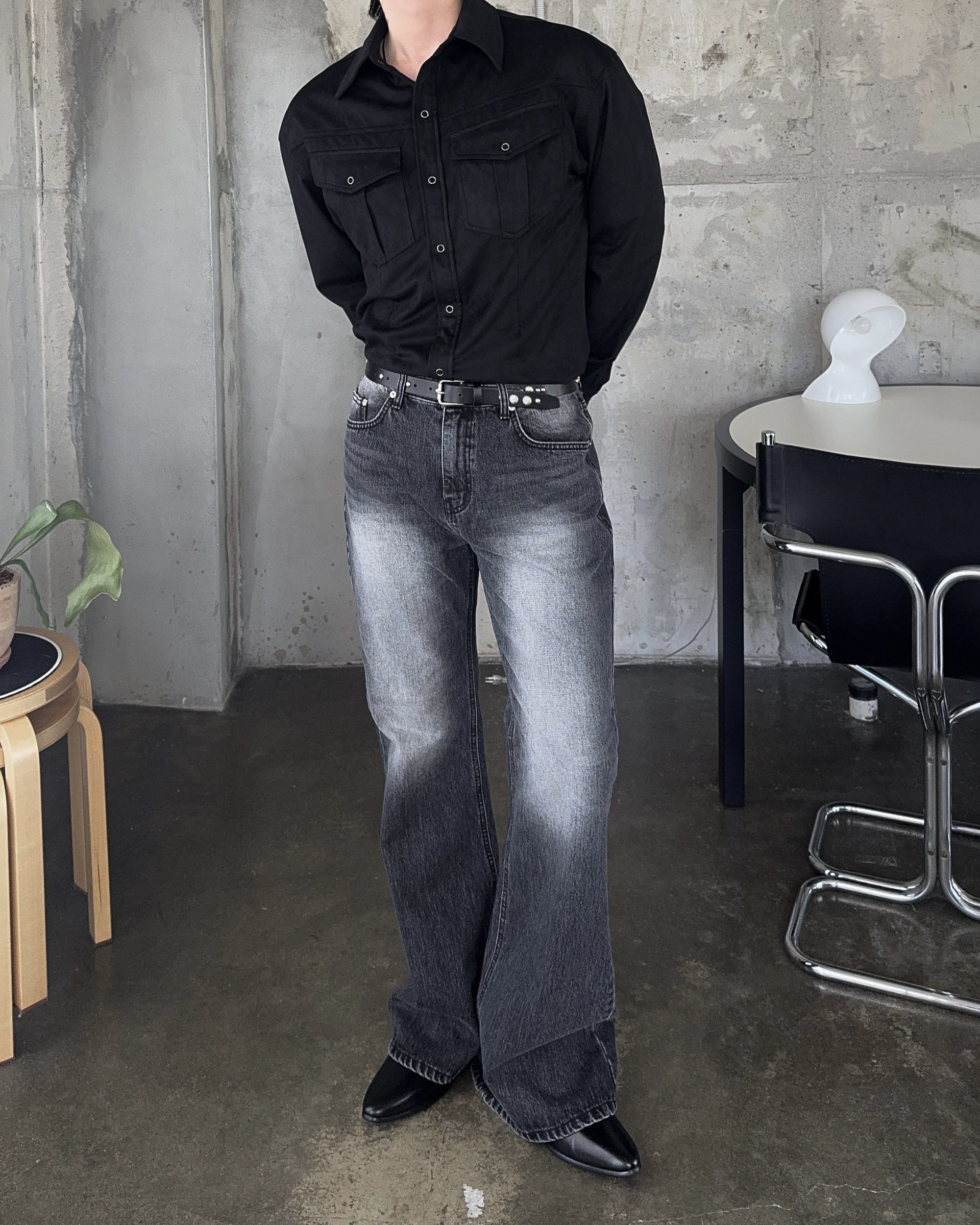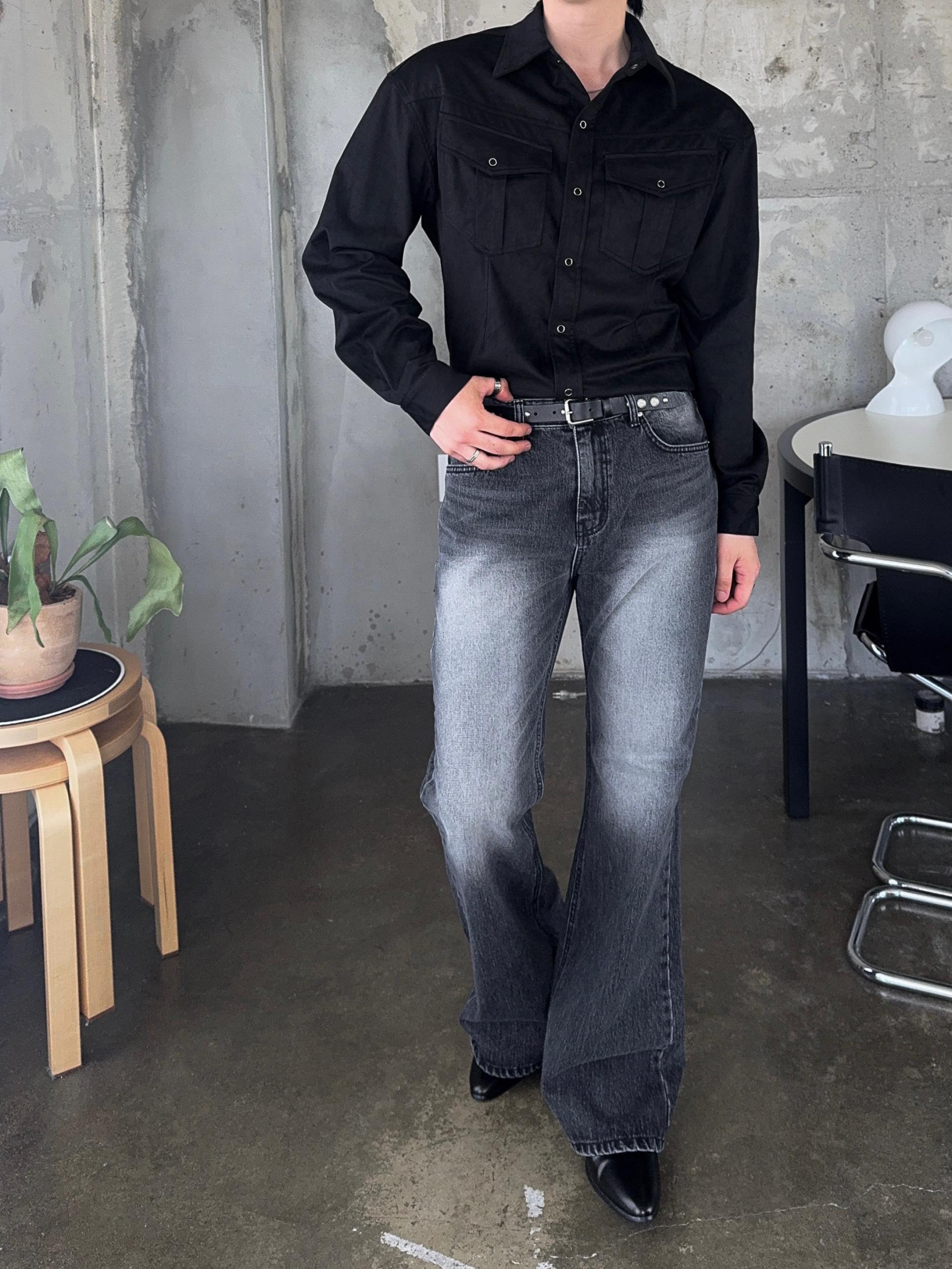 -빈티지한 무드가 돋보이는 블랙 캣브러쉬 워싱 컬러