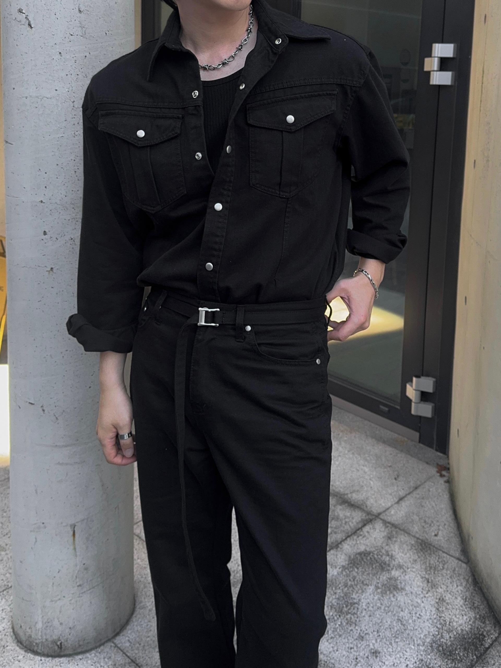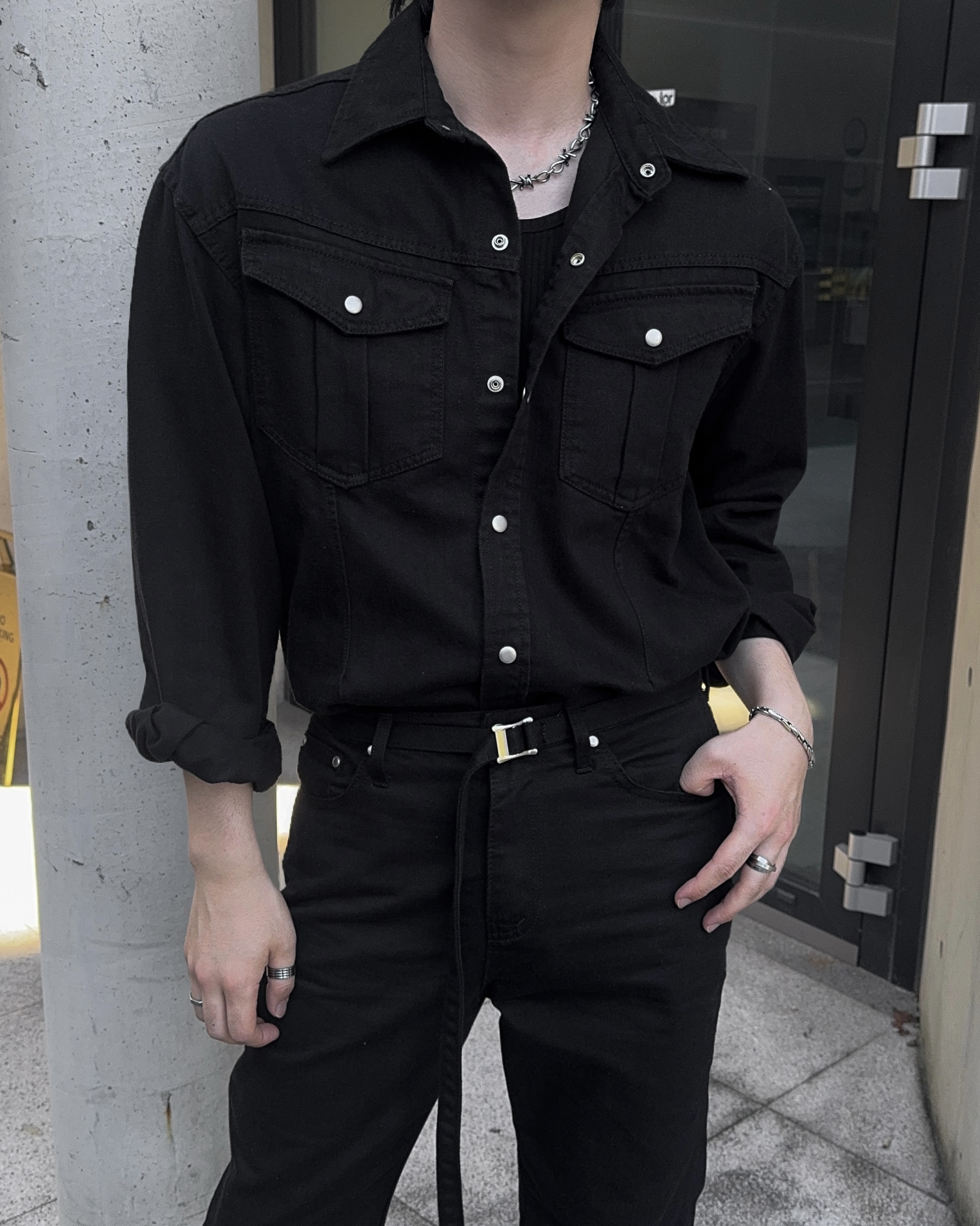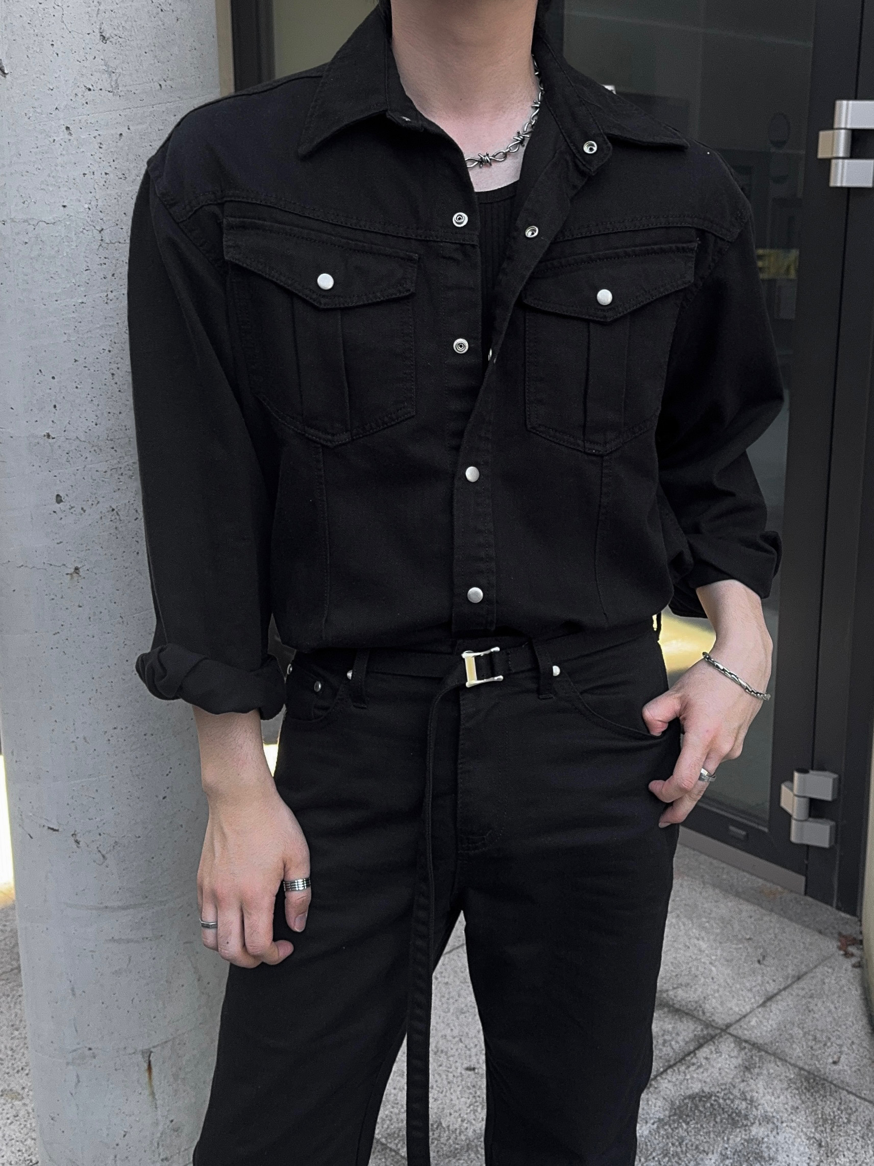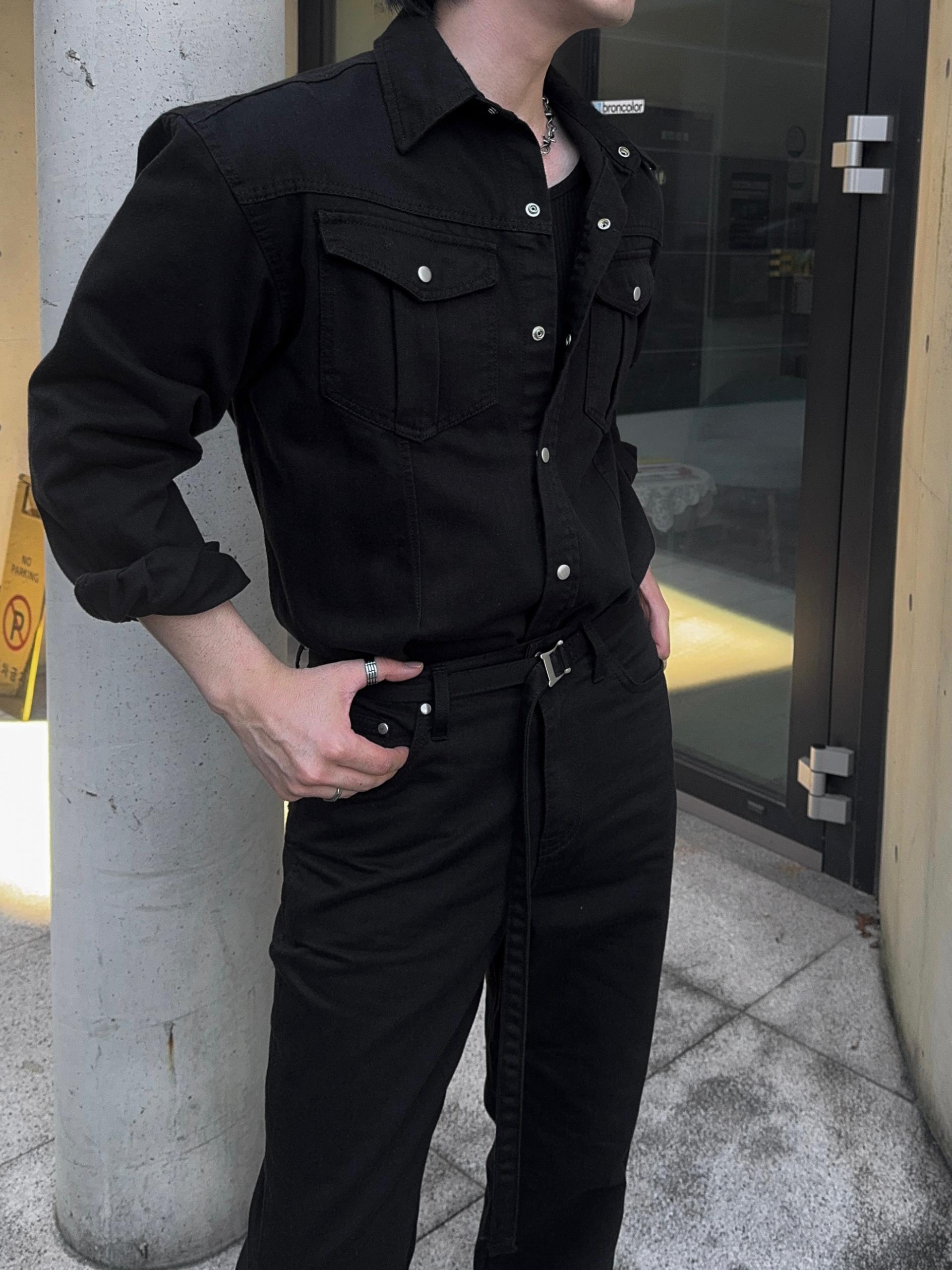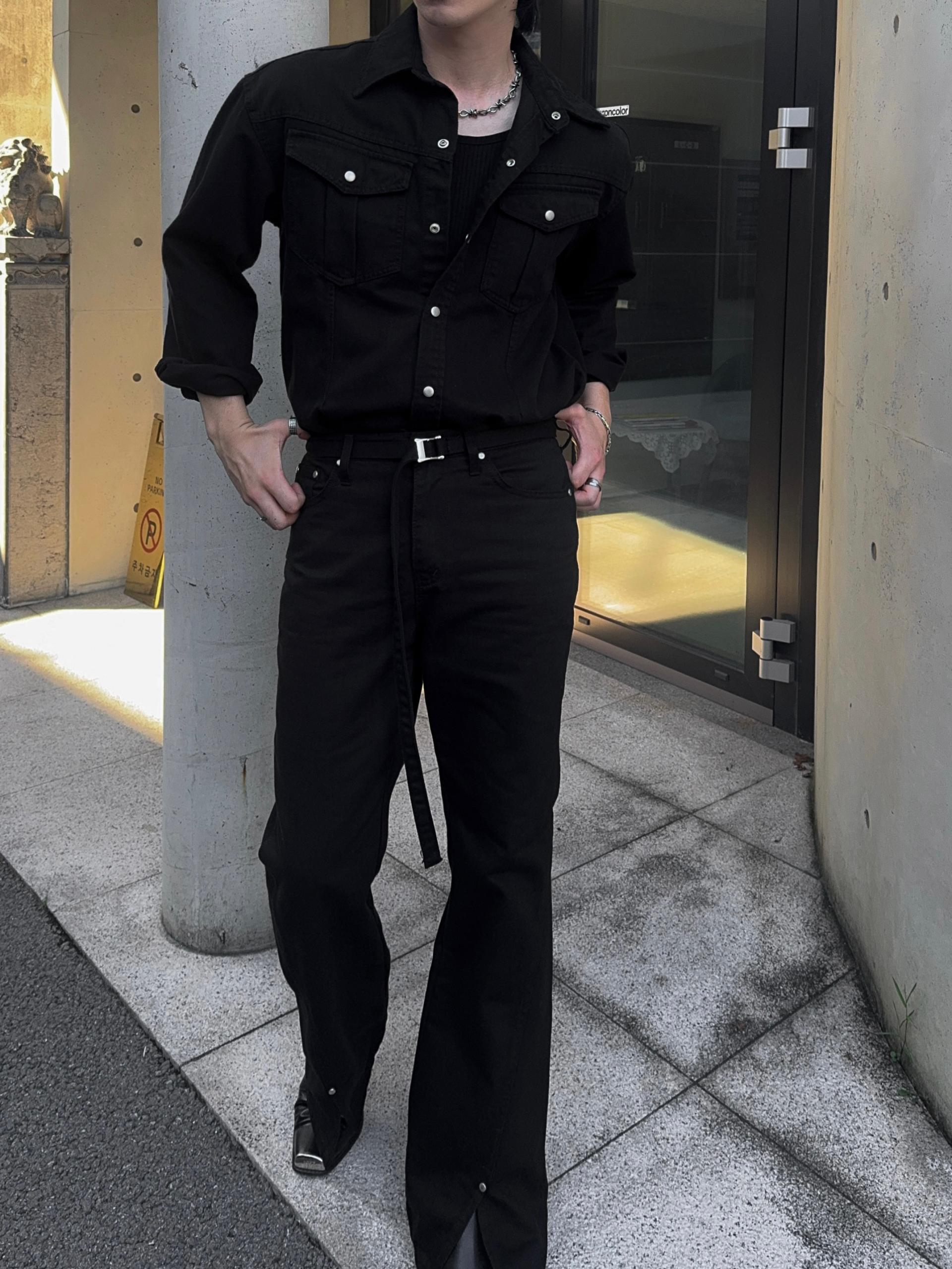 -탄탄한 데님 원단으로 제작된 셔츠