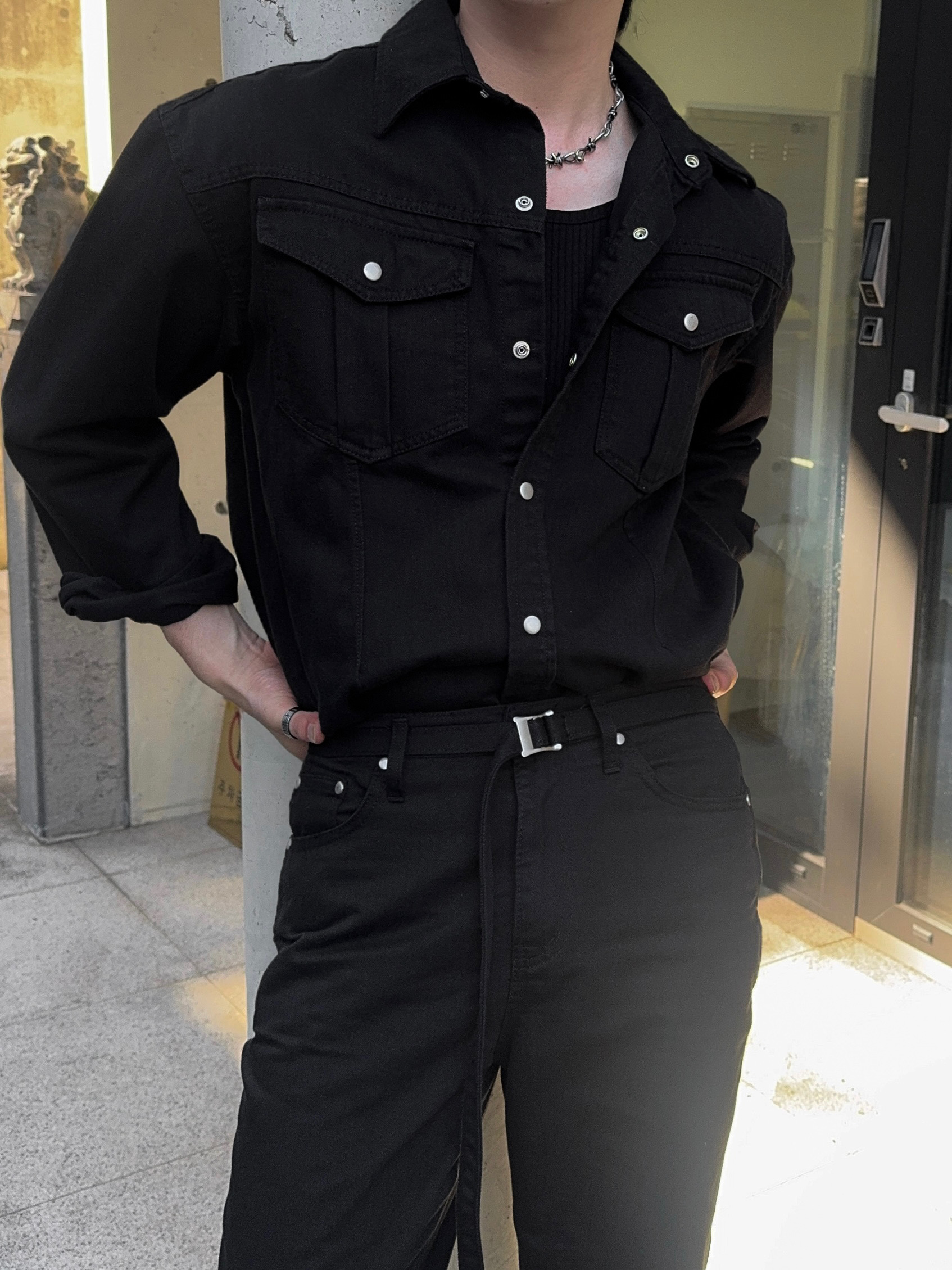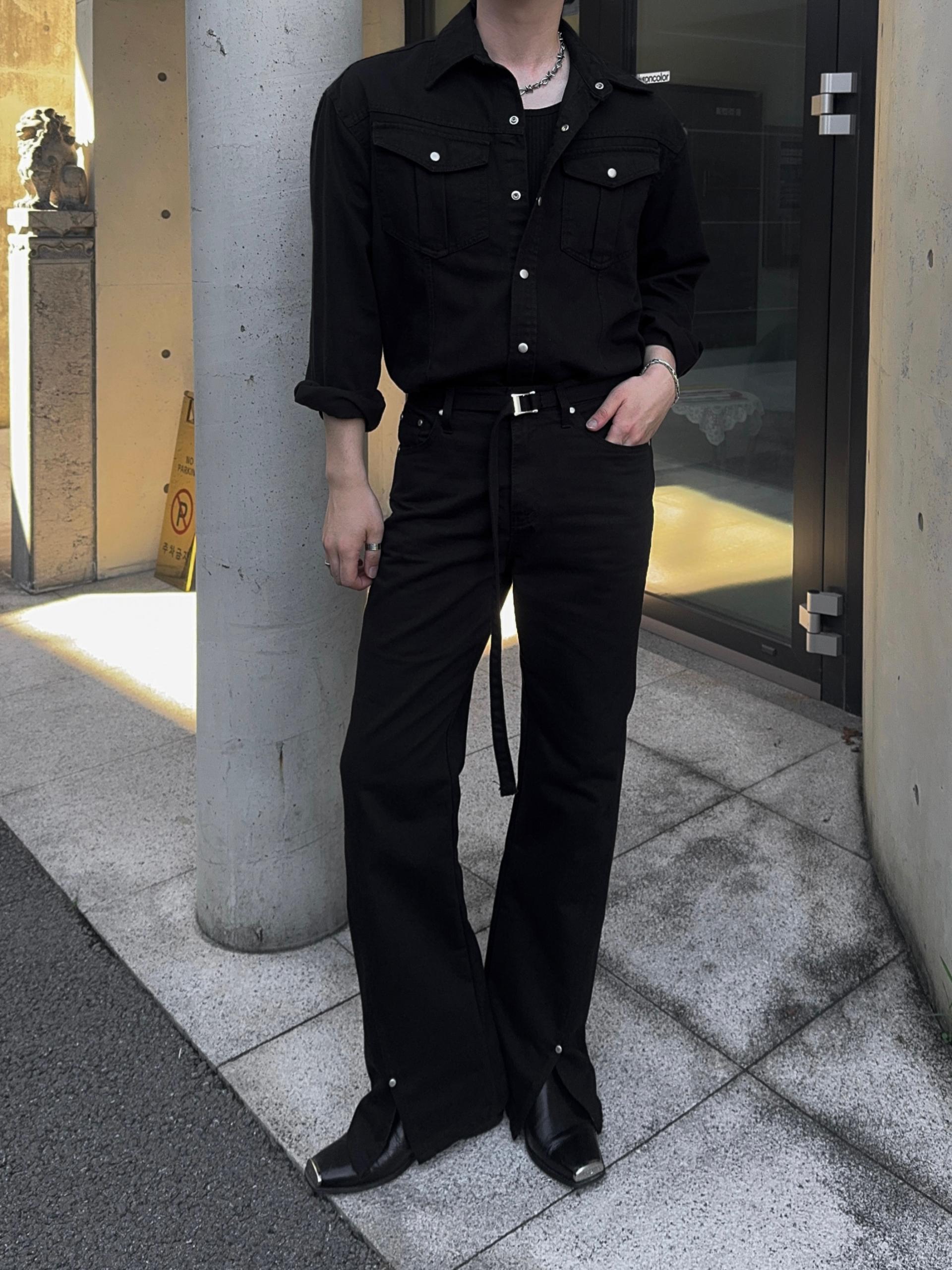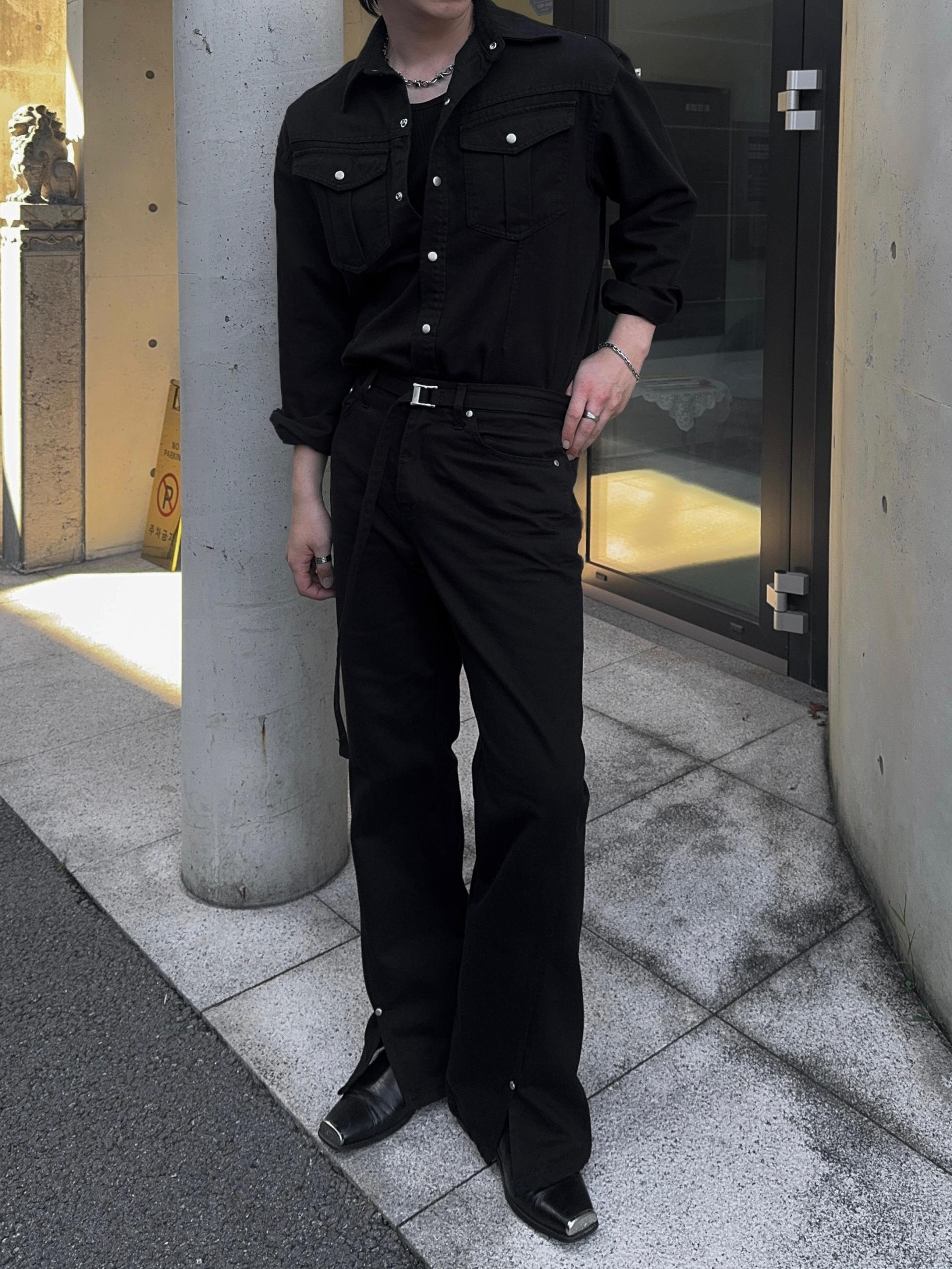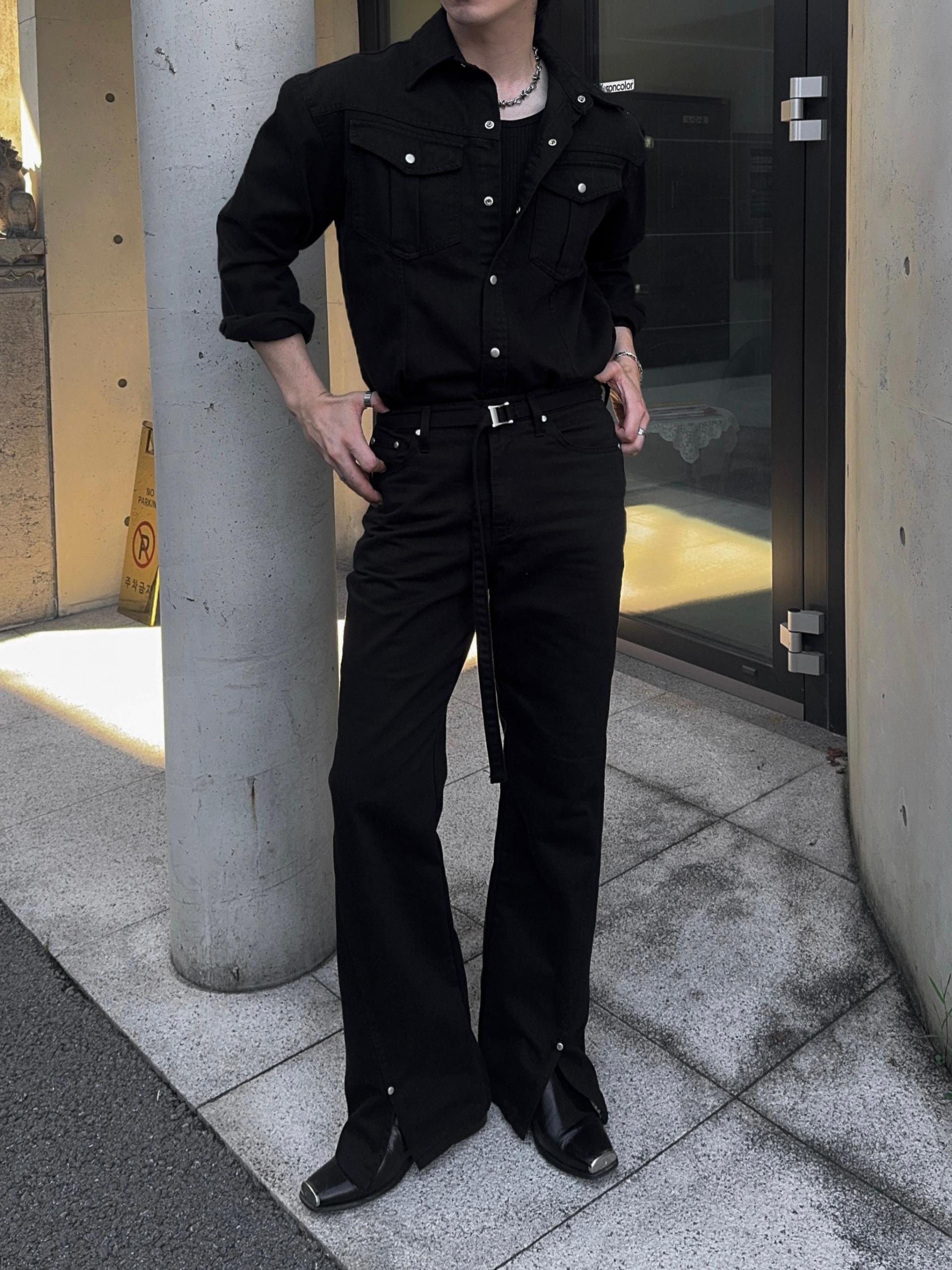 -탄탄한 데님 원단으로 제작된 셔츠